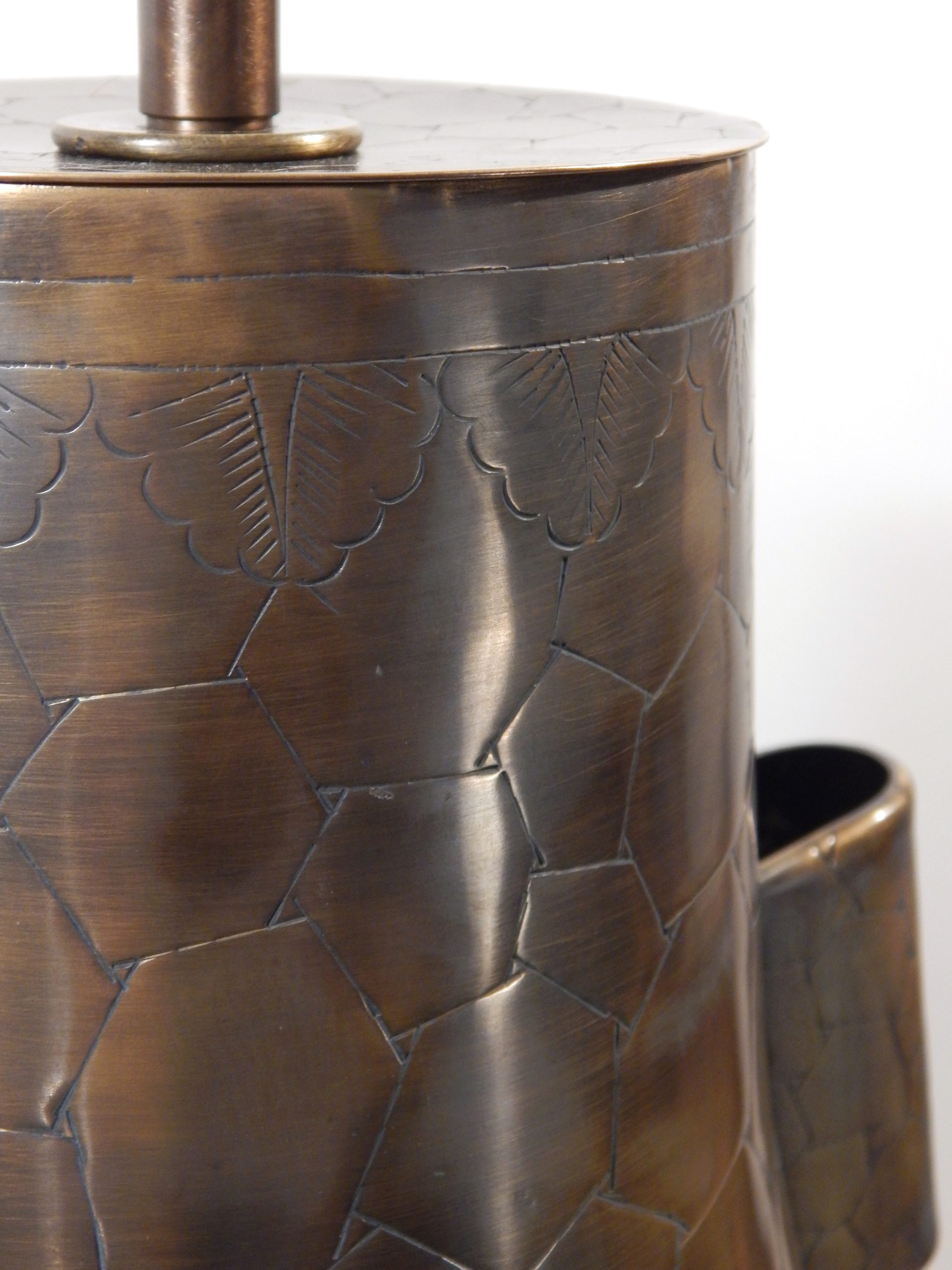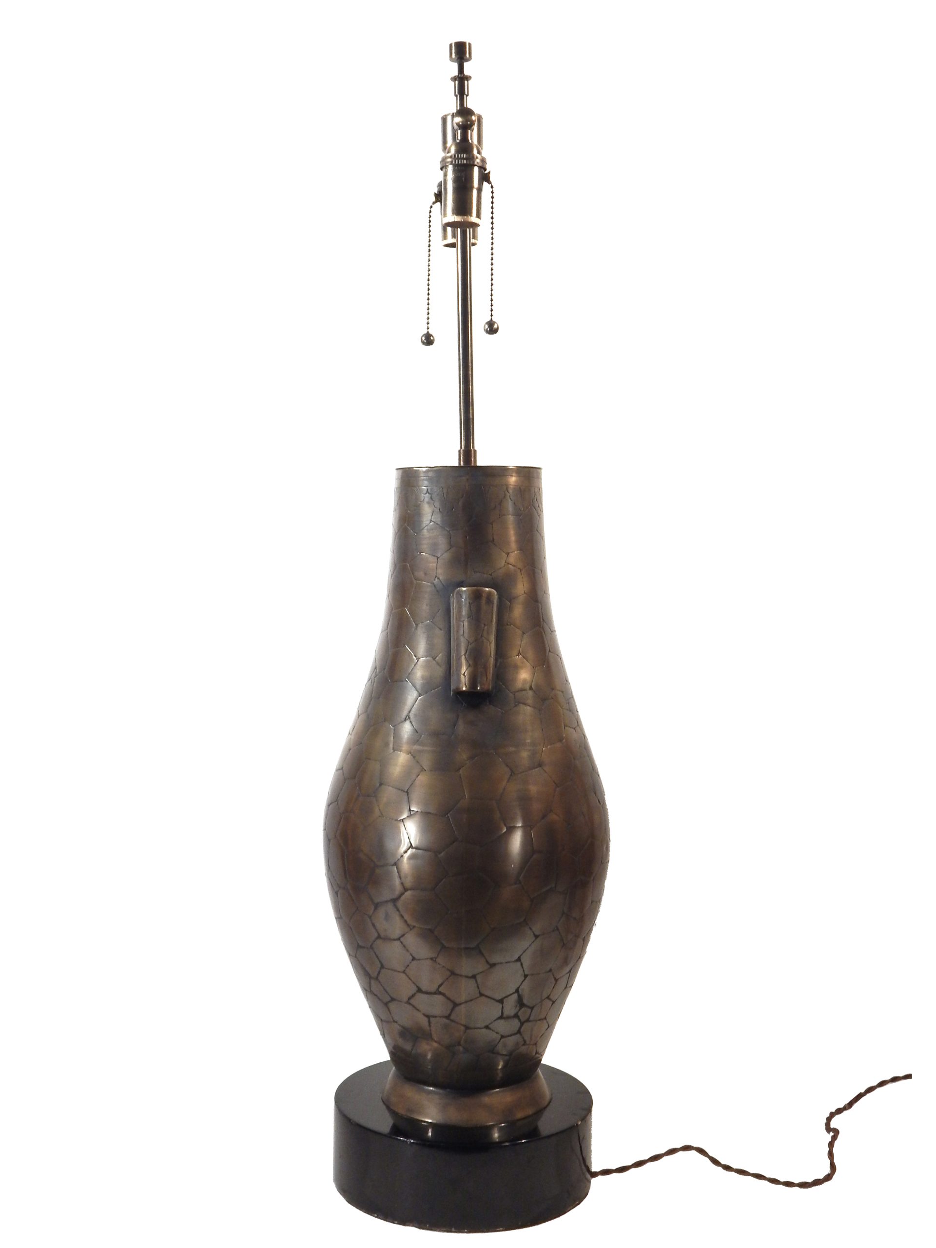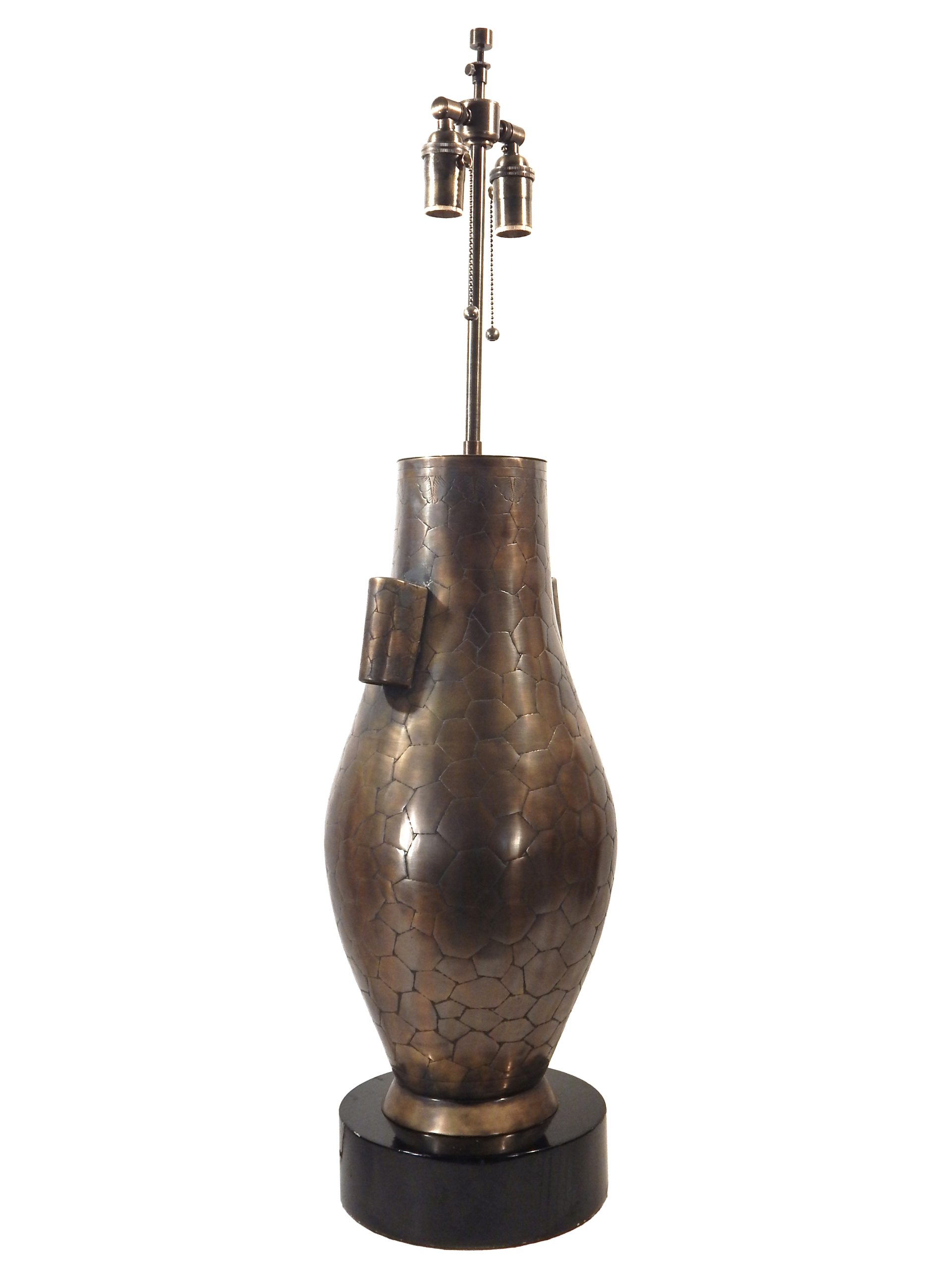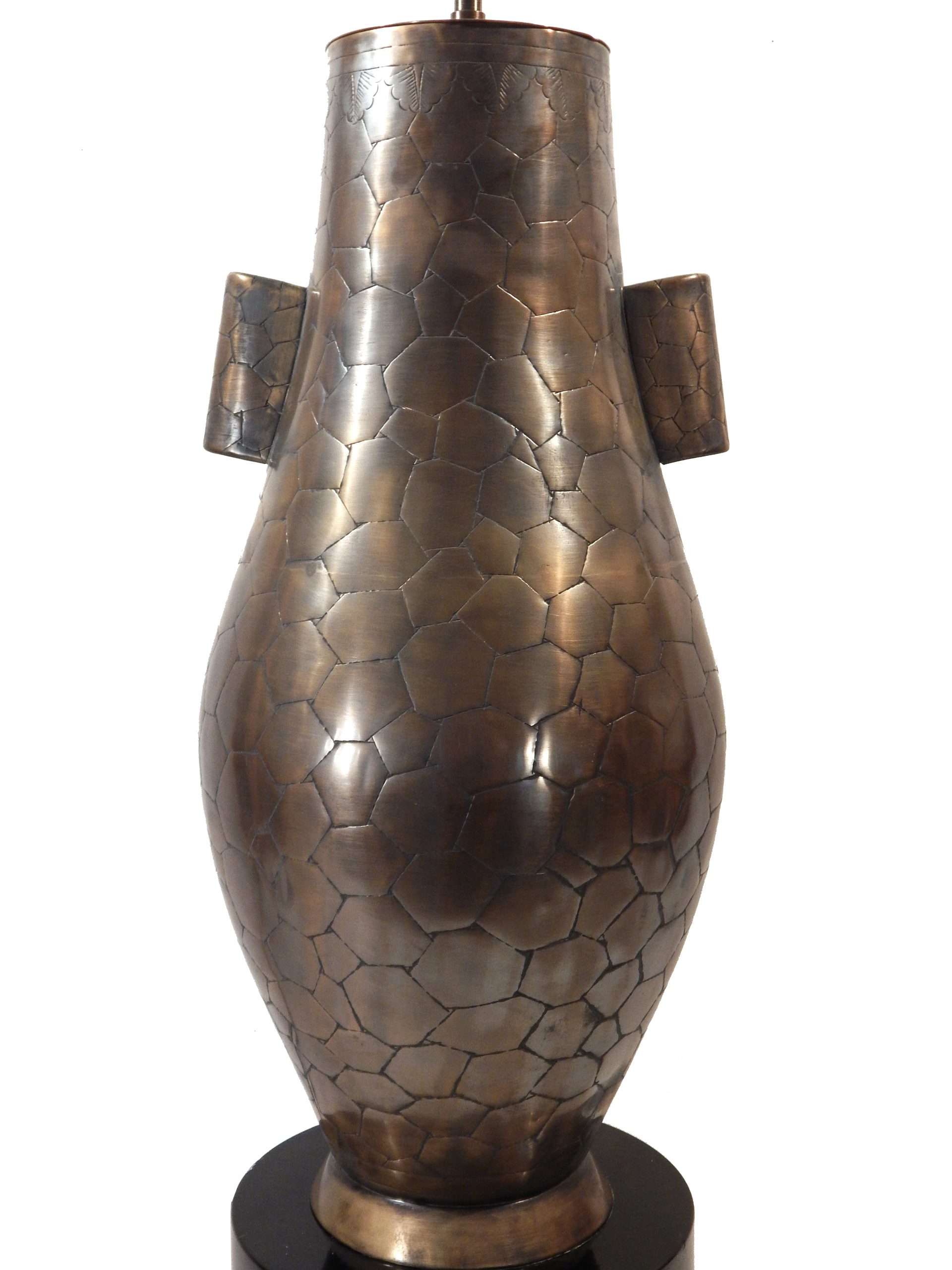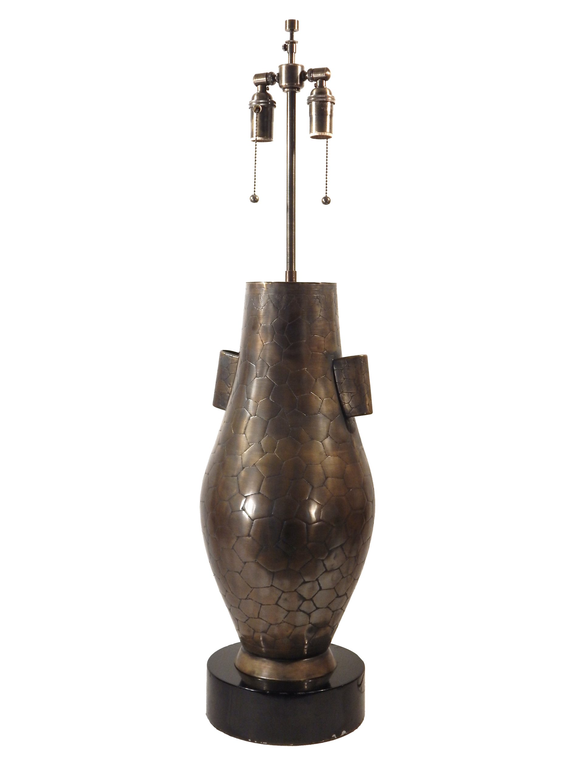 Vintage Italian Brass Table Lamp with Textured Pattern and Accent Handles