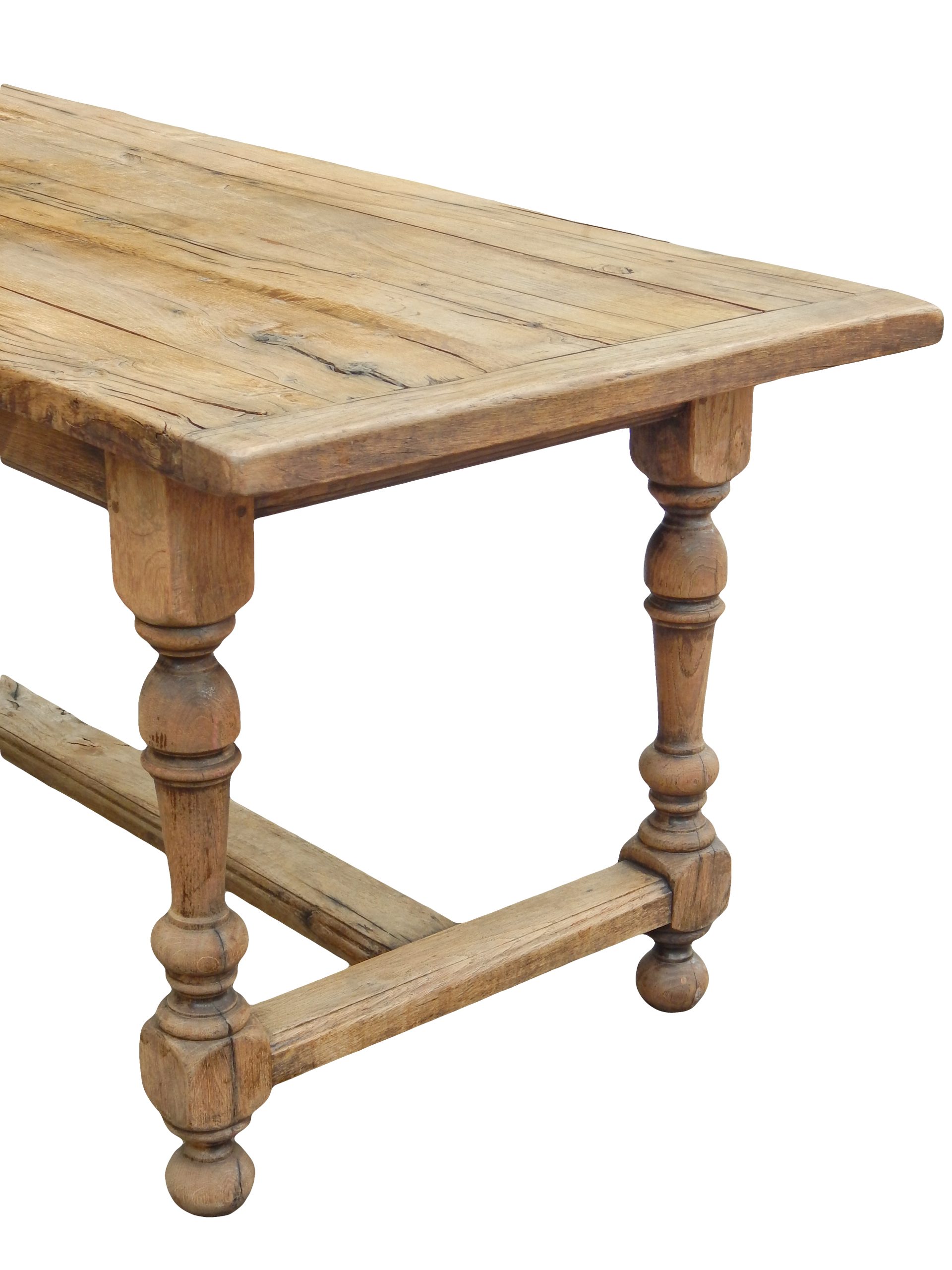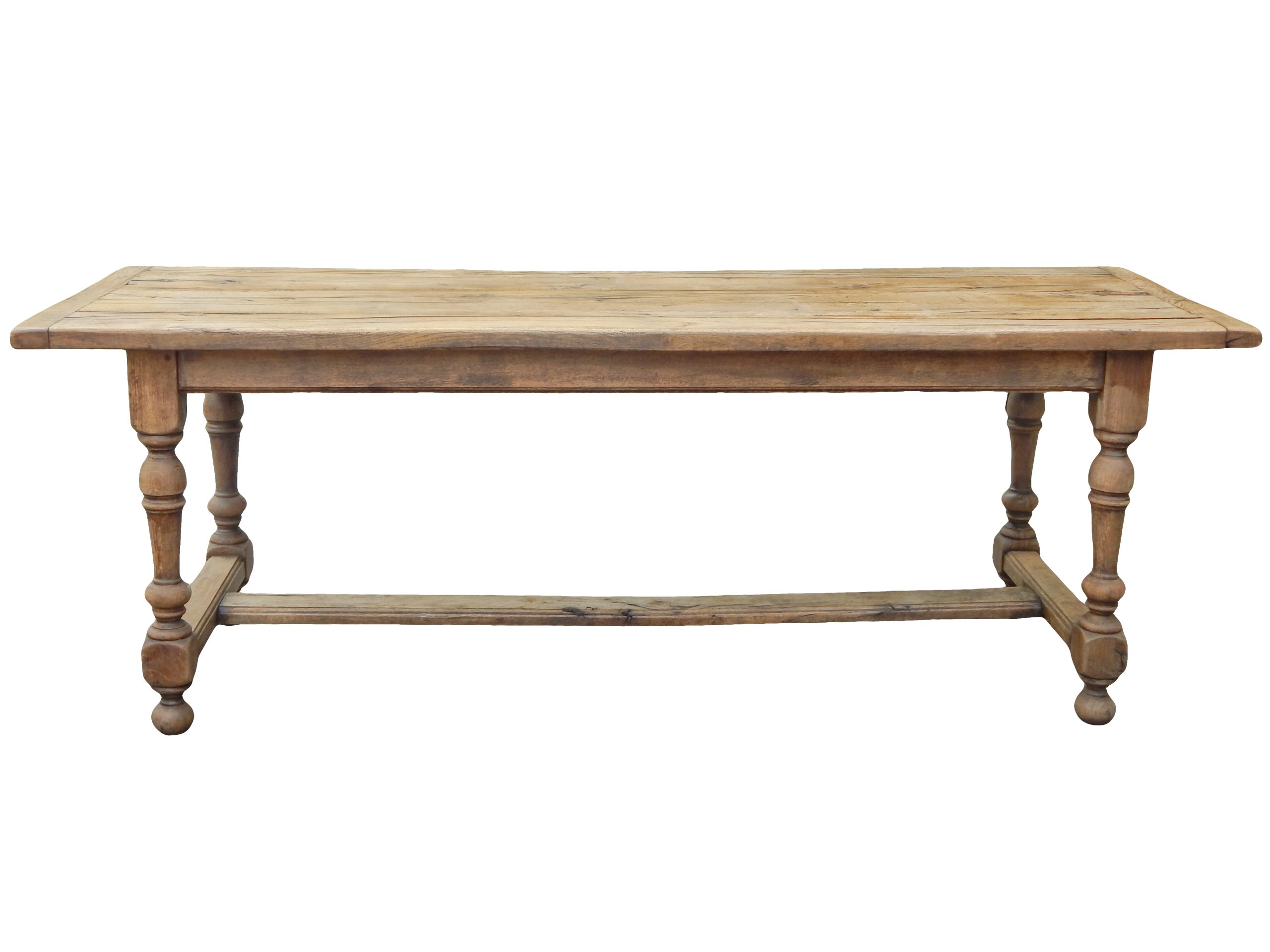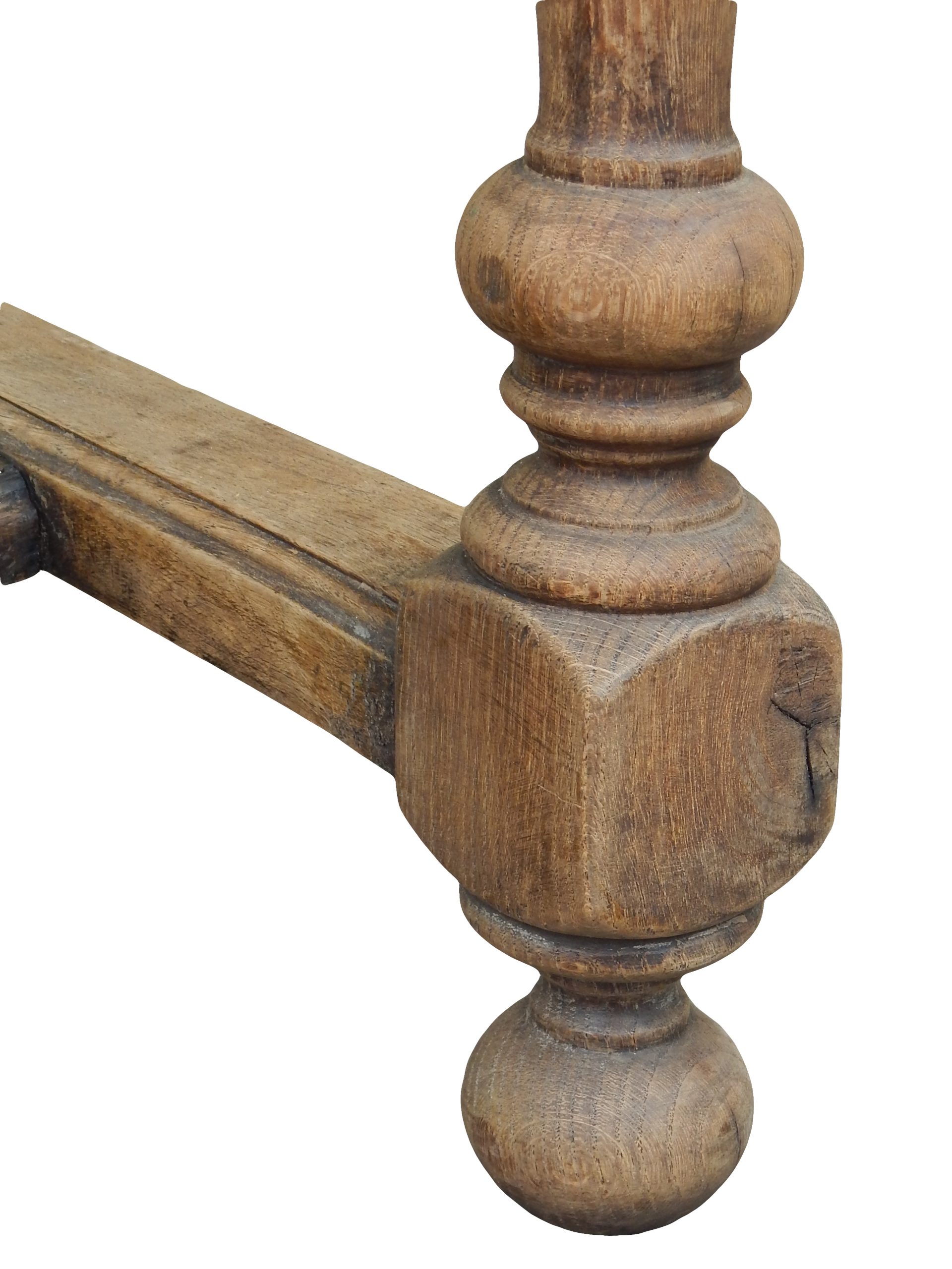 Early Spanish Turned Leg, Wood Table with Streatcher Bar