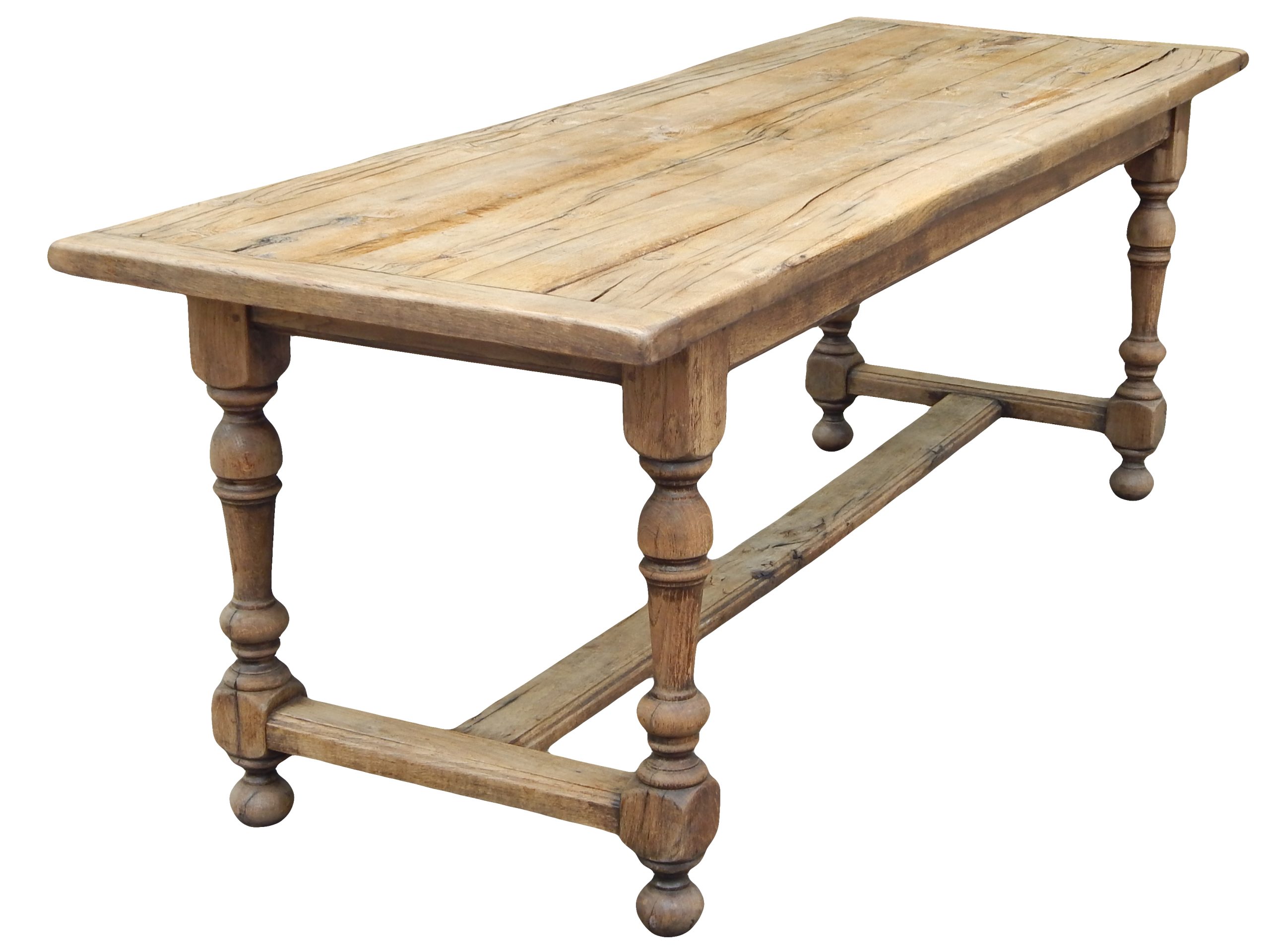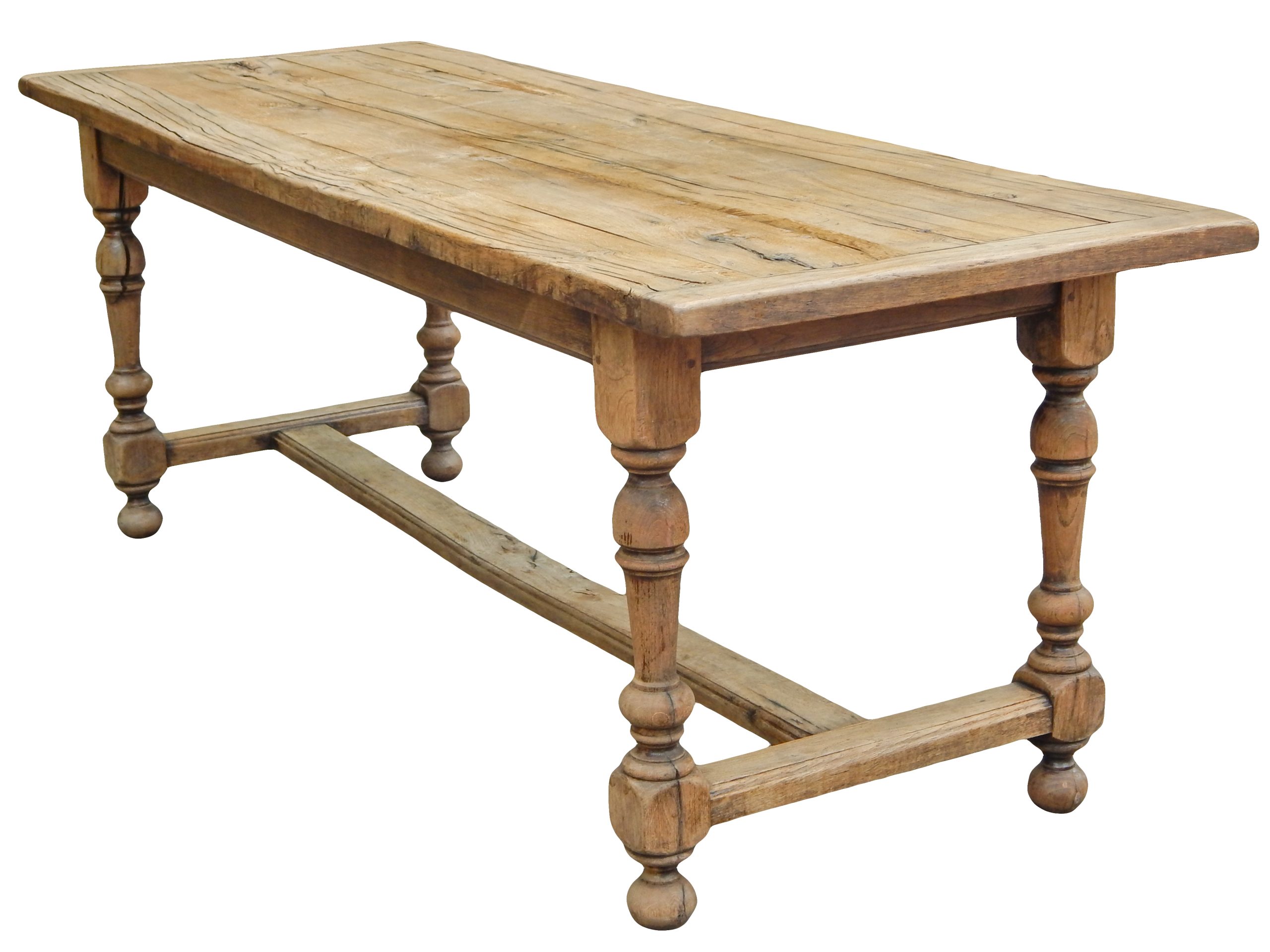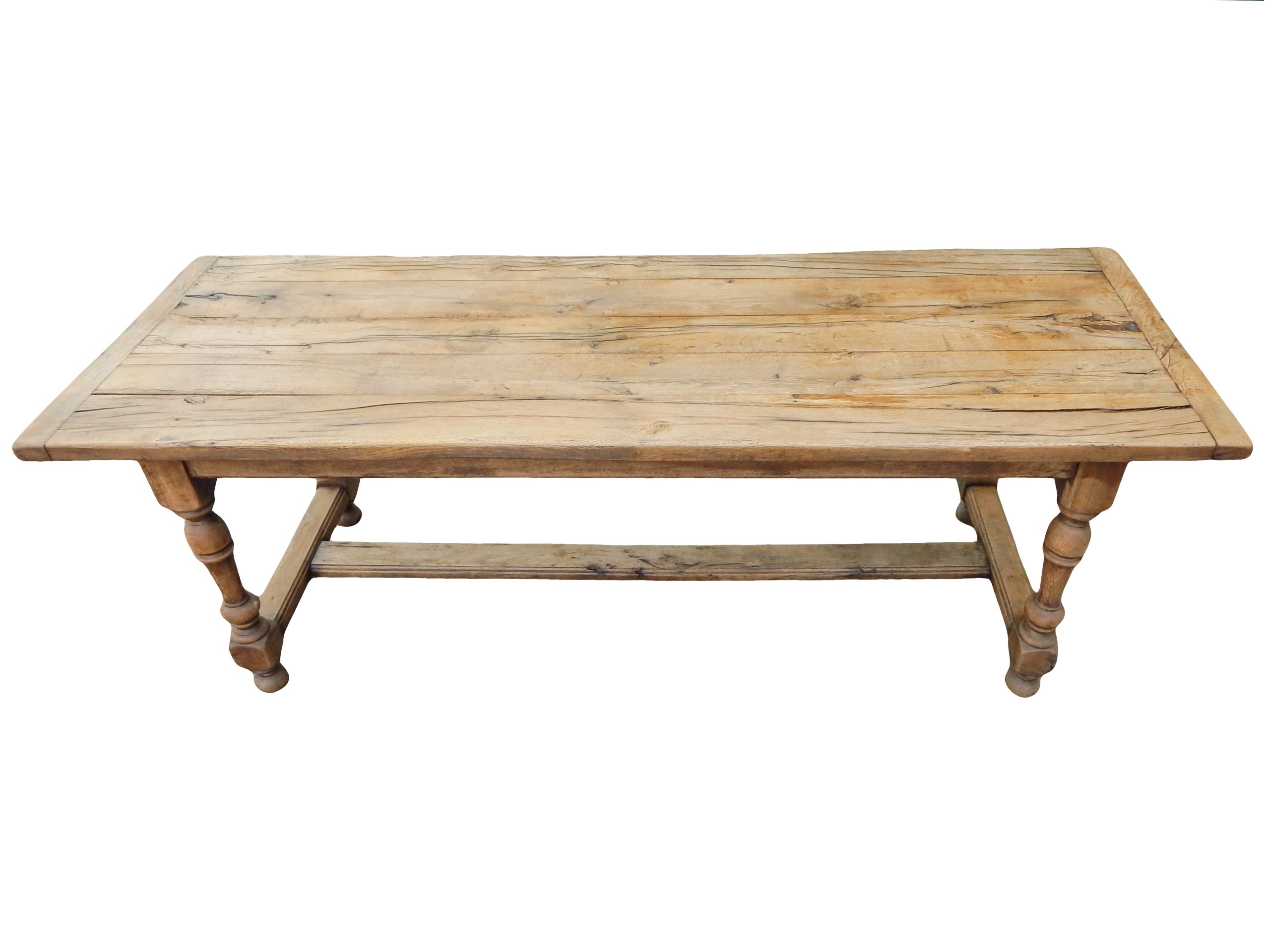 Early Spanish Turned Leg, Wood Table with Streatcher Bar