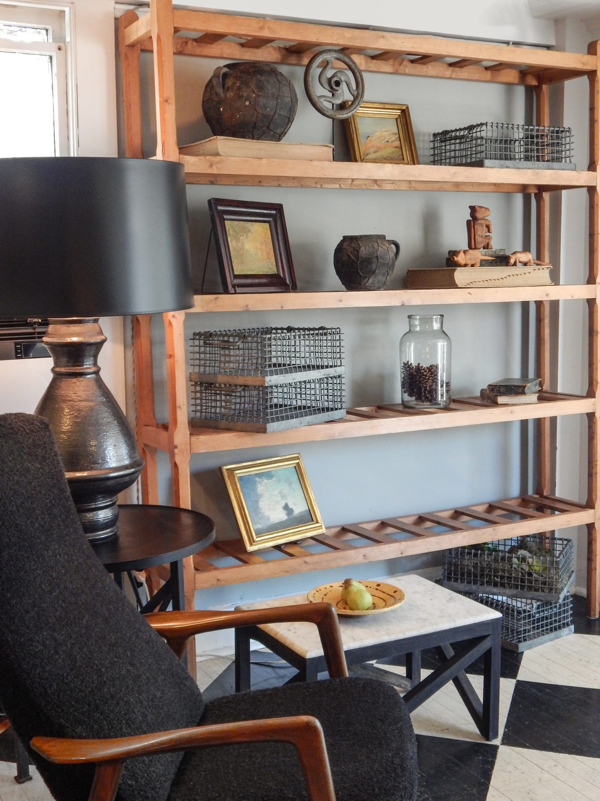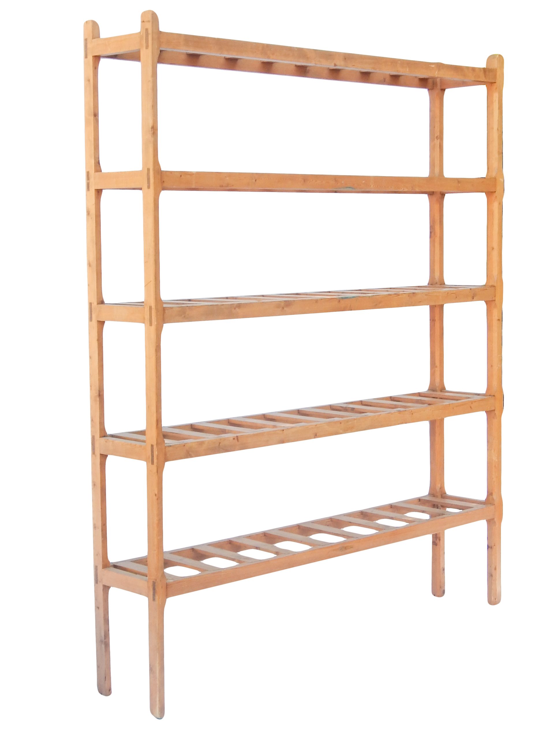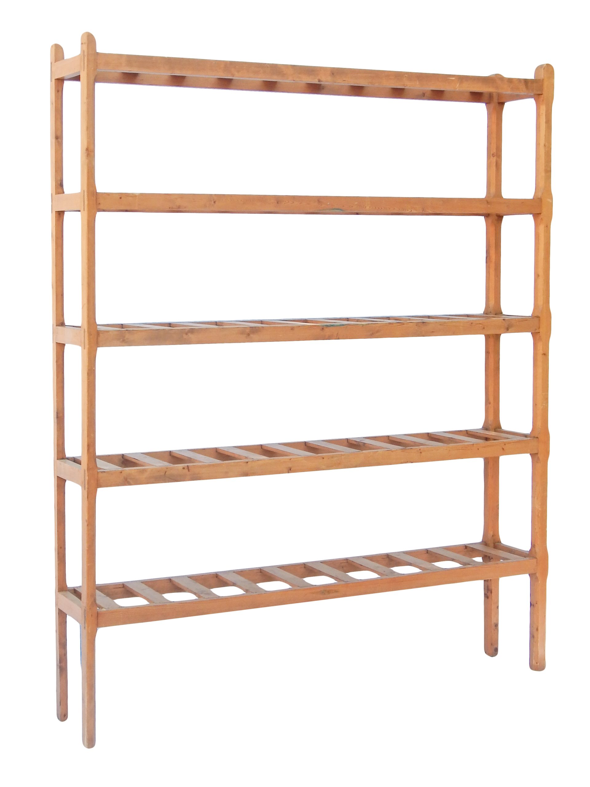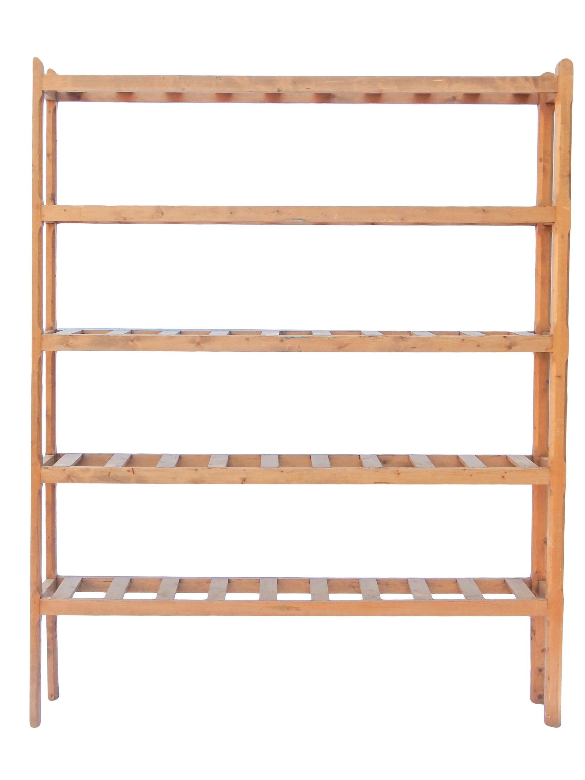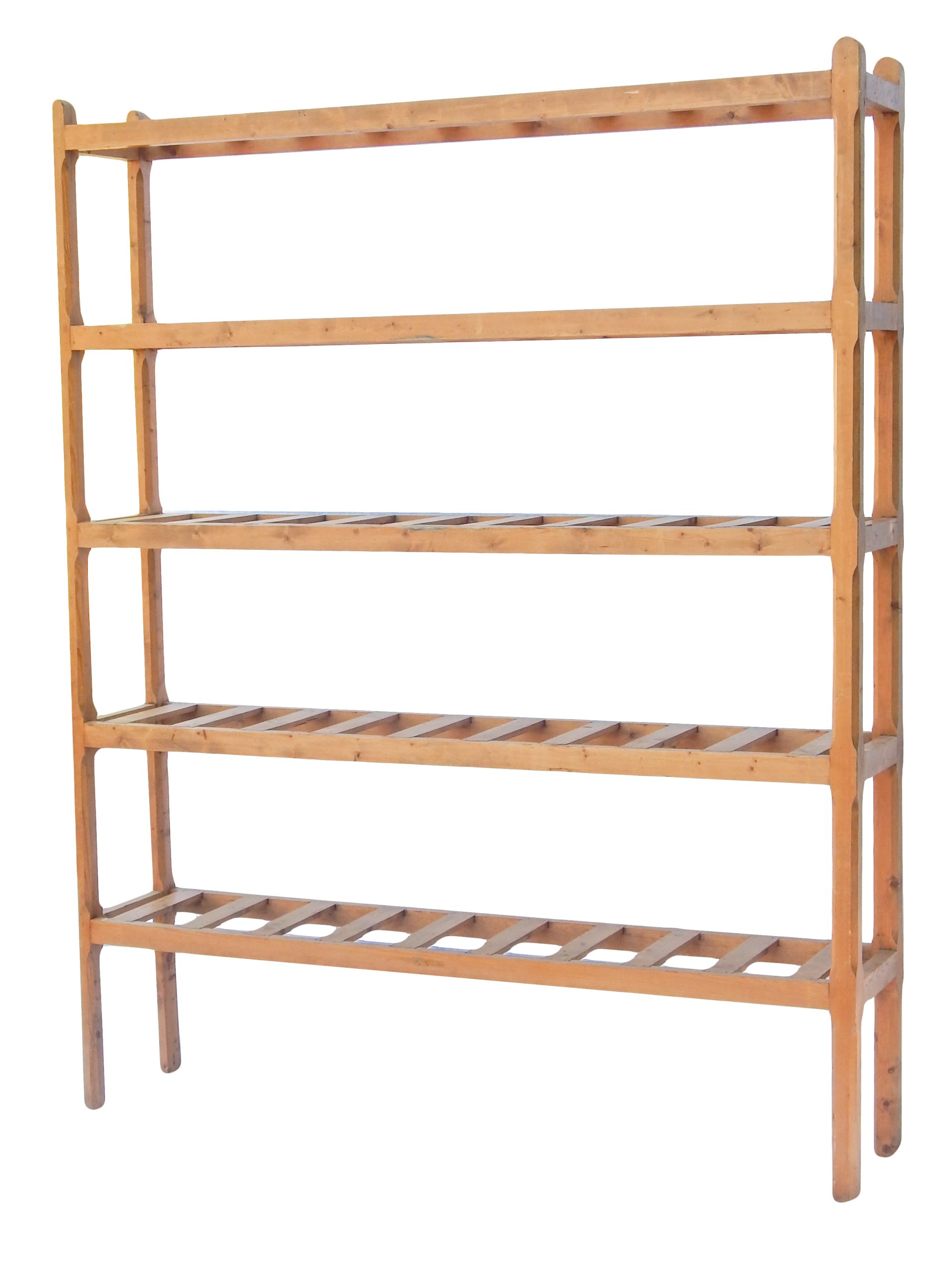 20th Century, Industrial Pine Shelf with Five Slatted Tiers