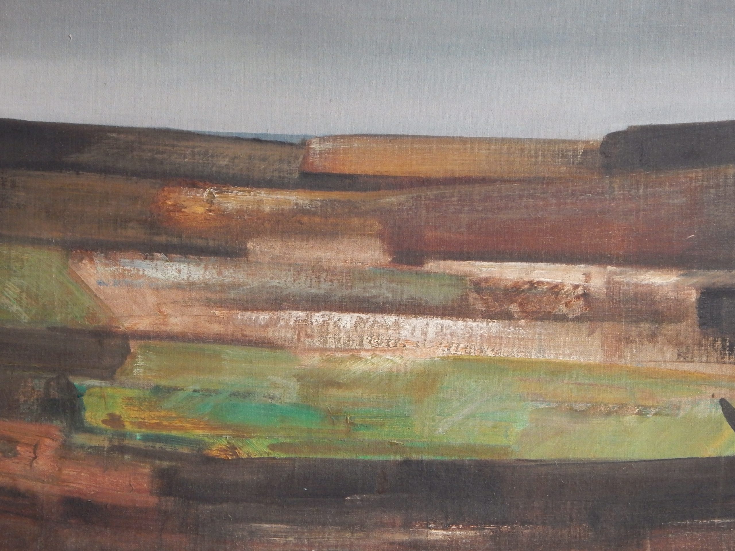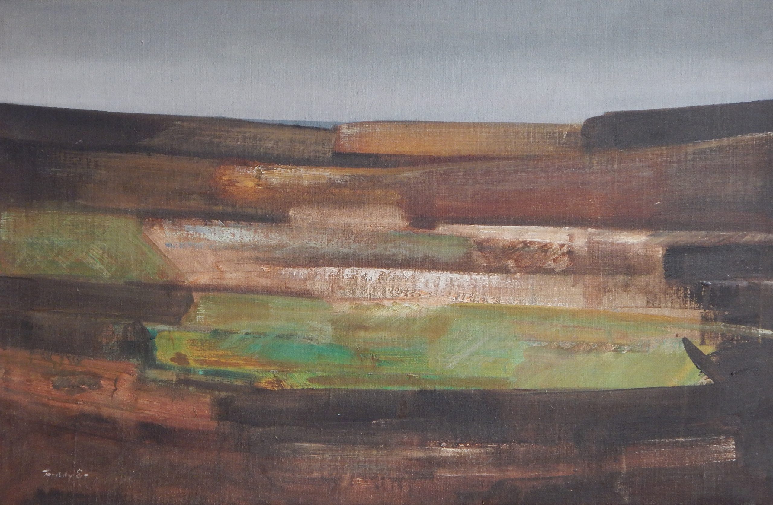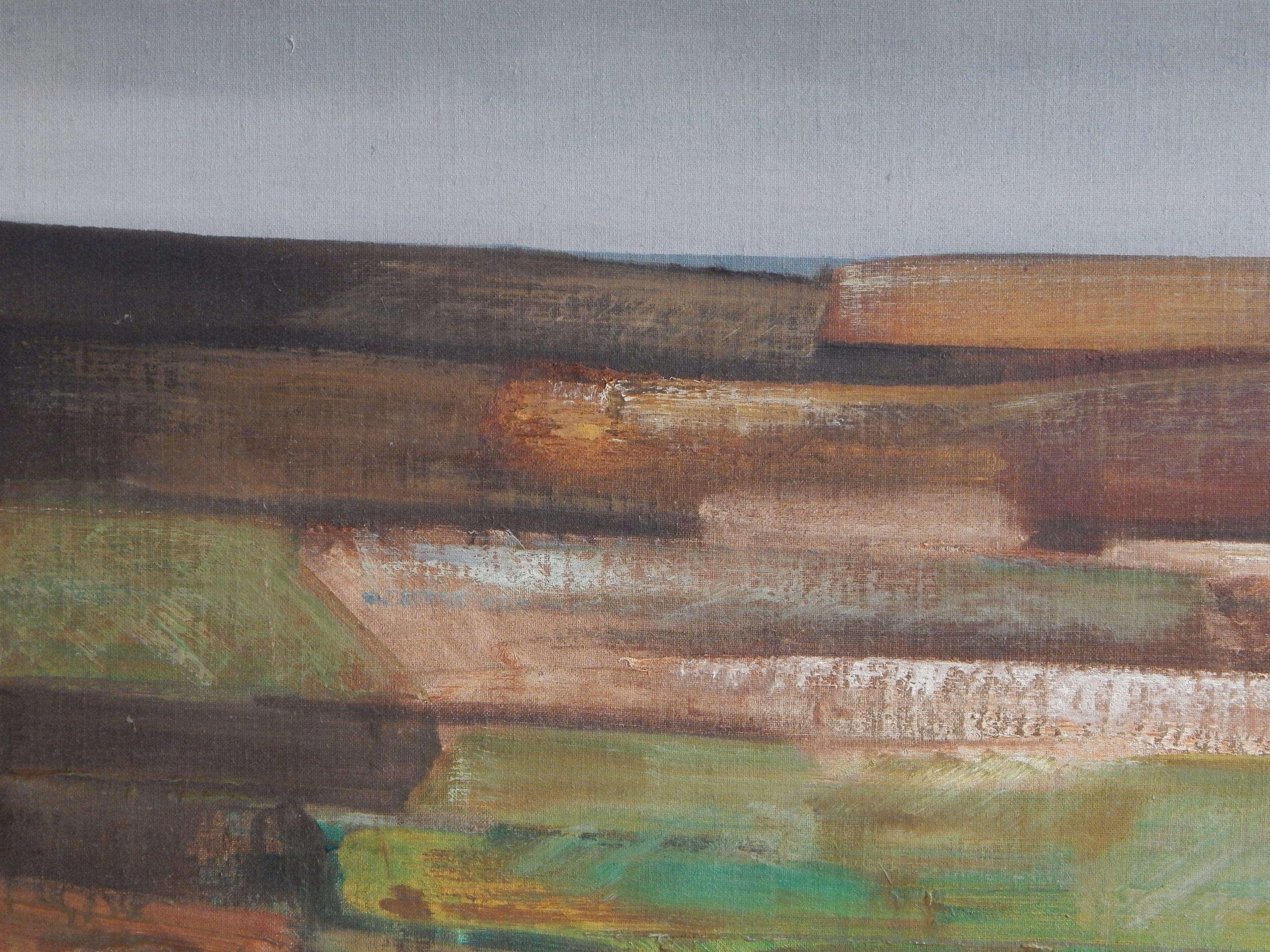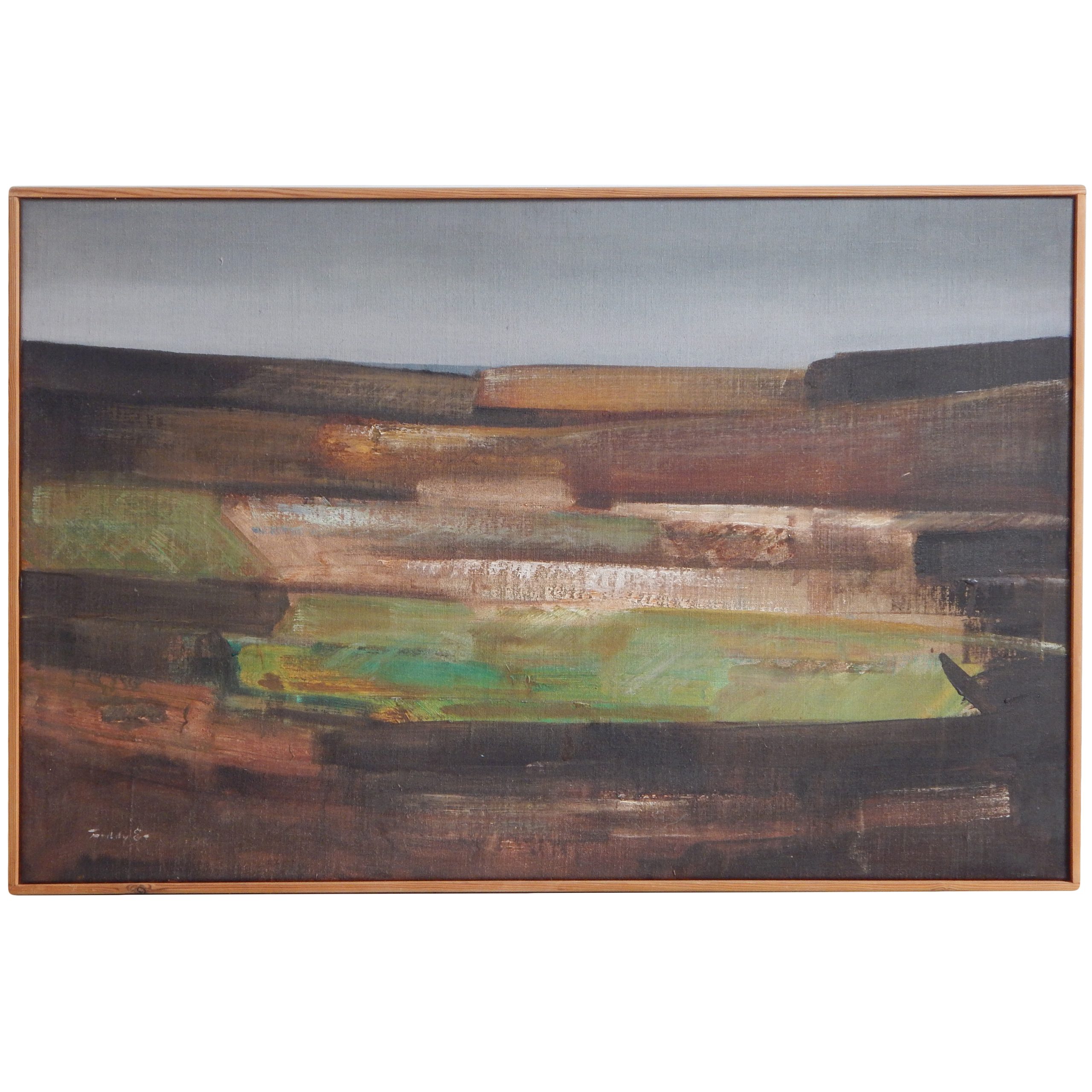 Mid Century, Minimalistic Landscape of Fields in Brown & Green Tones