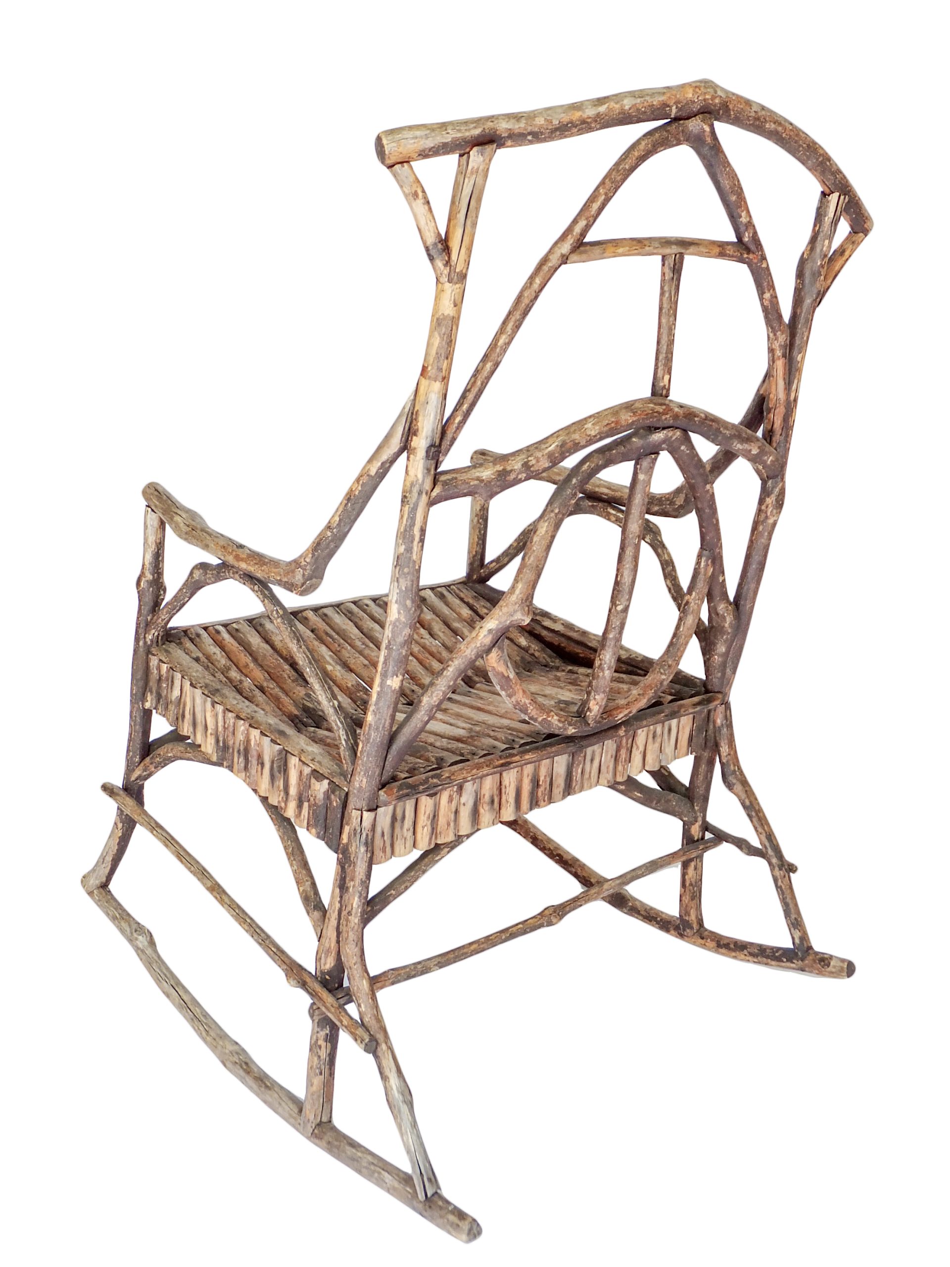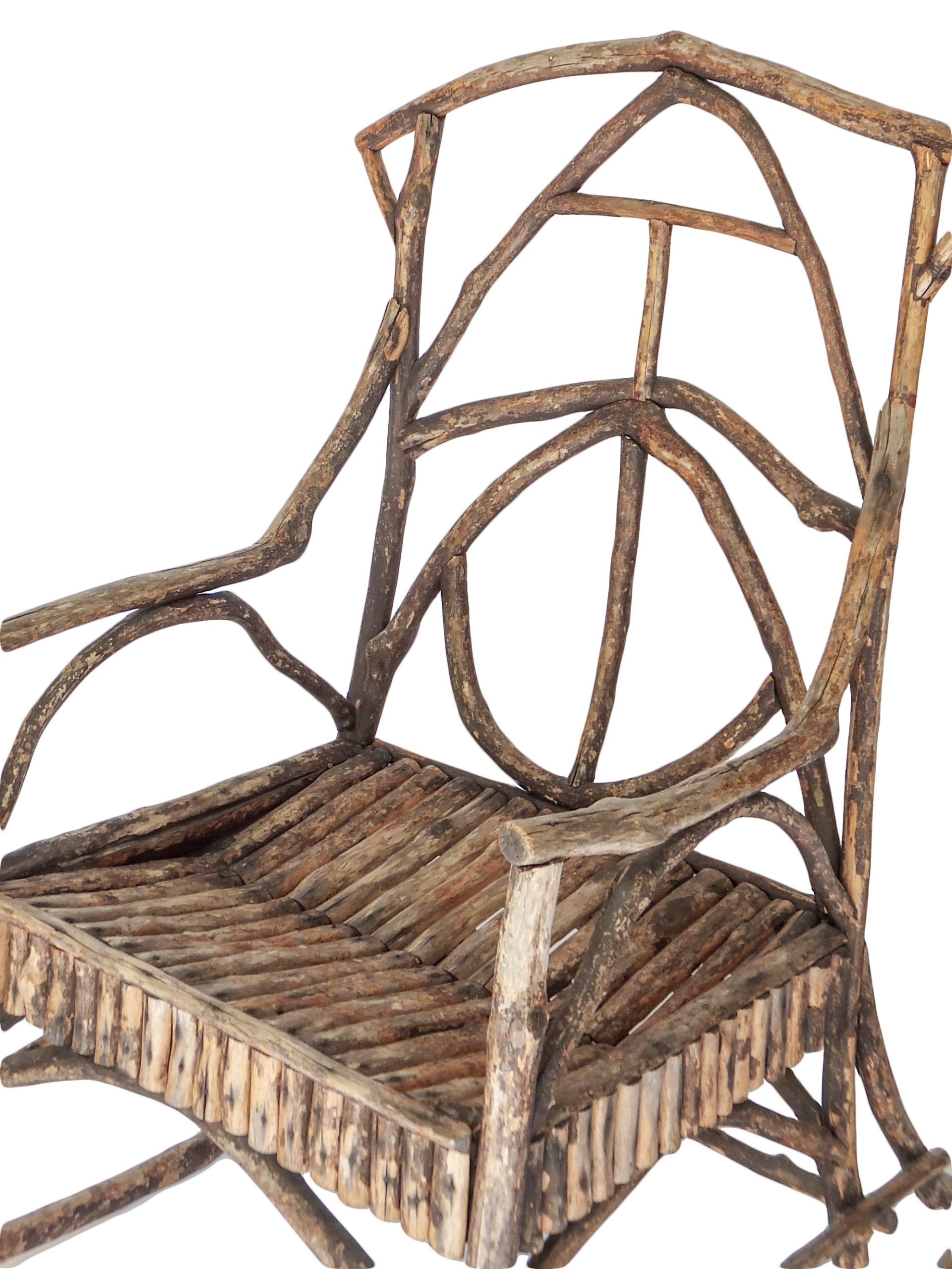 Early 20th Century Adirondack Craft Made Twig Rocking Chair