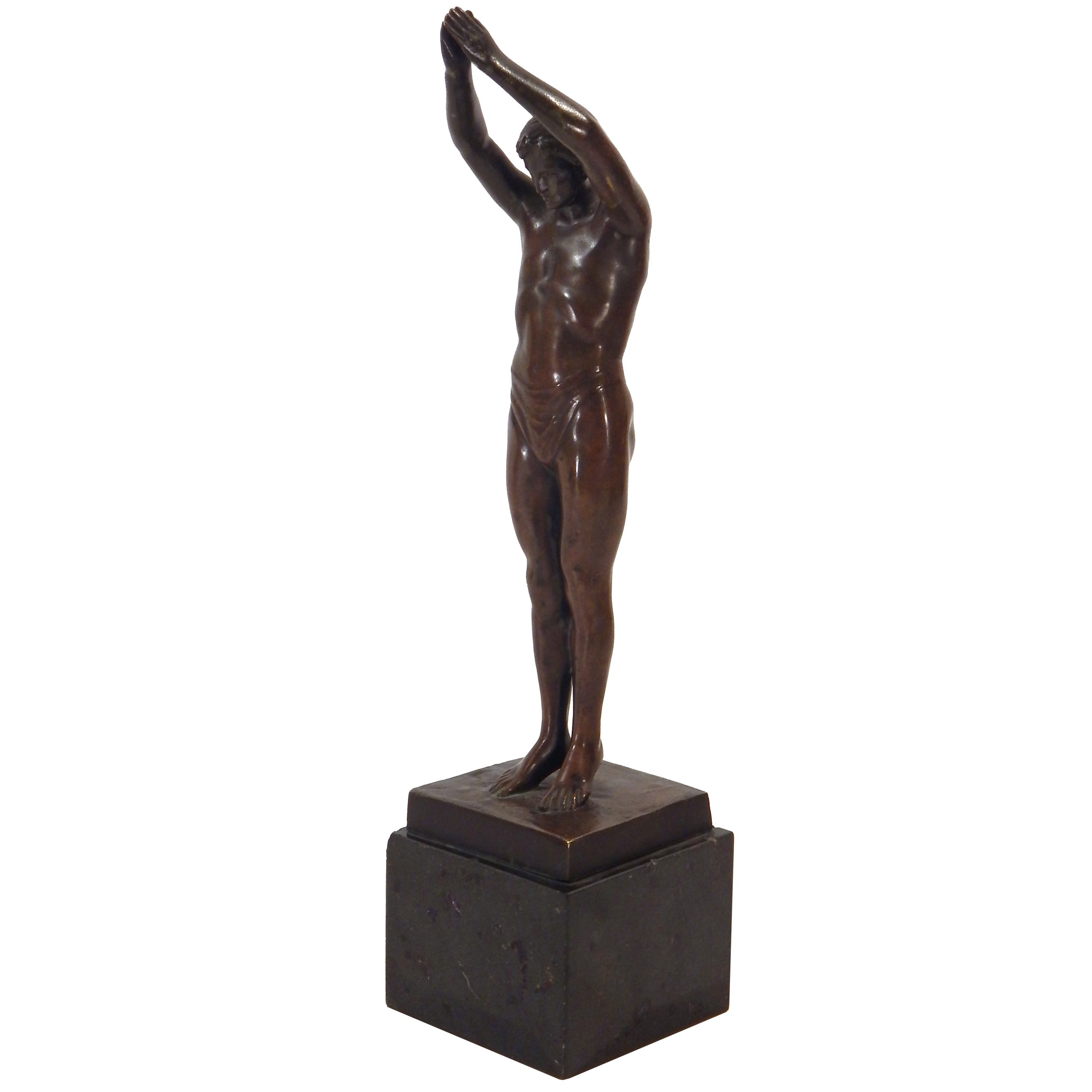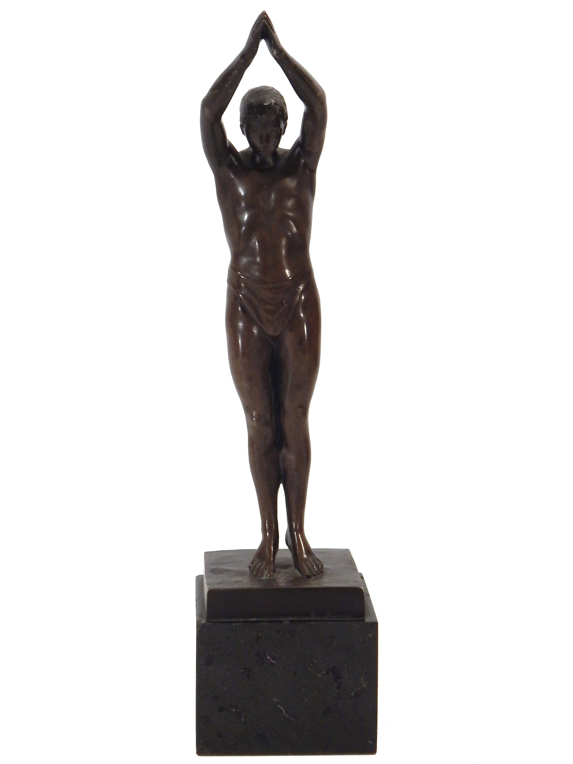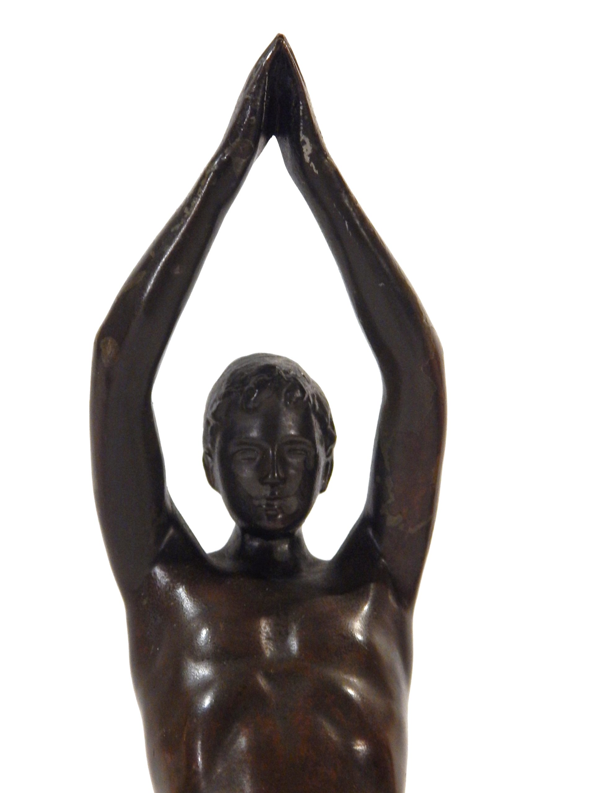 Antique Bronze Sculptural Diver Figure on Marble Base