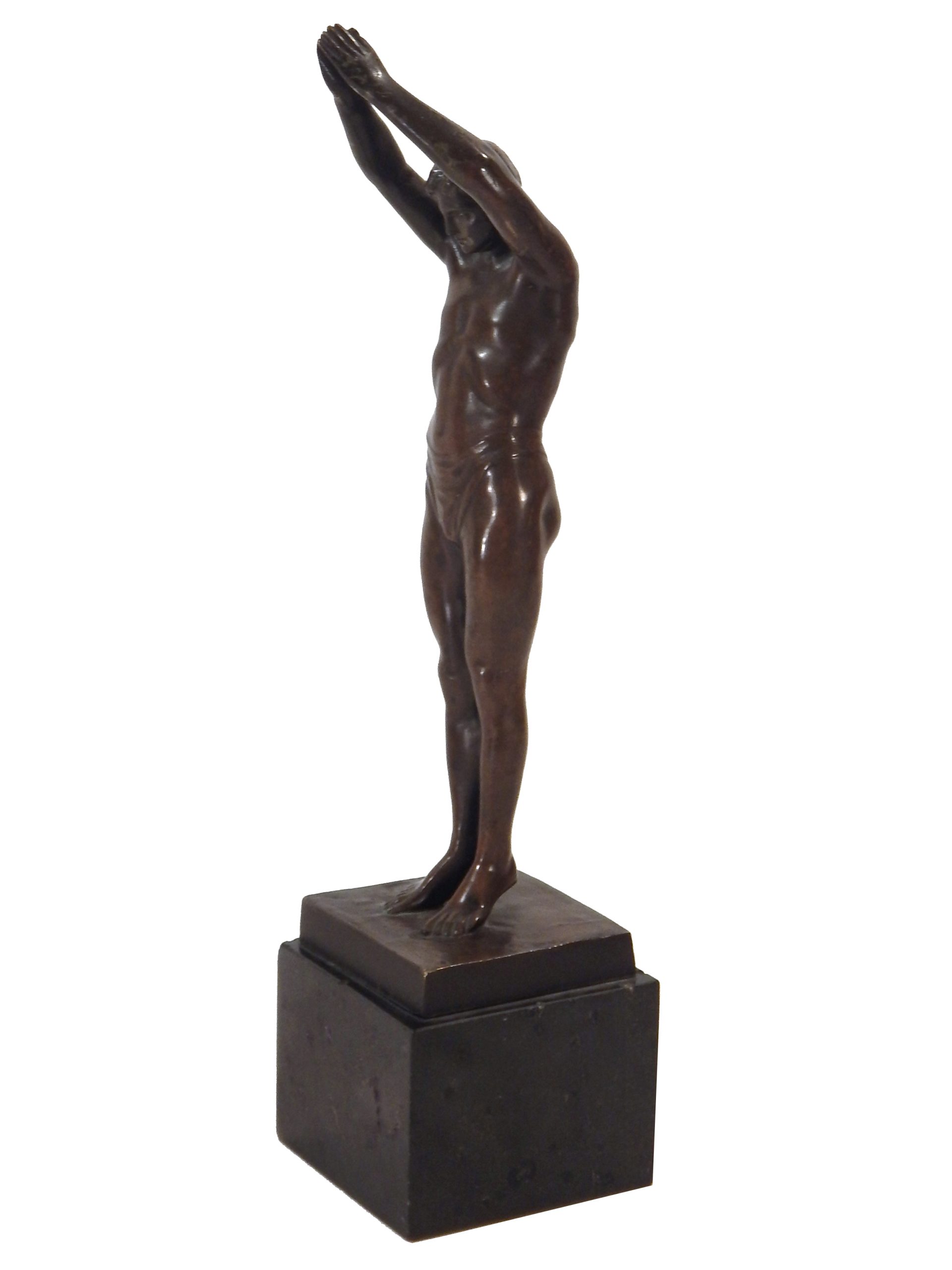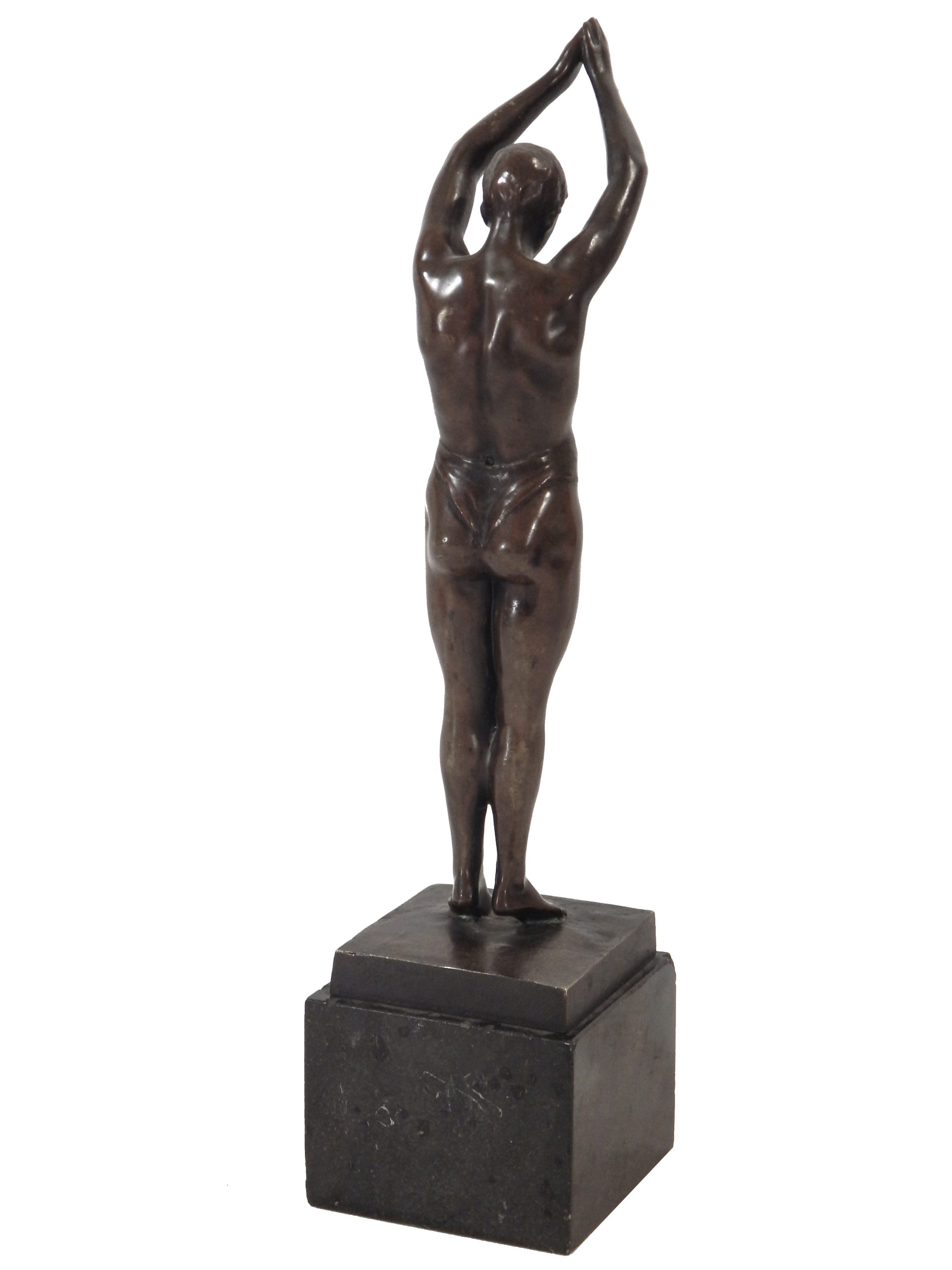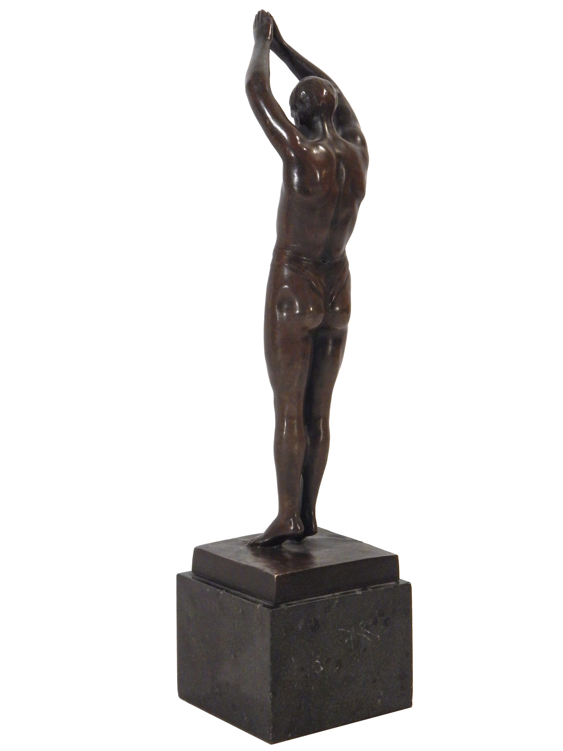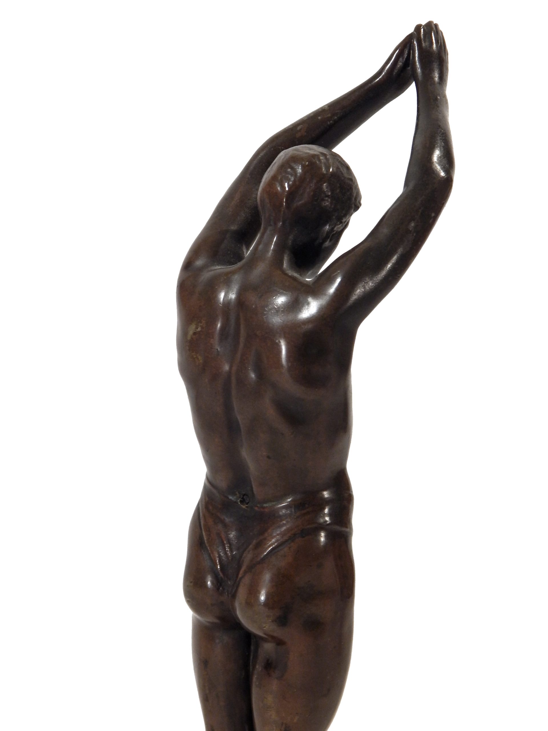 Antique Bronze Sculptural Diver Figure on Marble Base