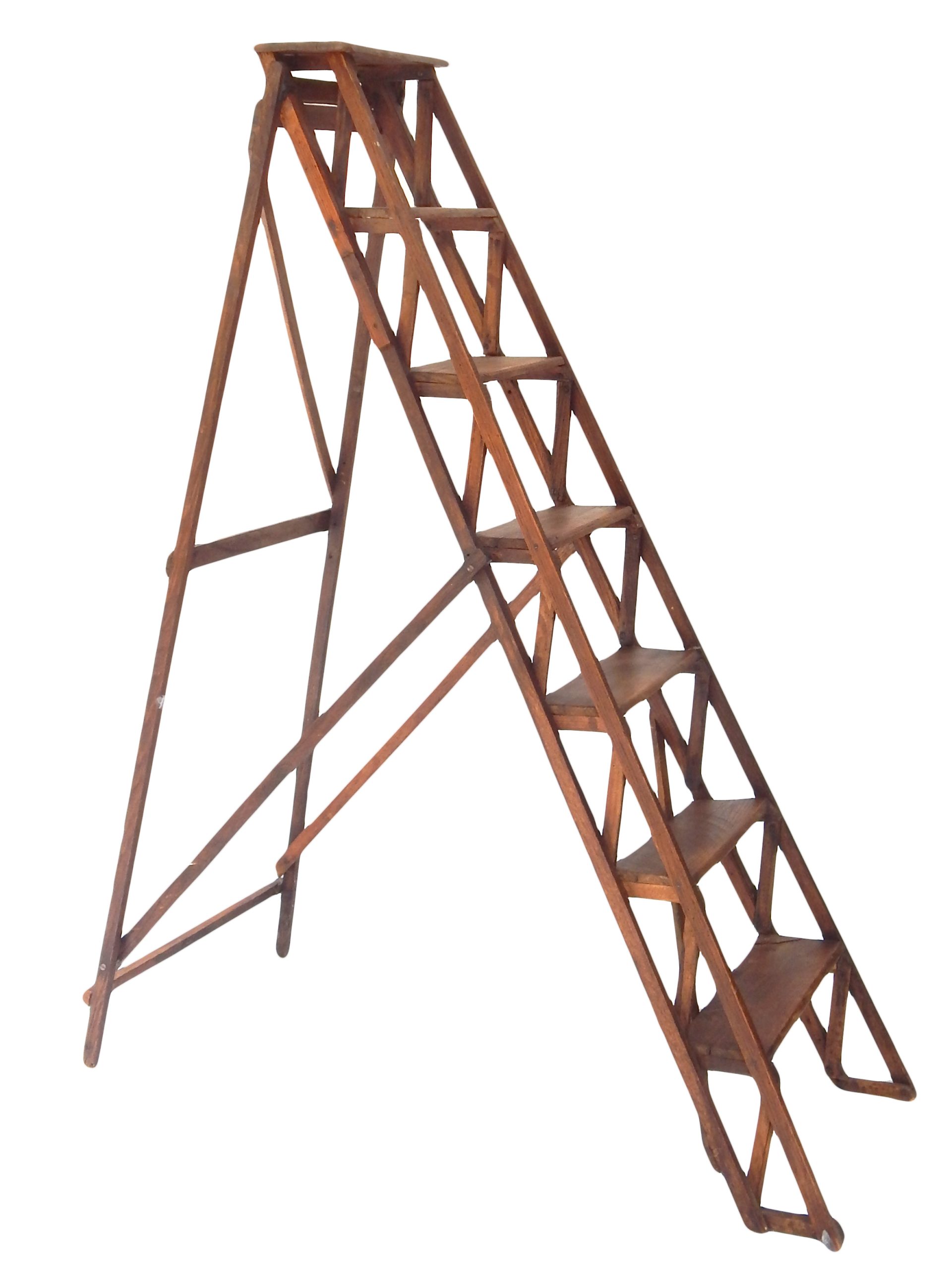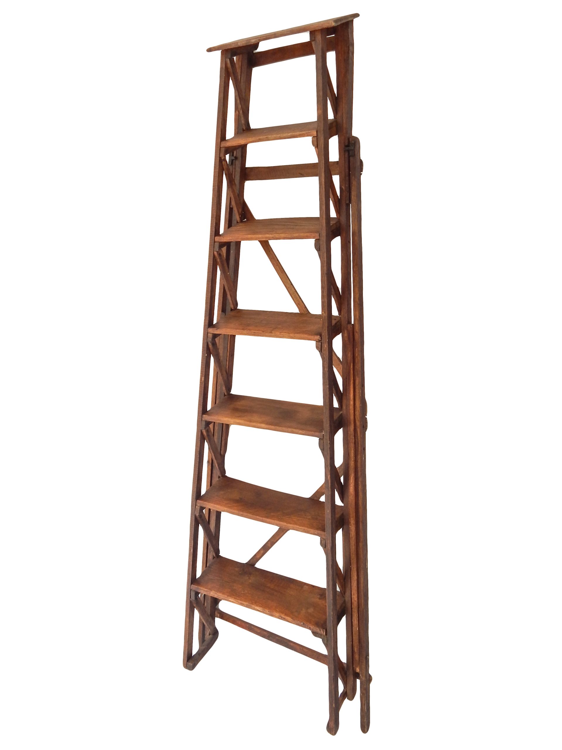Early 20th Century, Seven Step, Antique Folding Library Ladder
