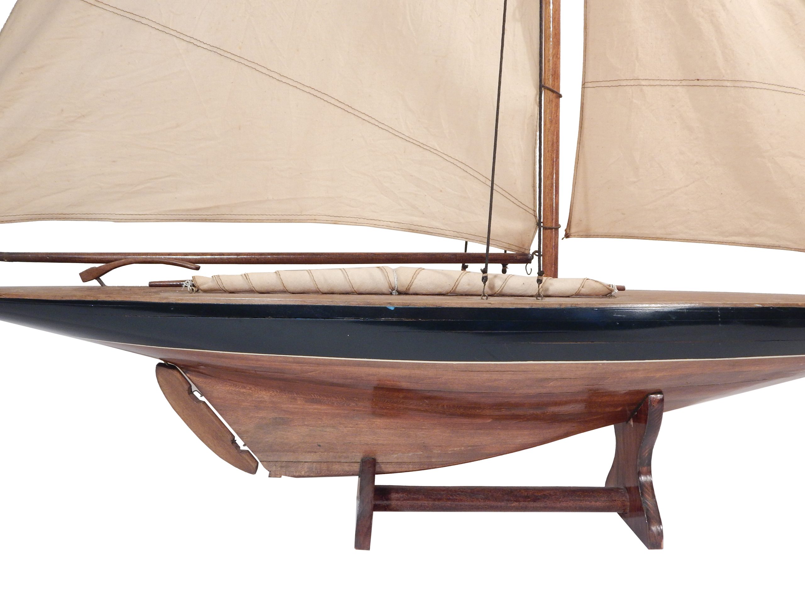 Beautiful Antique Model Sailboat with Wood Base