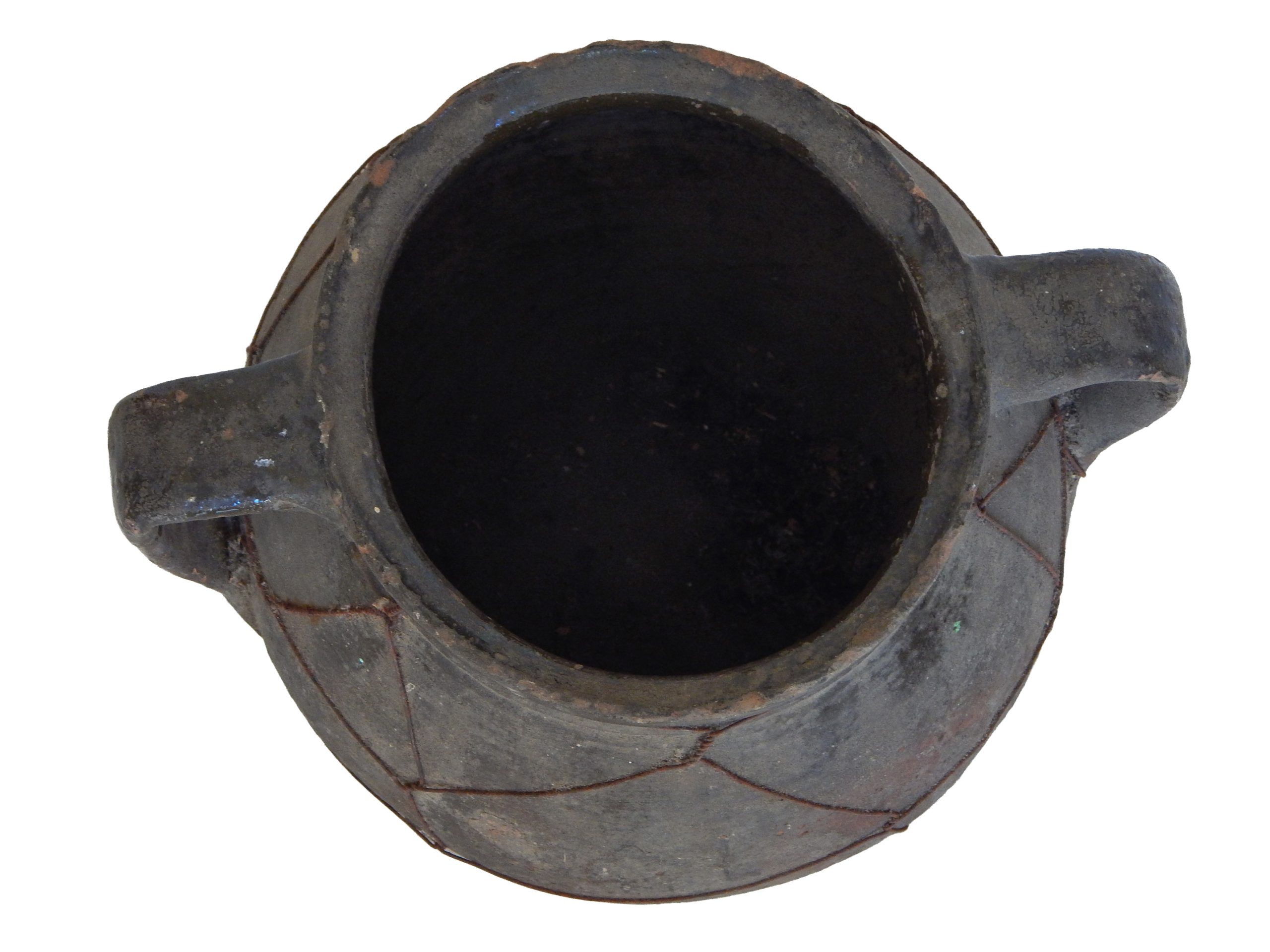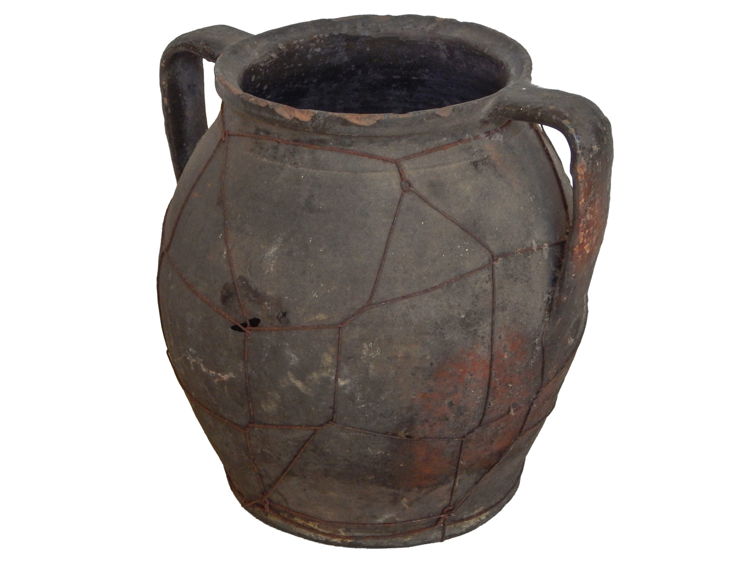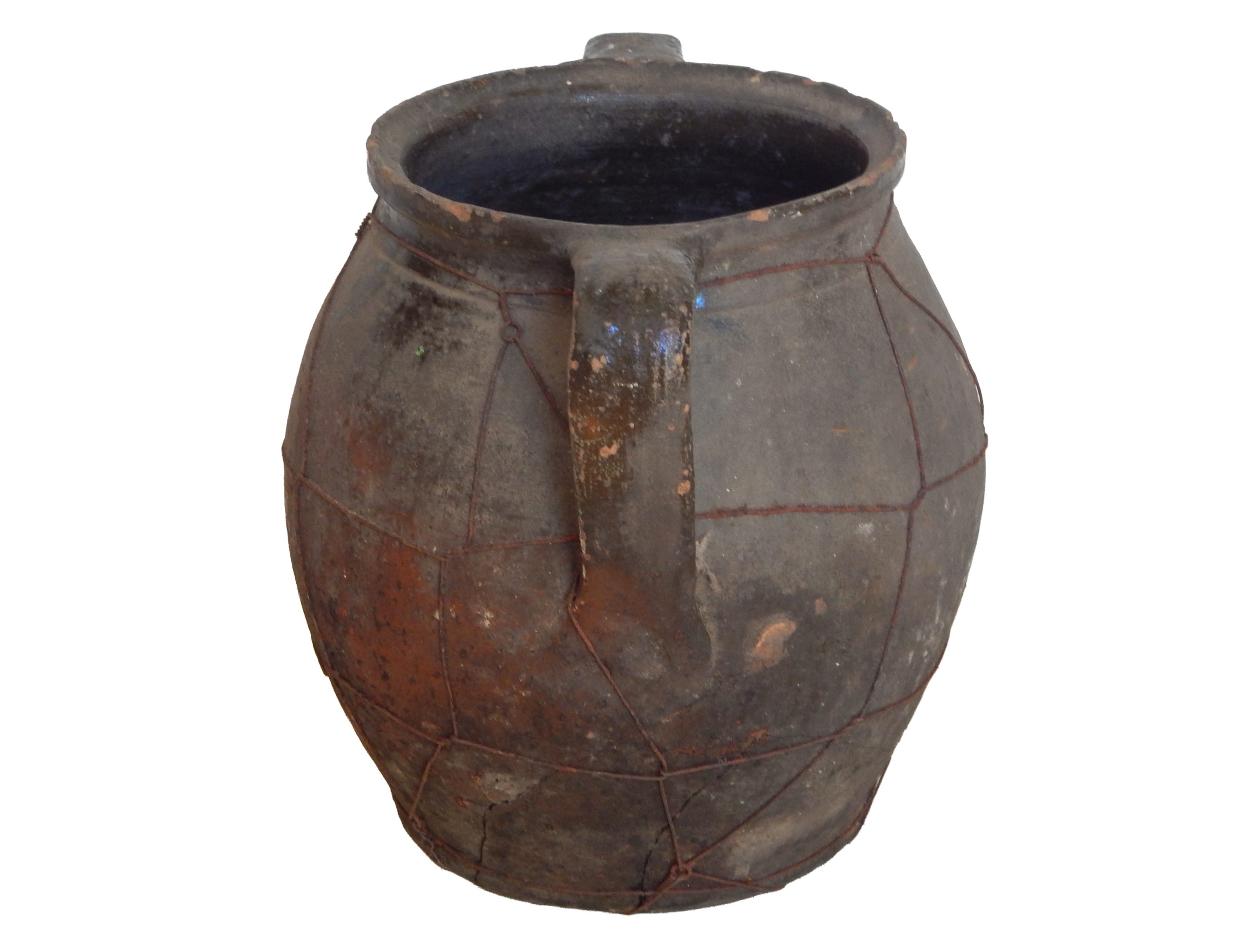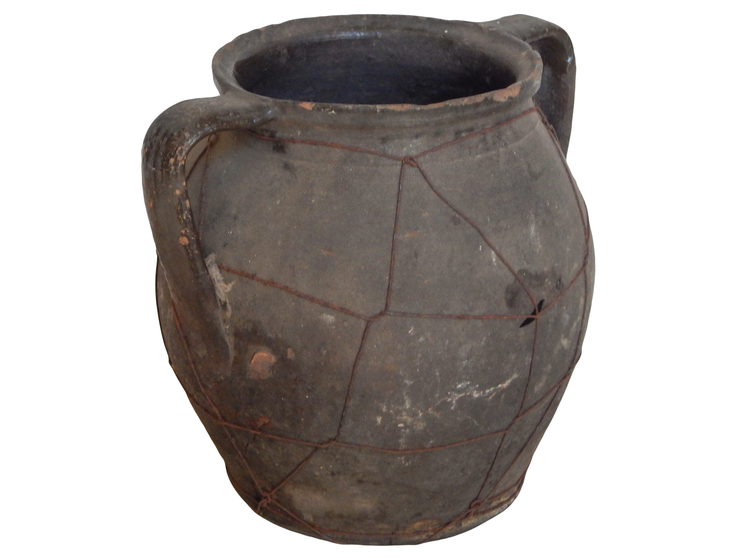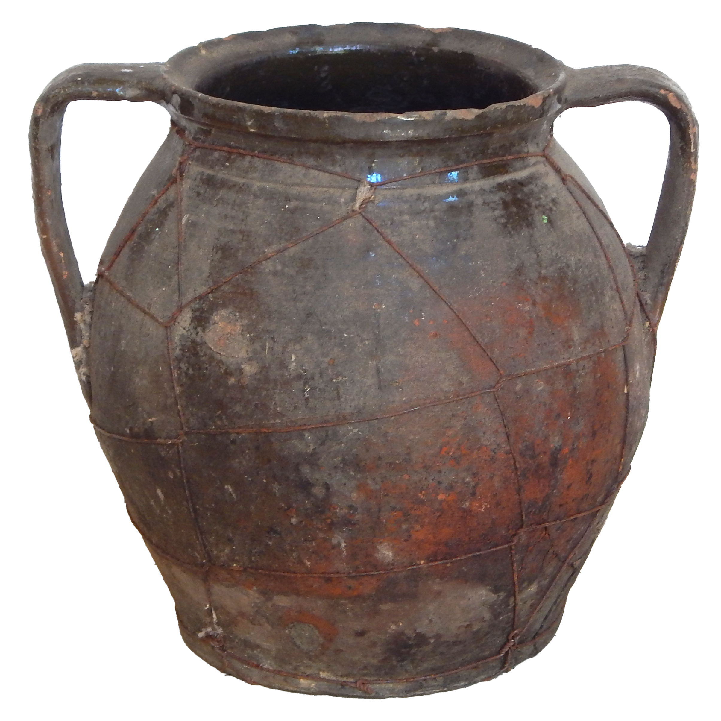 Early Turkish Double-Handled Vessel with Dark Glaze & Wiring Around Body