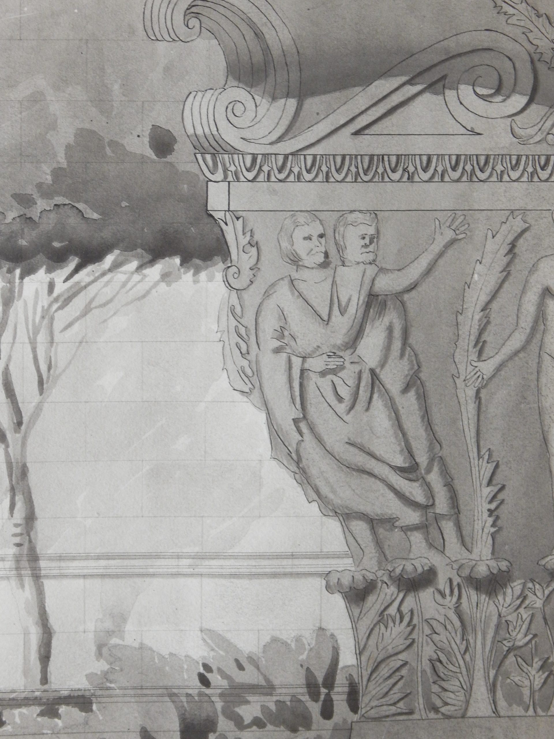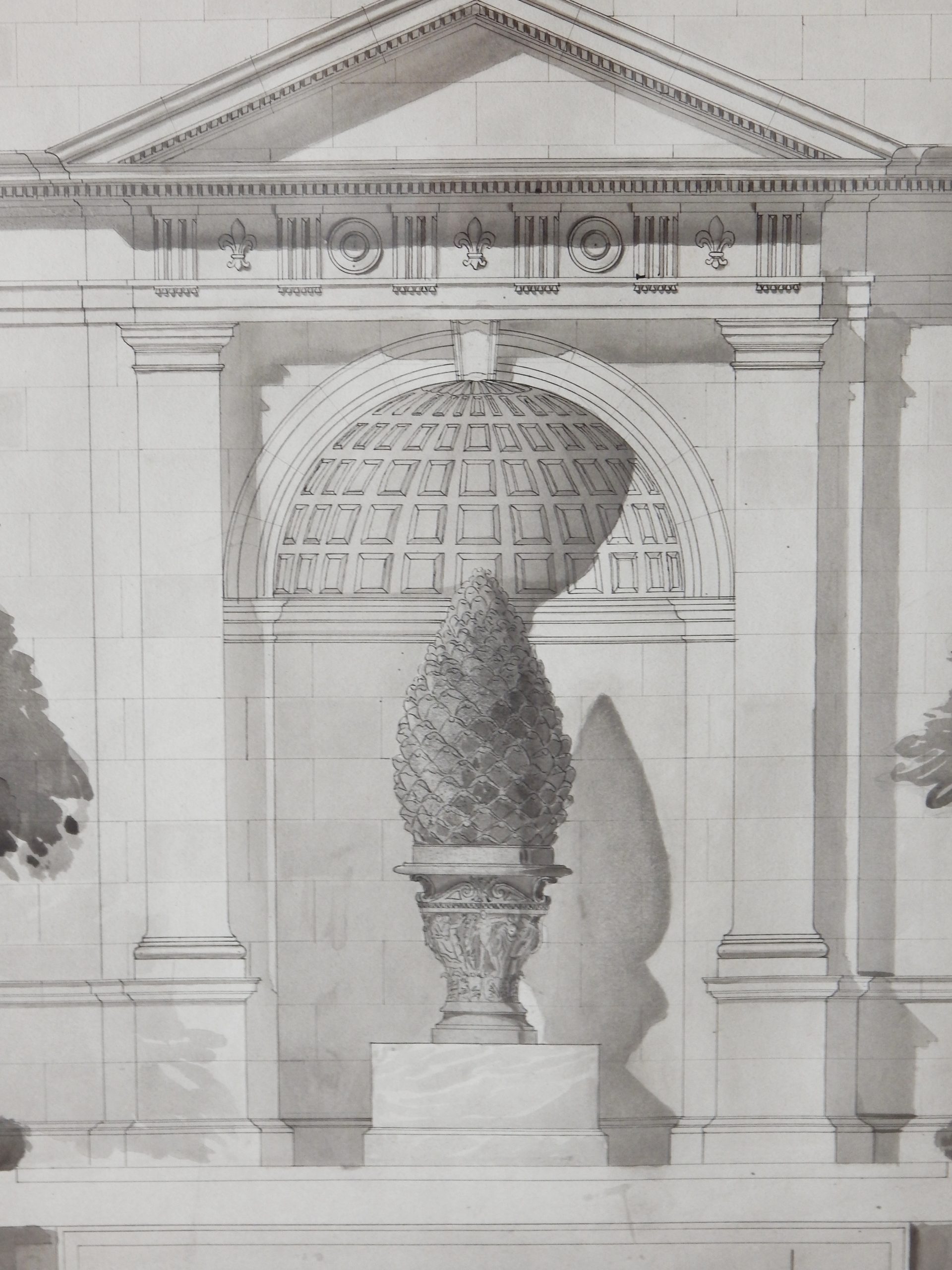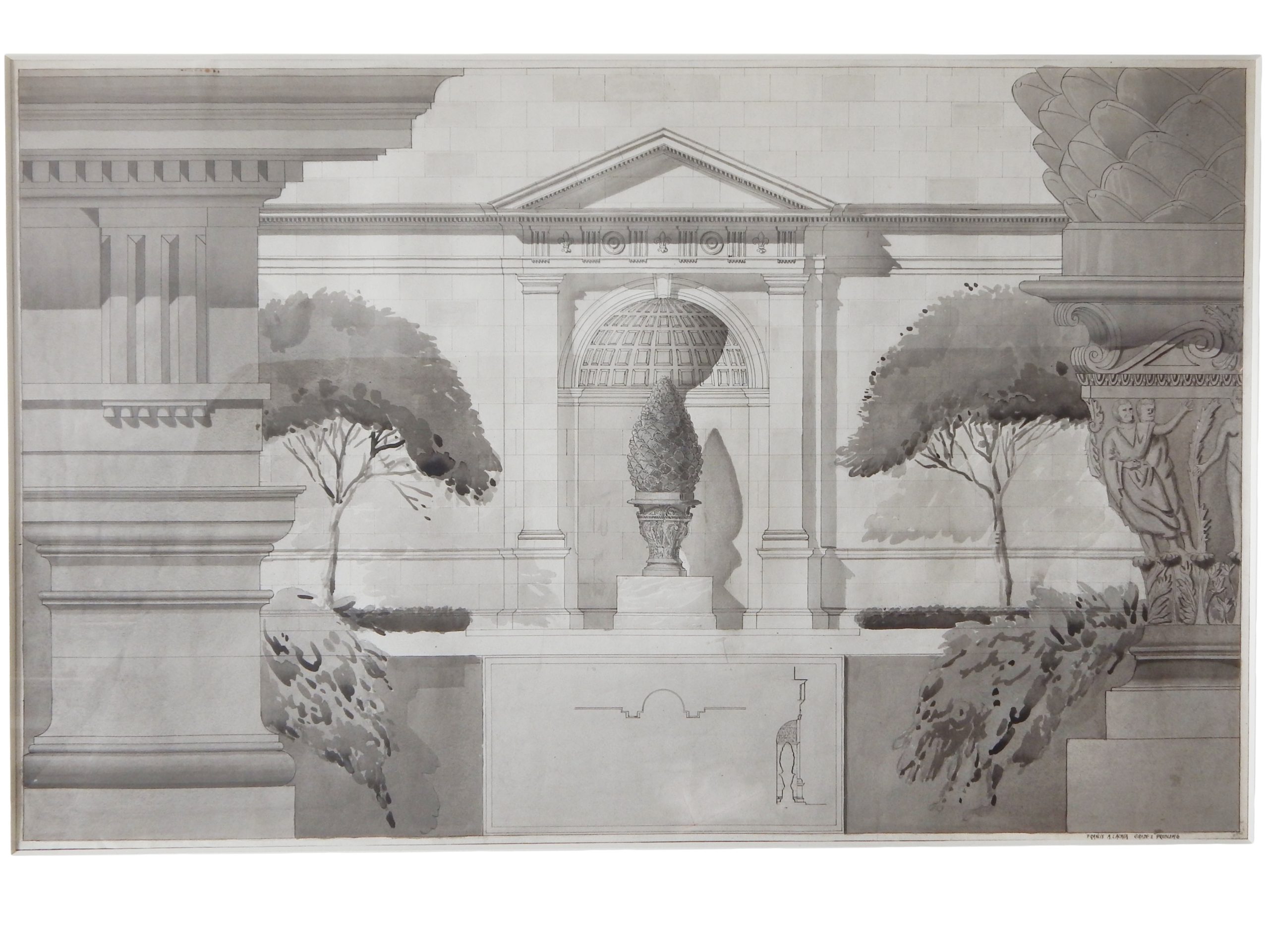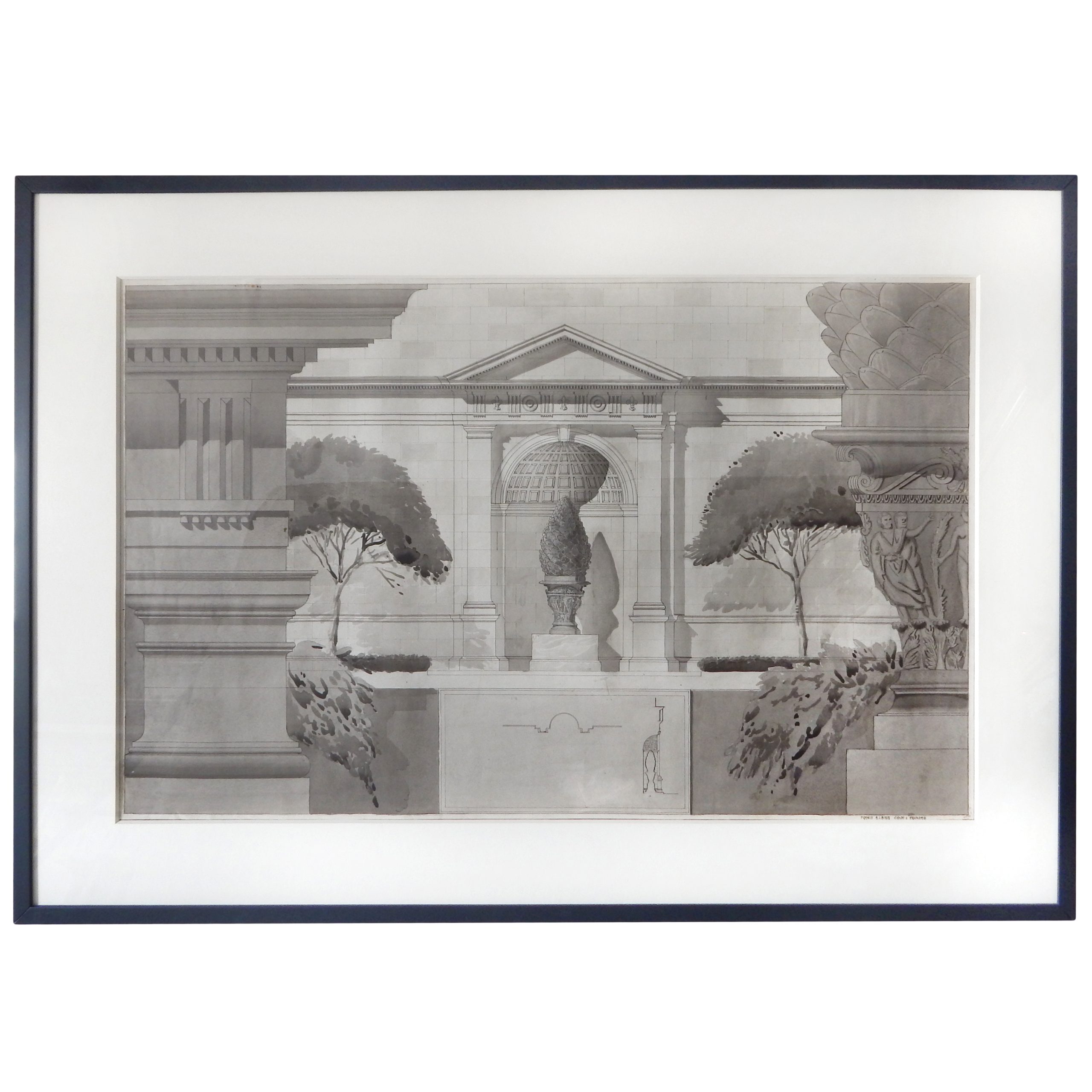 Early 20th Century, Architectural Drawing by Francis A. Lacava, Framed Behind Glass