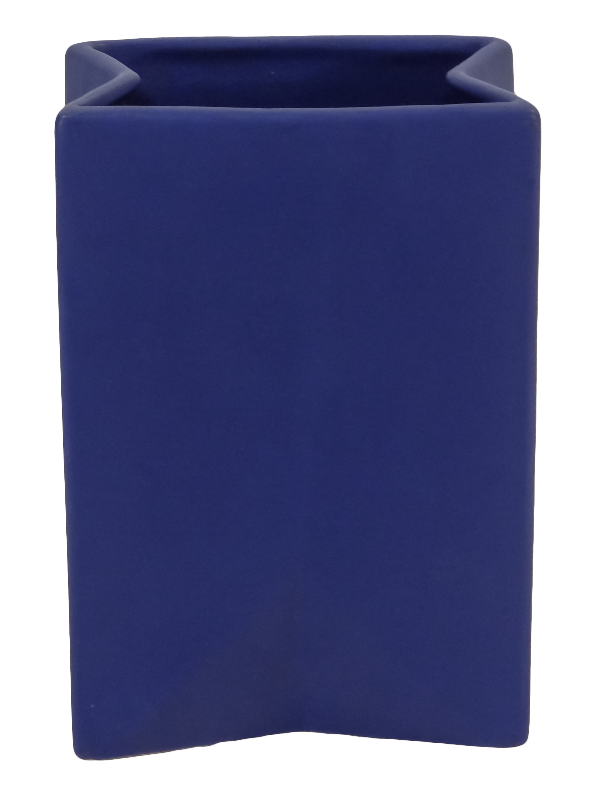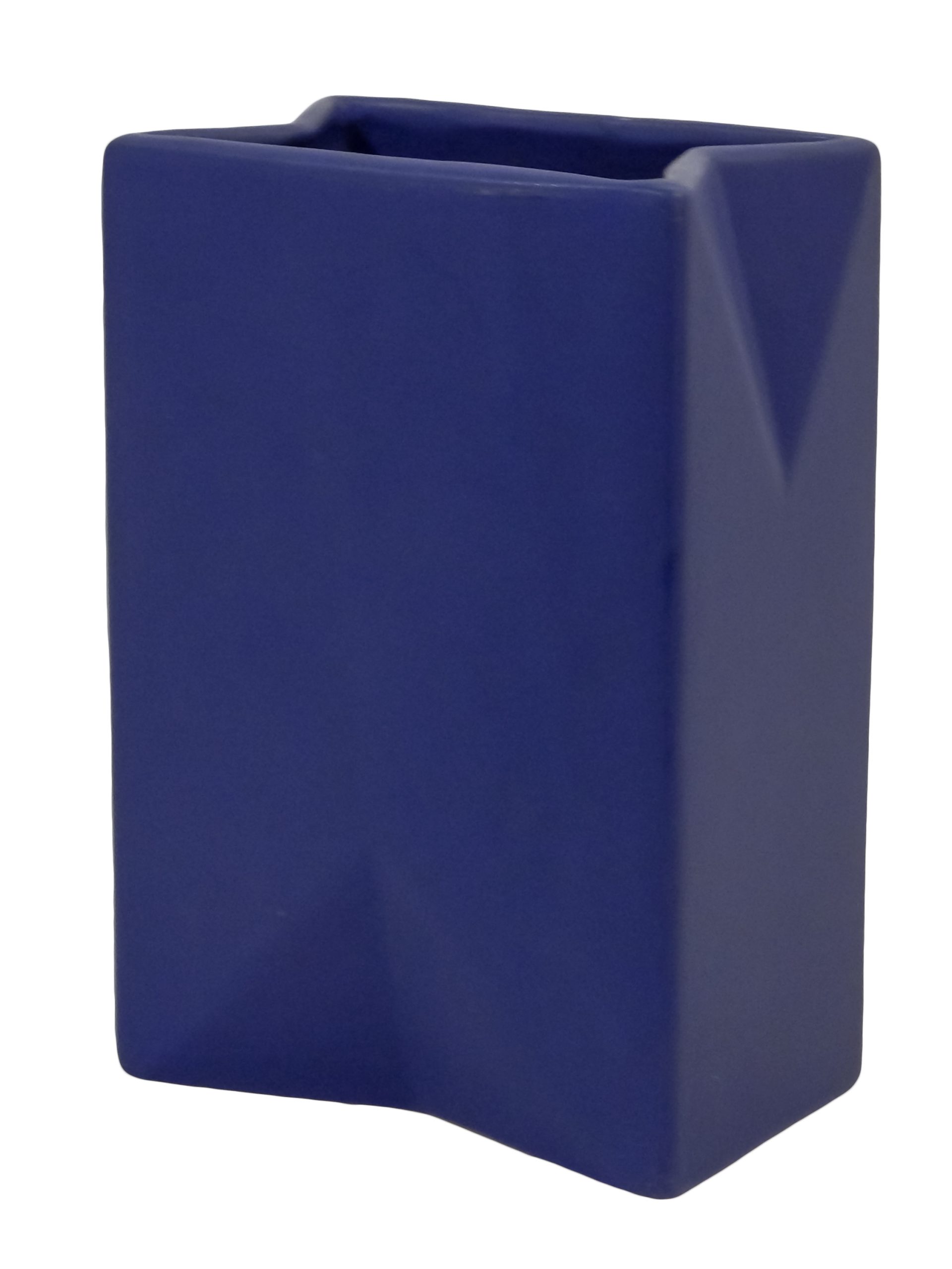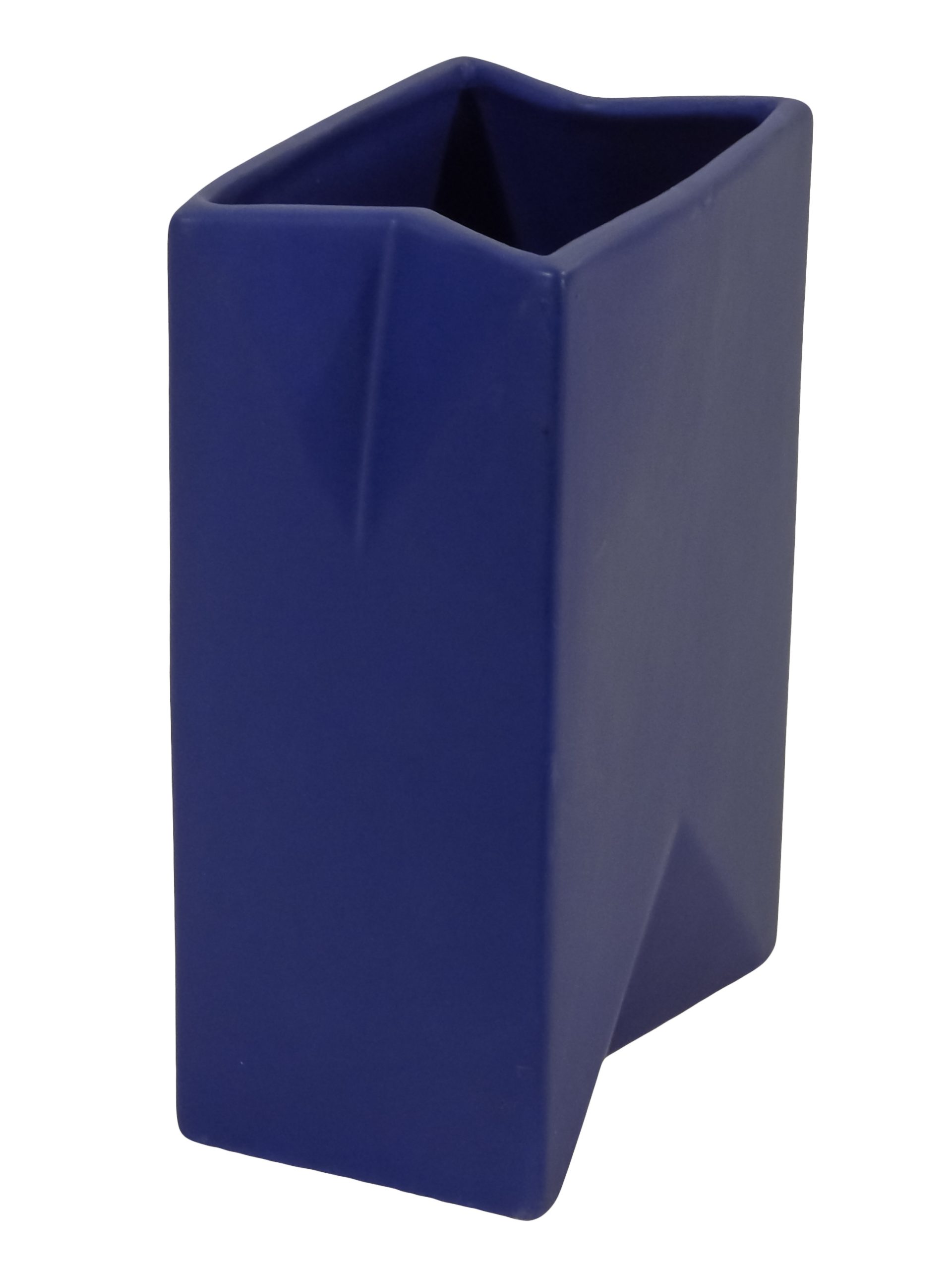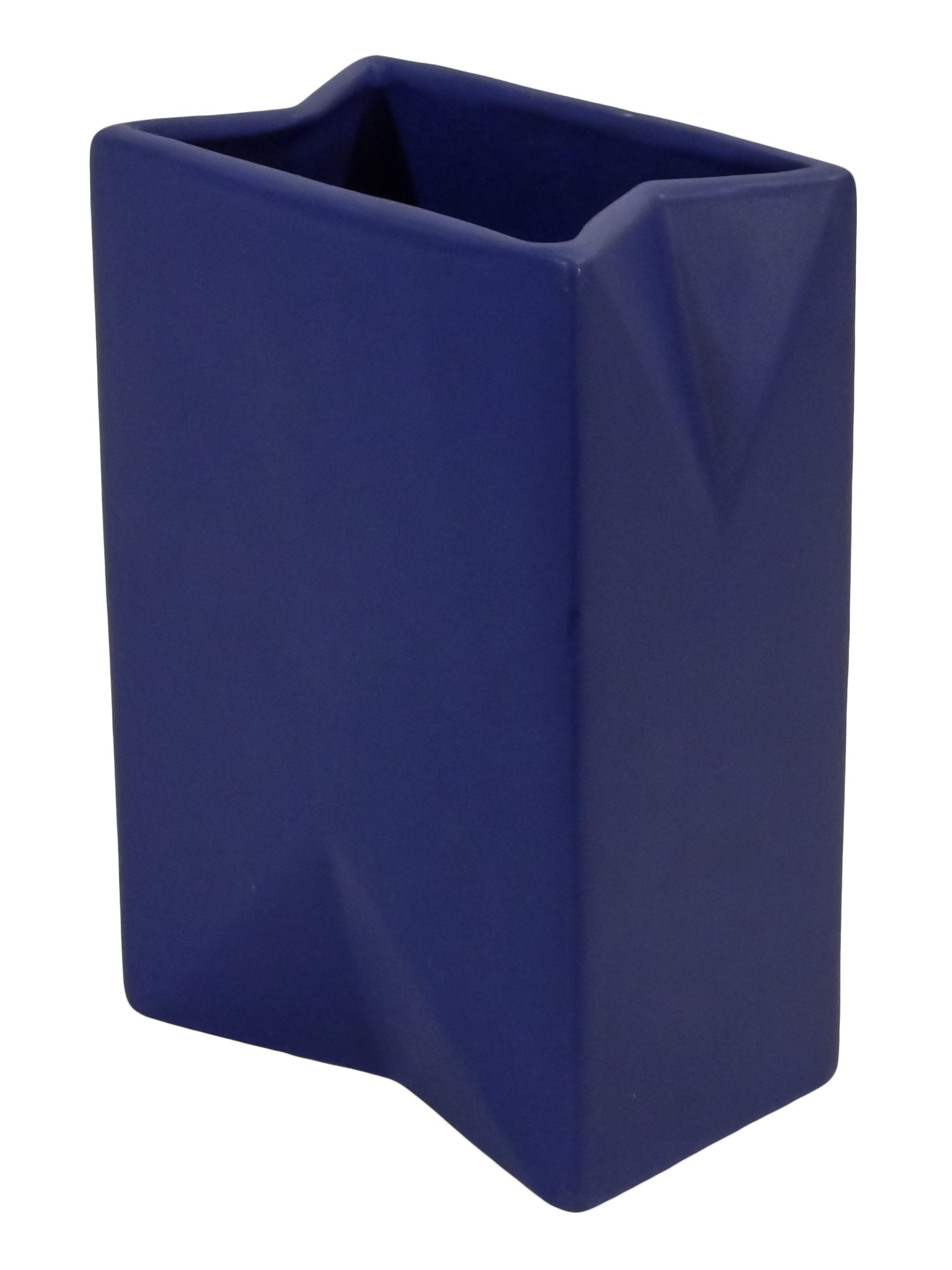 Mid Century, Paper Bag Shaped, Ceramic ASA Vase in Deep Blue Matt Finish