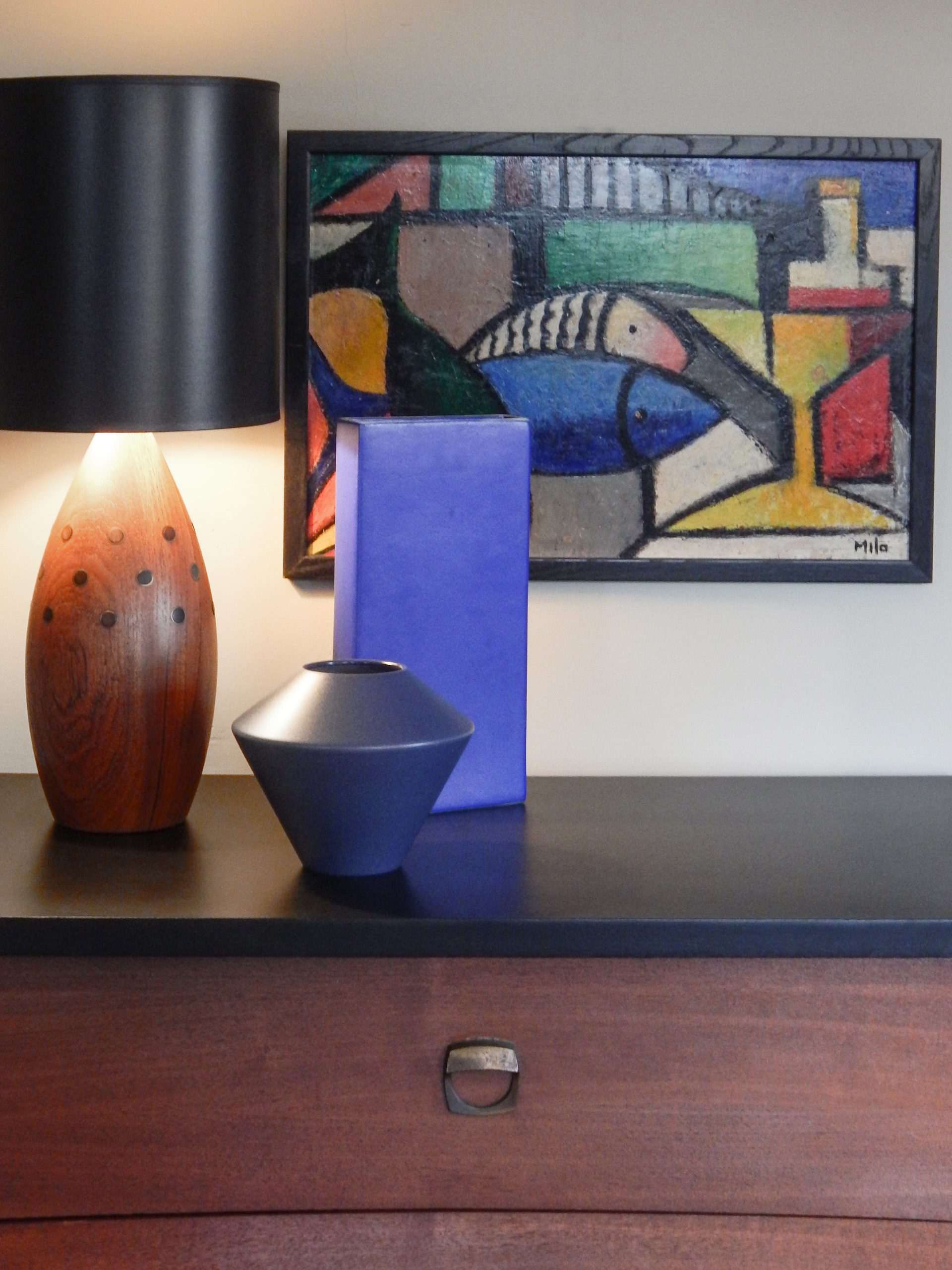 Tall Mid Century Rectangular ASA Vase with Royal Blue, Matt Finish
