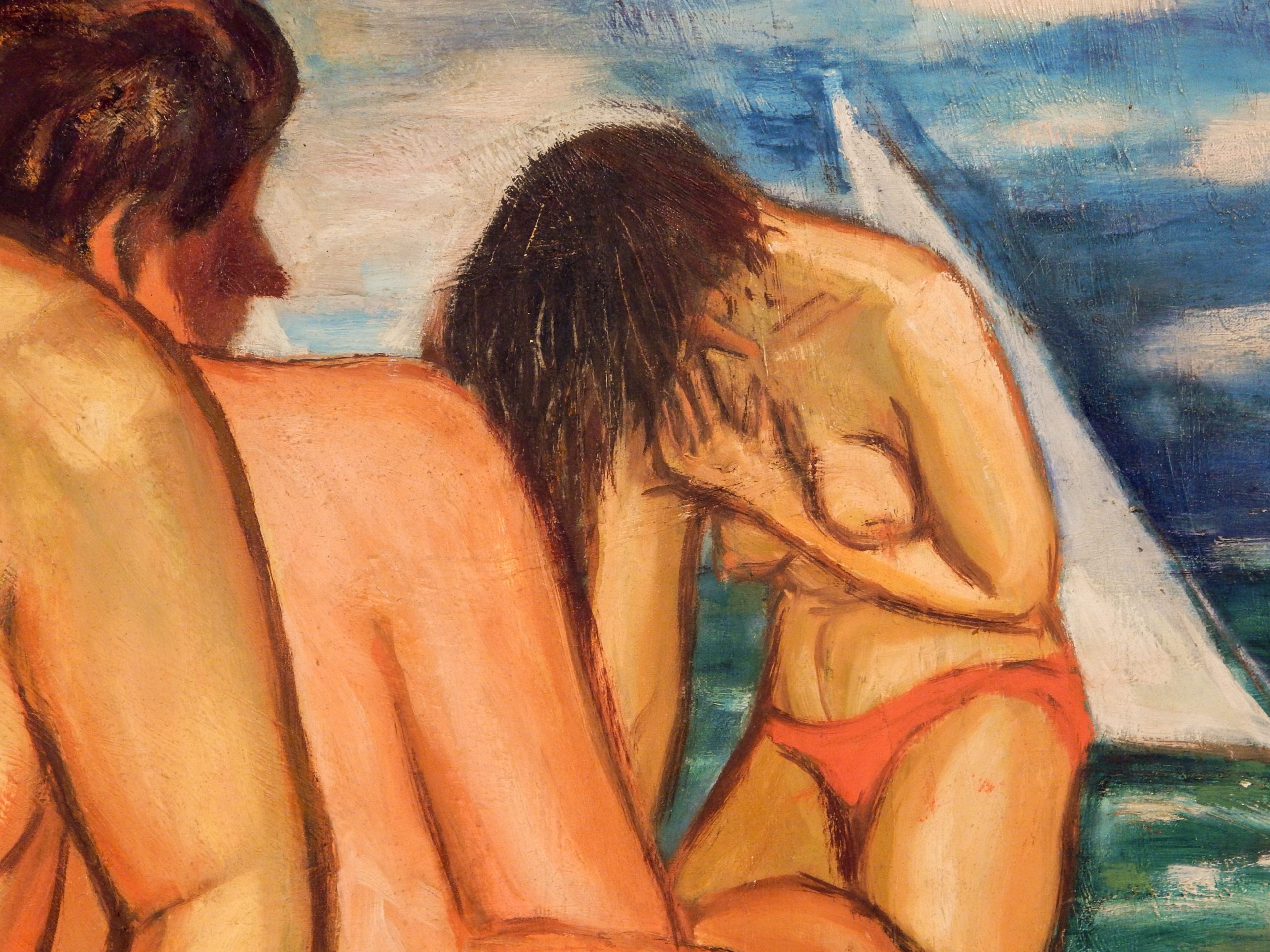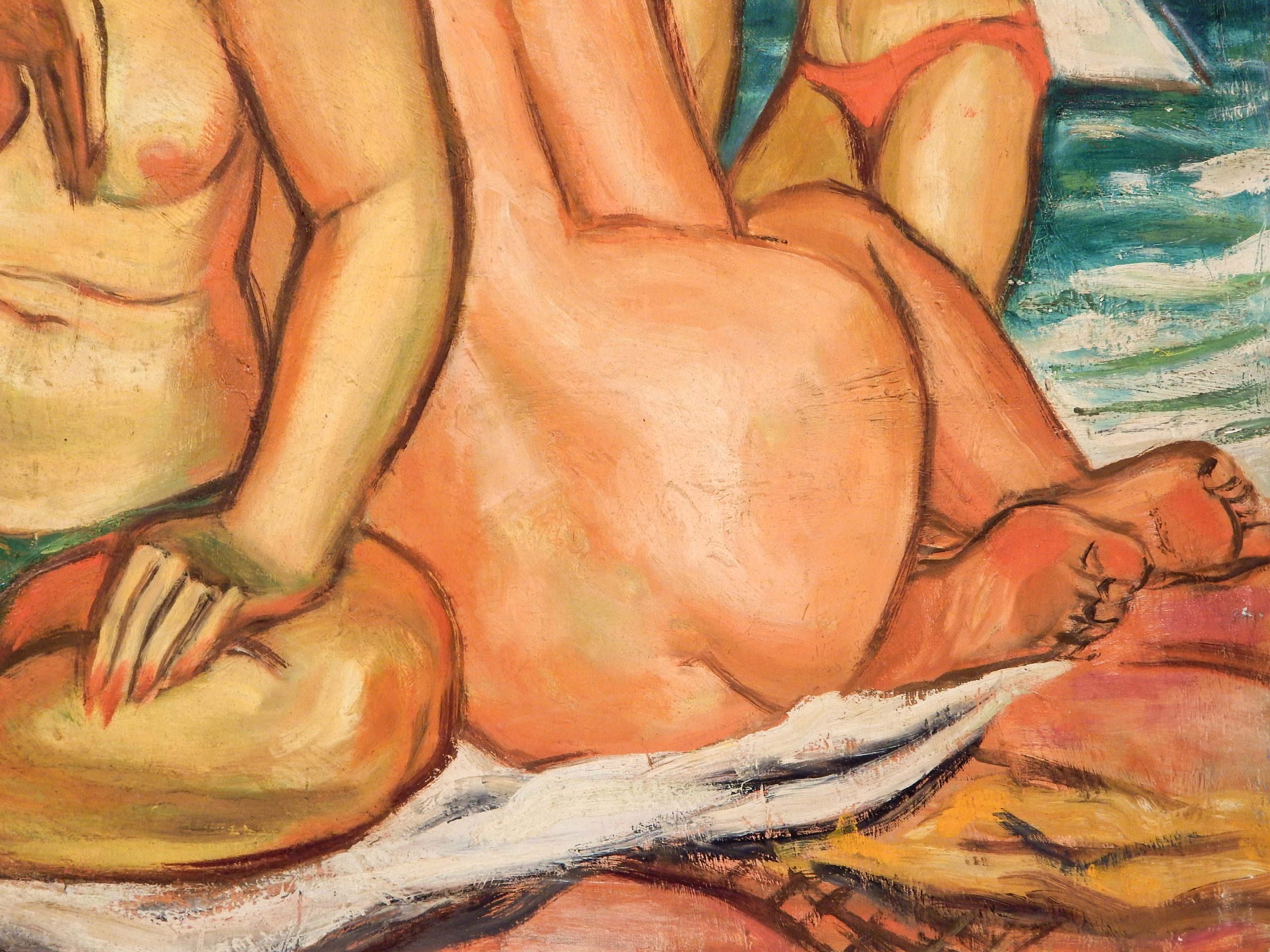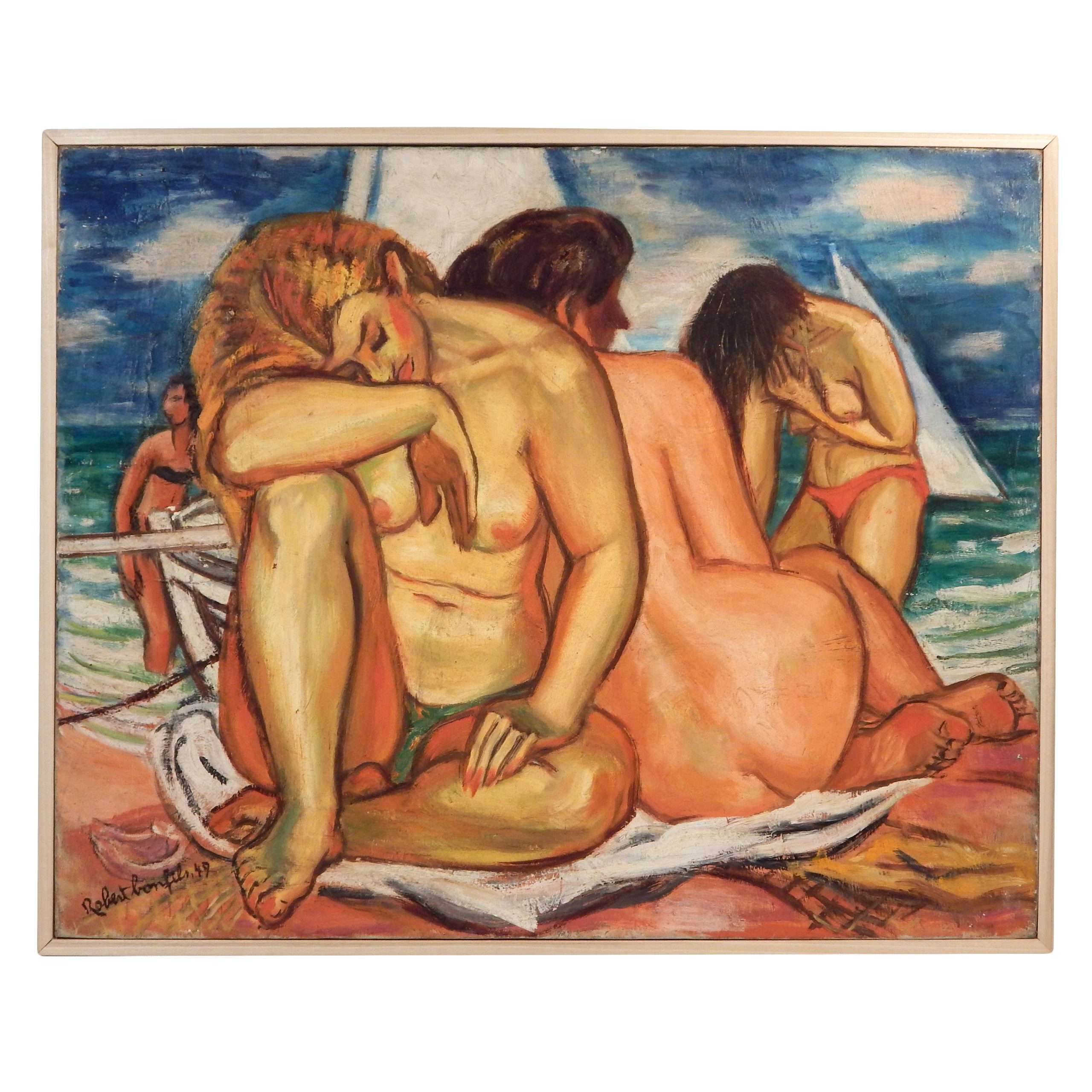 Colorful Beach Scene with Four Women by French Illustrator, Painter & Designer, Robert Bonfils (1886-1972)