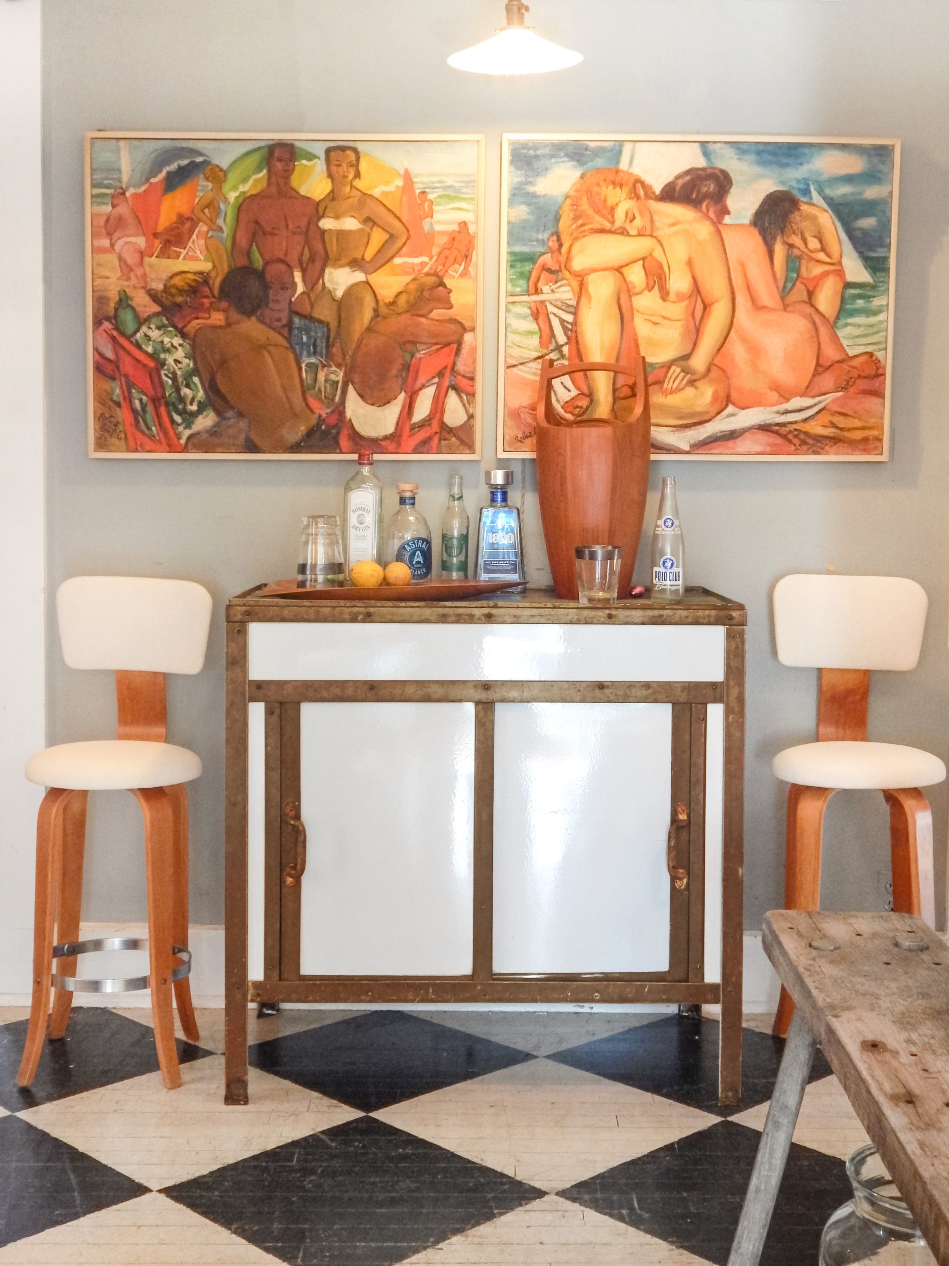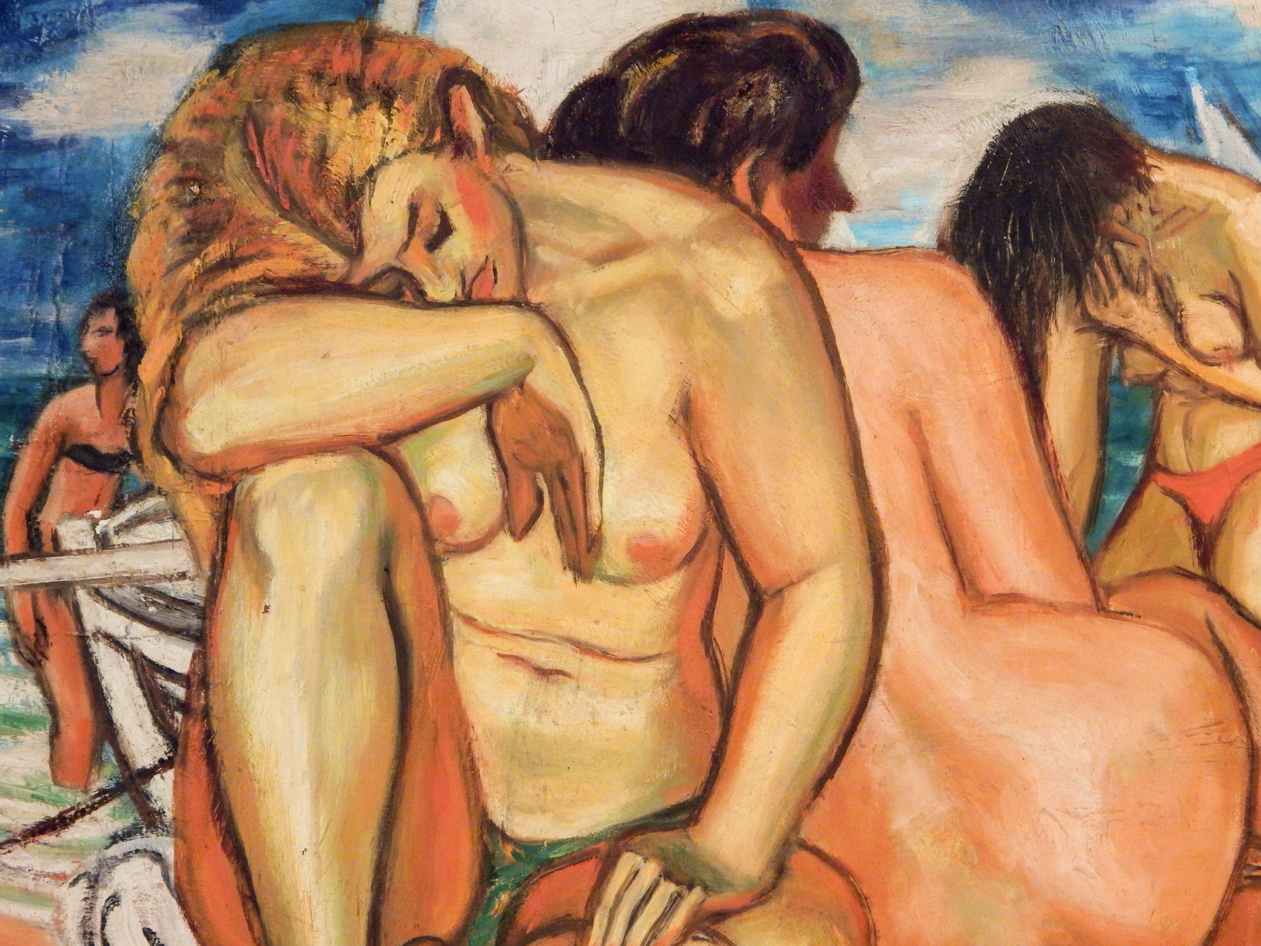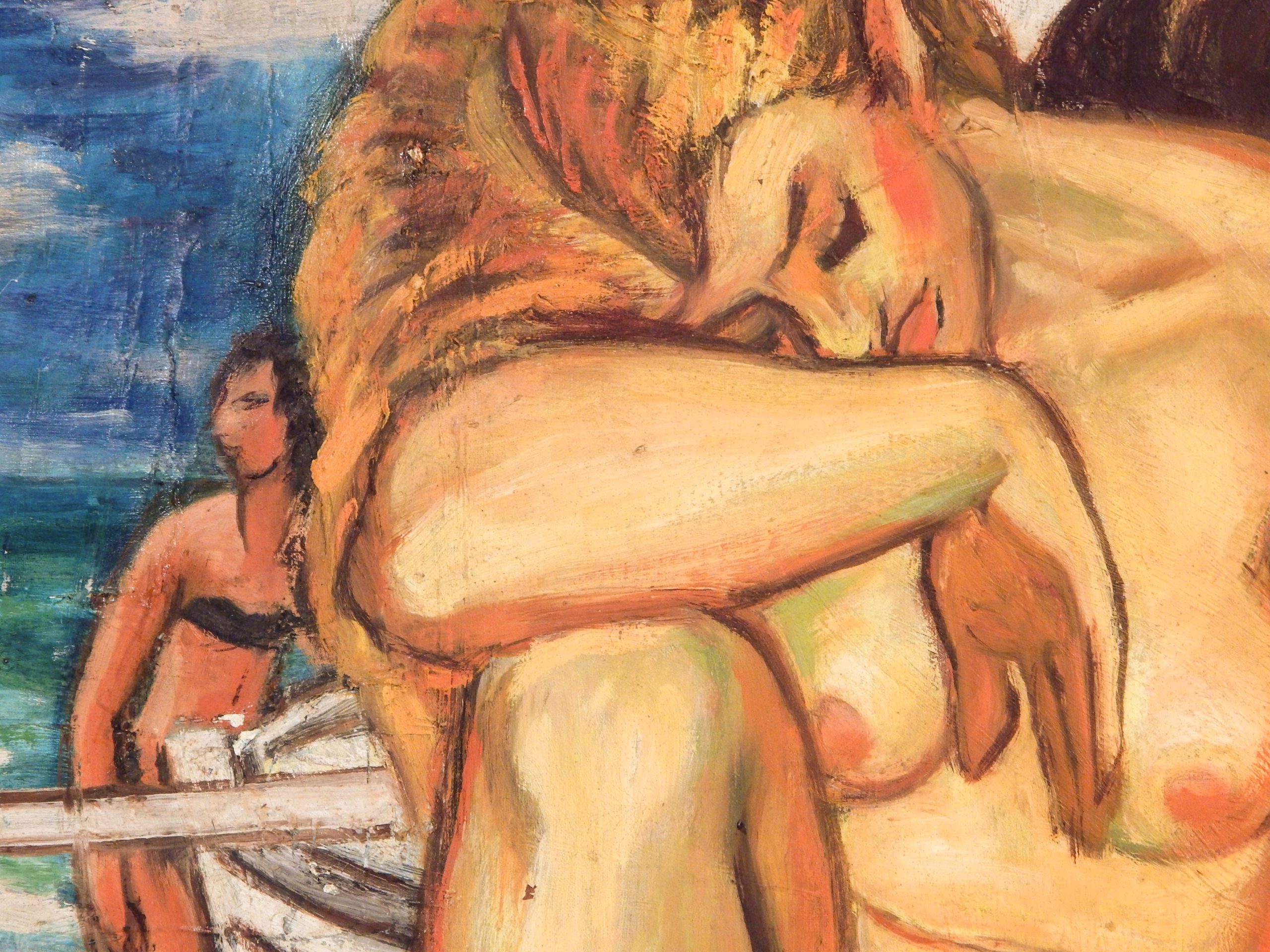Colorful Beach Scene with Four Women by French Illustrator, Painter & Designer, Robert Bonfils (1886-1972)