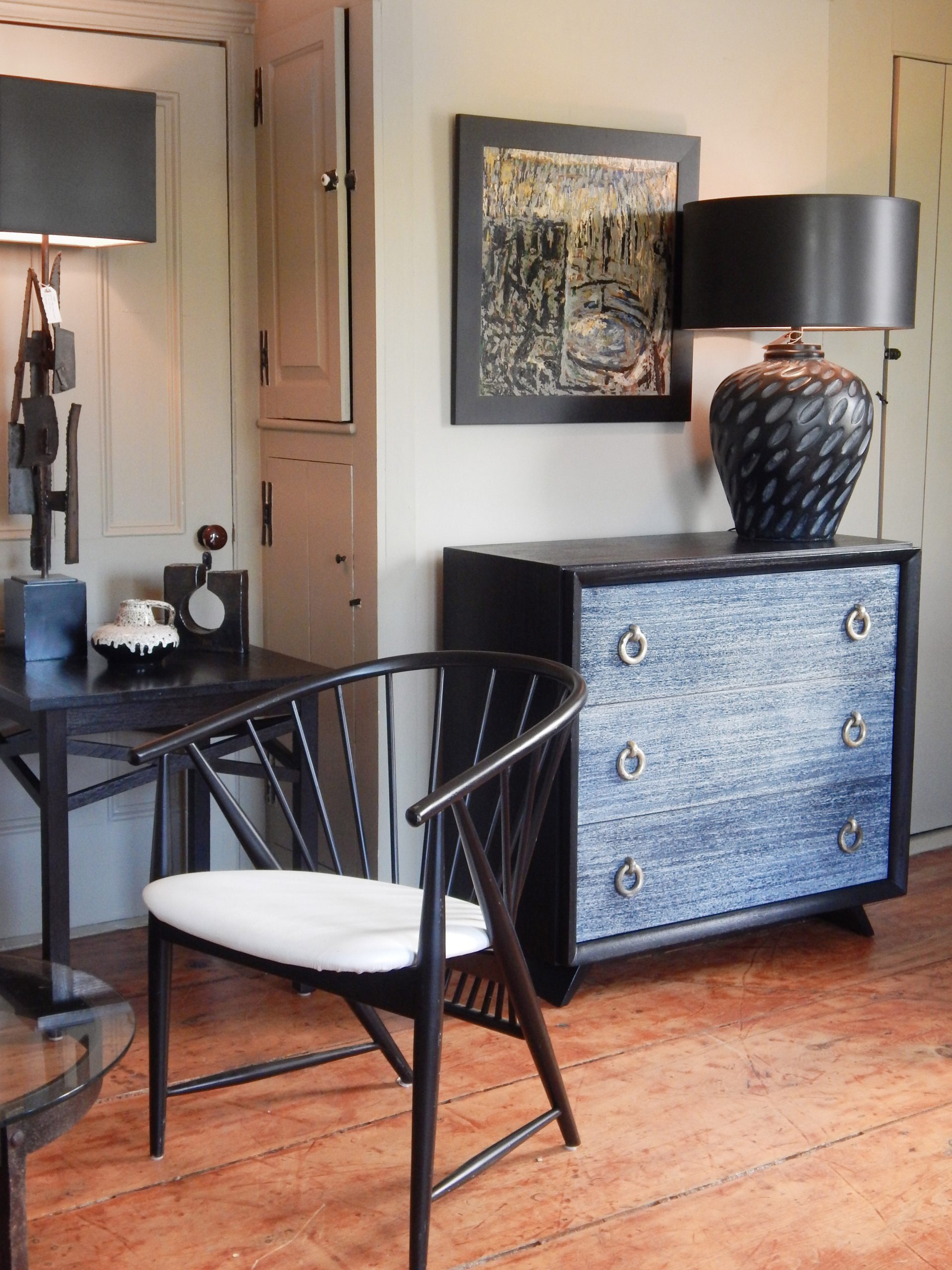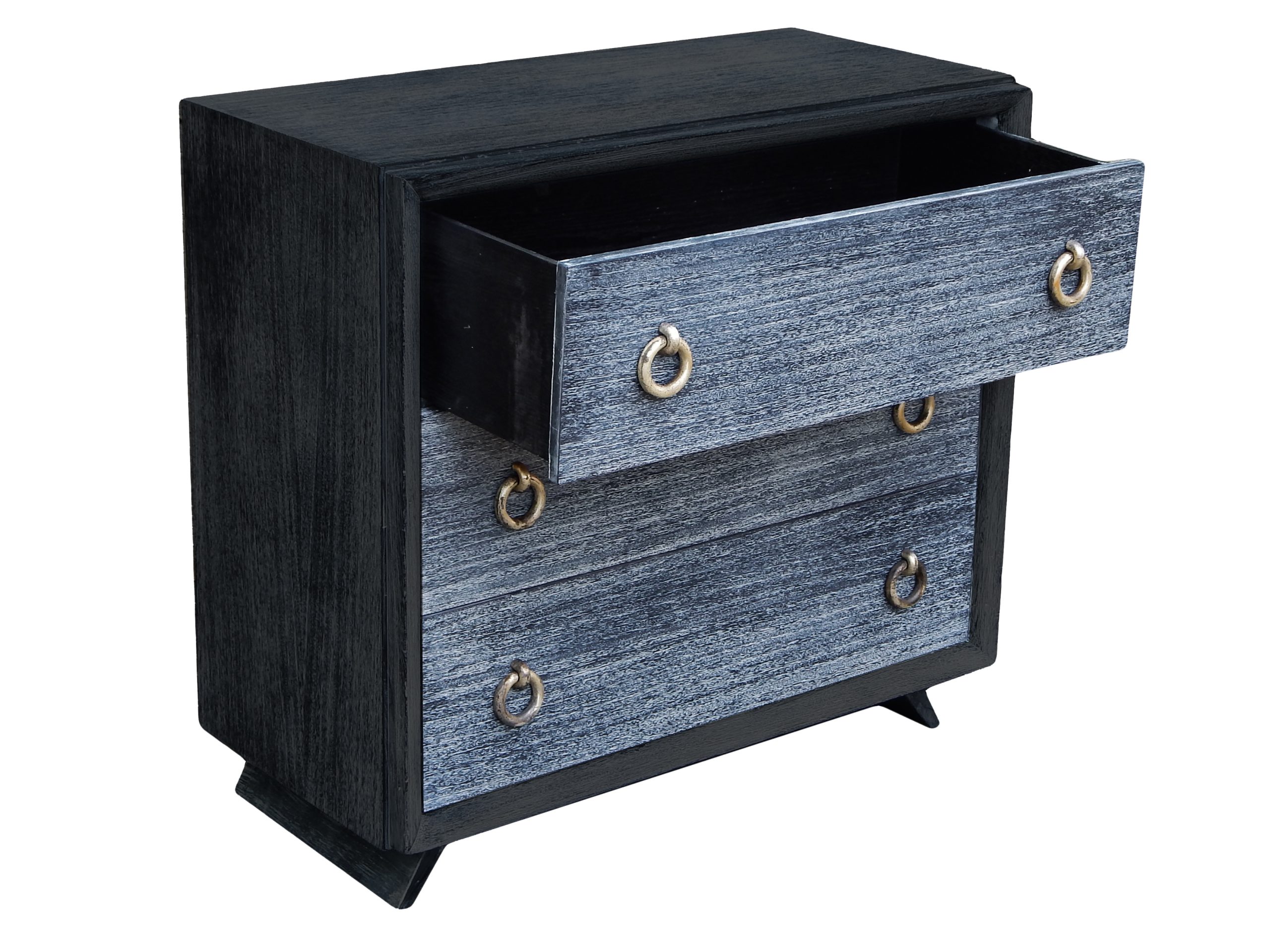 Mid Century, Three-Drawer Dresser with Black Body and Cerused Drawers