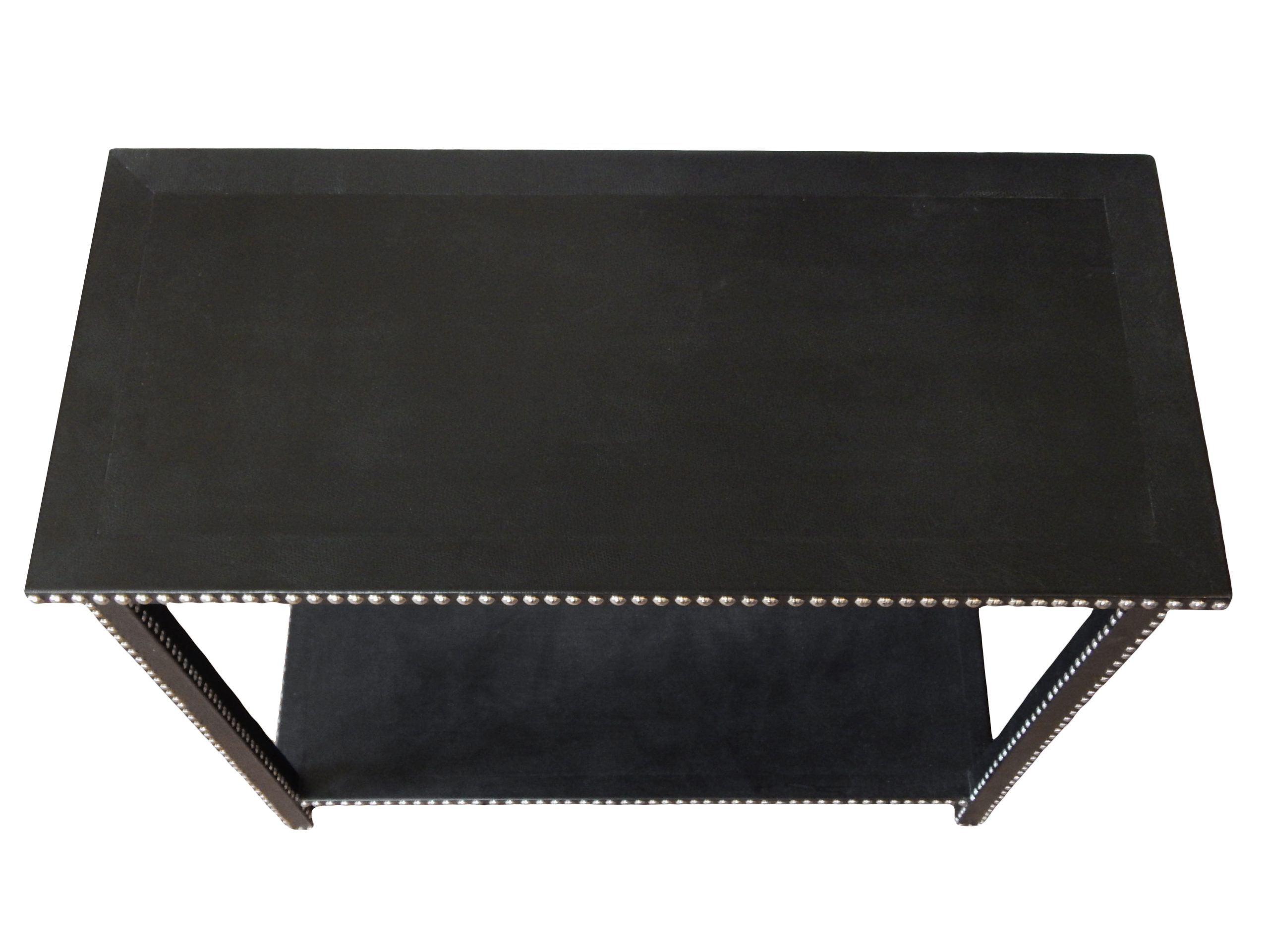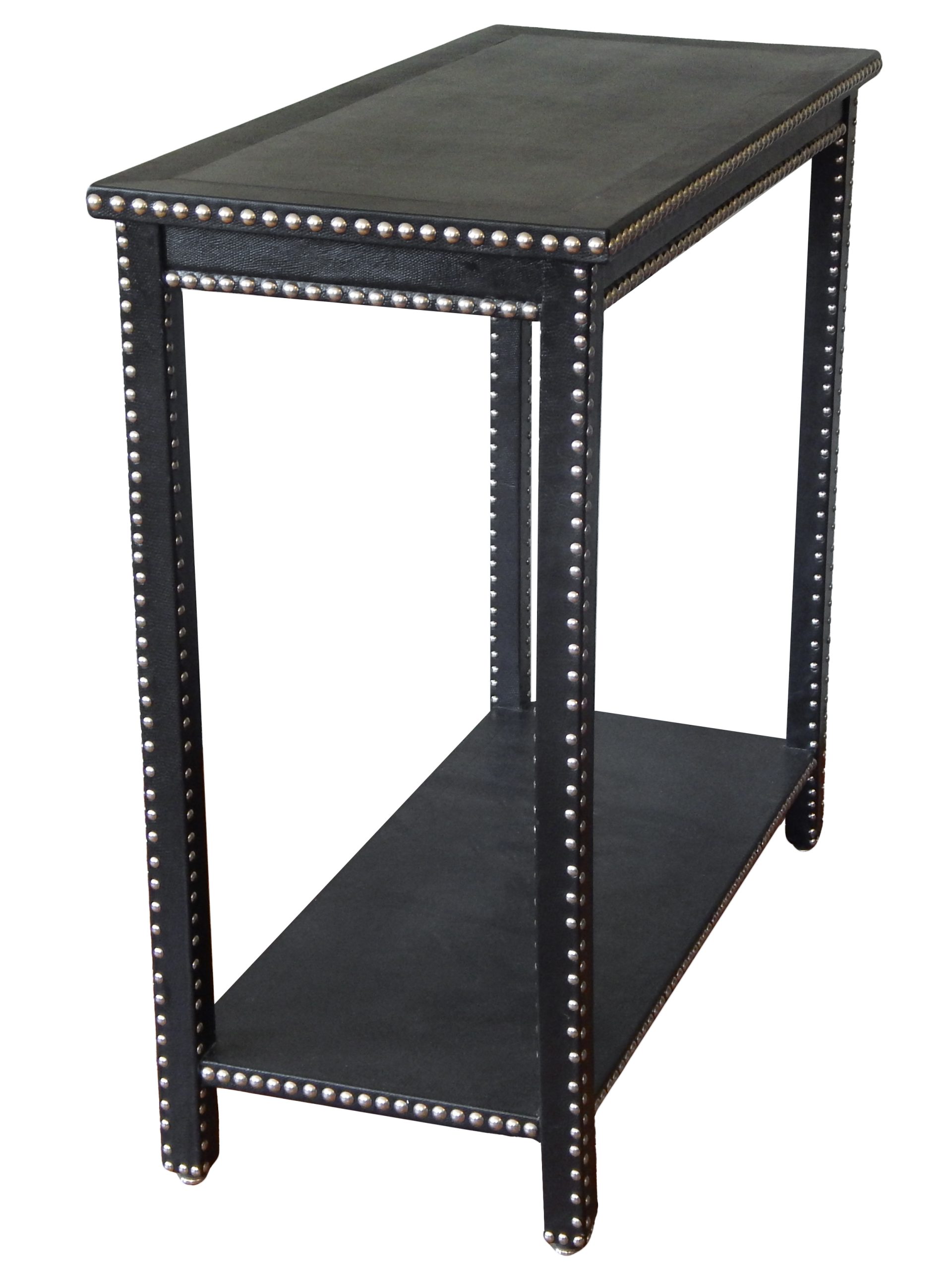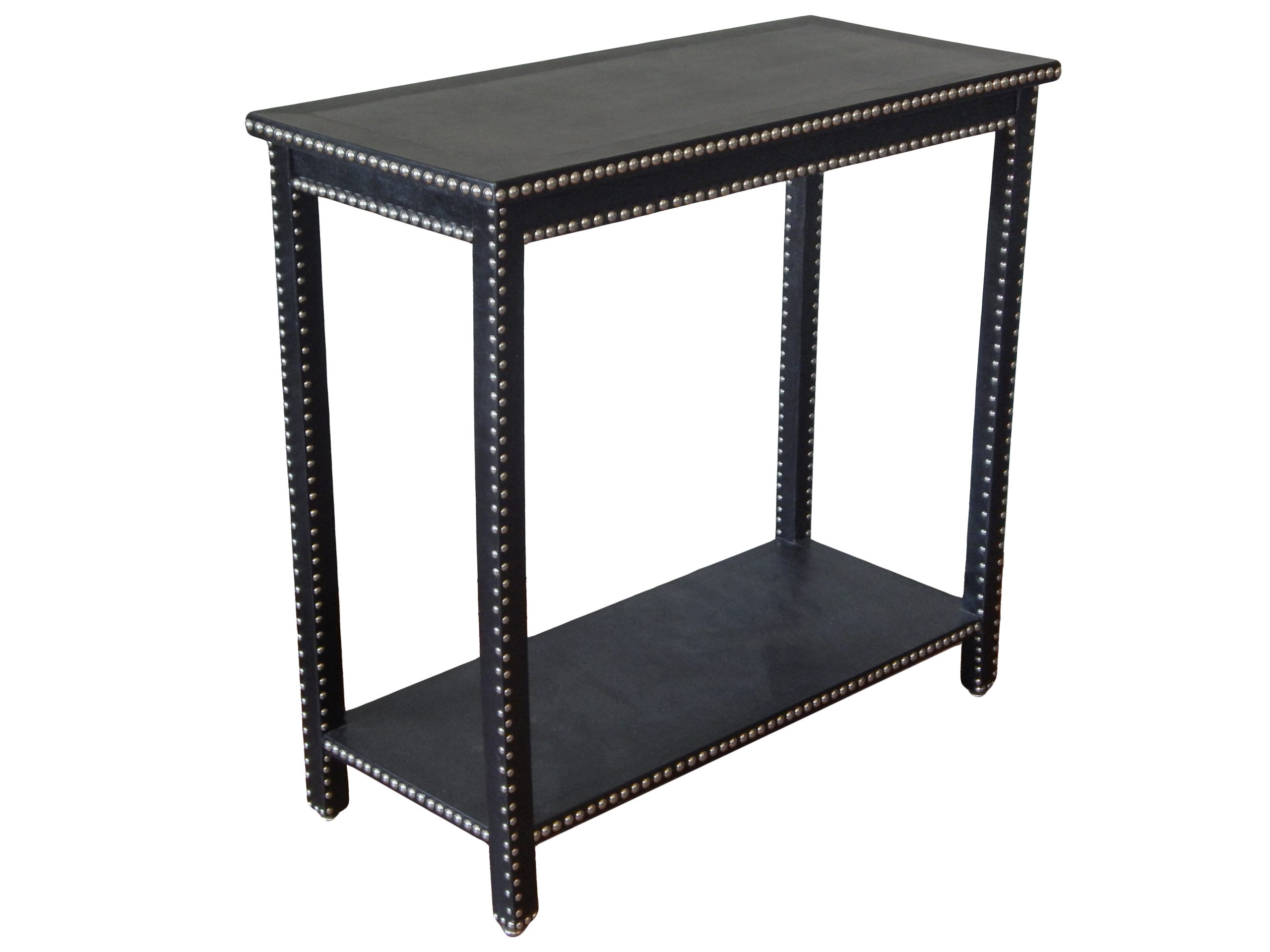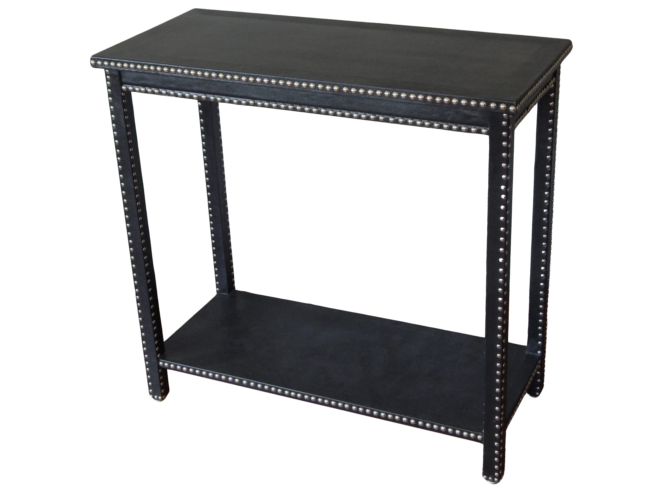 Contemporary, Narrow Black Leather Console Table with Nail Head Trim