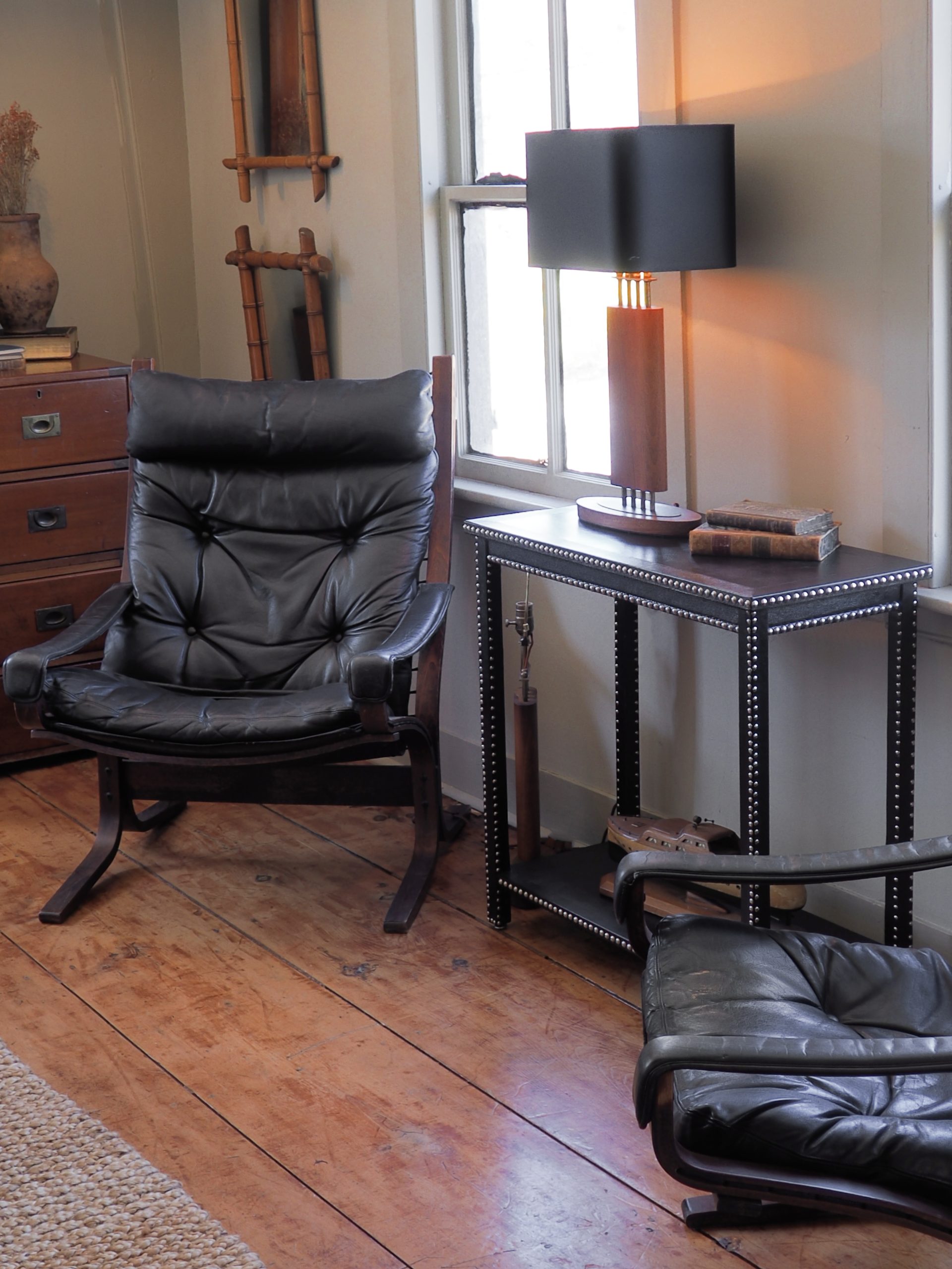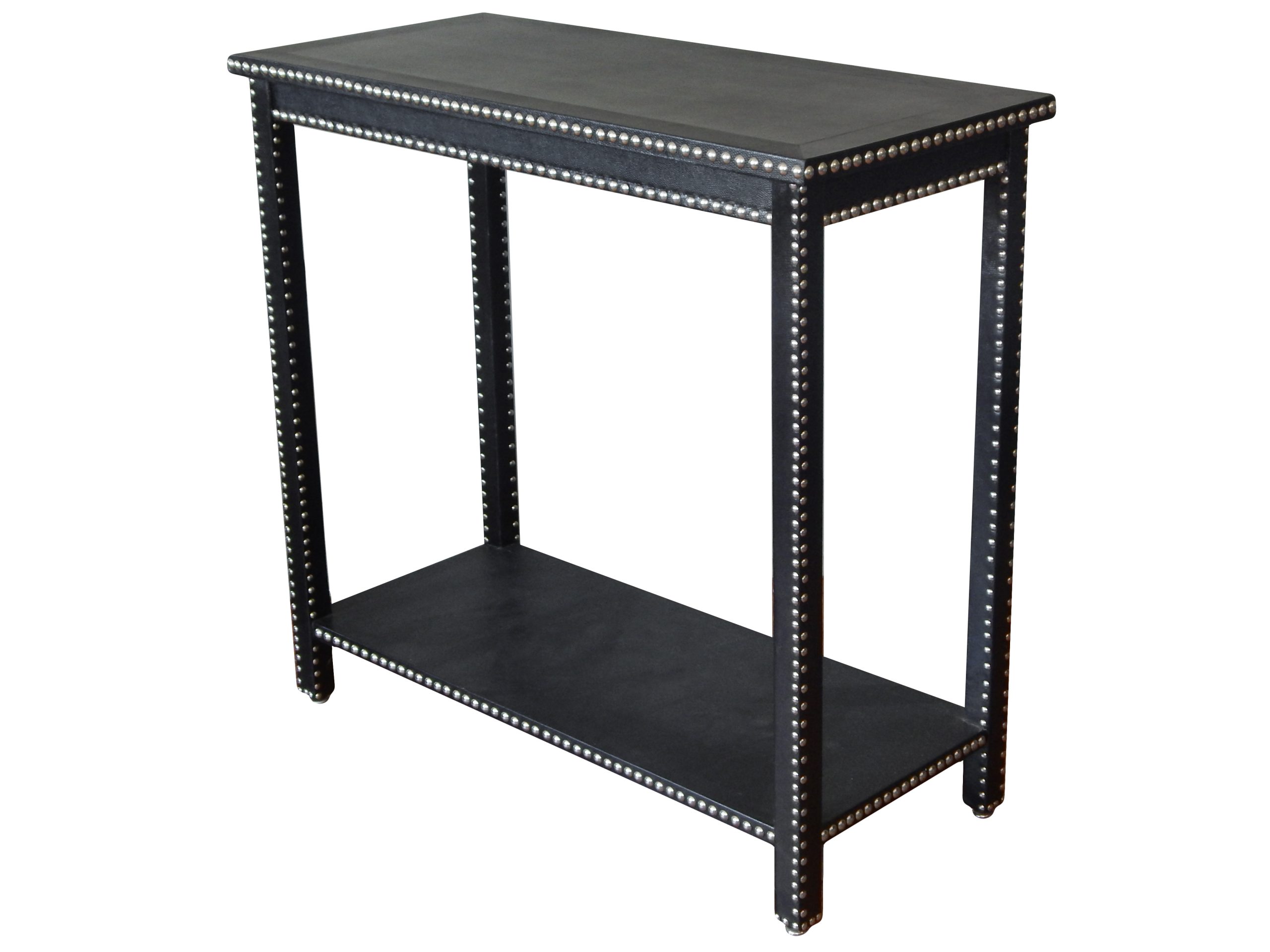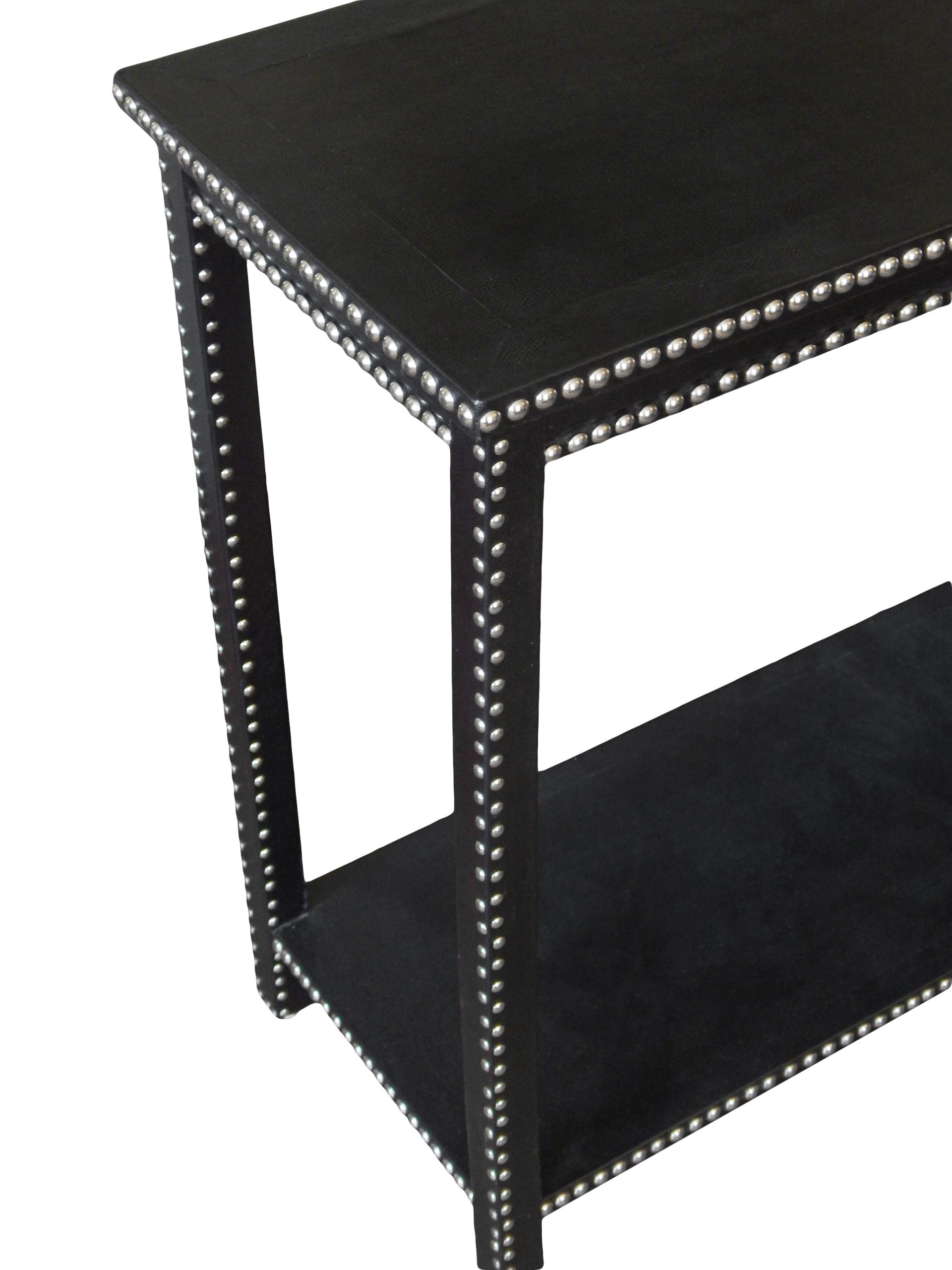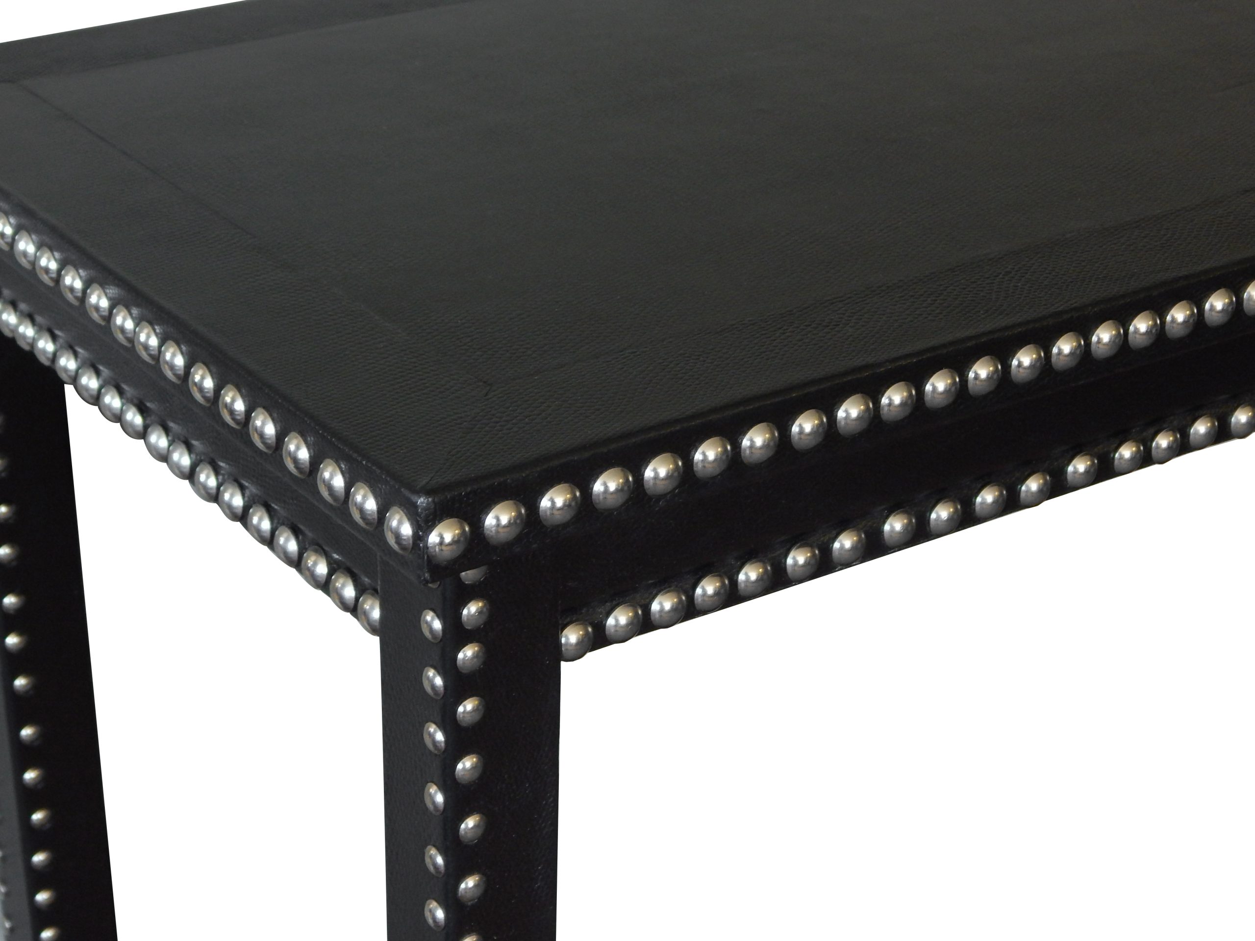 Contemporary, Narrow Black Leather Console Table with Nail Head Trim