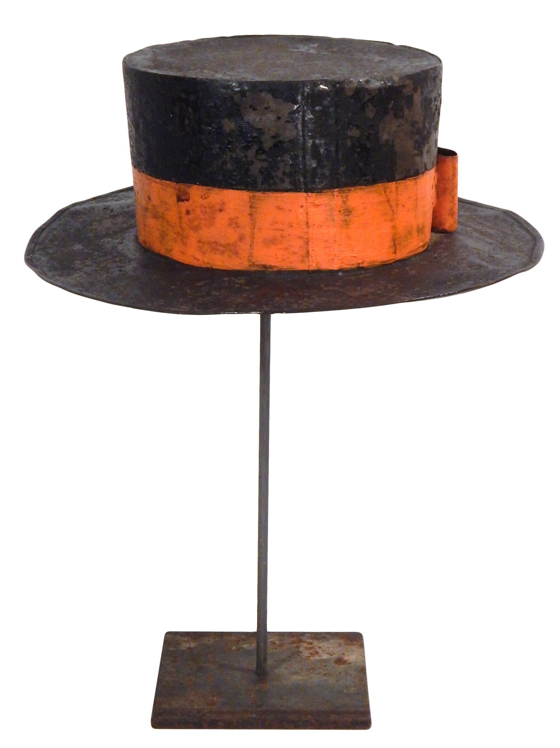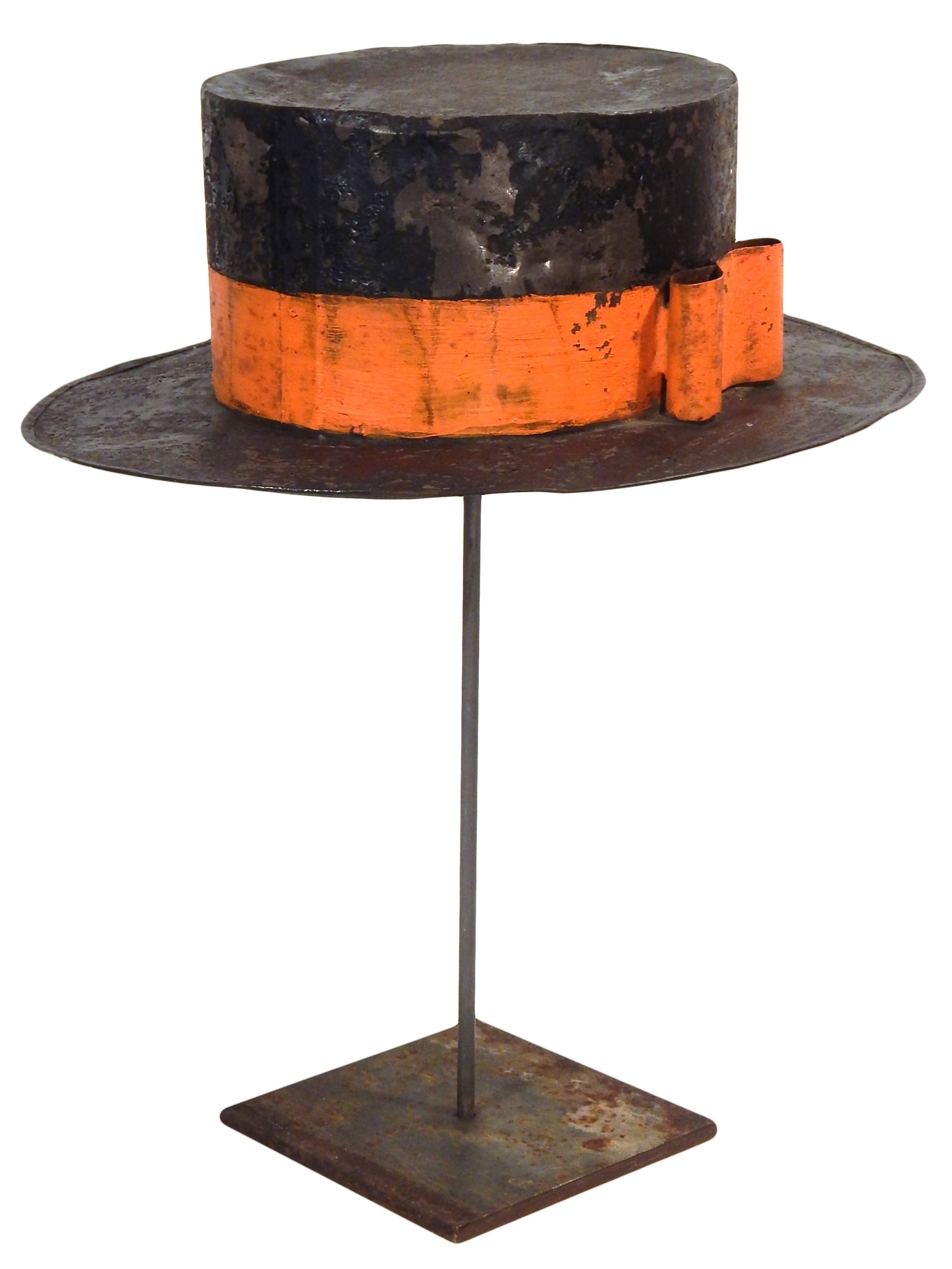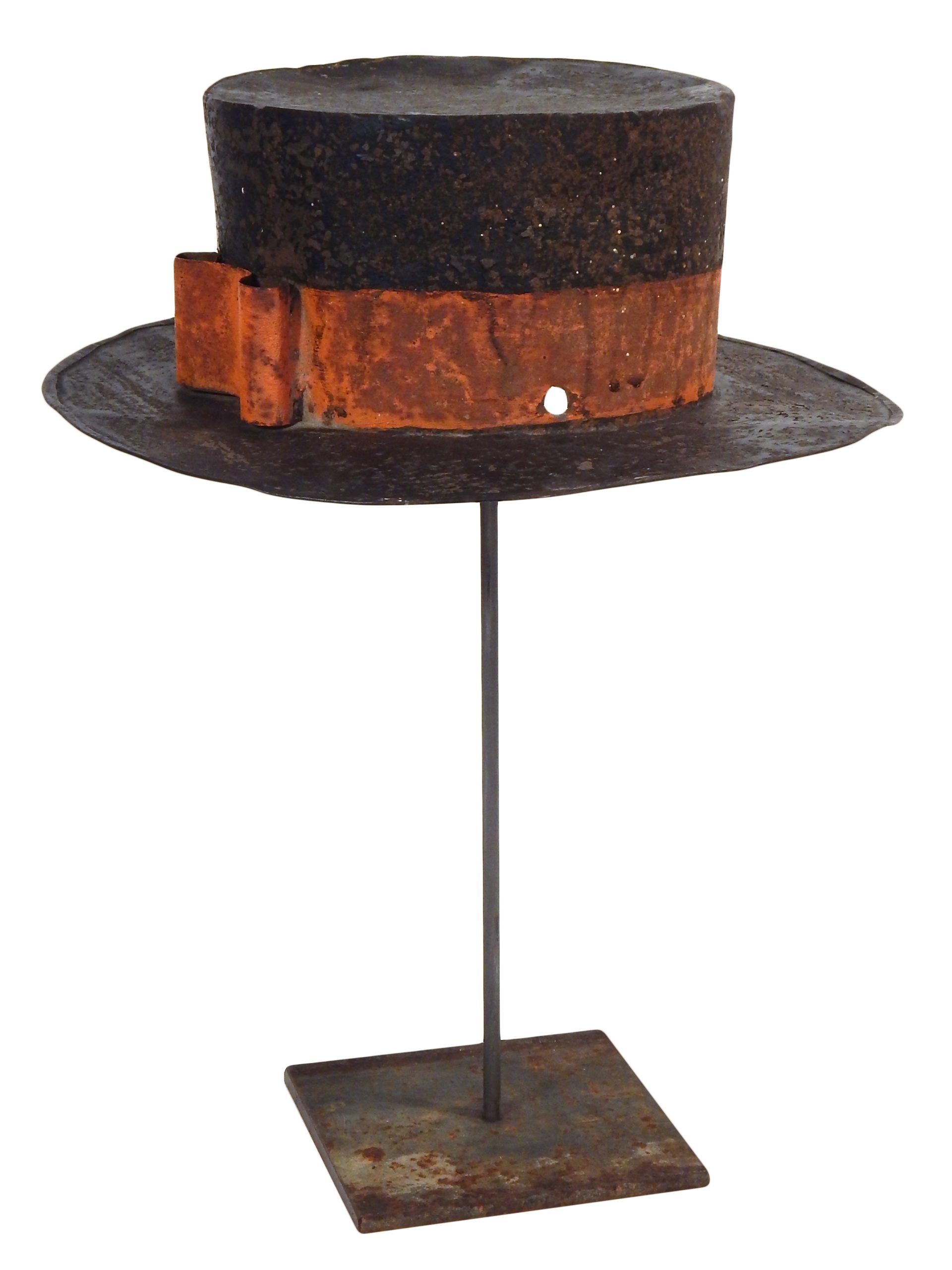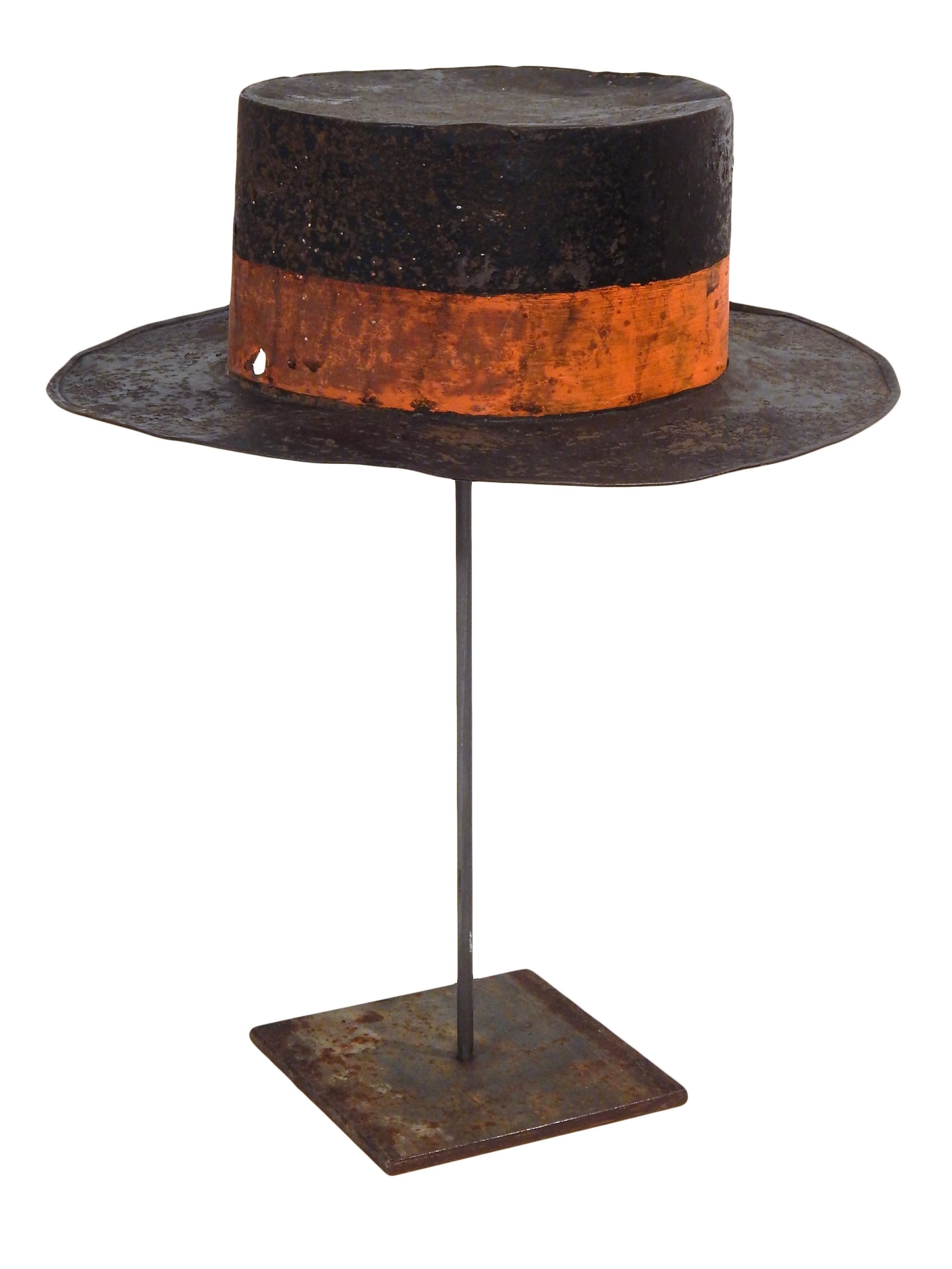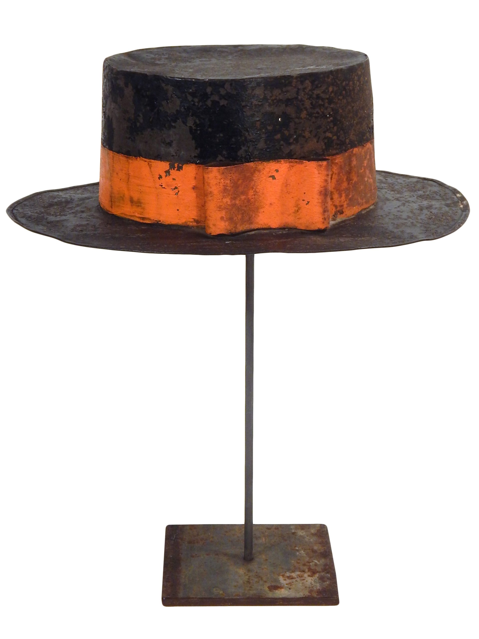 Fabulous Black Tin Hat with Red Band on Custom Mount