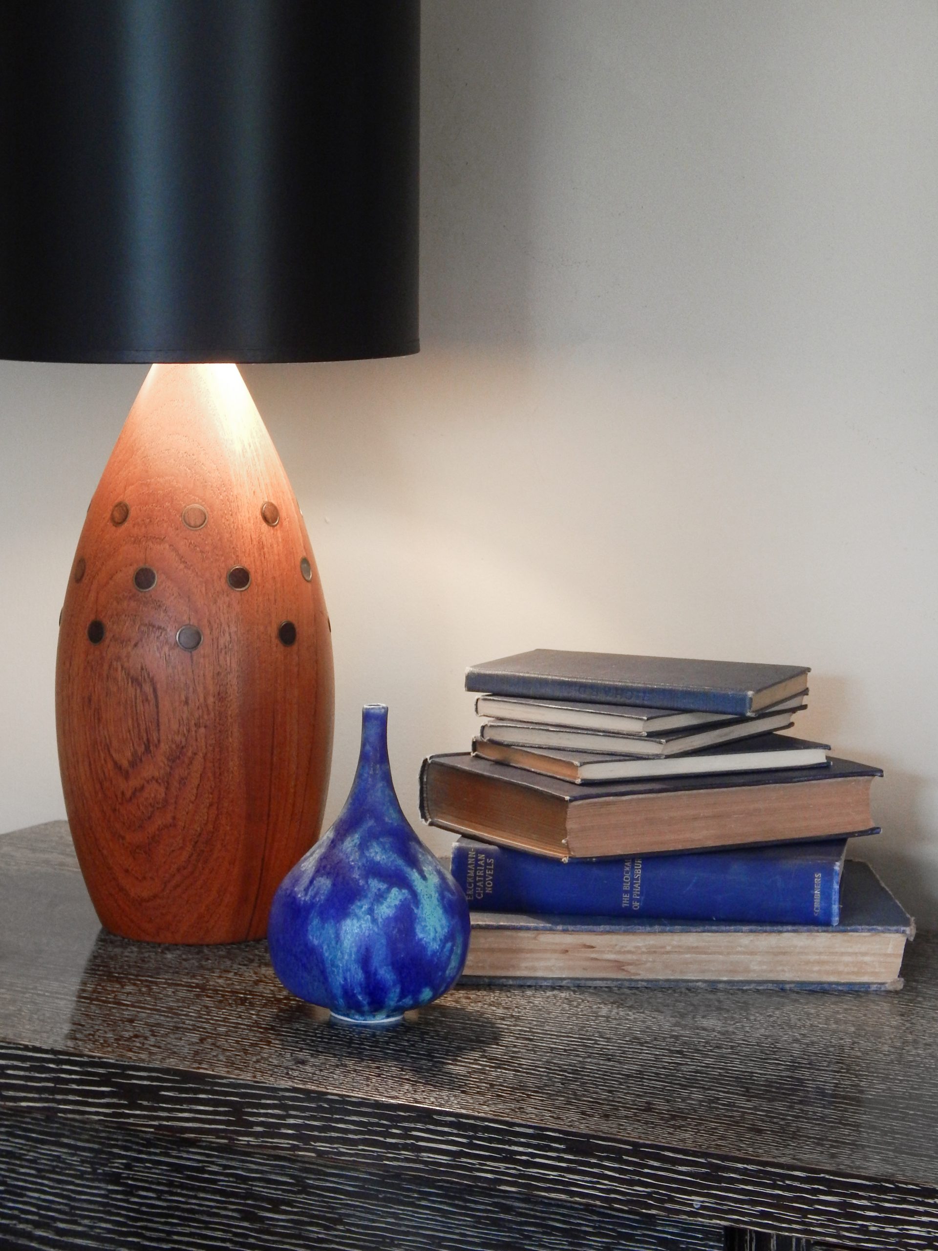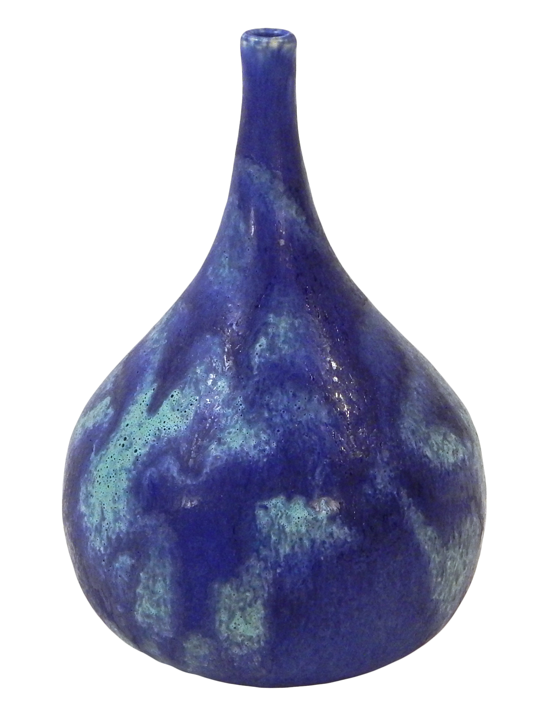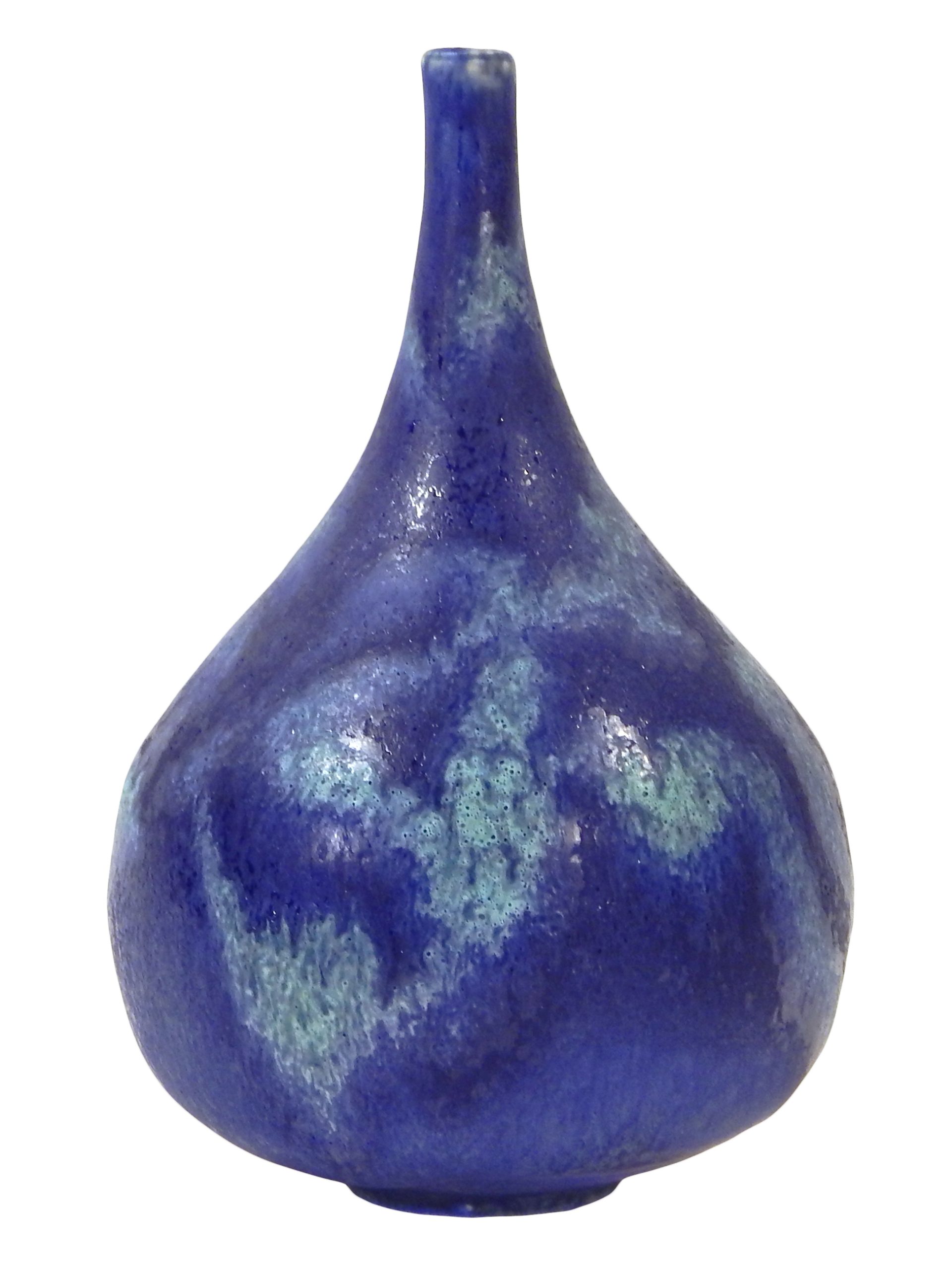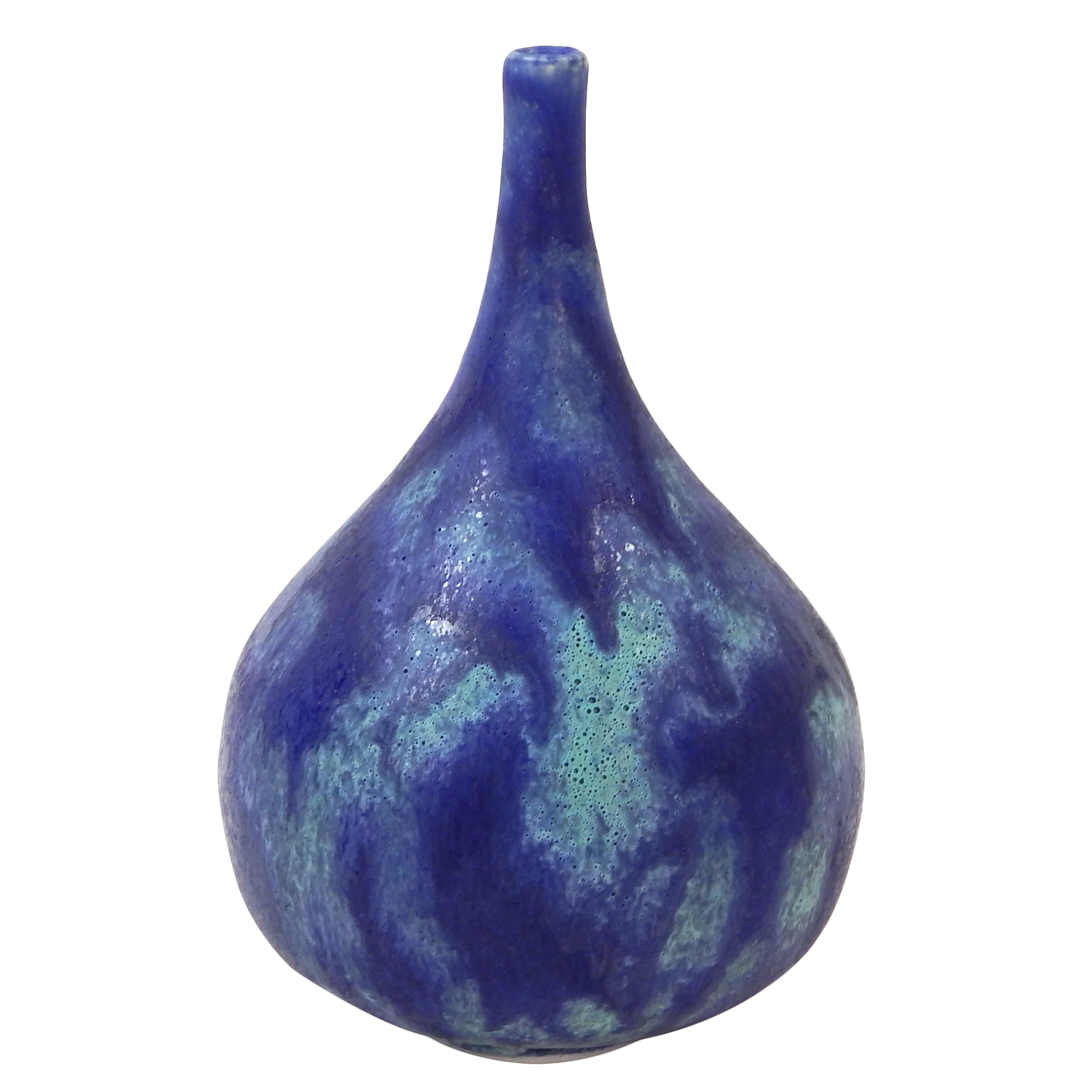 Small 20th Century, Teal & Blue Studio Bud Vase, Signed Brook