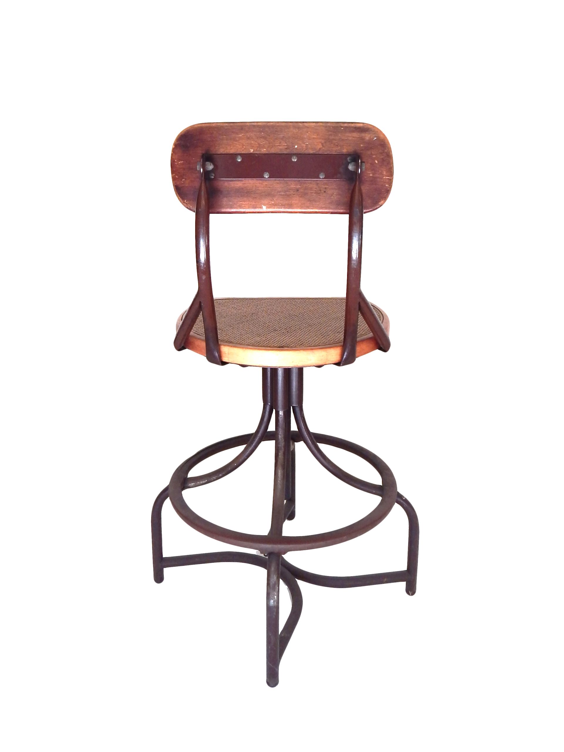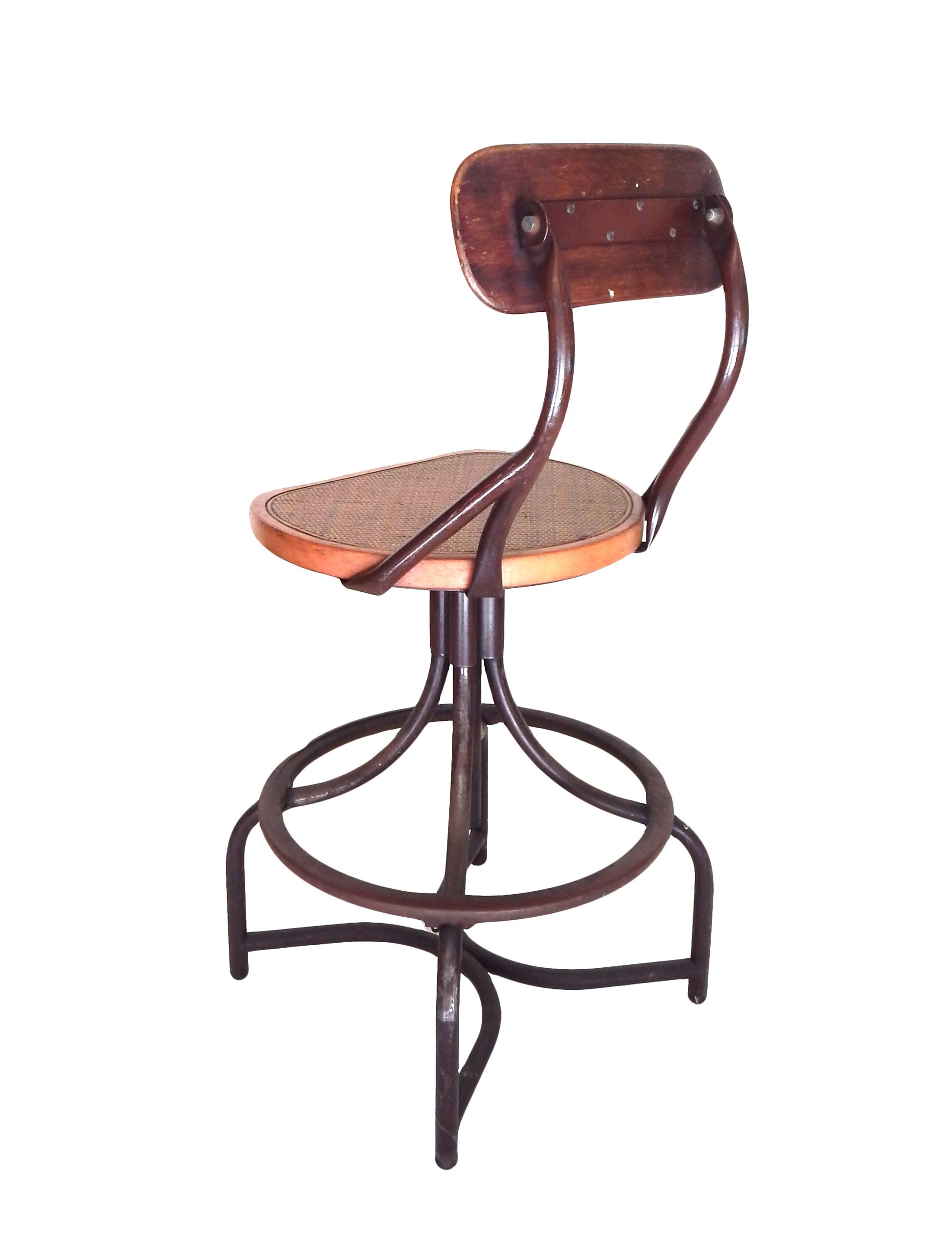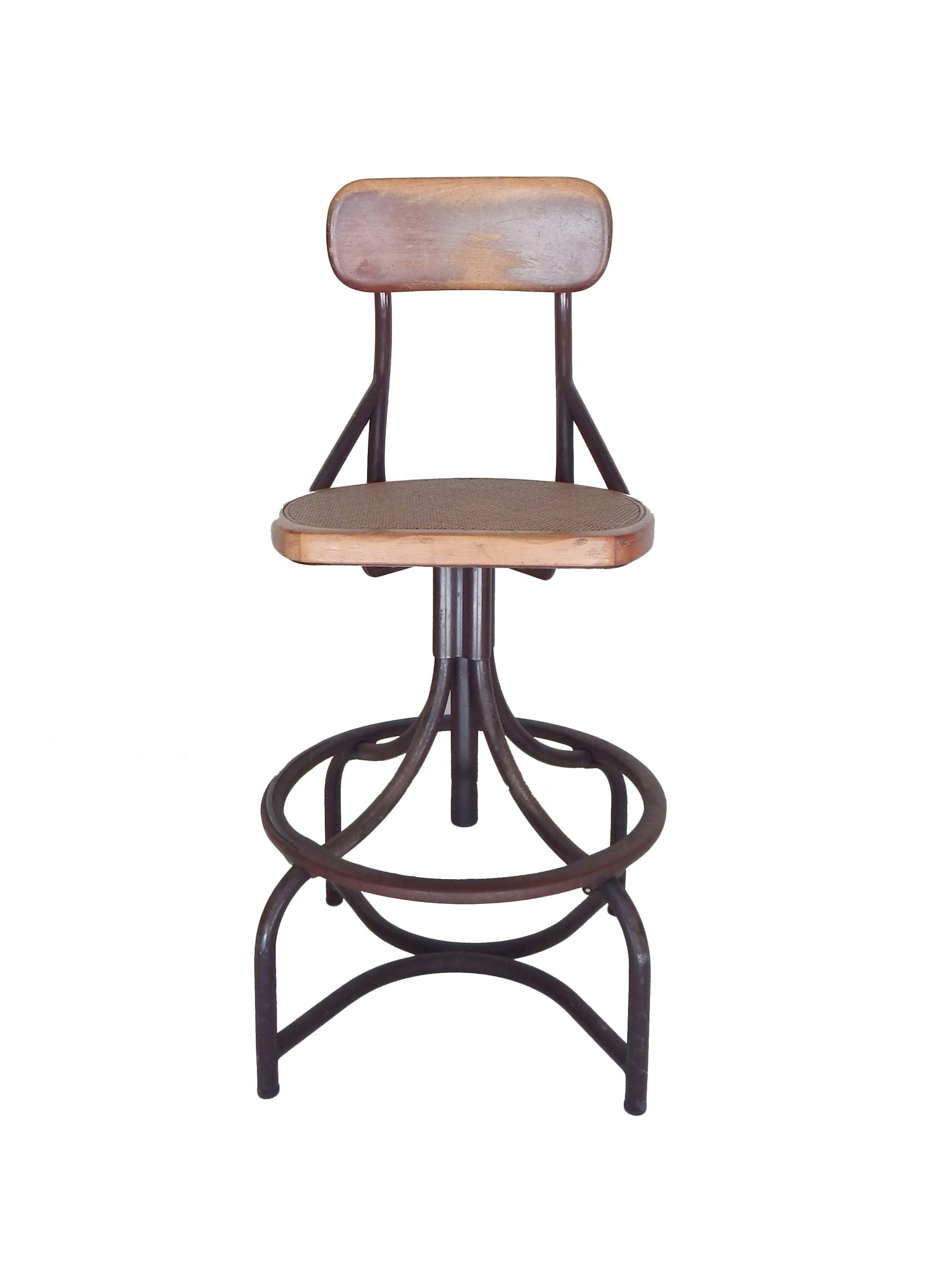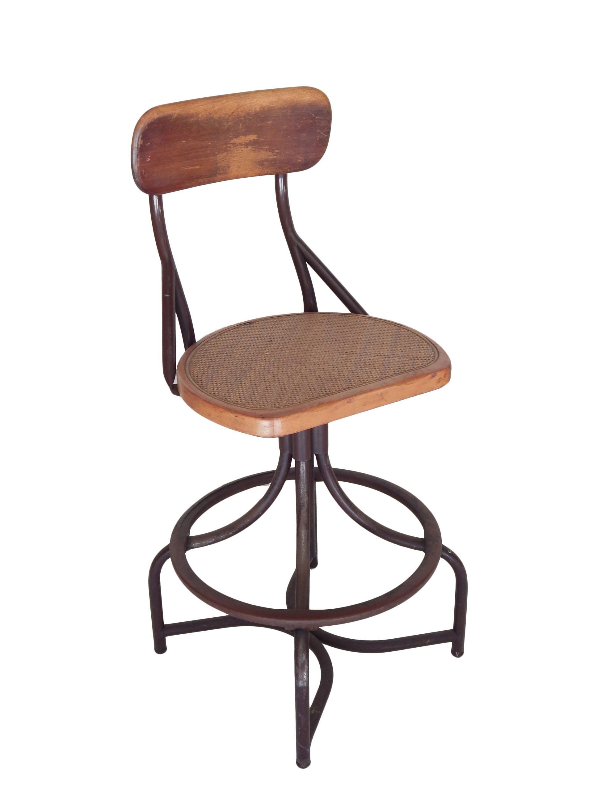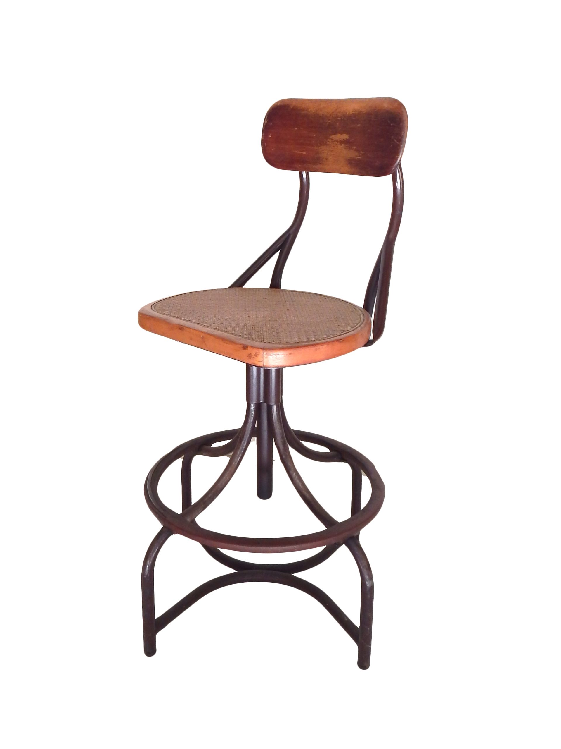 Early 20th Century Phone Operator’s Stool with Caned Seat and Wood Back Rest