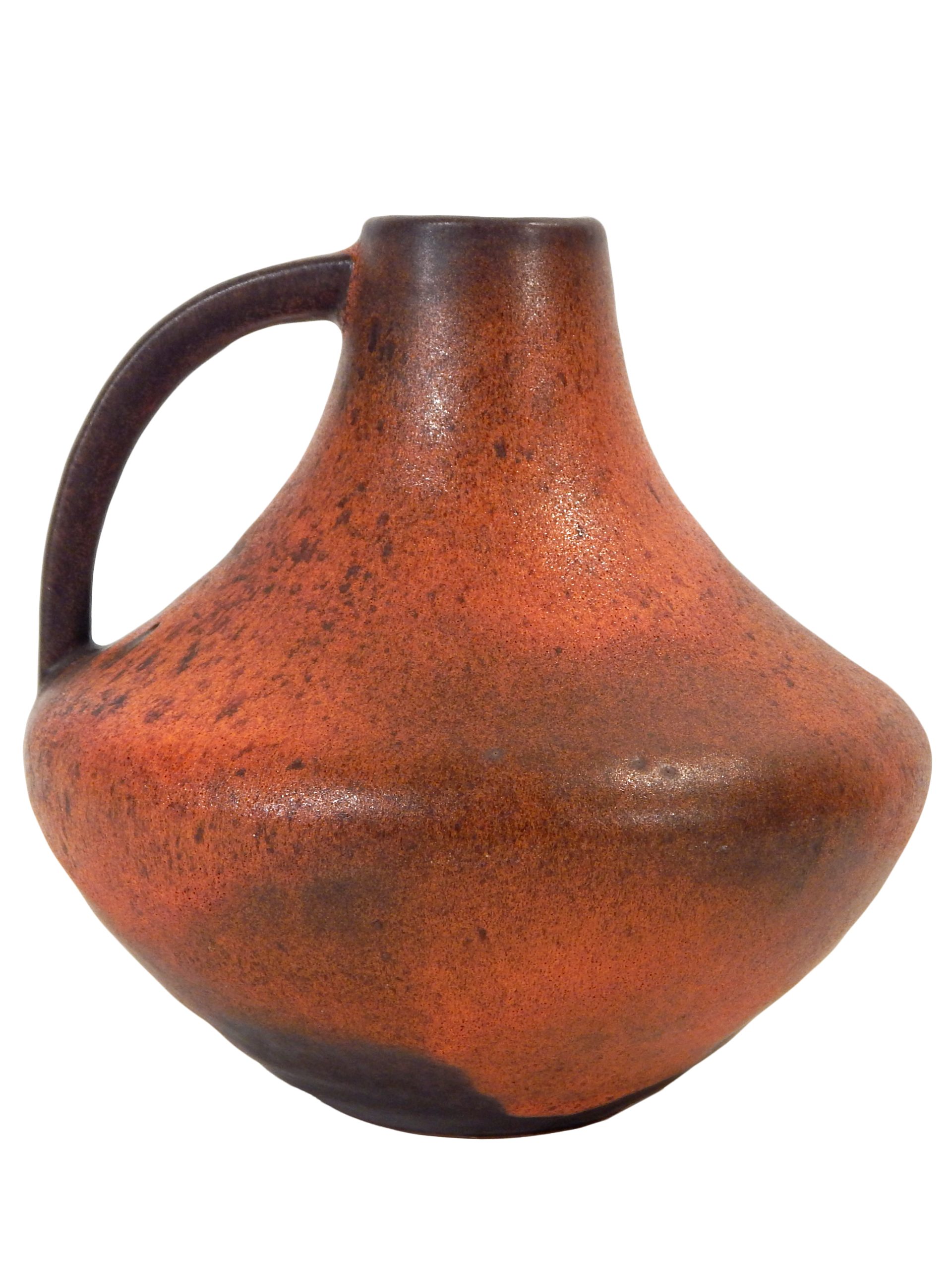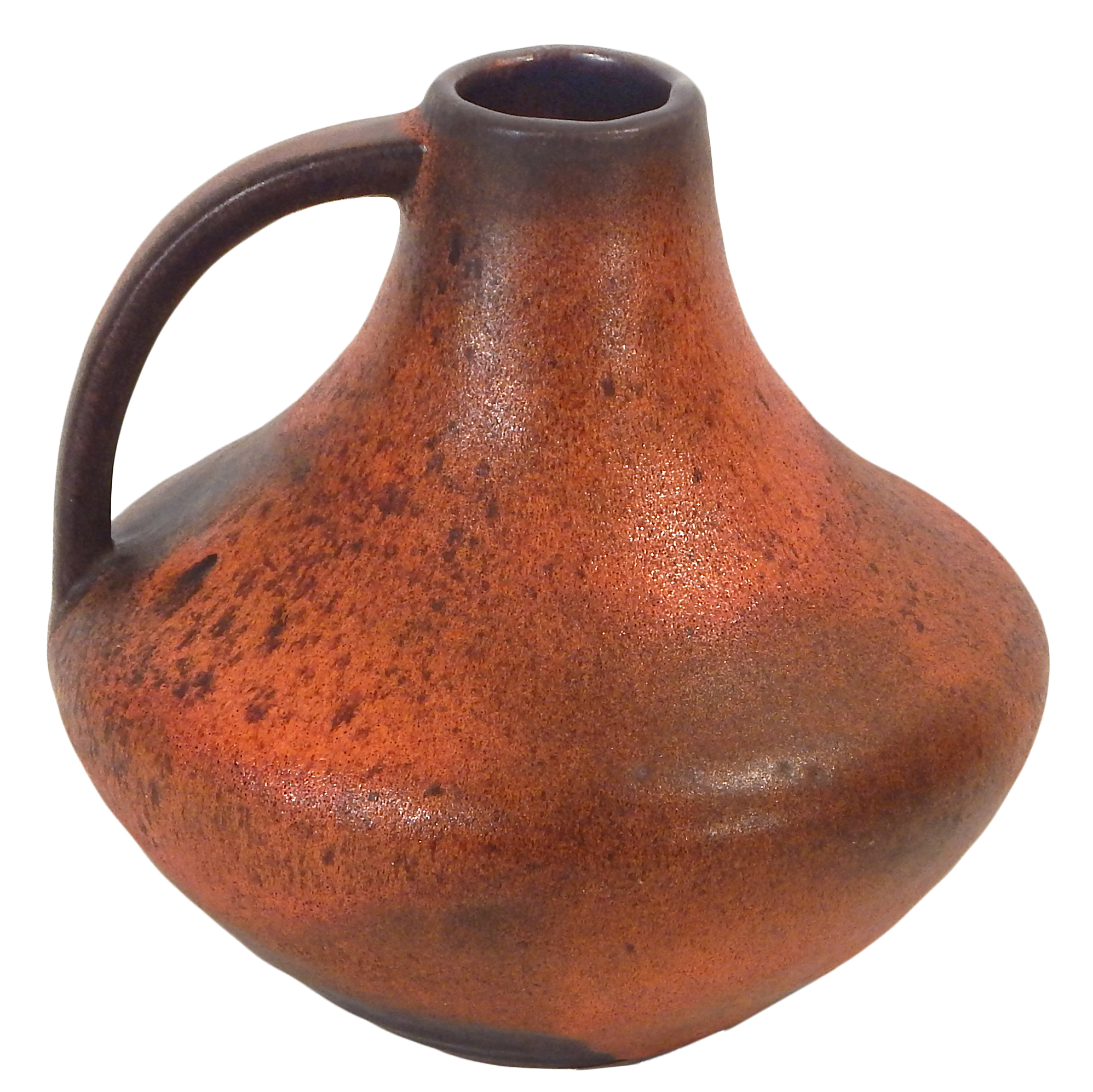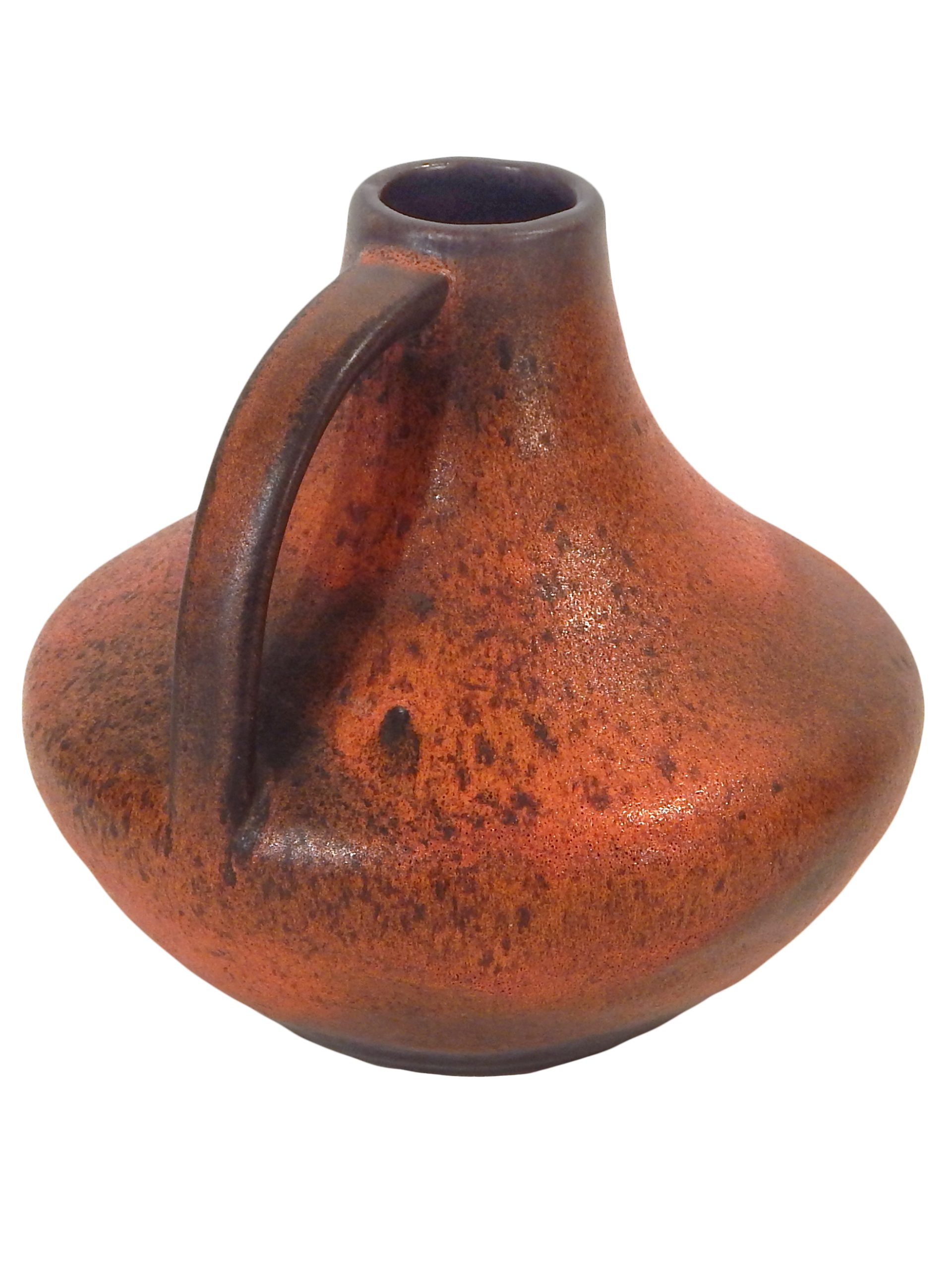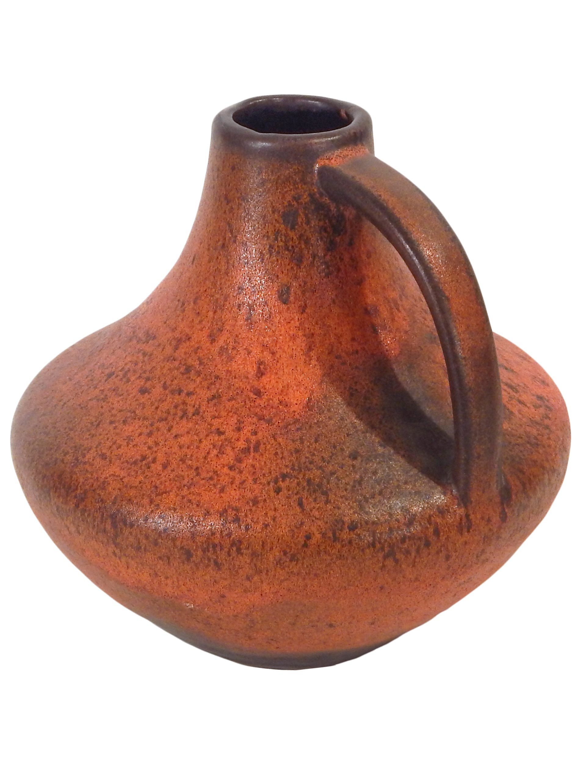 Deep Orange and Cinimon Colored, Carstens Atelier Handled Vase with Organic Shape, Designed by Gerda Heuckeroth