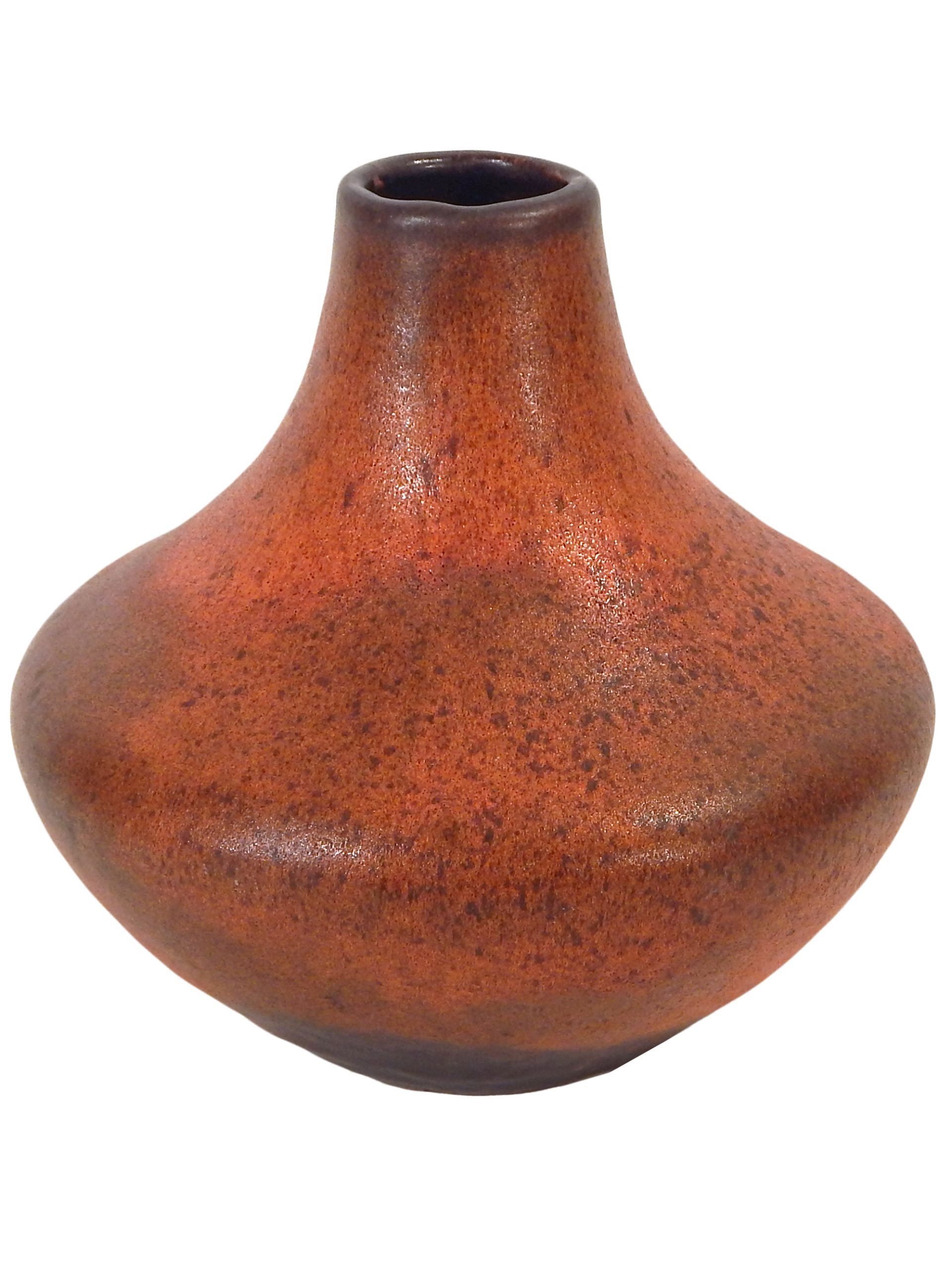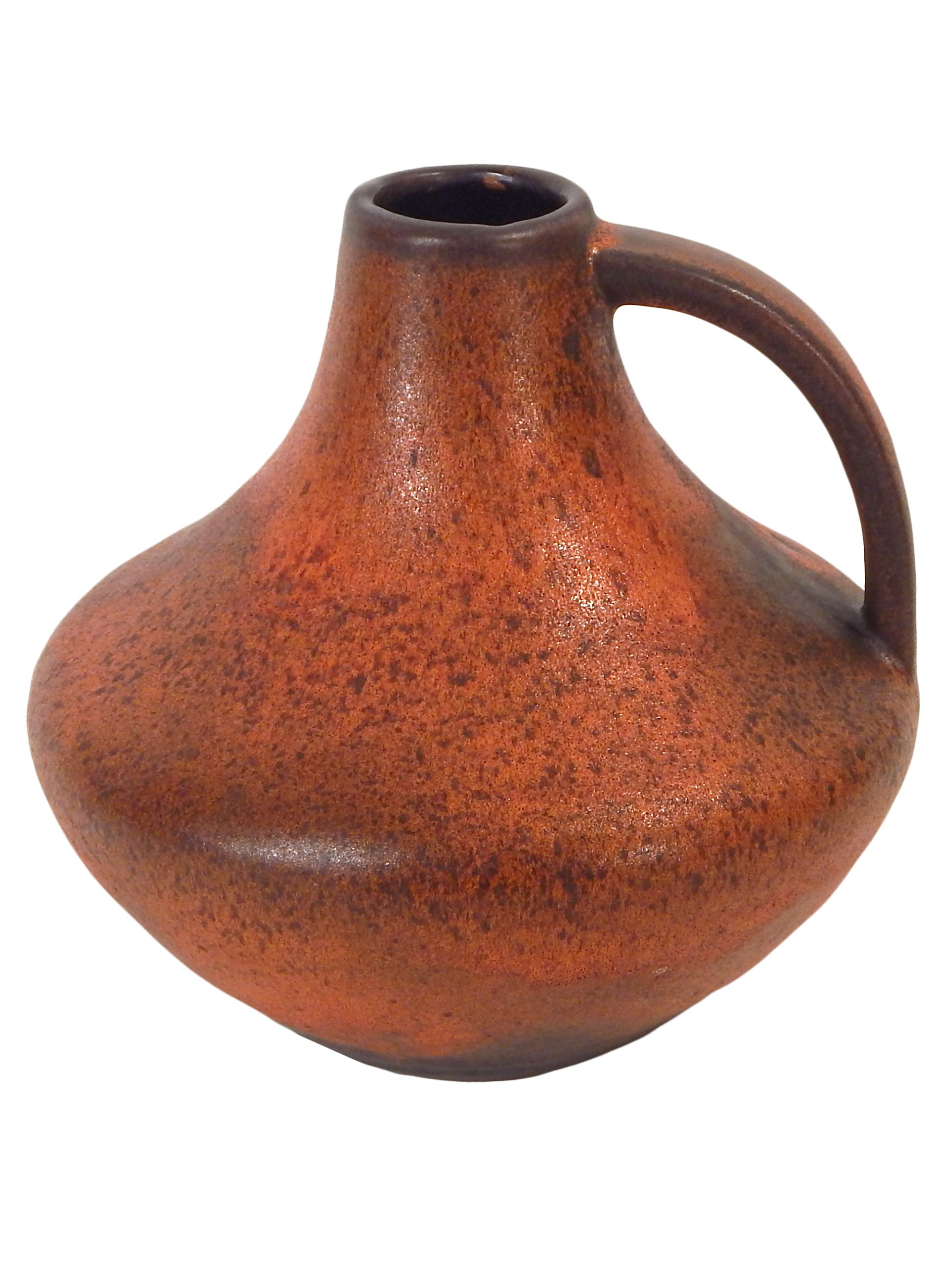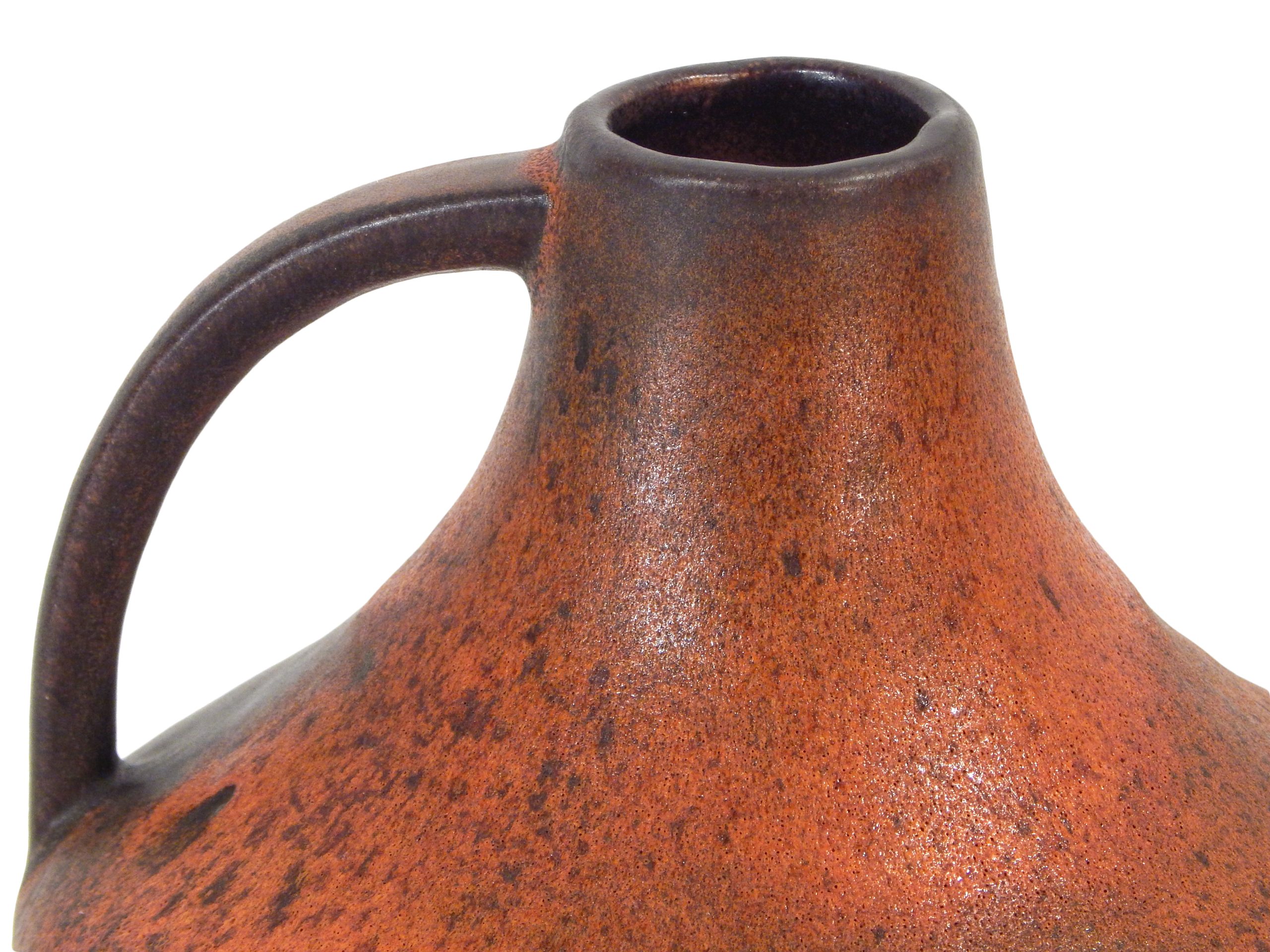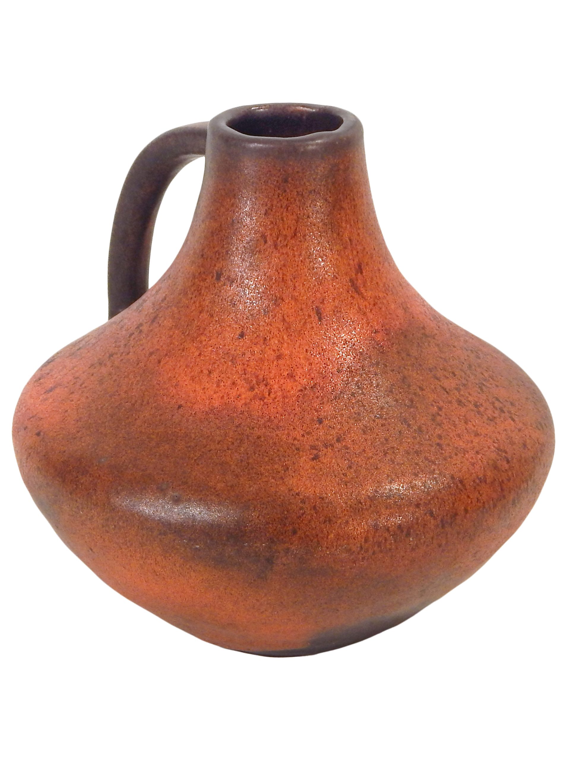 Deep Orange and Cinimon Colored, Carstens Atelier Handled Vase with Organic Shape, Designed by Gerda Heuckeroth