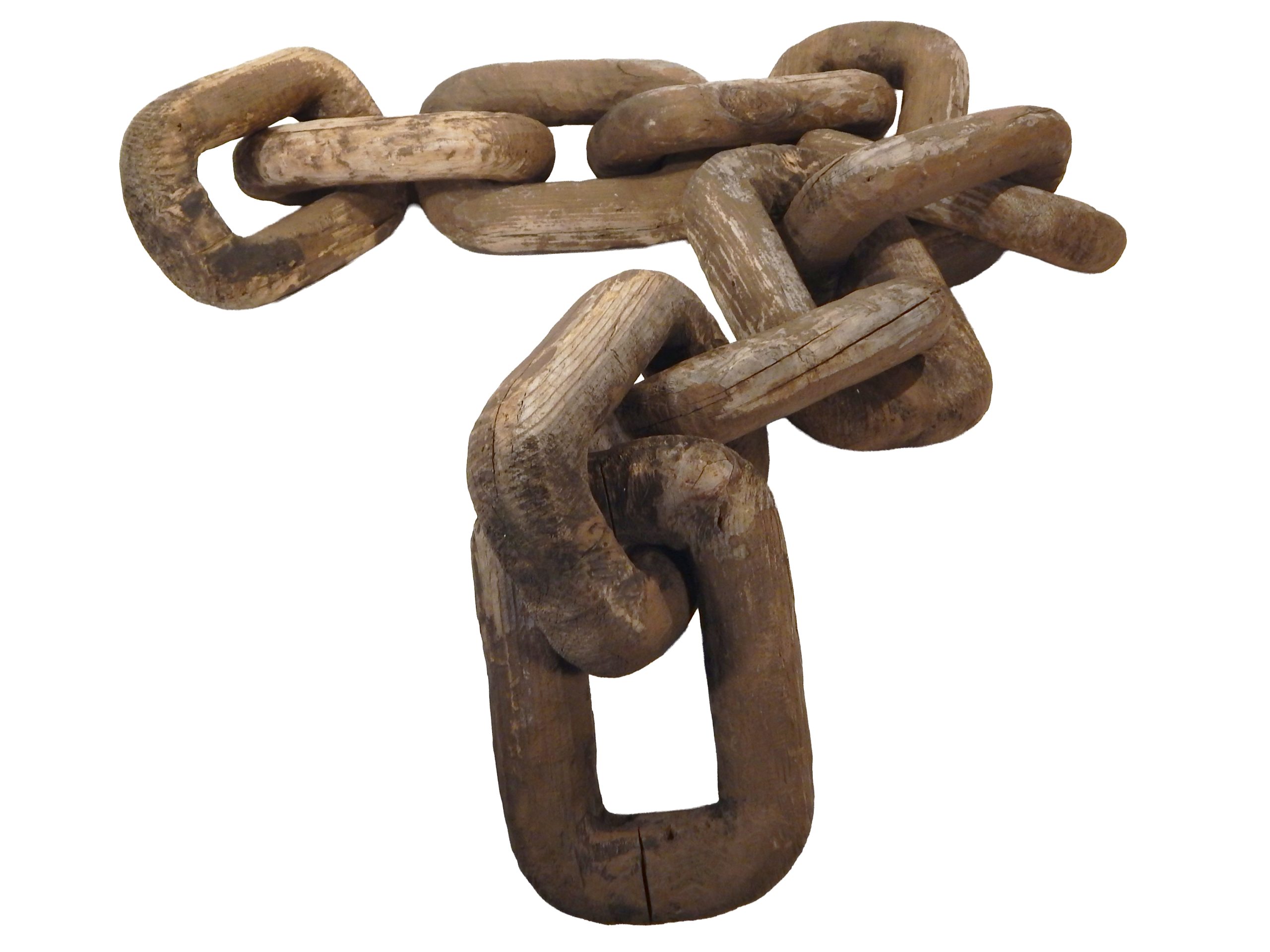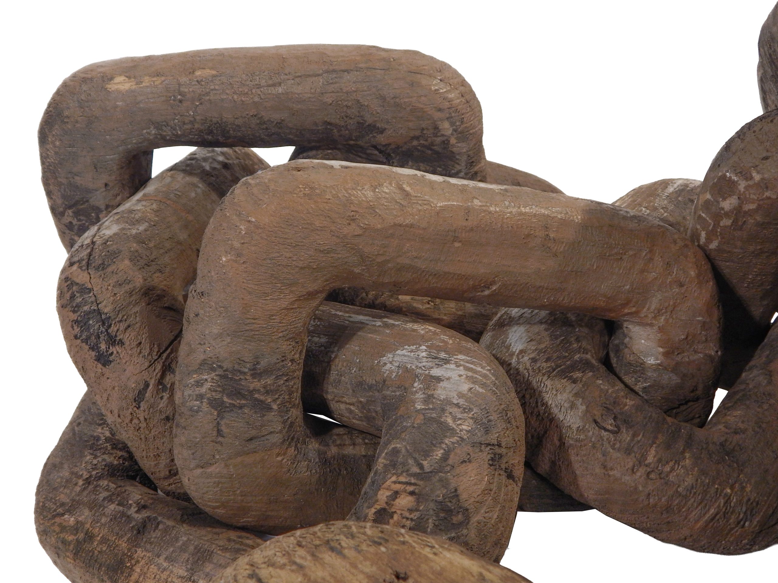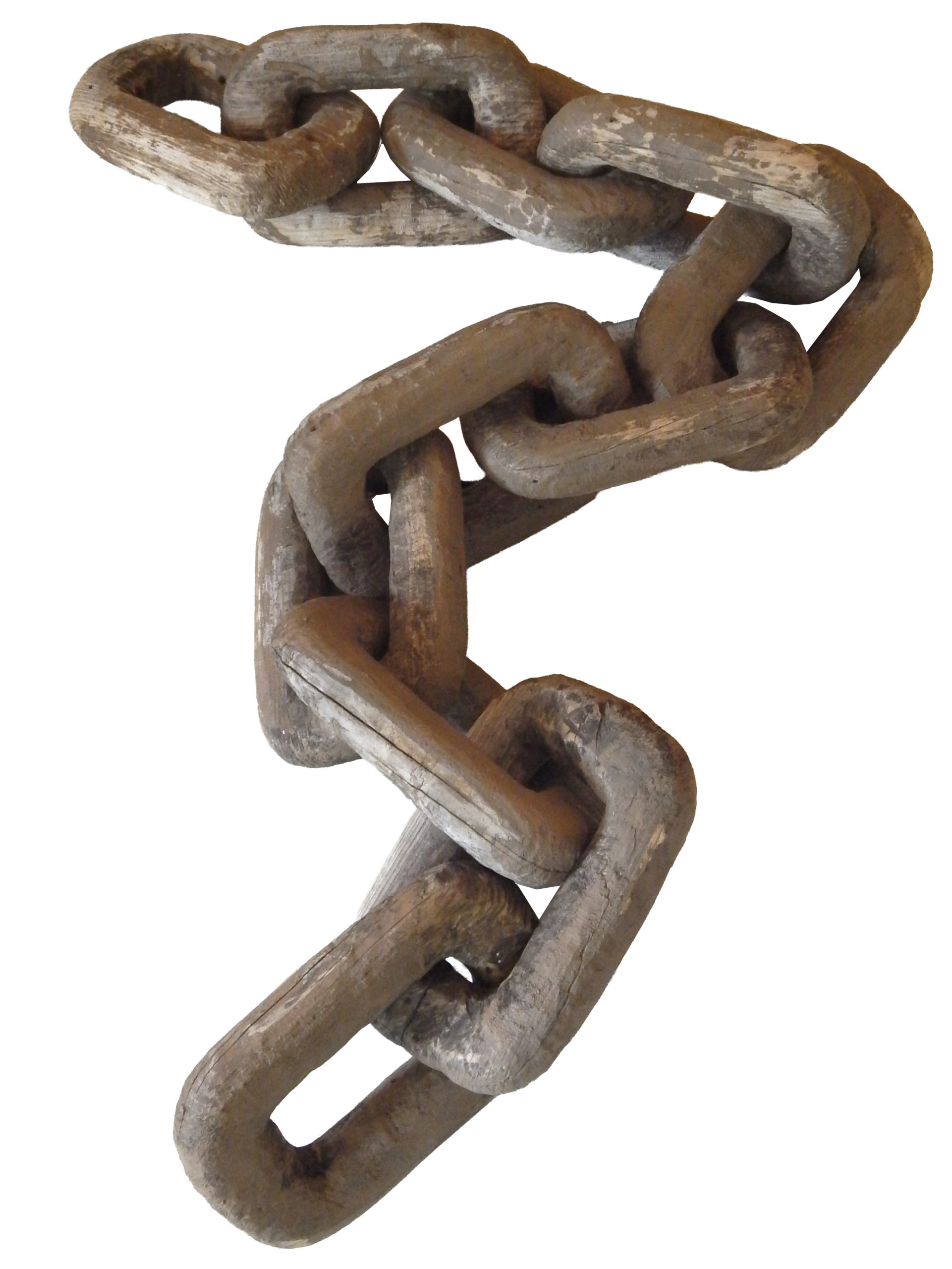 Very Large, 20th Century Wooden Chain Carved from a Single Piece of Wood with Distressed Dark Stain