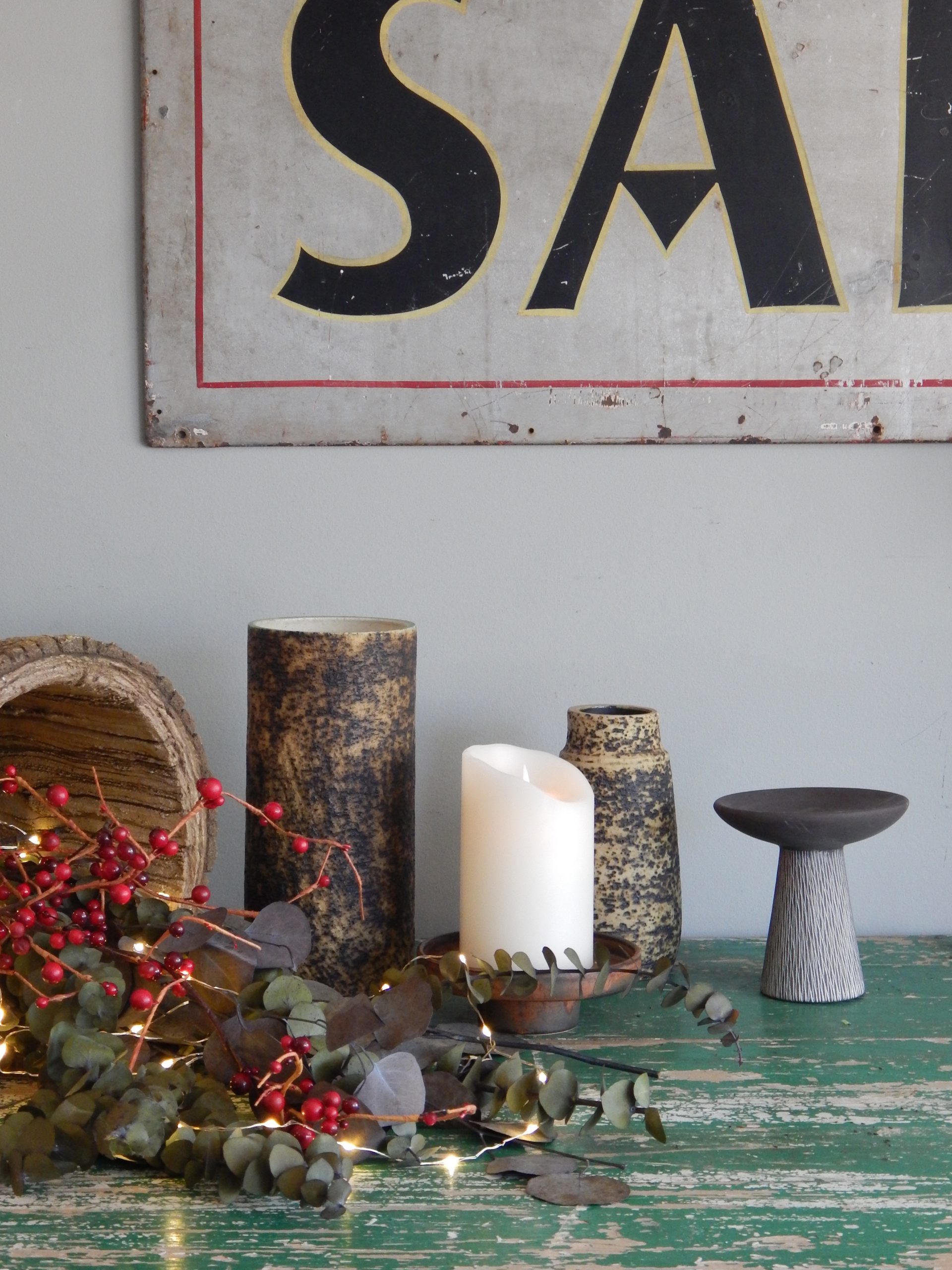 Mid-Century Ceramic Candle Holder with Scraffito Base