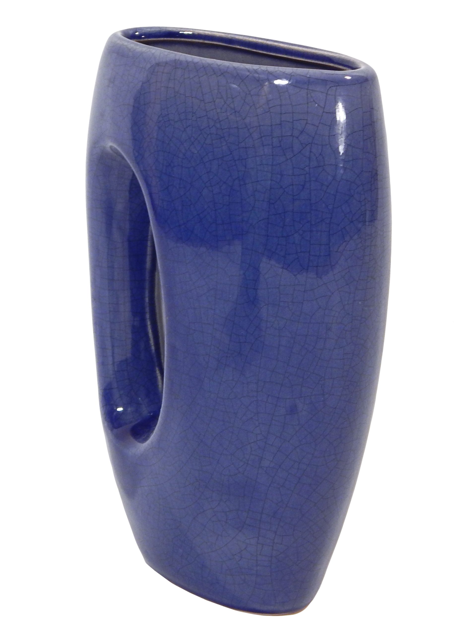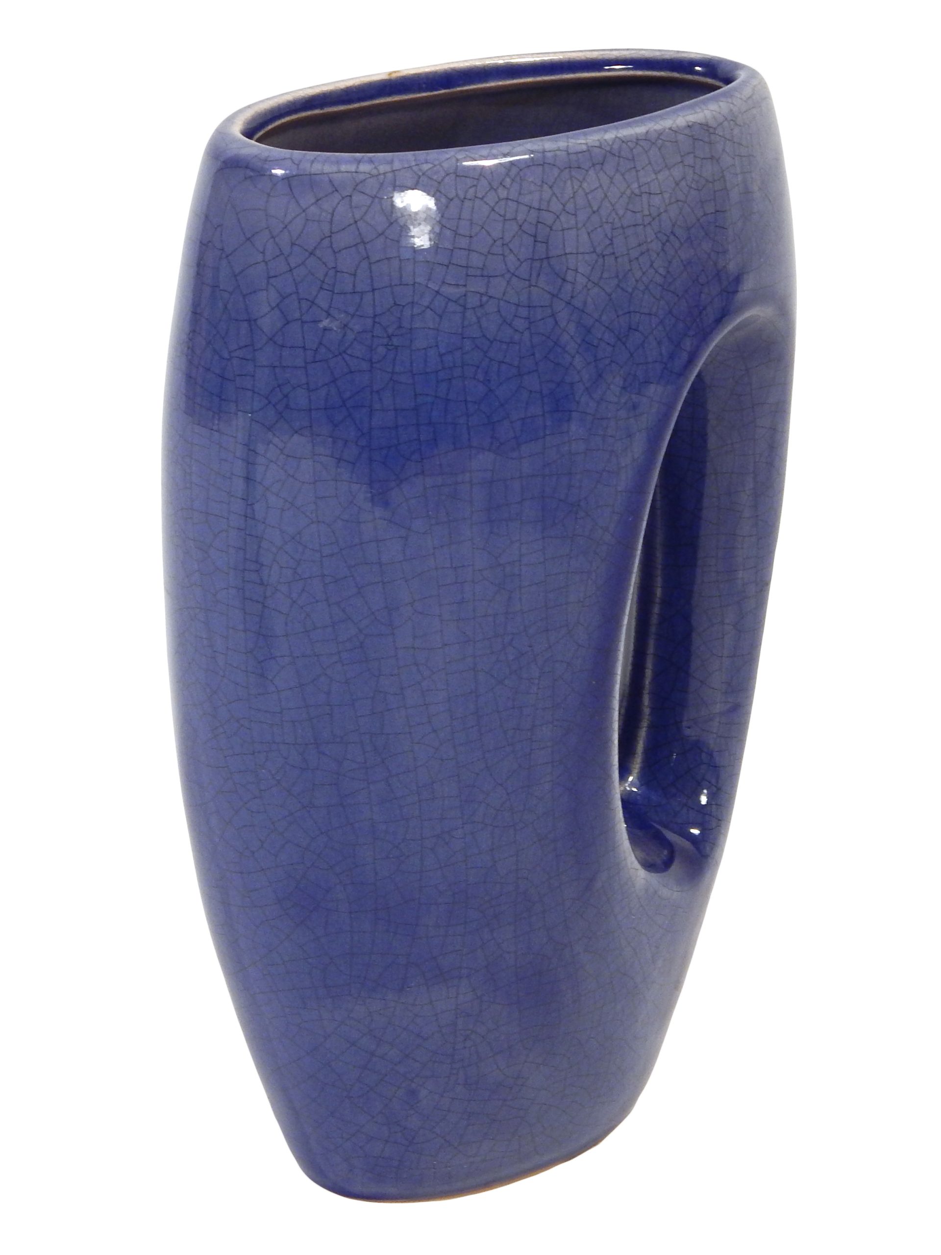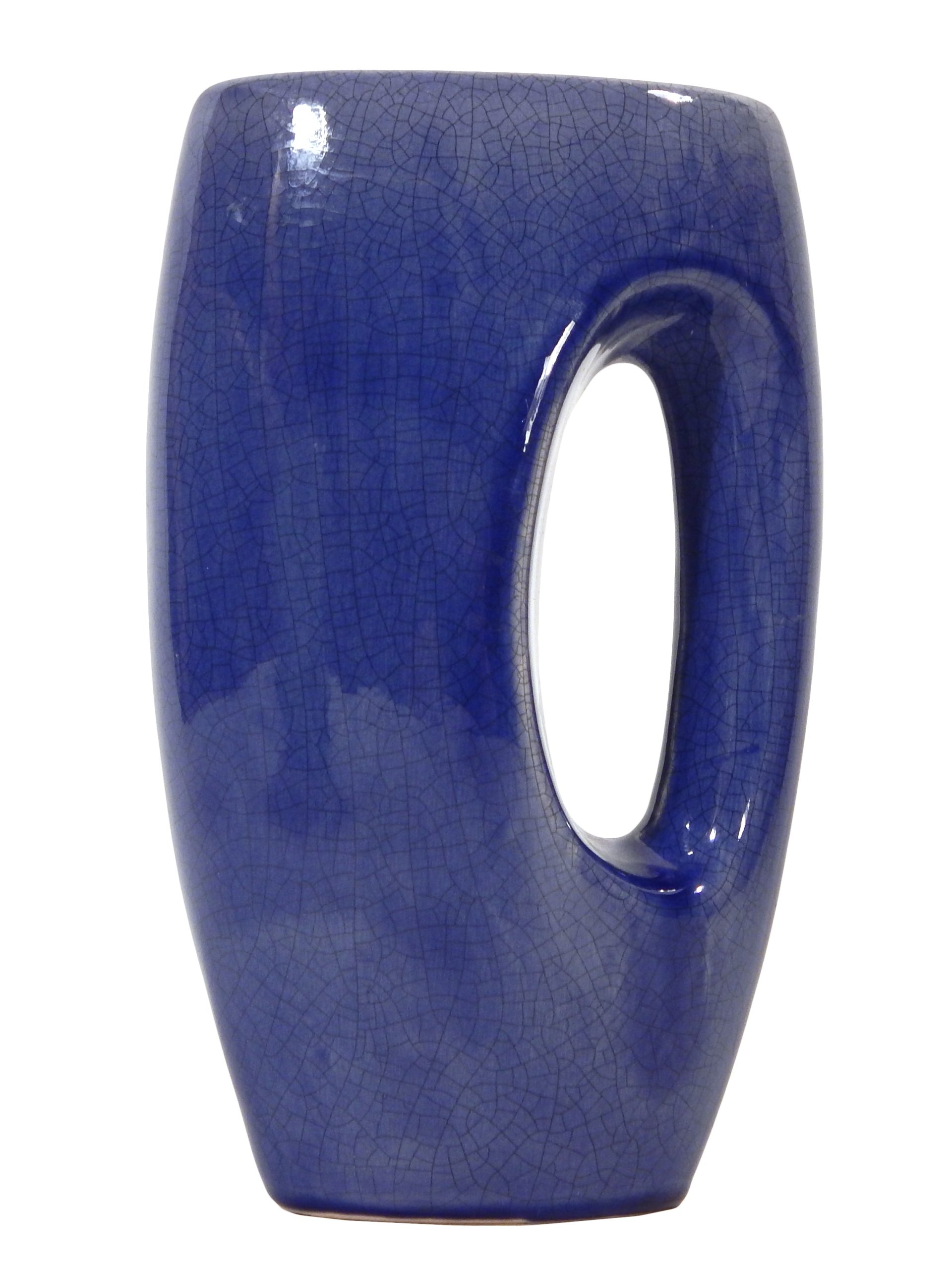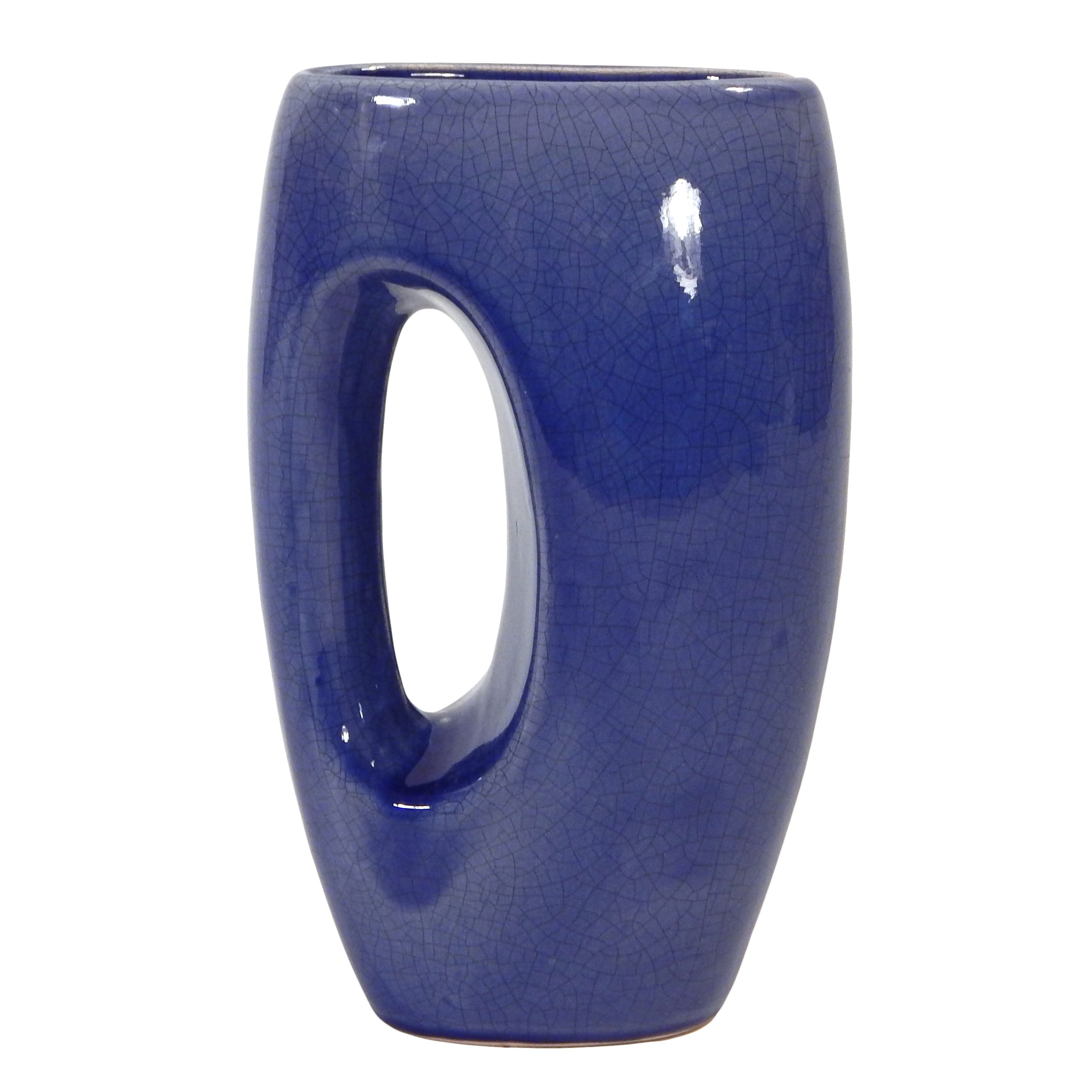 Mid-Century, Ceramic Handled Vase with Glossy Blue Crackle Effect Glaze