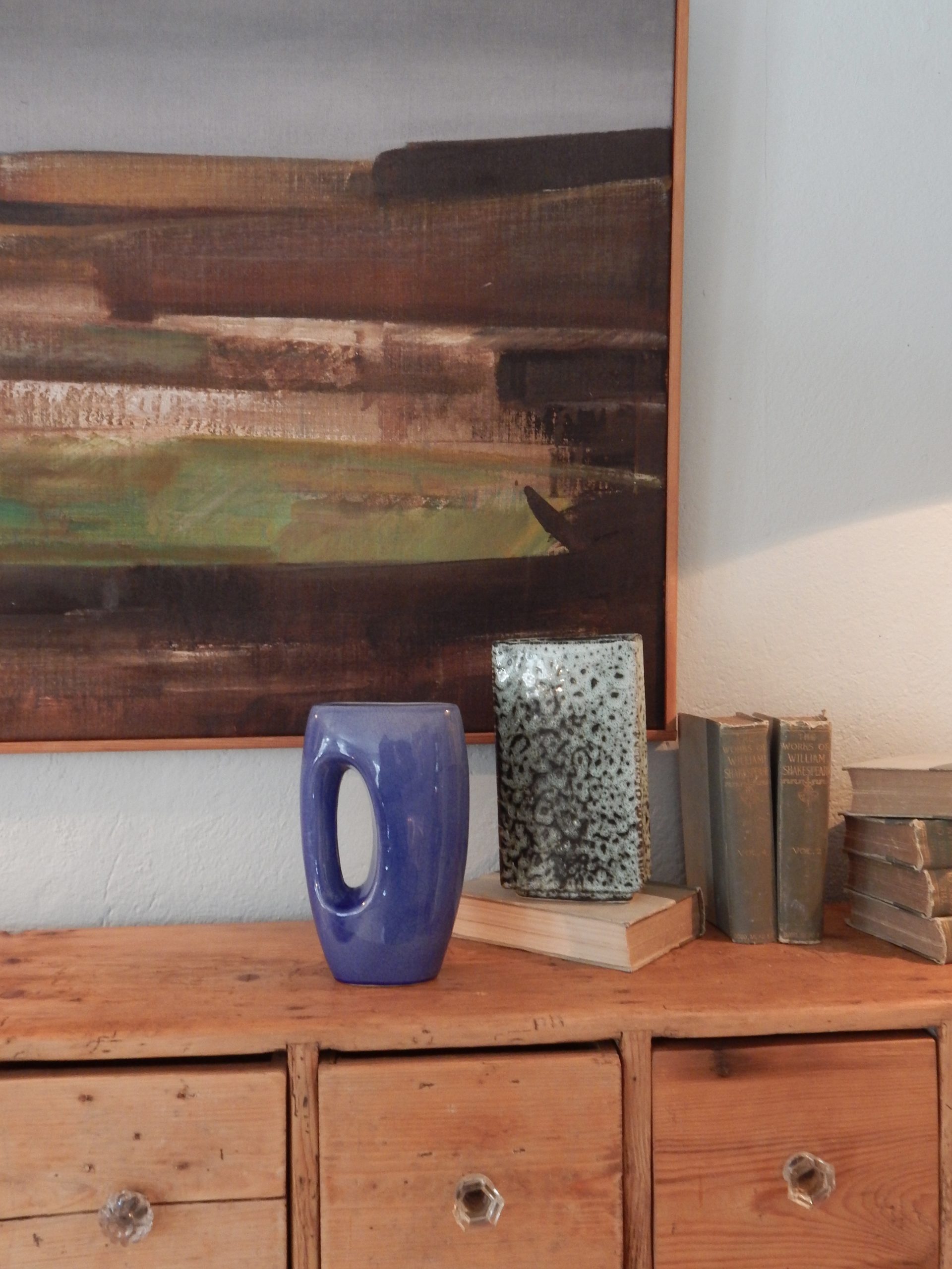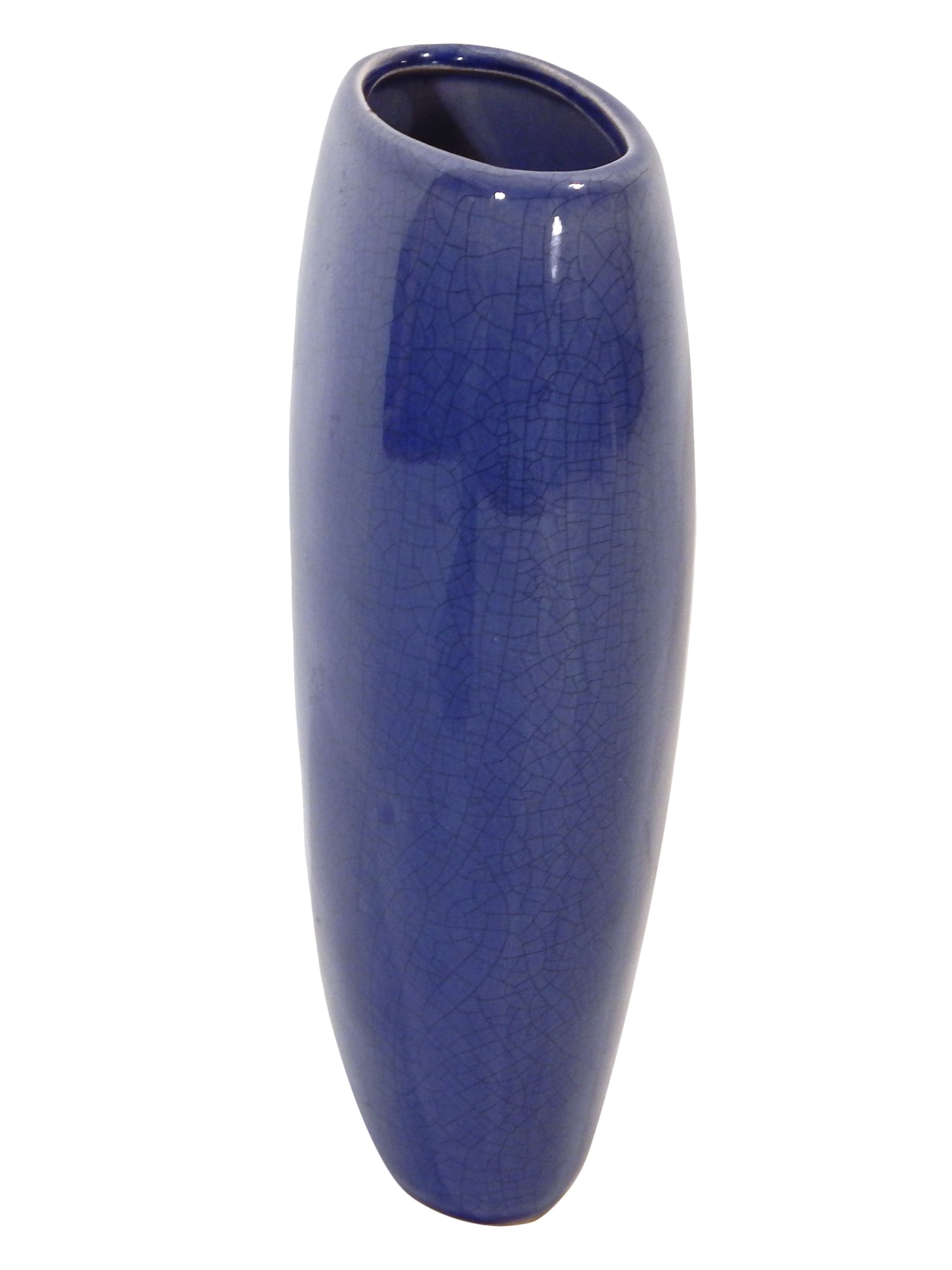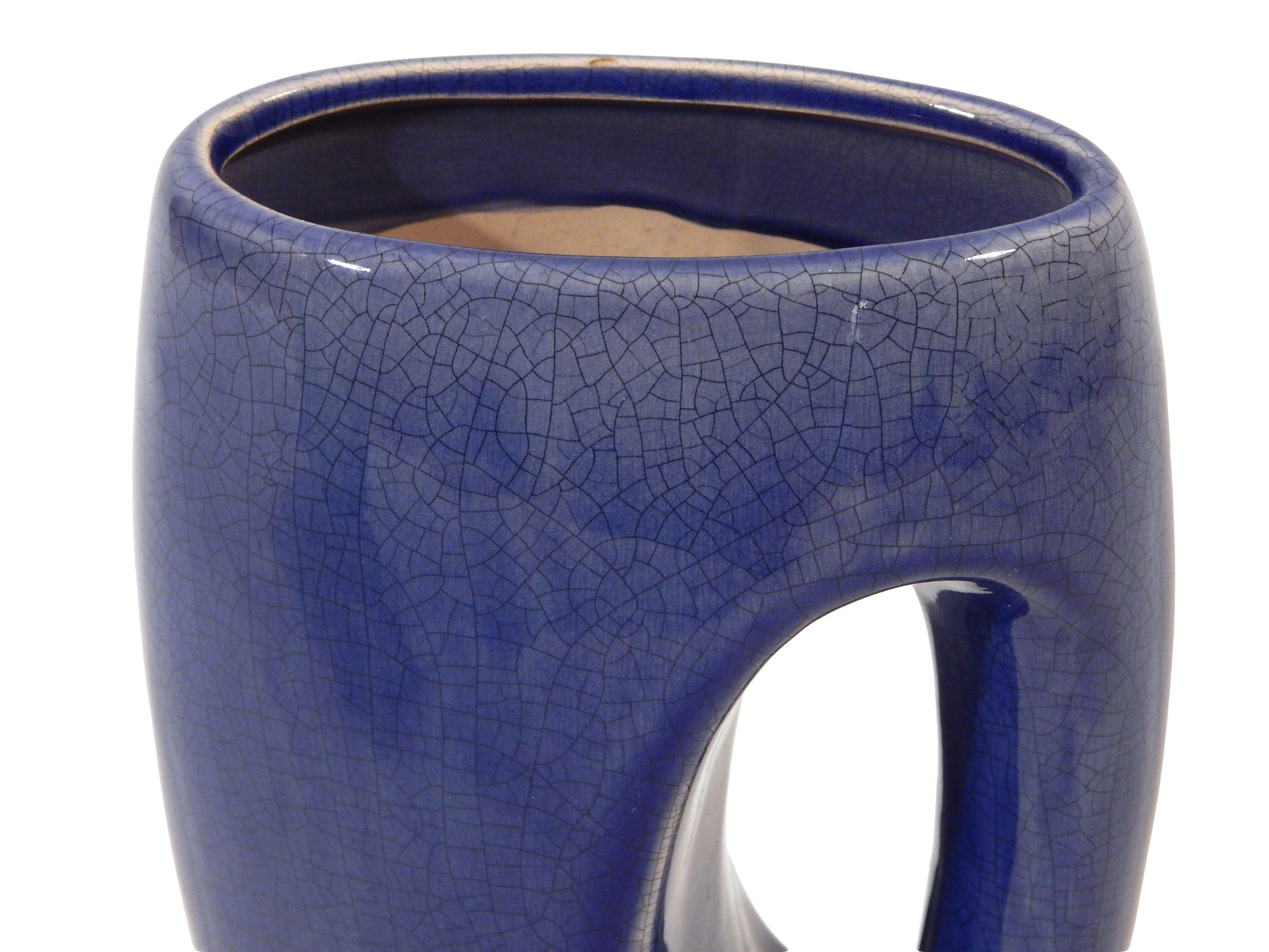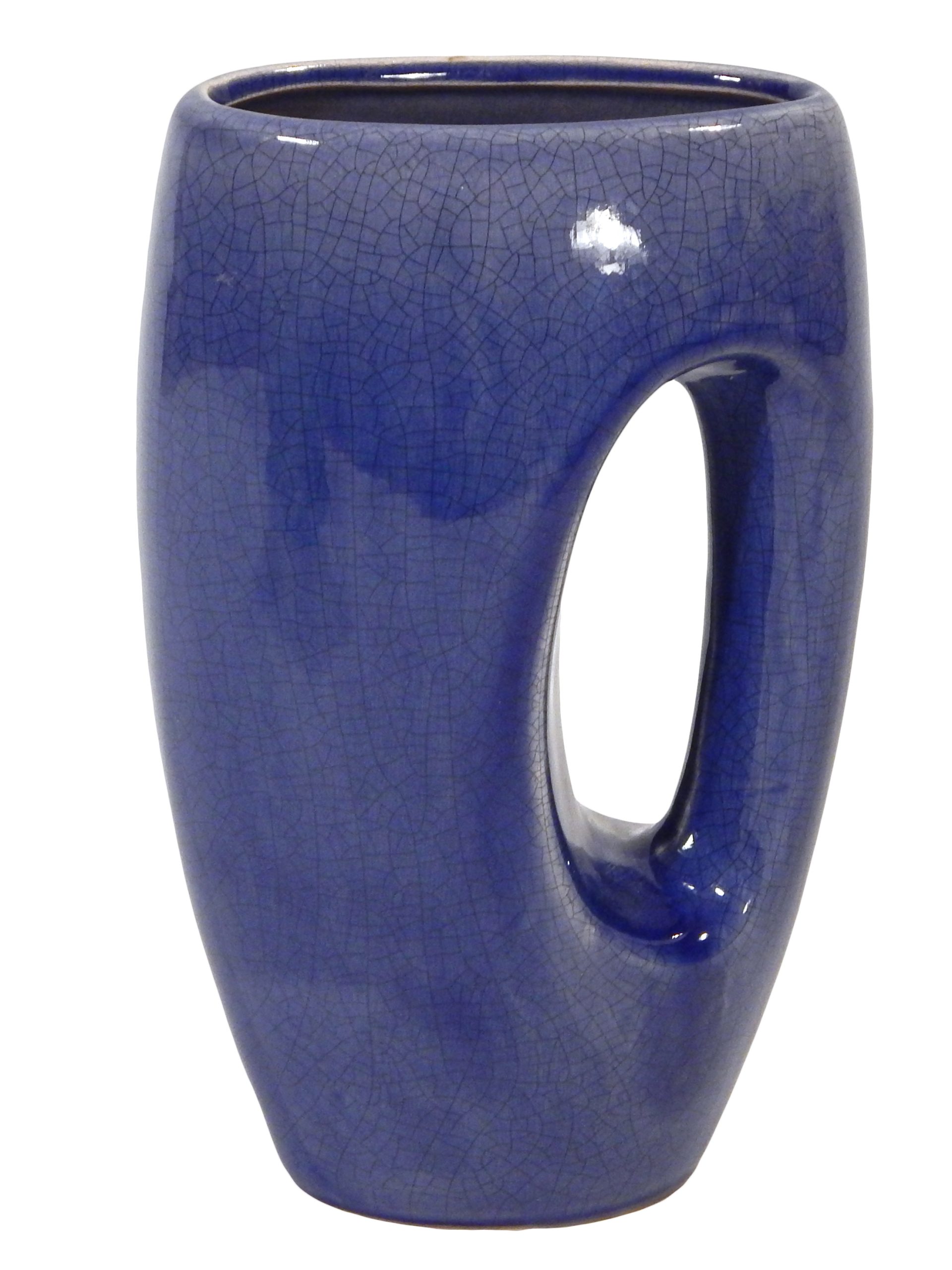 Mid-Century, Ceramic Handled Vase with Glossy Blue Crackle Effect Glaze