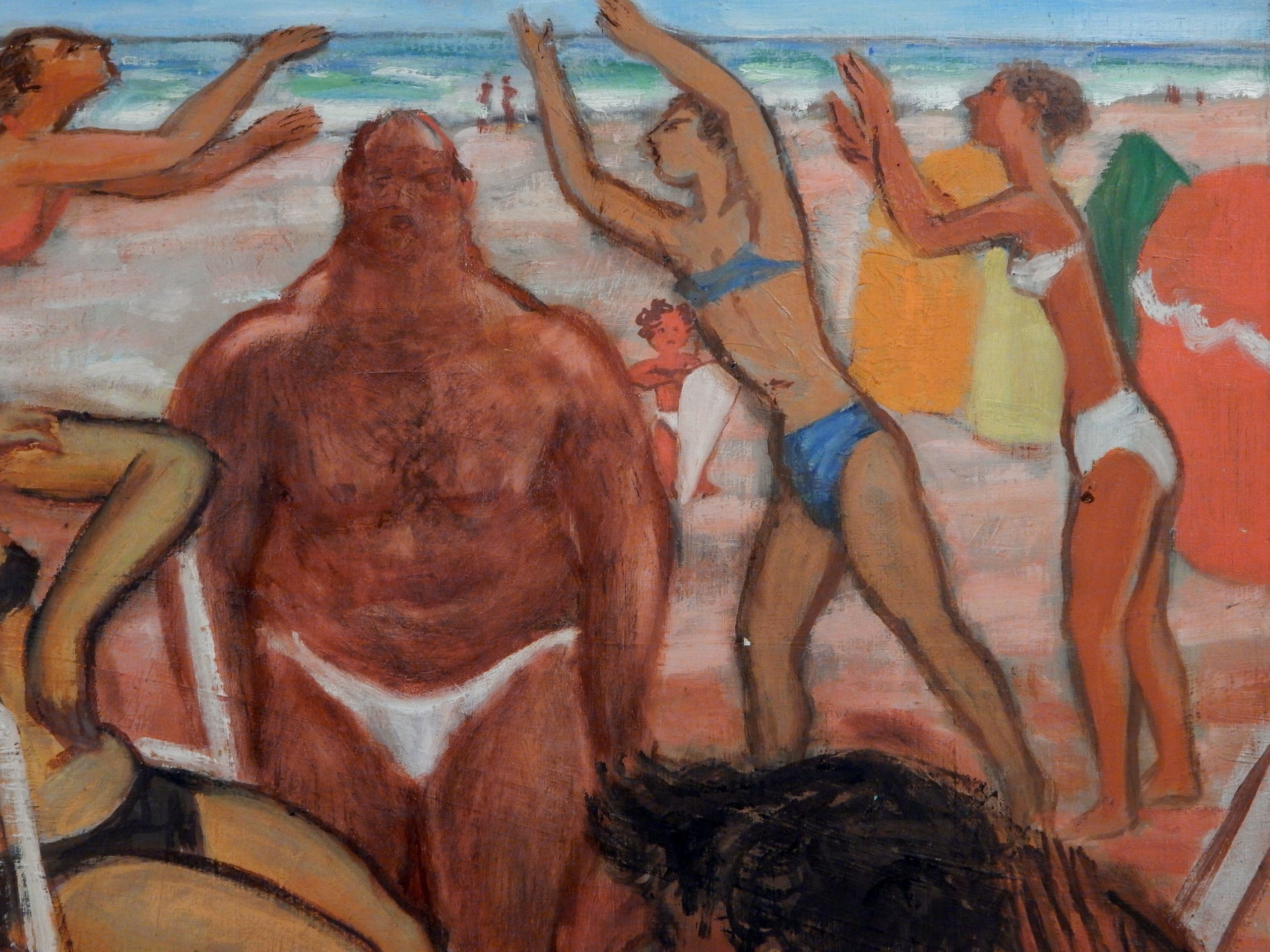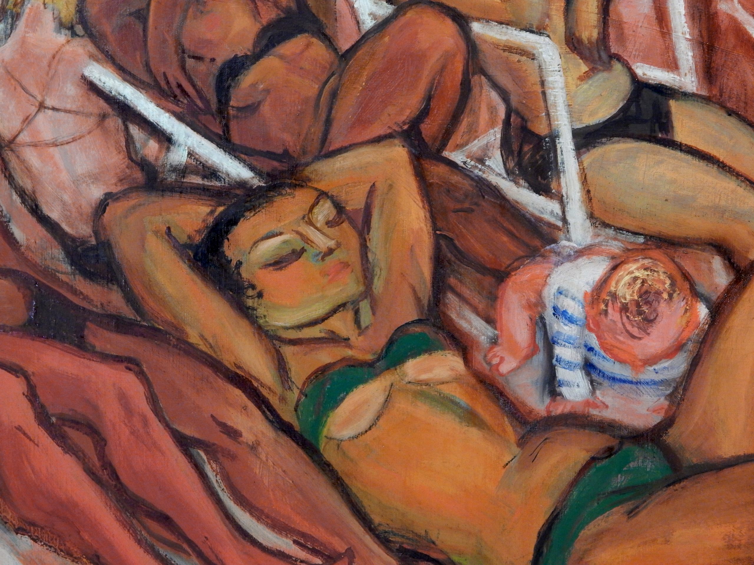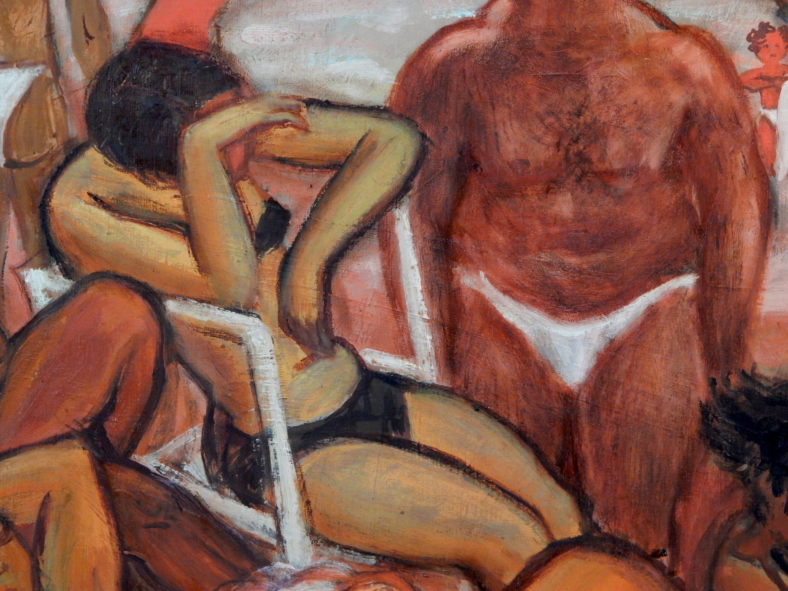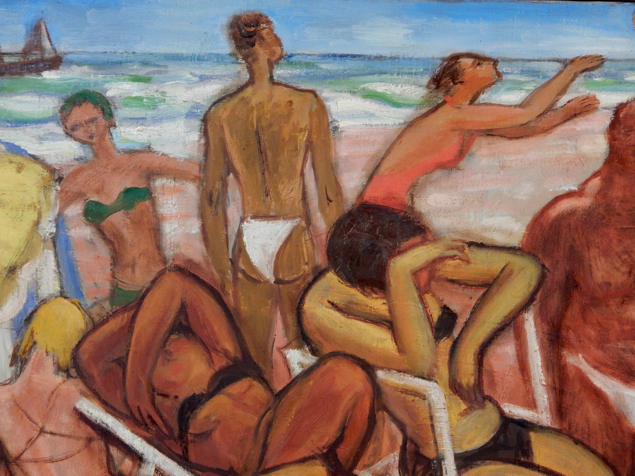 Delightful, Crowded Beach Scene by French Illustrator, Painter & Designer, Robert Bonfils (1886-1972)