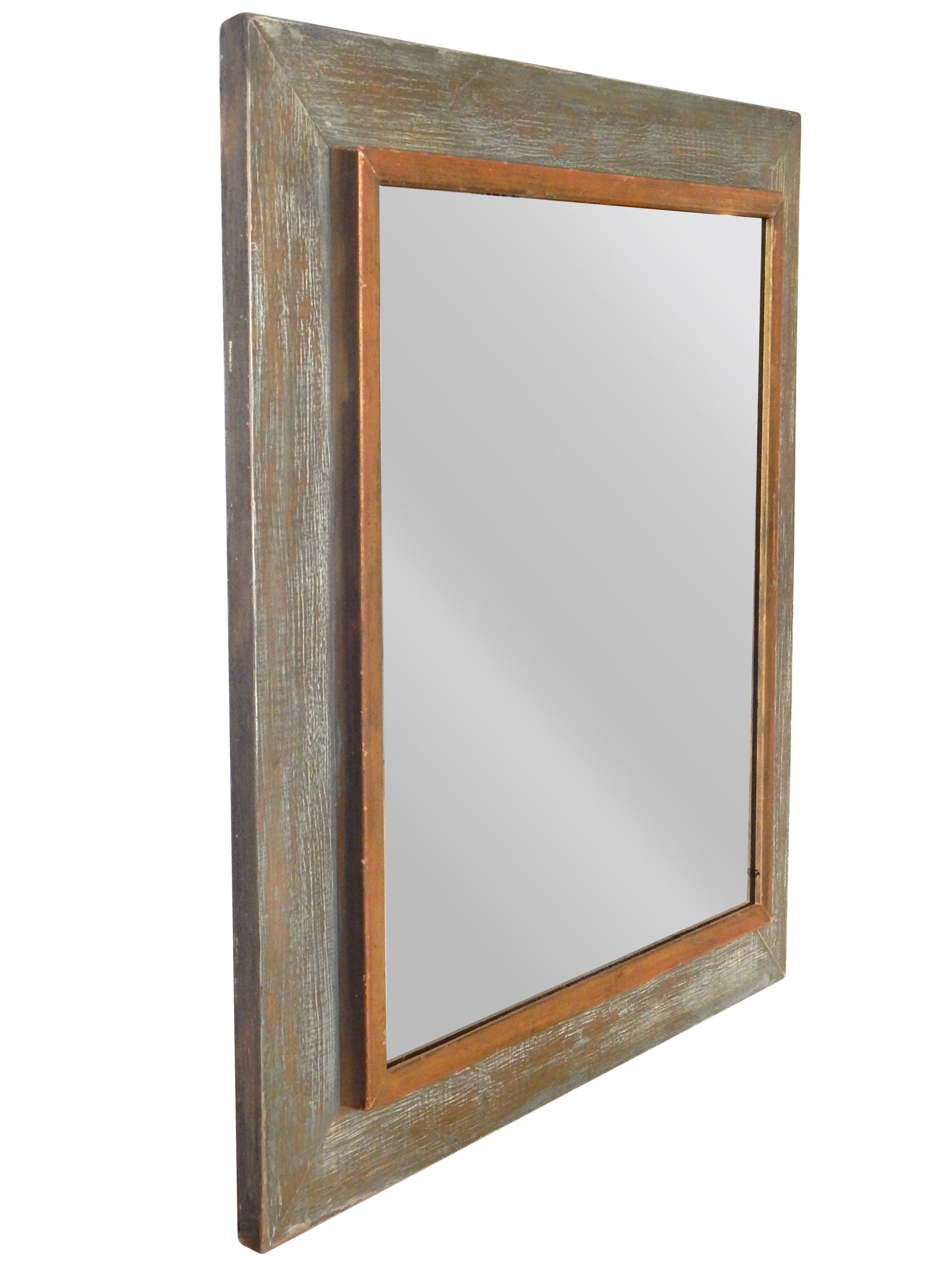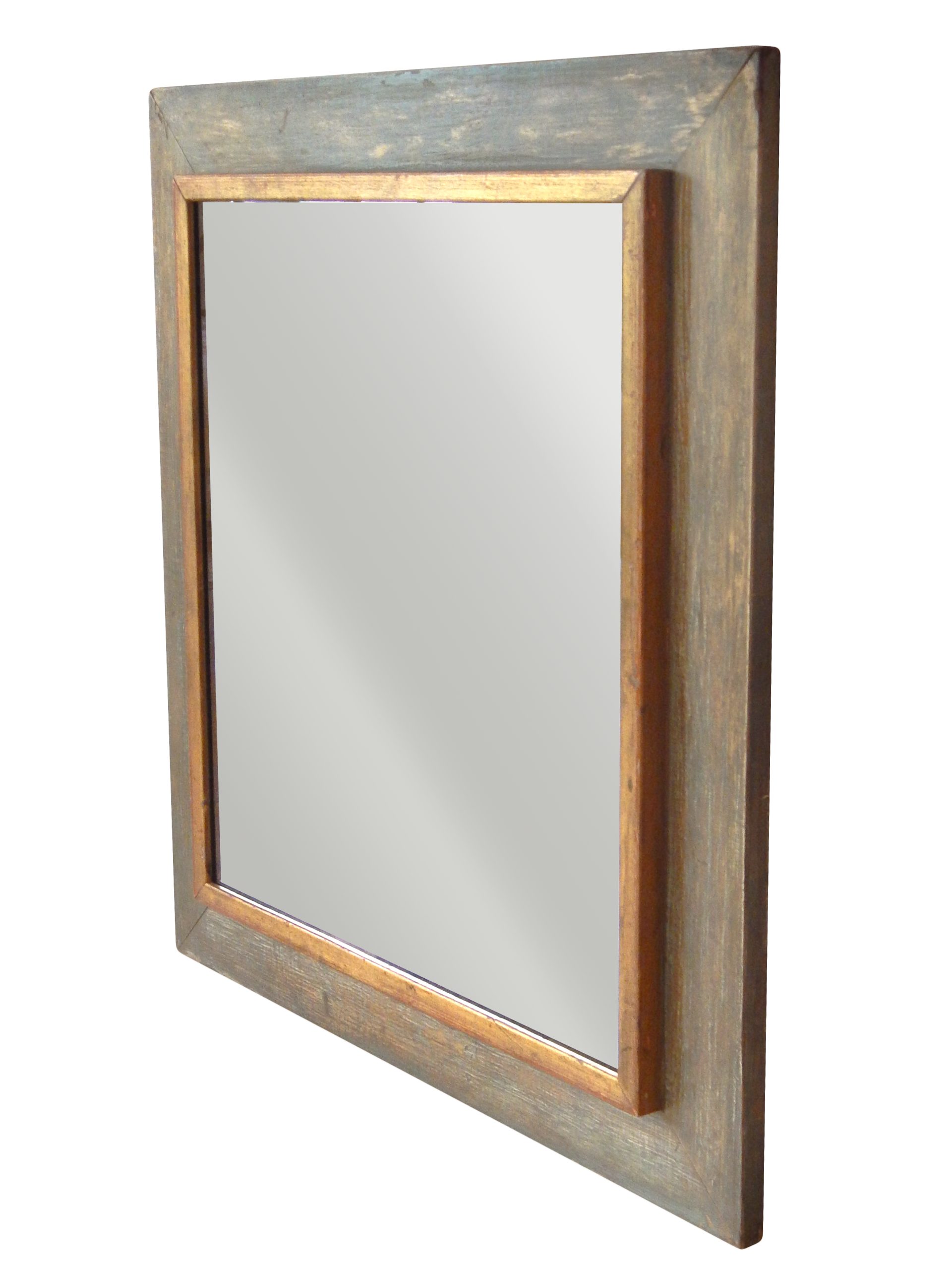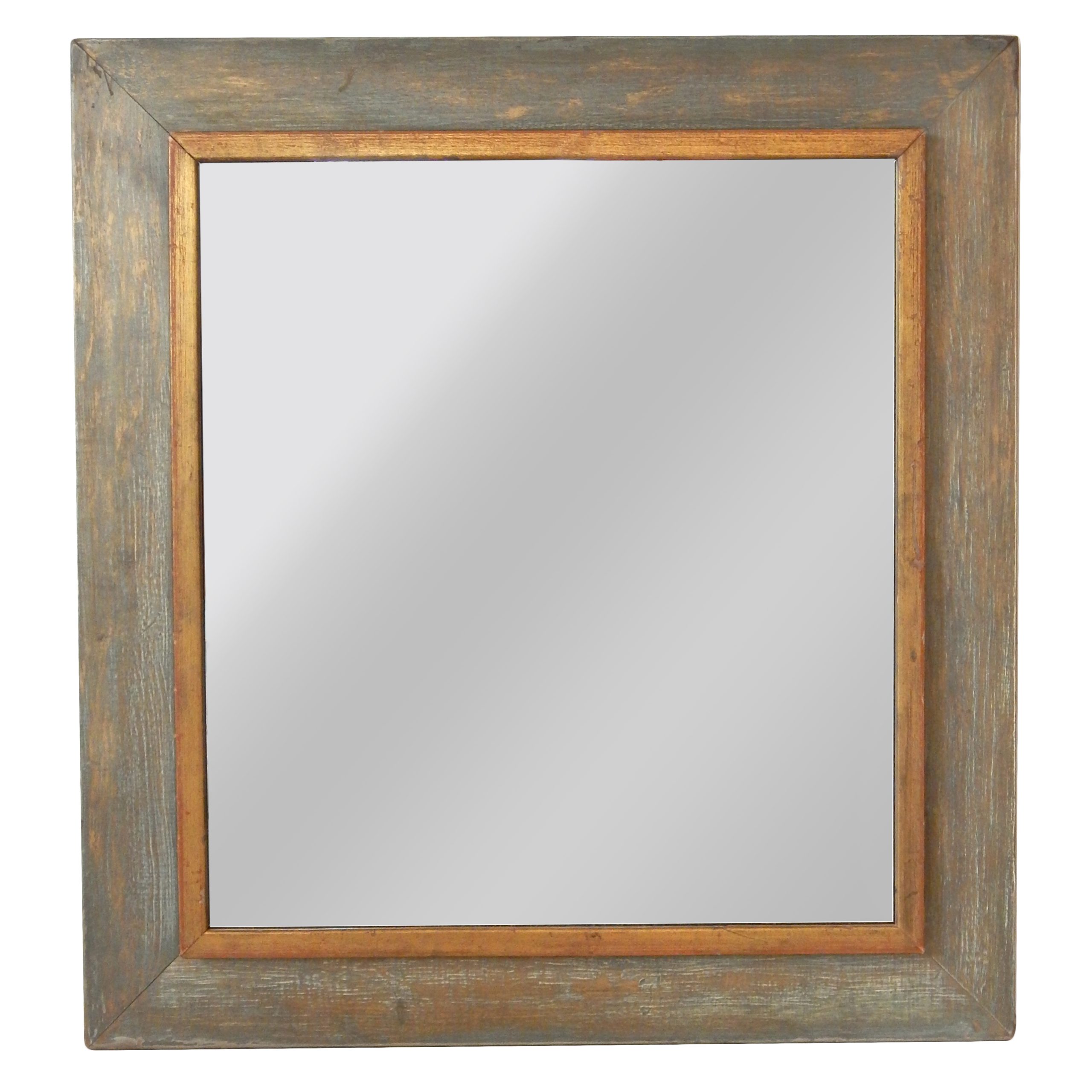 Vintage Frame, Painted in Green and Gray Tones with Gold Molding and New Glass