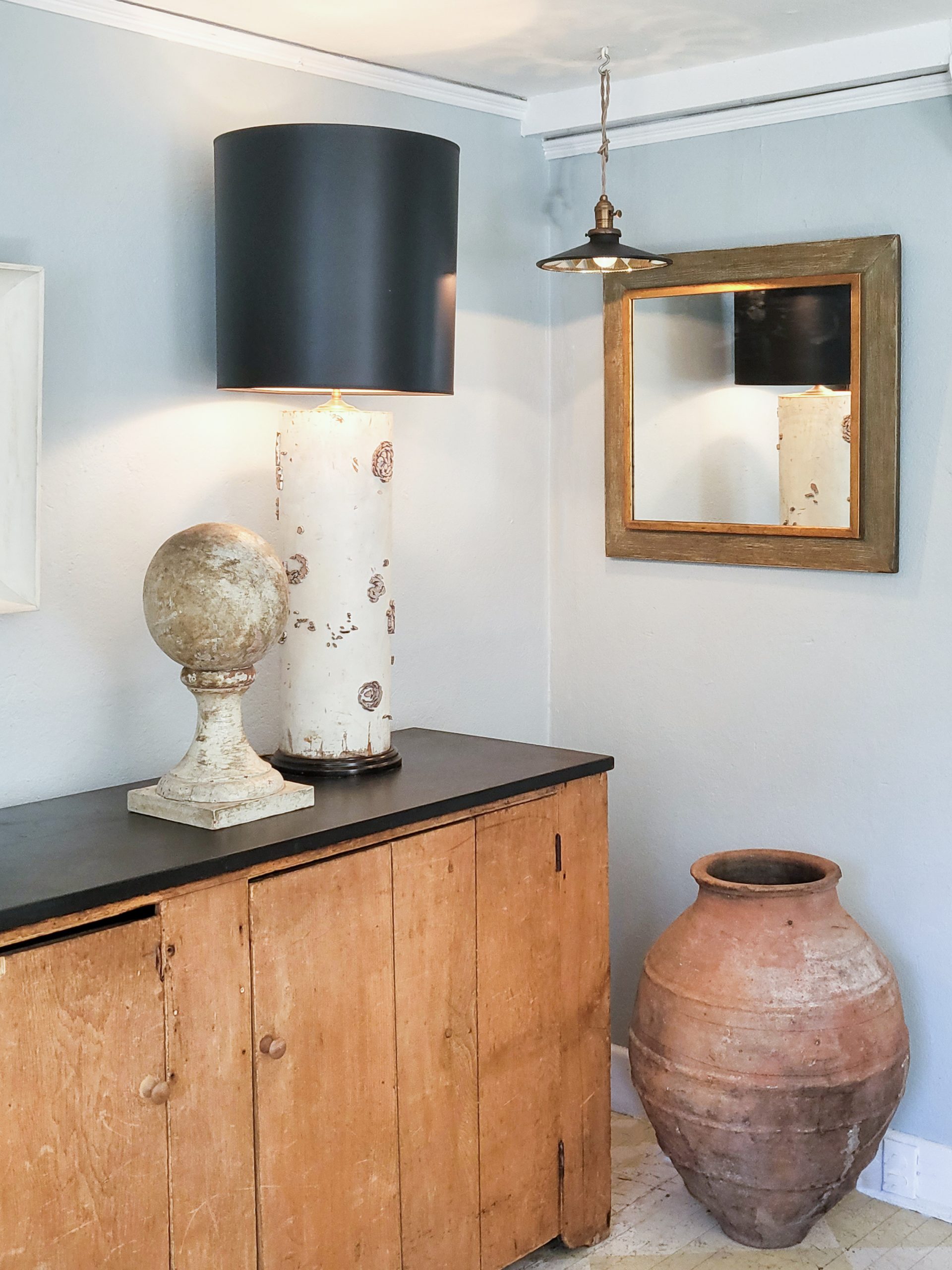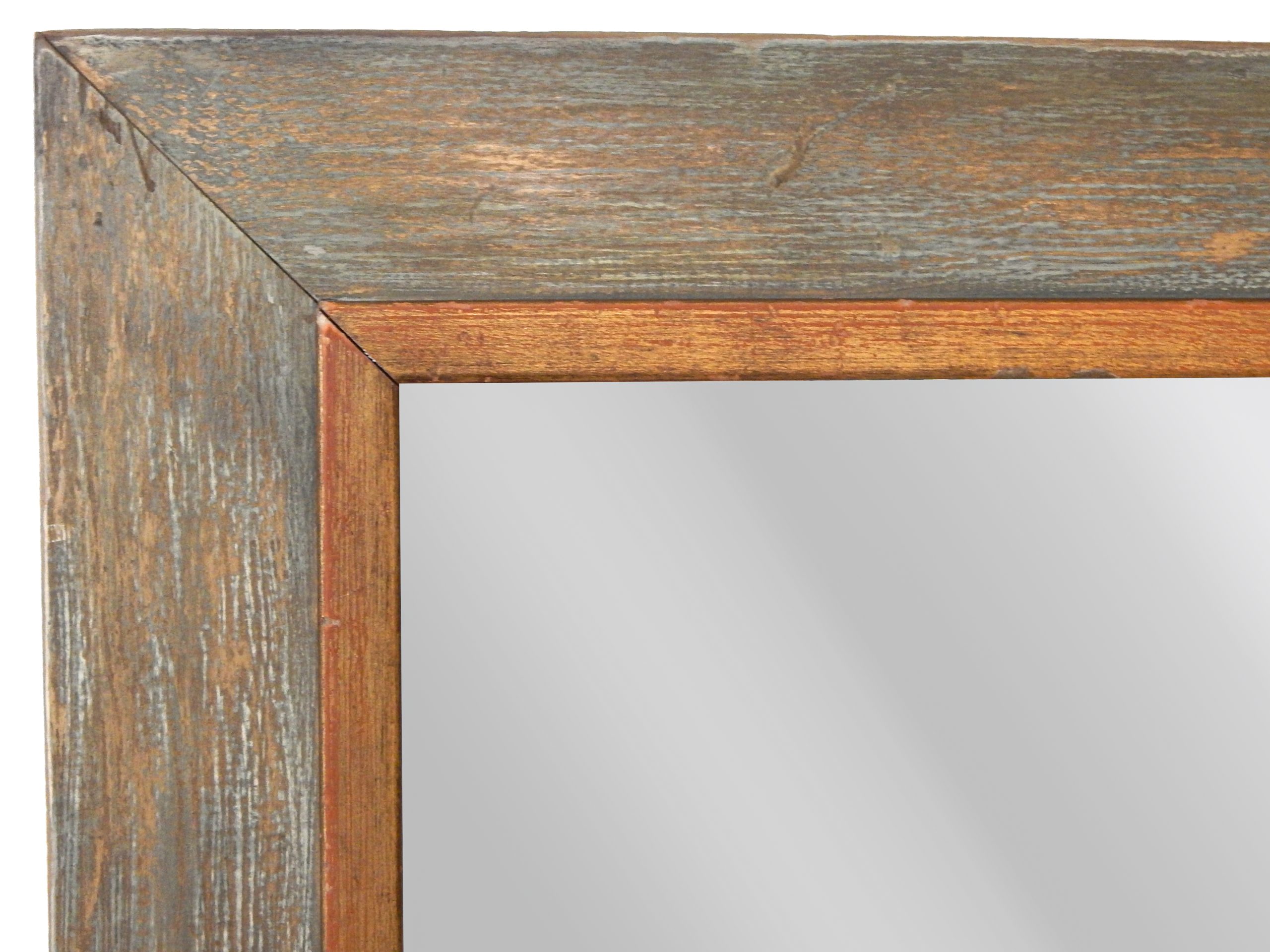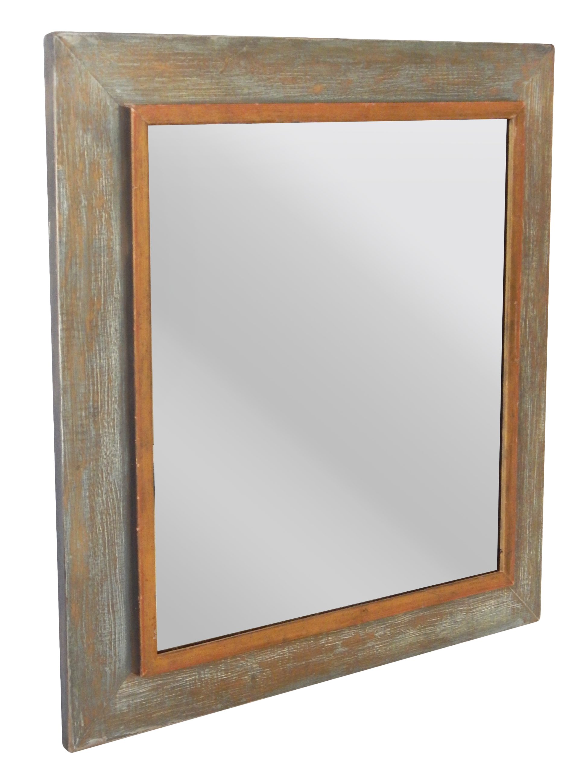 Vintage Frame, Painted in Green and Gray Tones with Gold Molding and New Glass