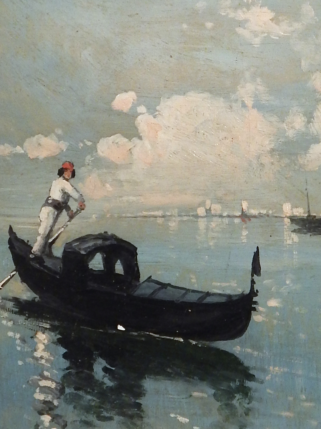 Small, Mid Century Painting Titled ‘Gondolier Near Venice’ by Martin Rico Y Ortega (1833-1908)