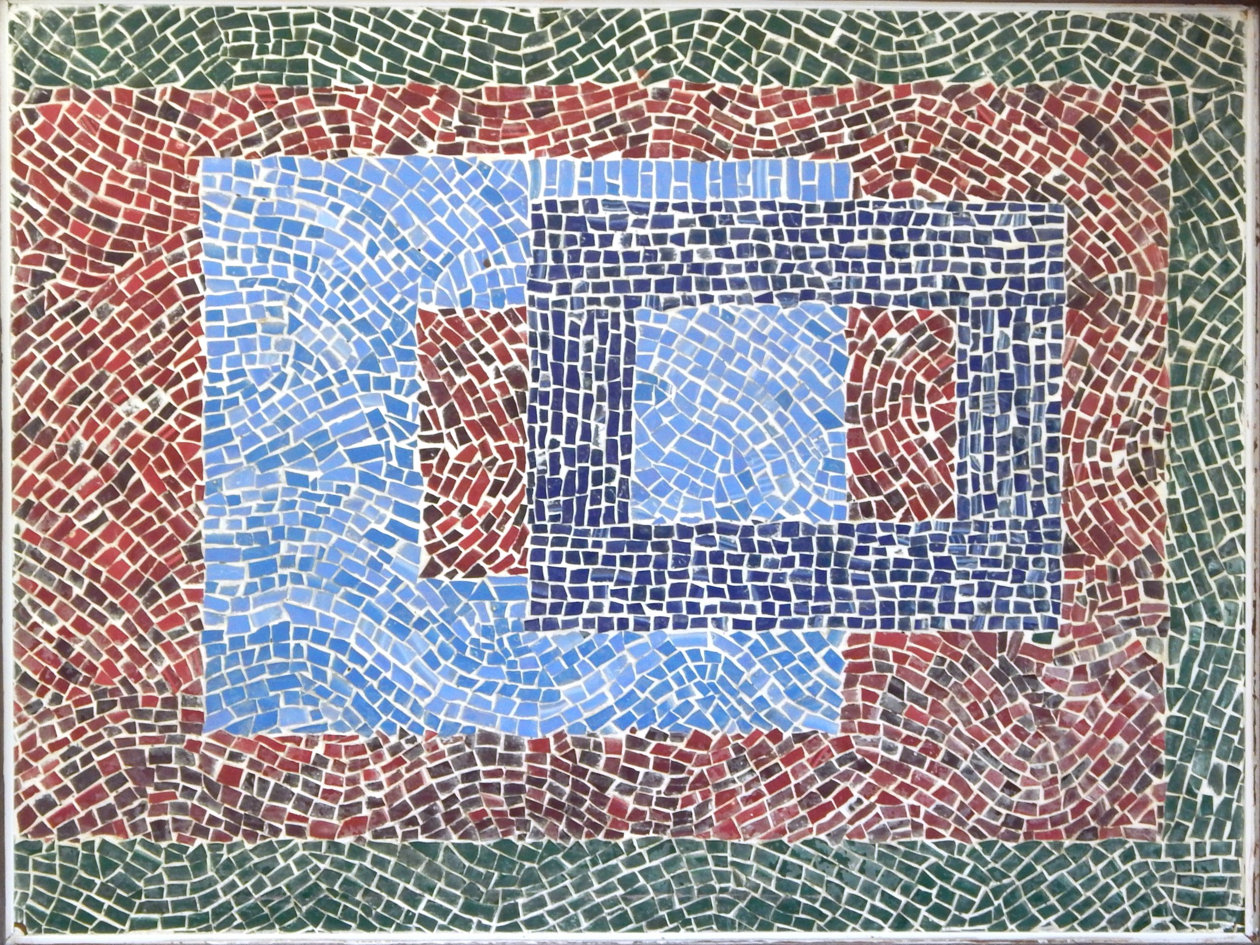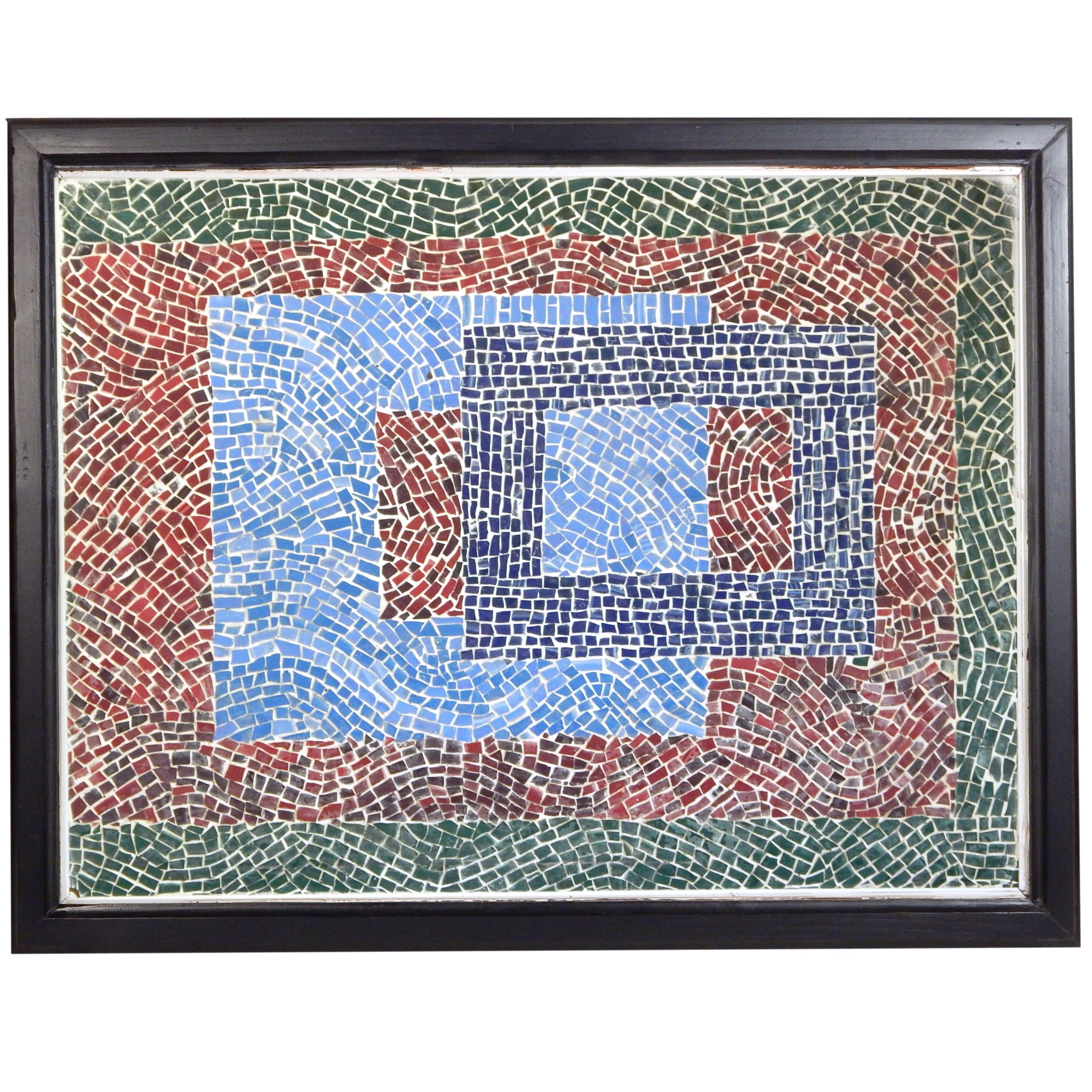 Mid Century, Geometrical Mosaic Tile Art in a Black Wood Frame