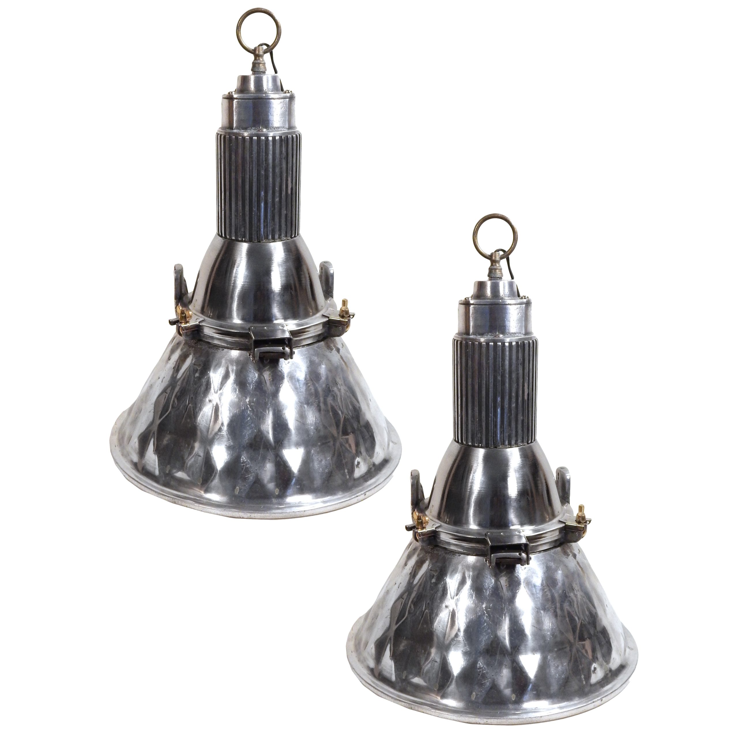 Pair of Early 20th Century, Industrial Fixtures with Quilted-like Pattern