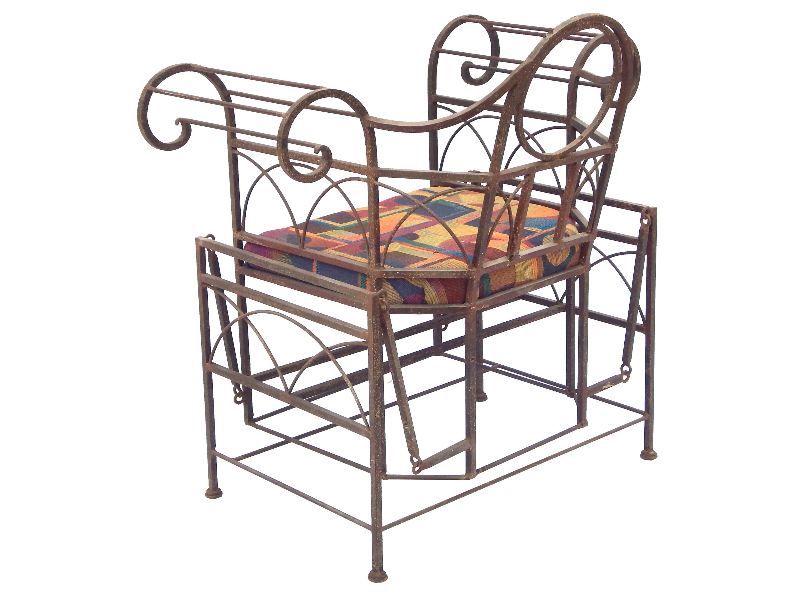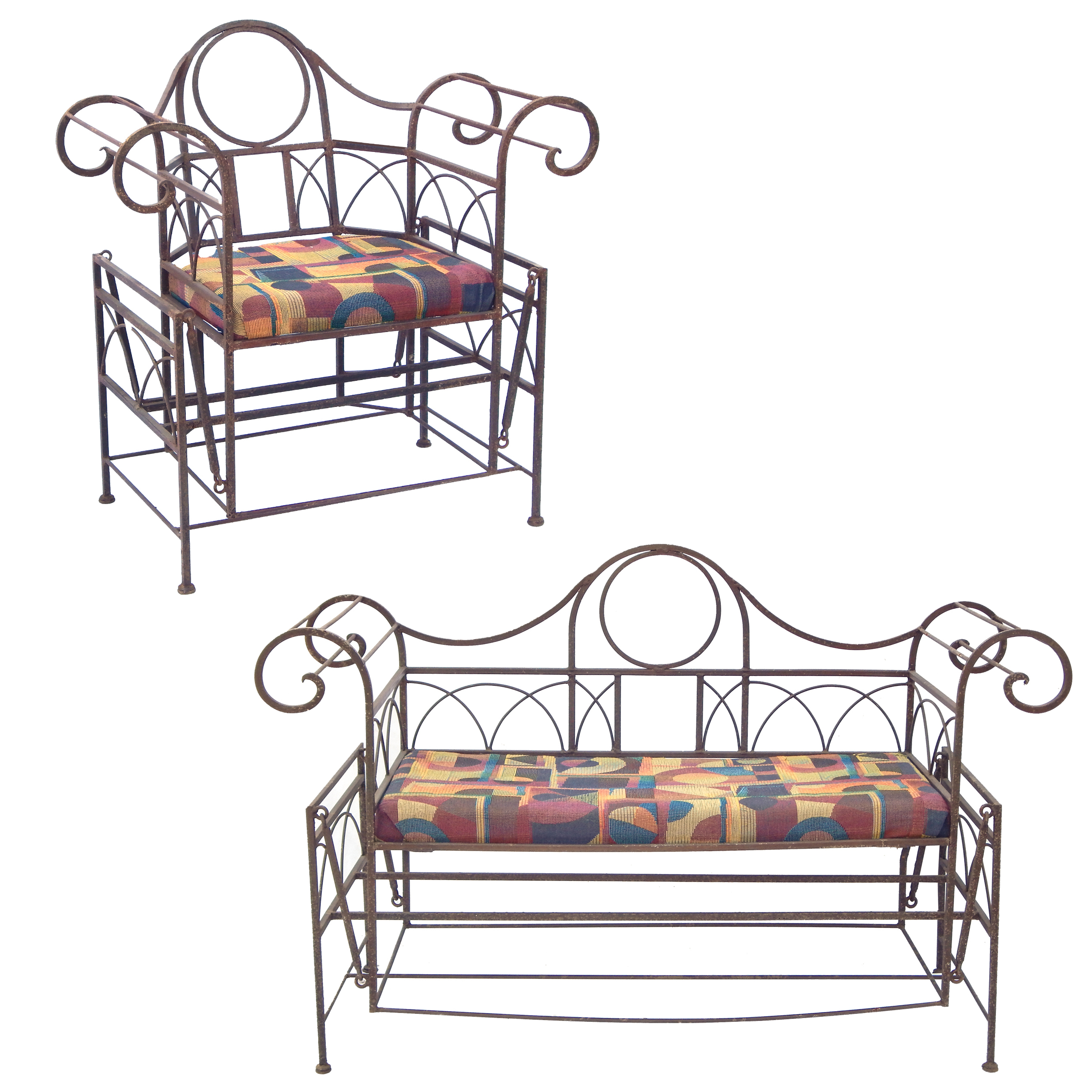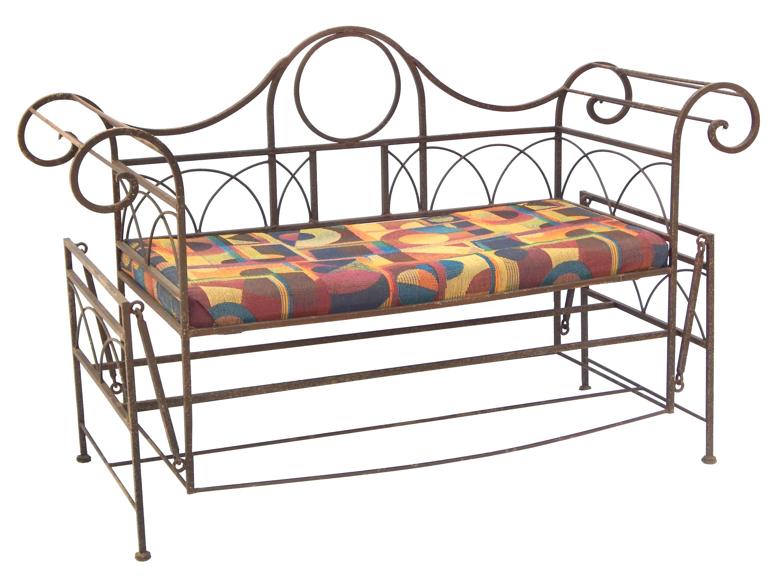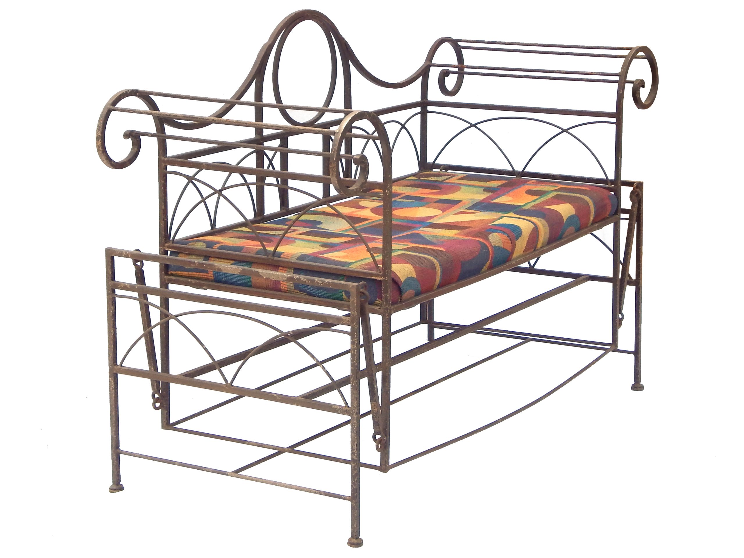 Mid Century Iron Patio Glider Set with Cushions
