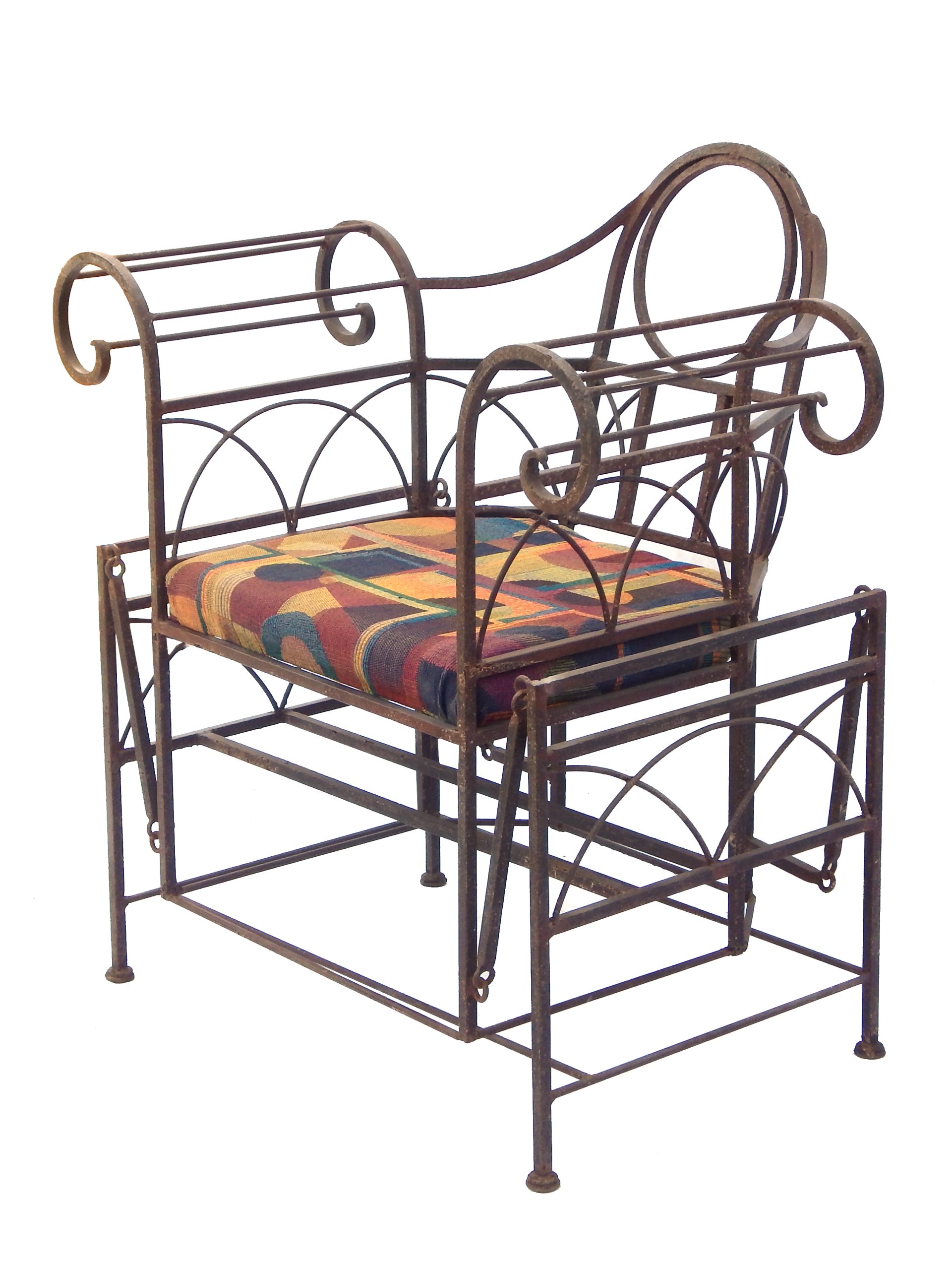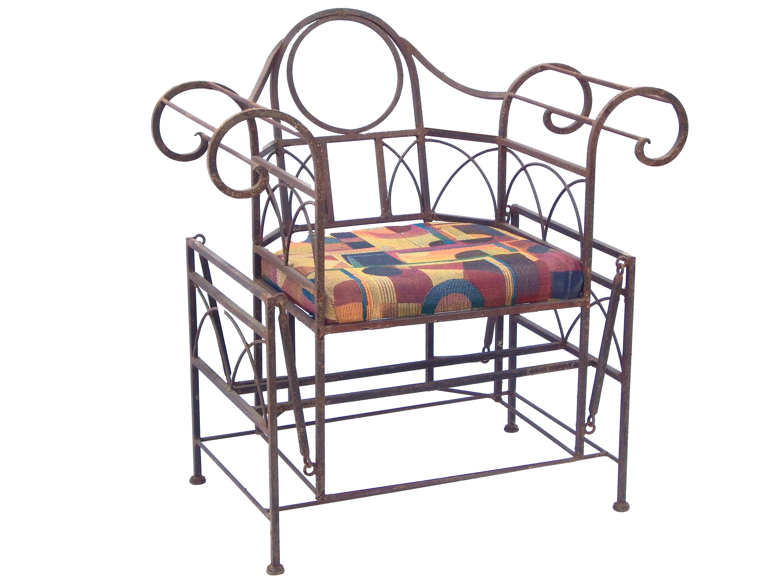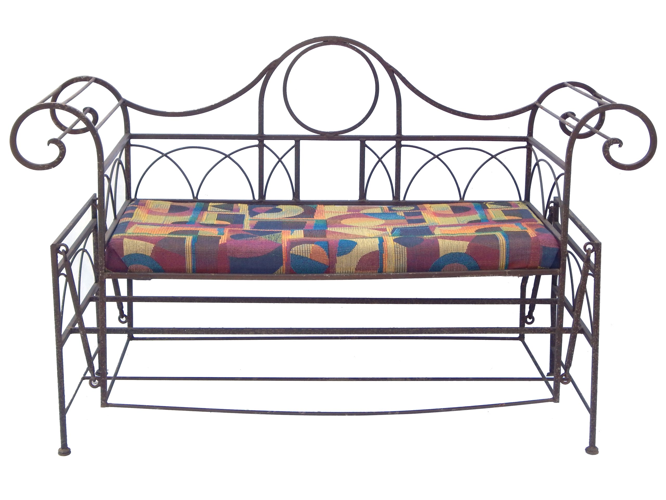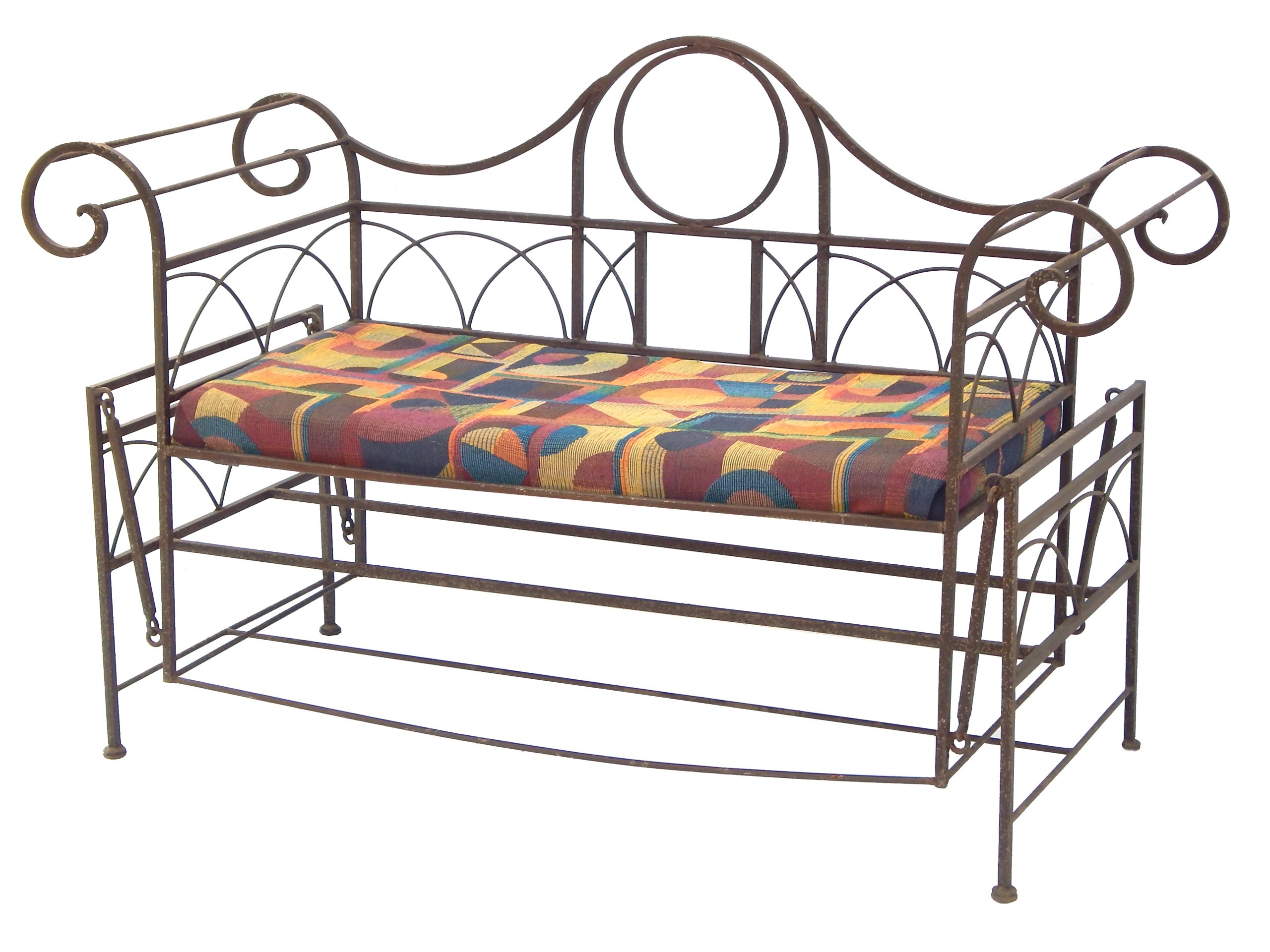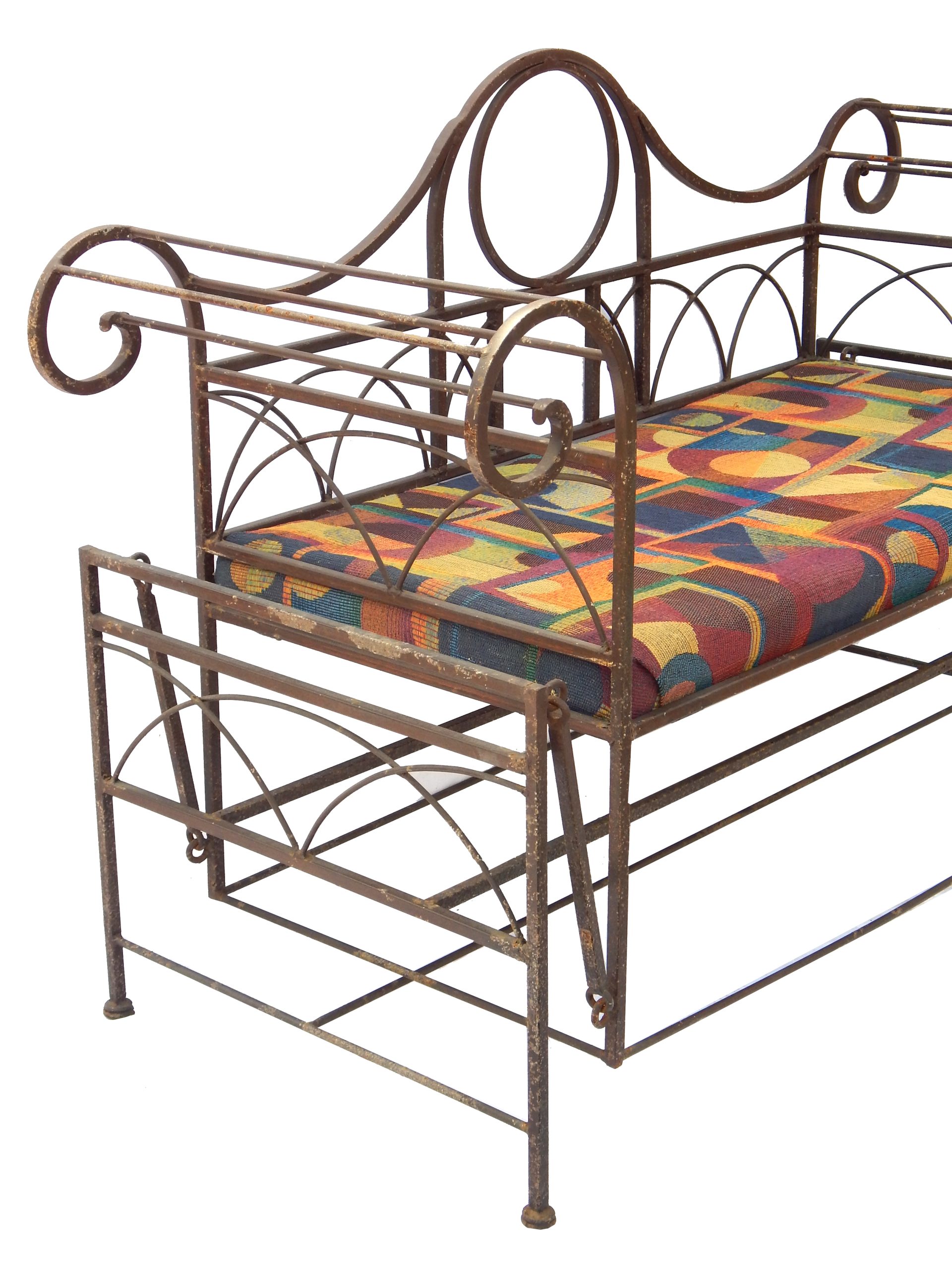 Mid Century Iron Patio Glider Set with Cushions