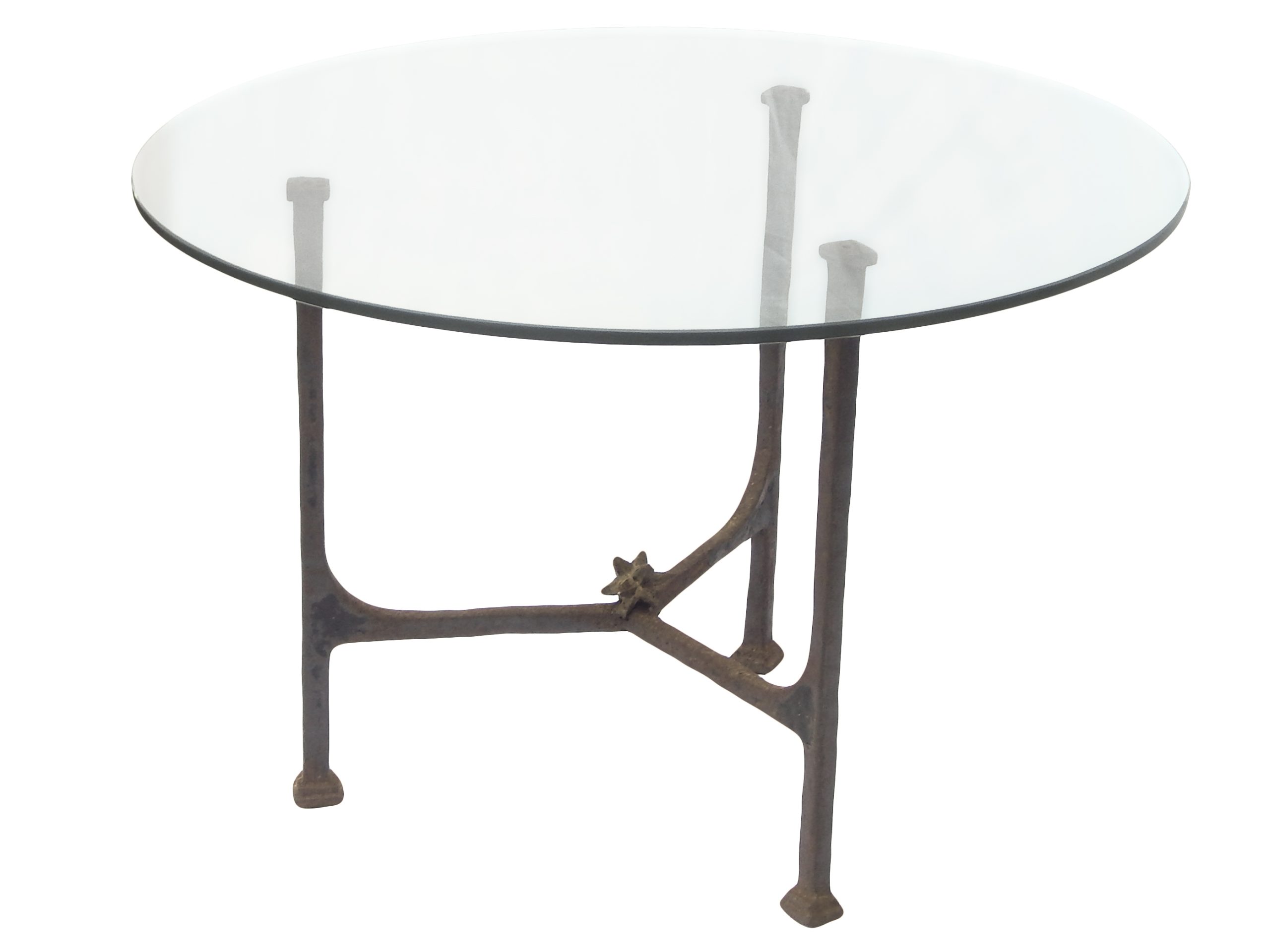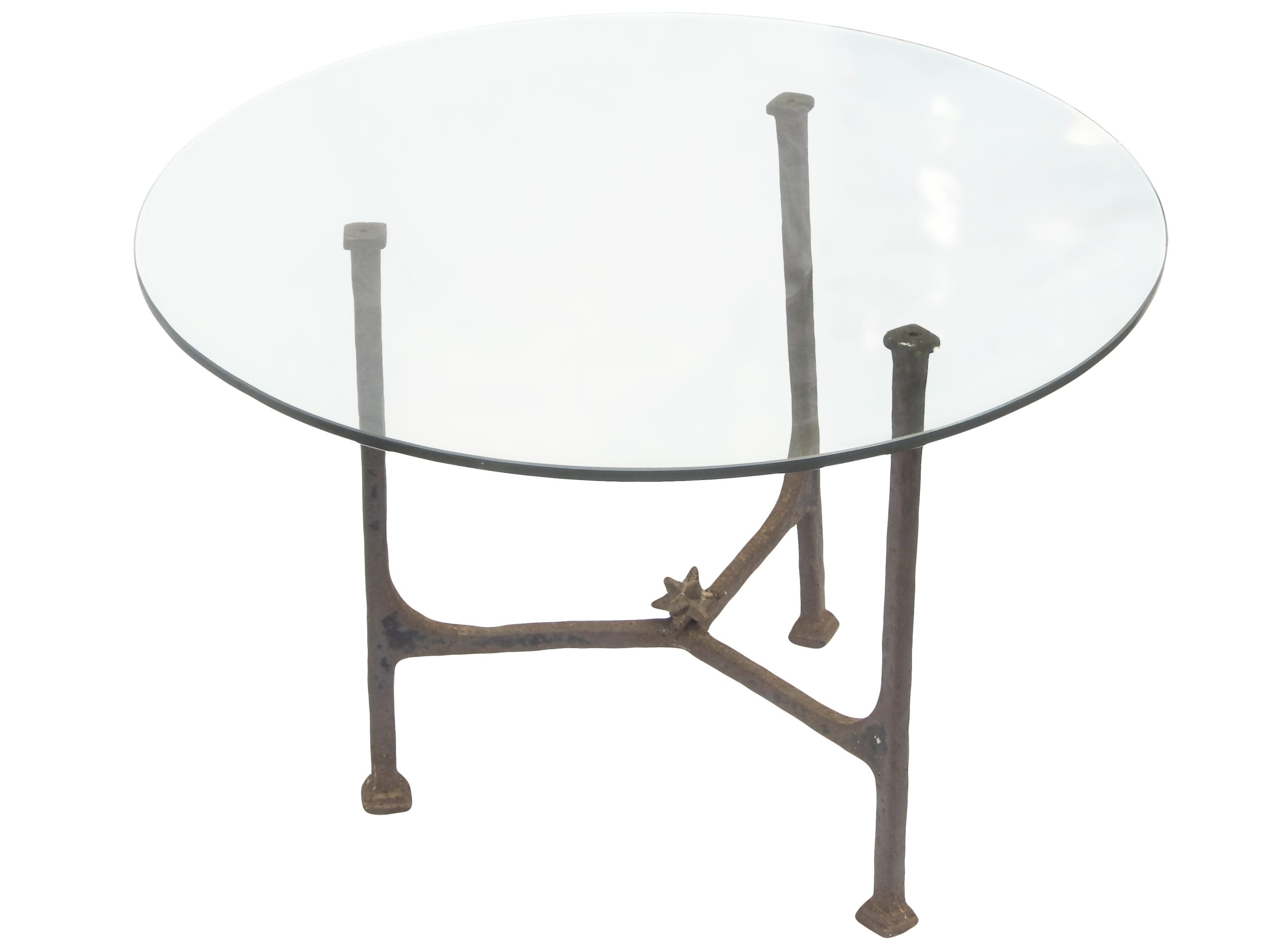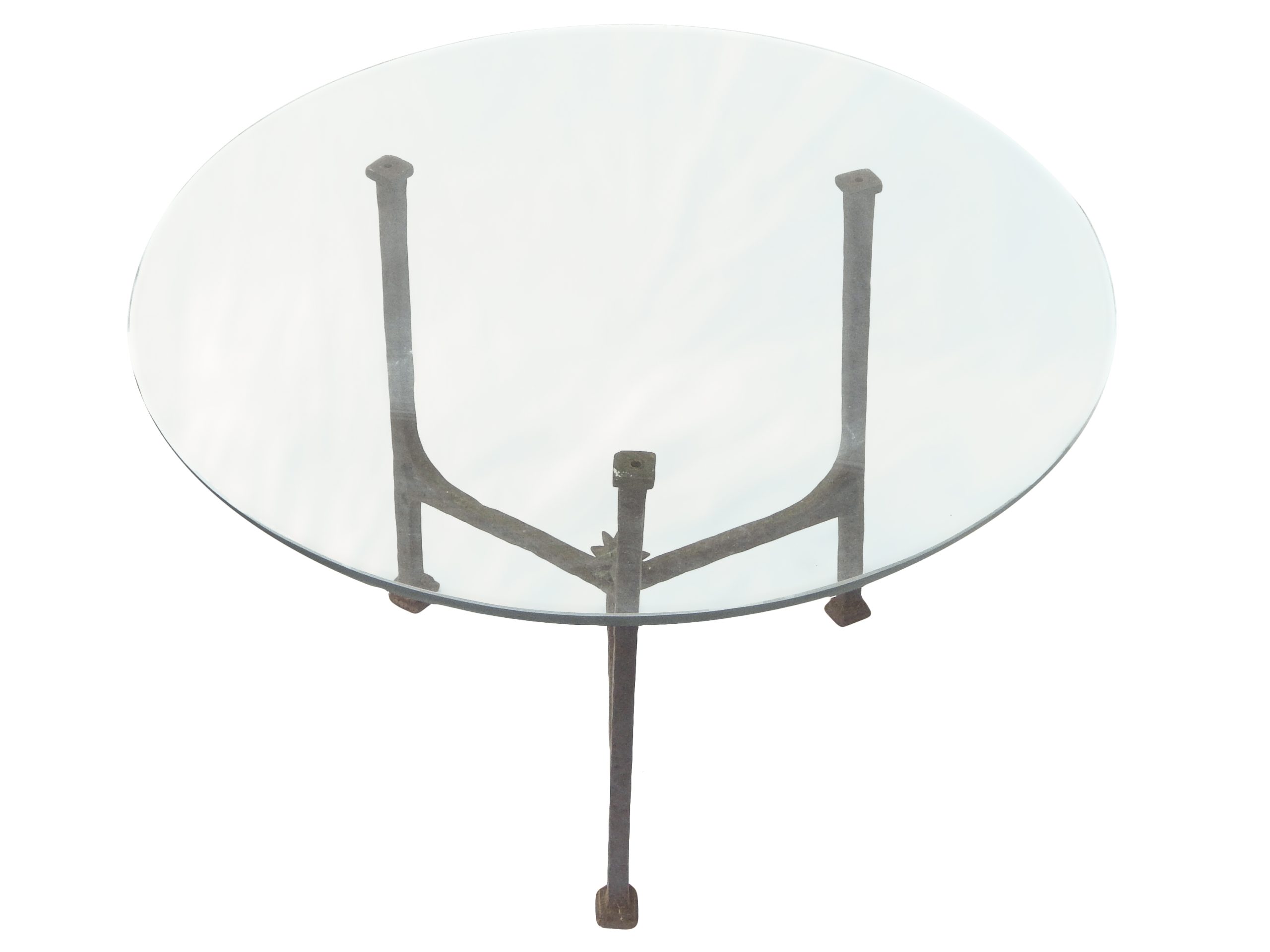 Late 20th Century Iron Side Table with Spiked Finial & Round Glass Top