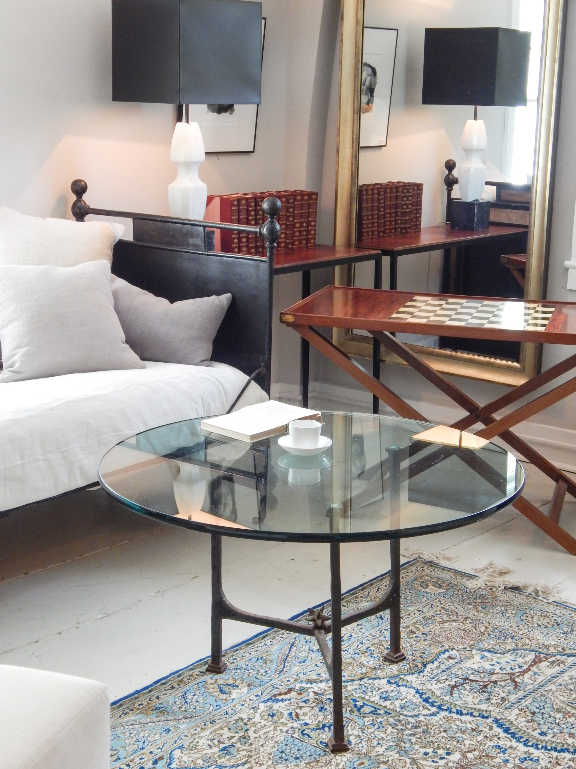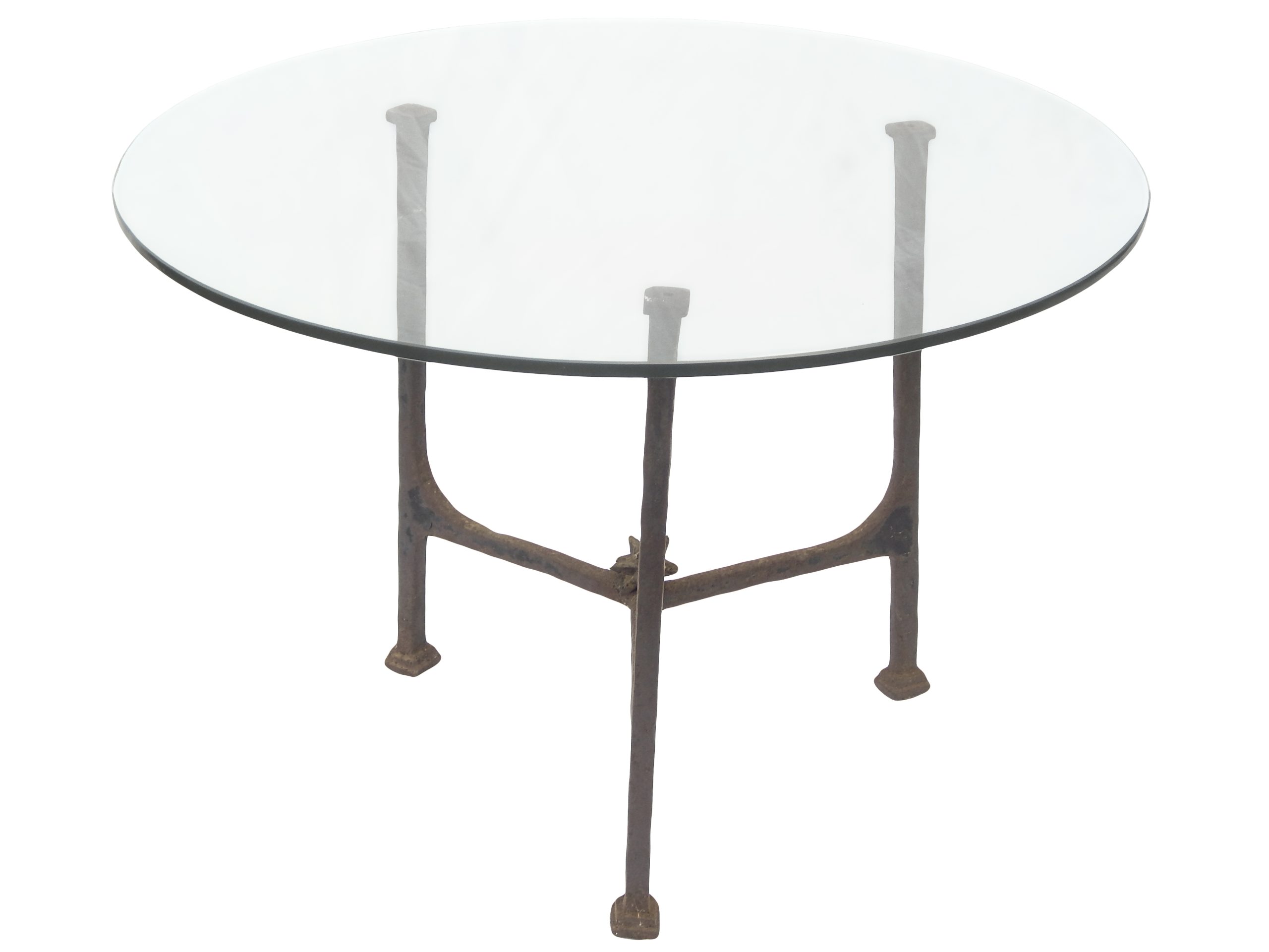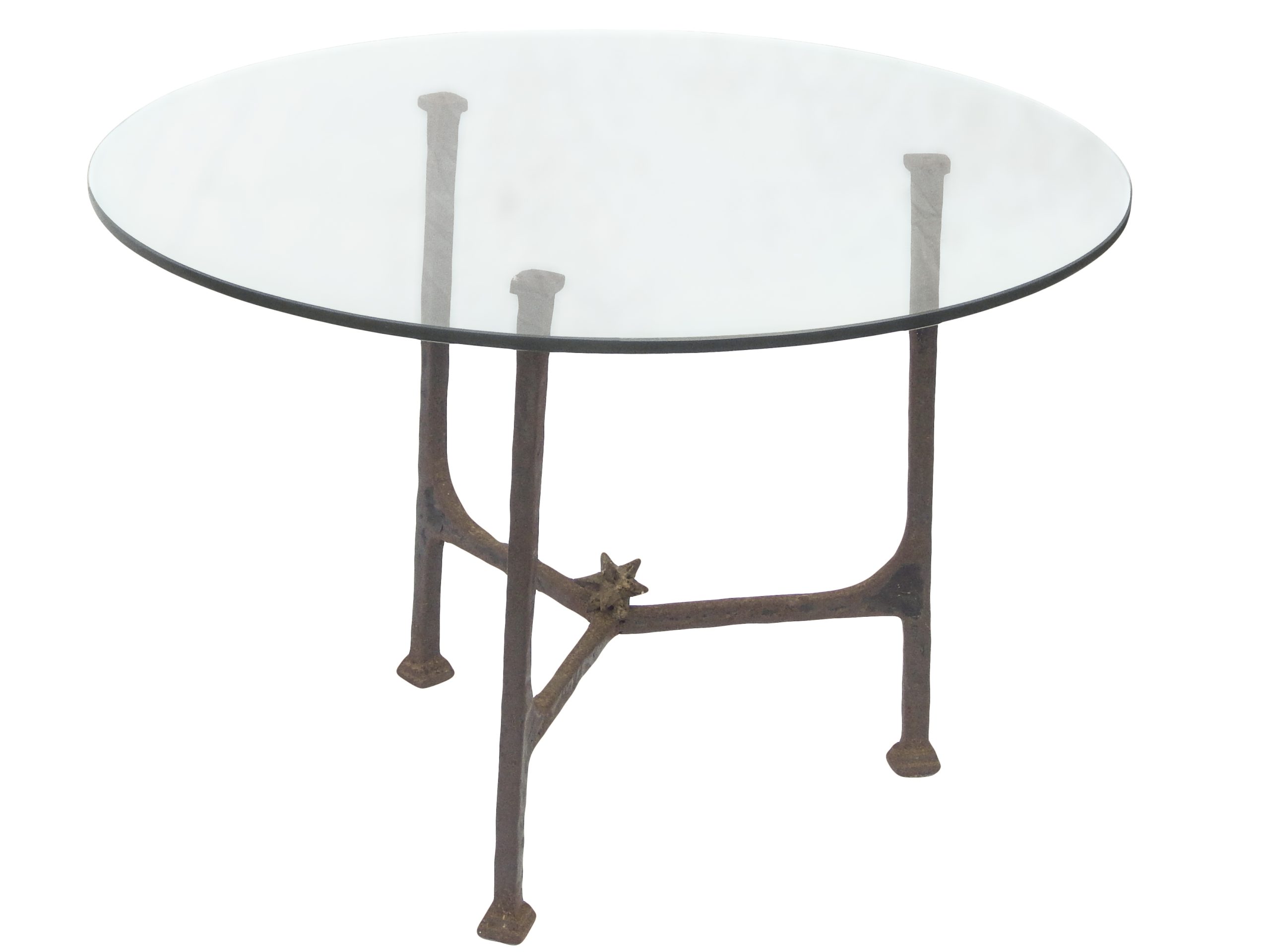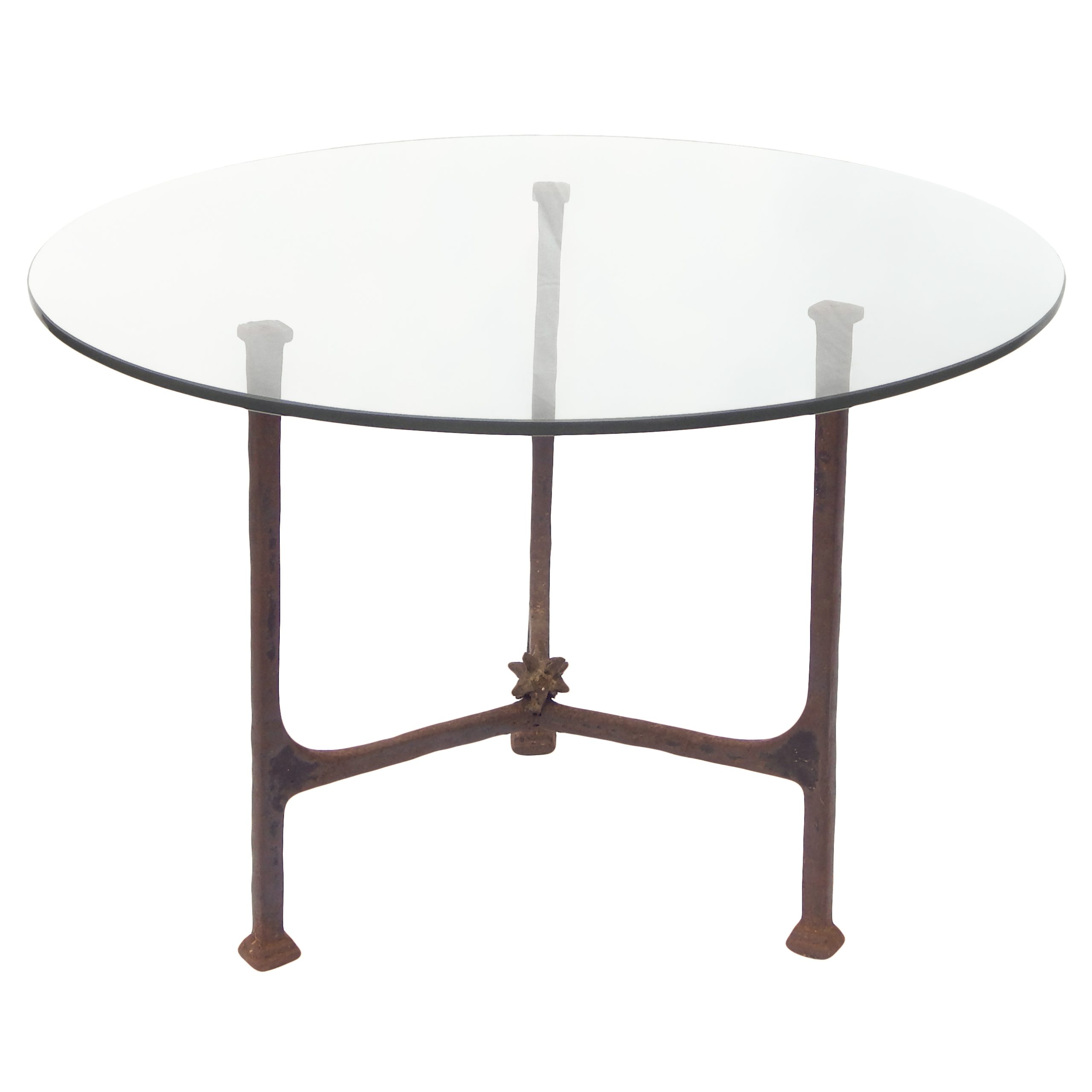 Late 20th Century Iron Side Table with Spiked Finial & Round Glass Top