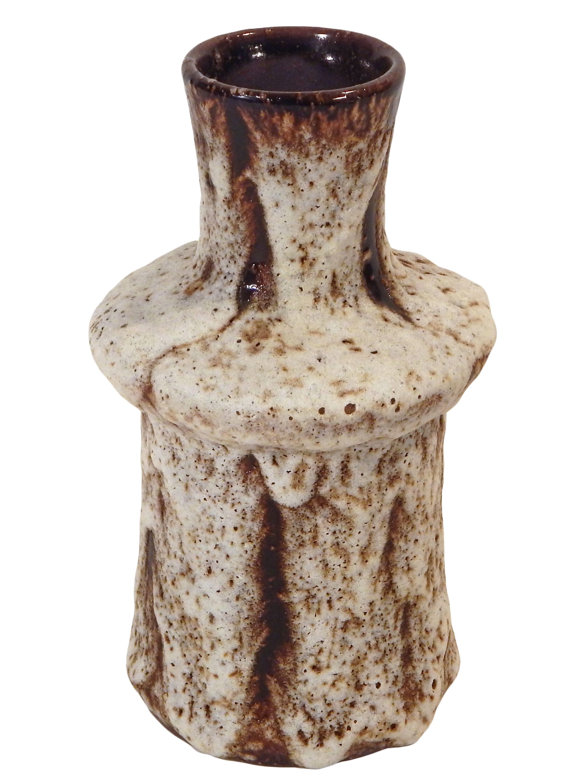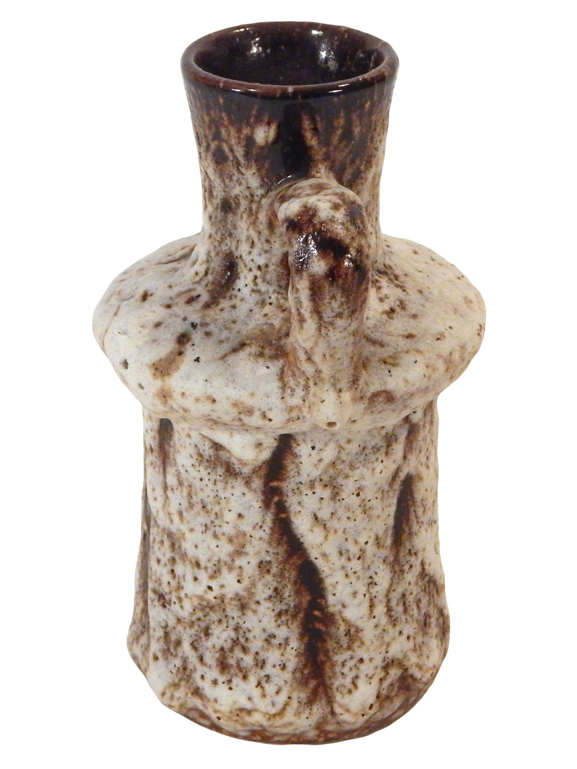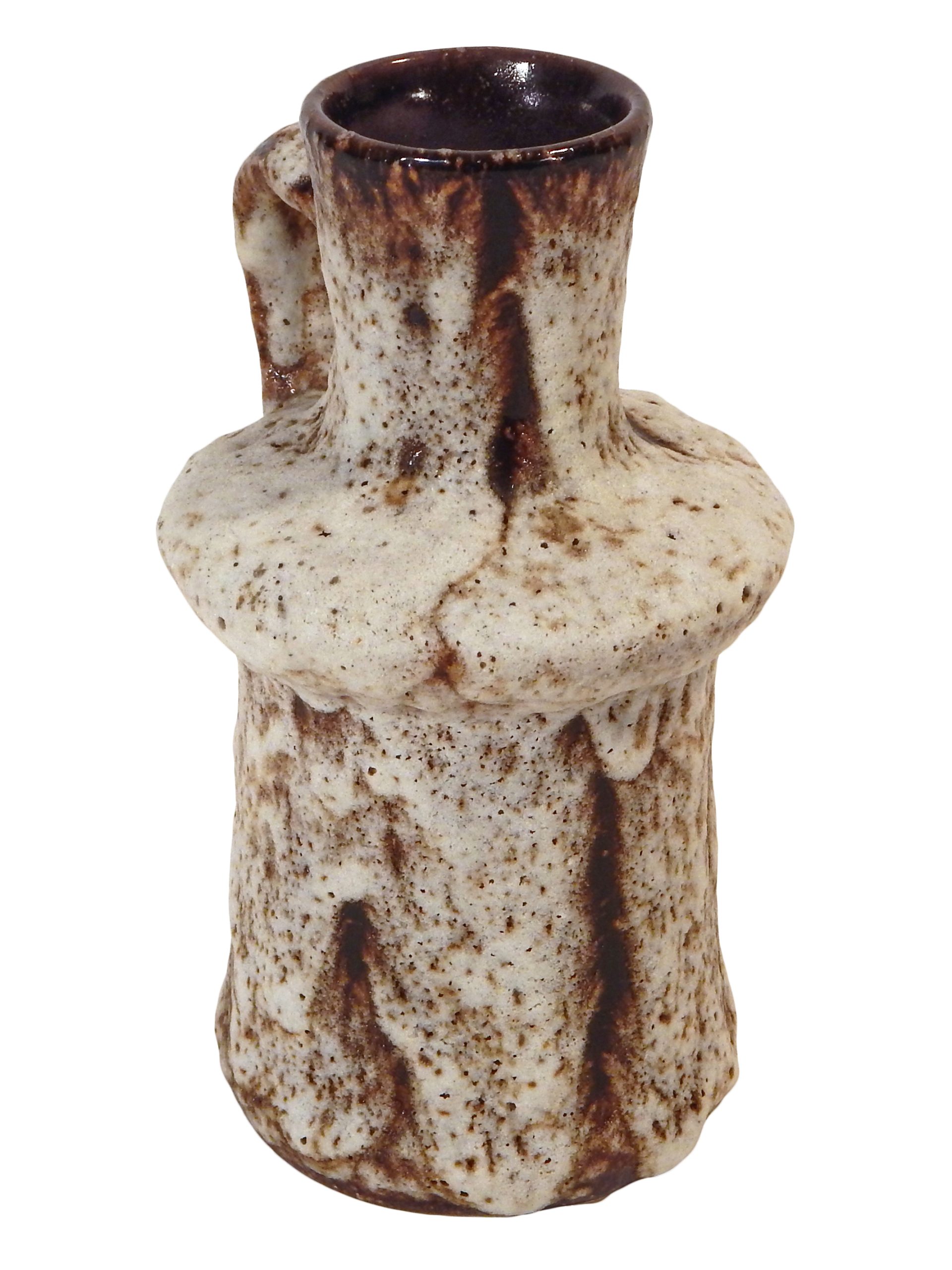Deep Brown & Sandy Colored, Fat Lava Handled Vase by Jopeko Keramik