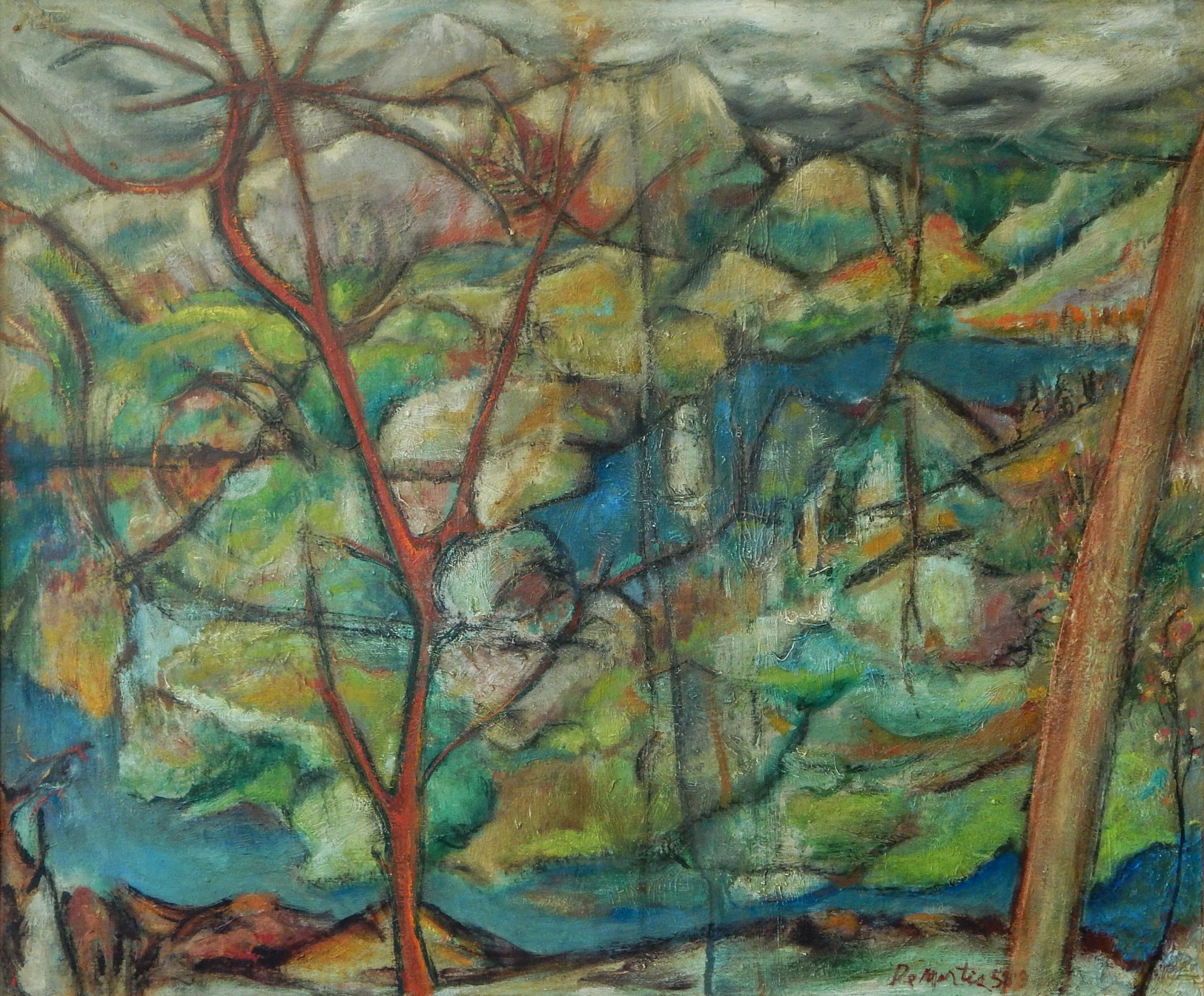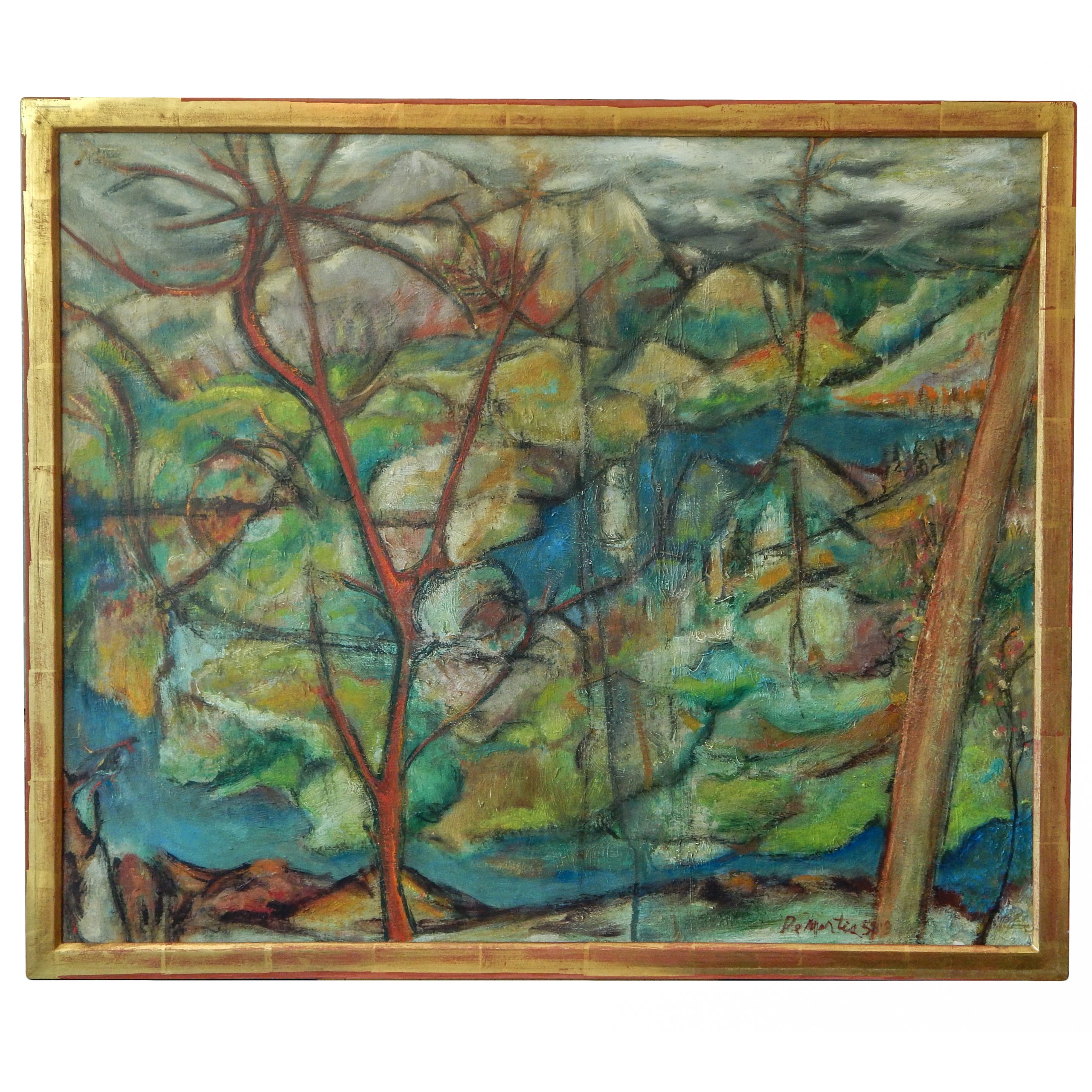 American Post-Impressionist, Green and Blue Toned Landscape by James Dimartis