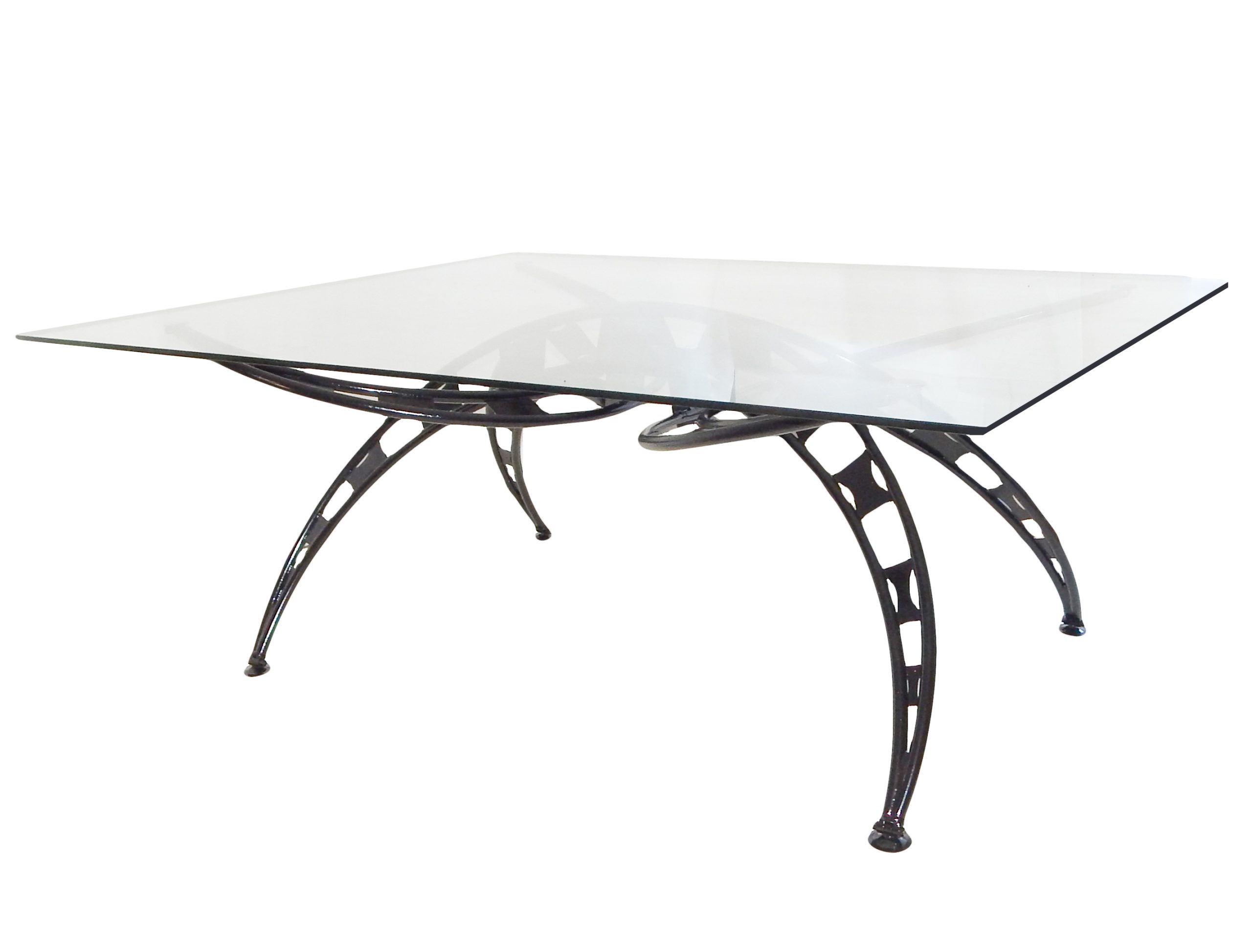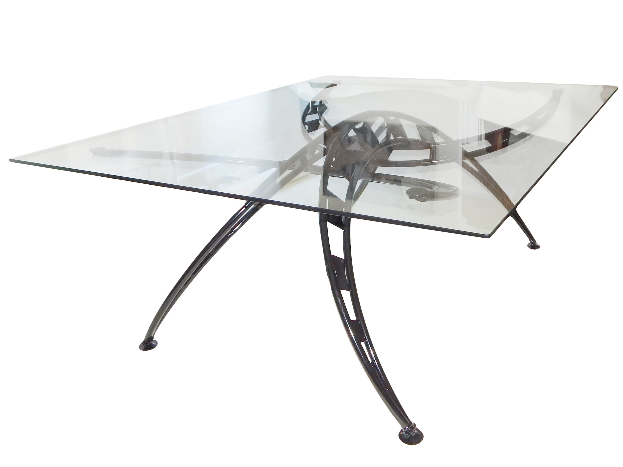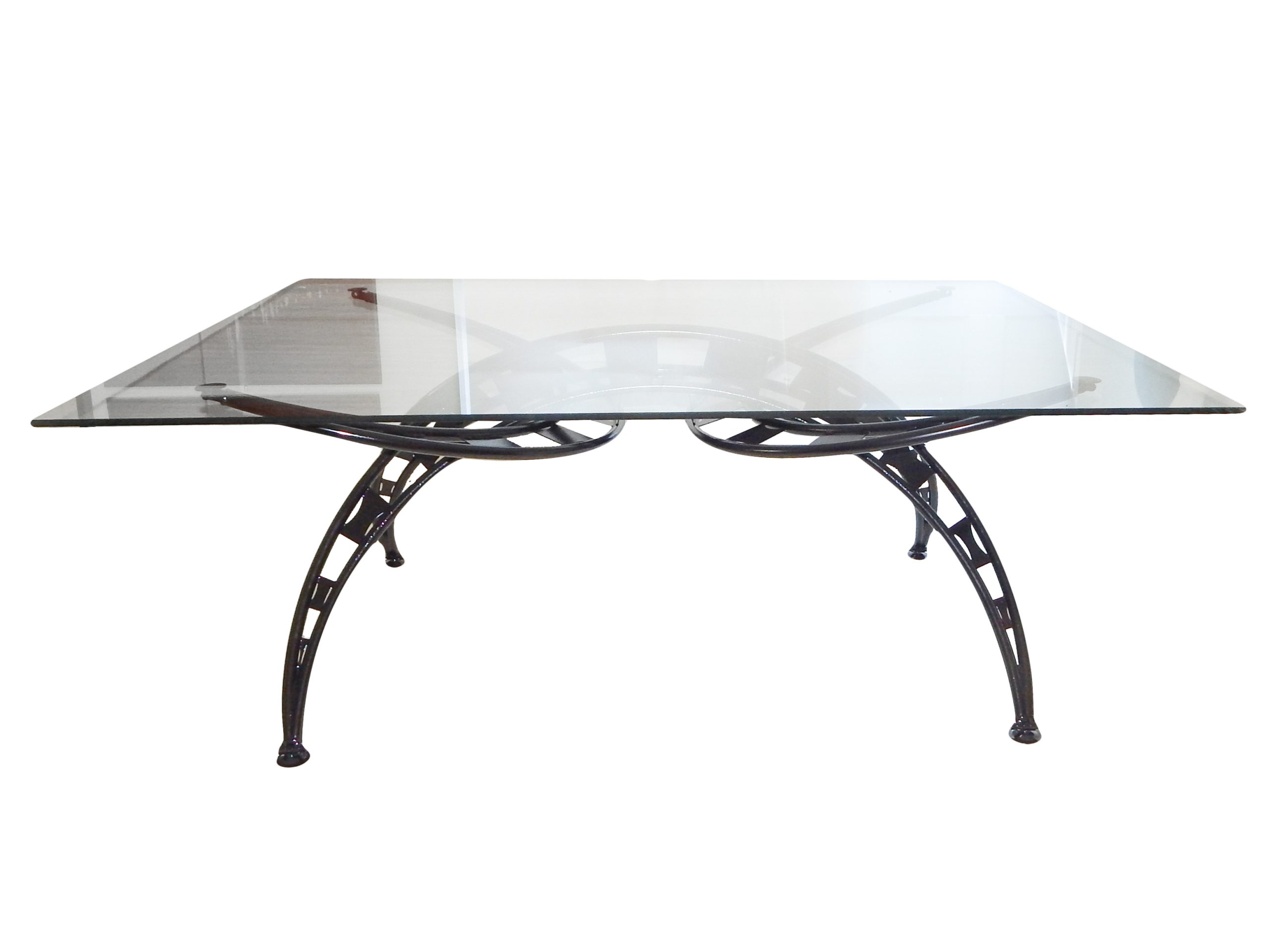 Incredible Large, Mid Century Dining Table with Aerodynamic Steel Base Painted Black & Glass Top
