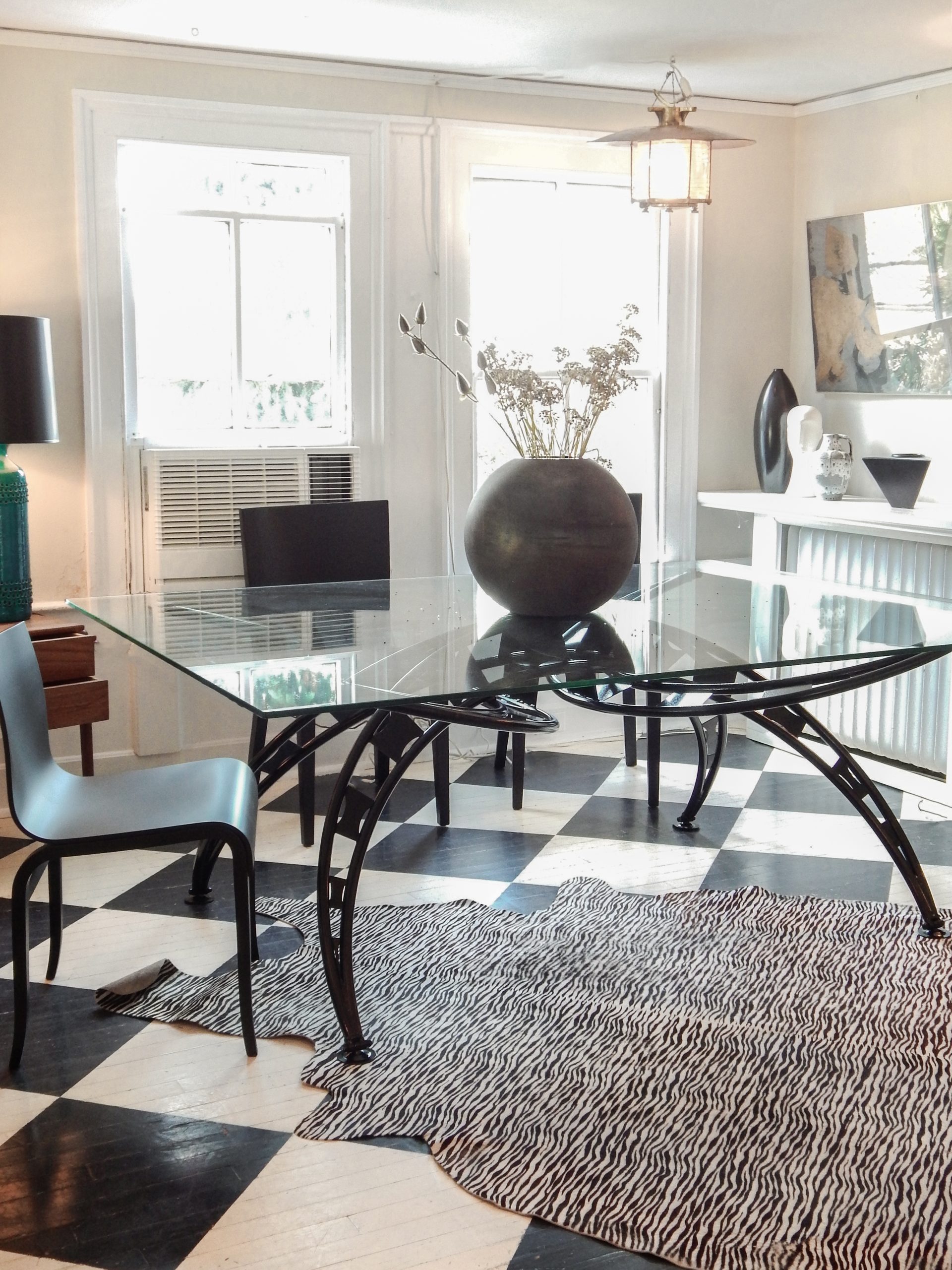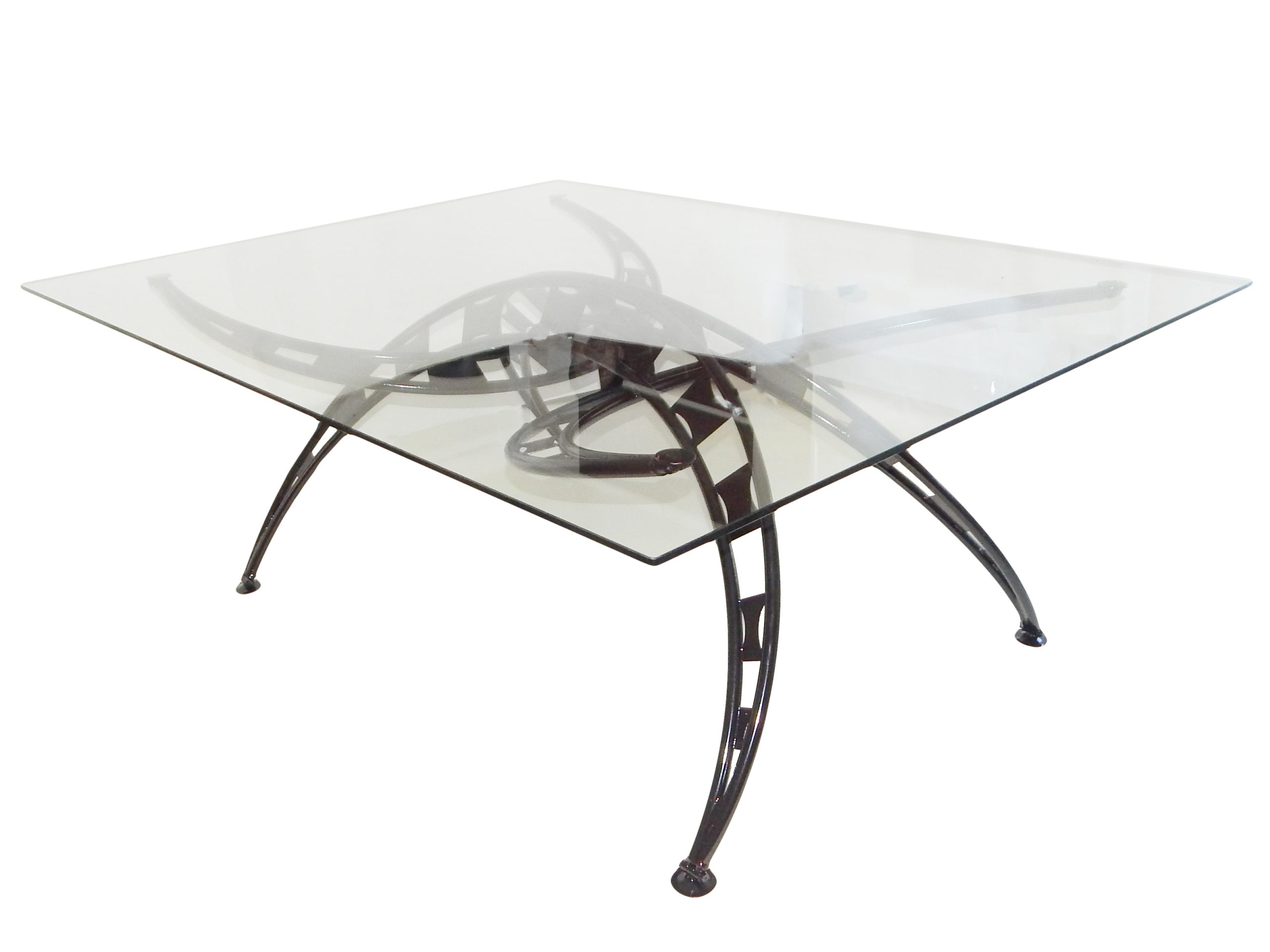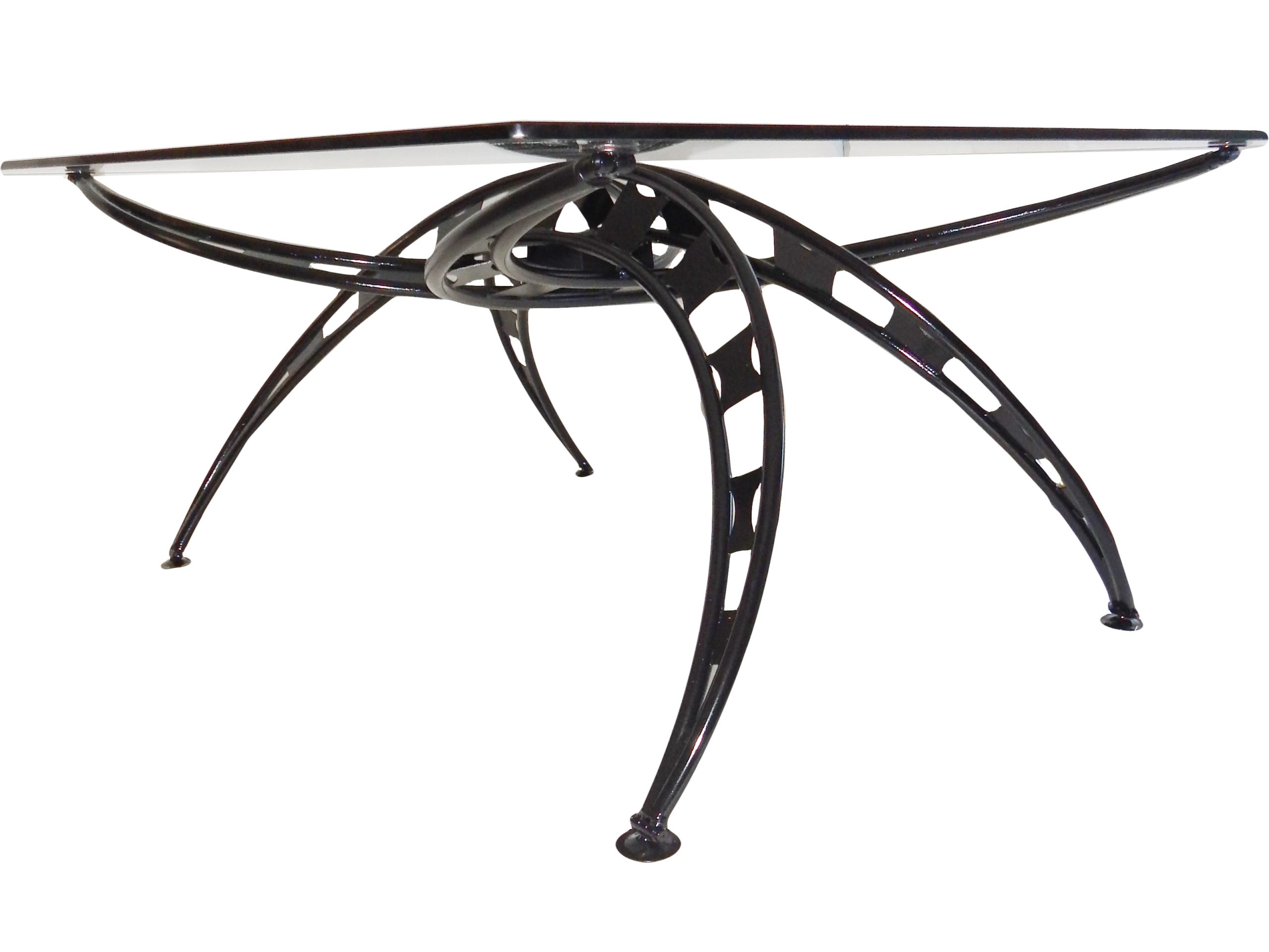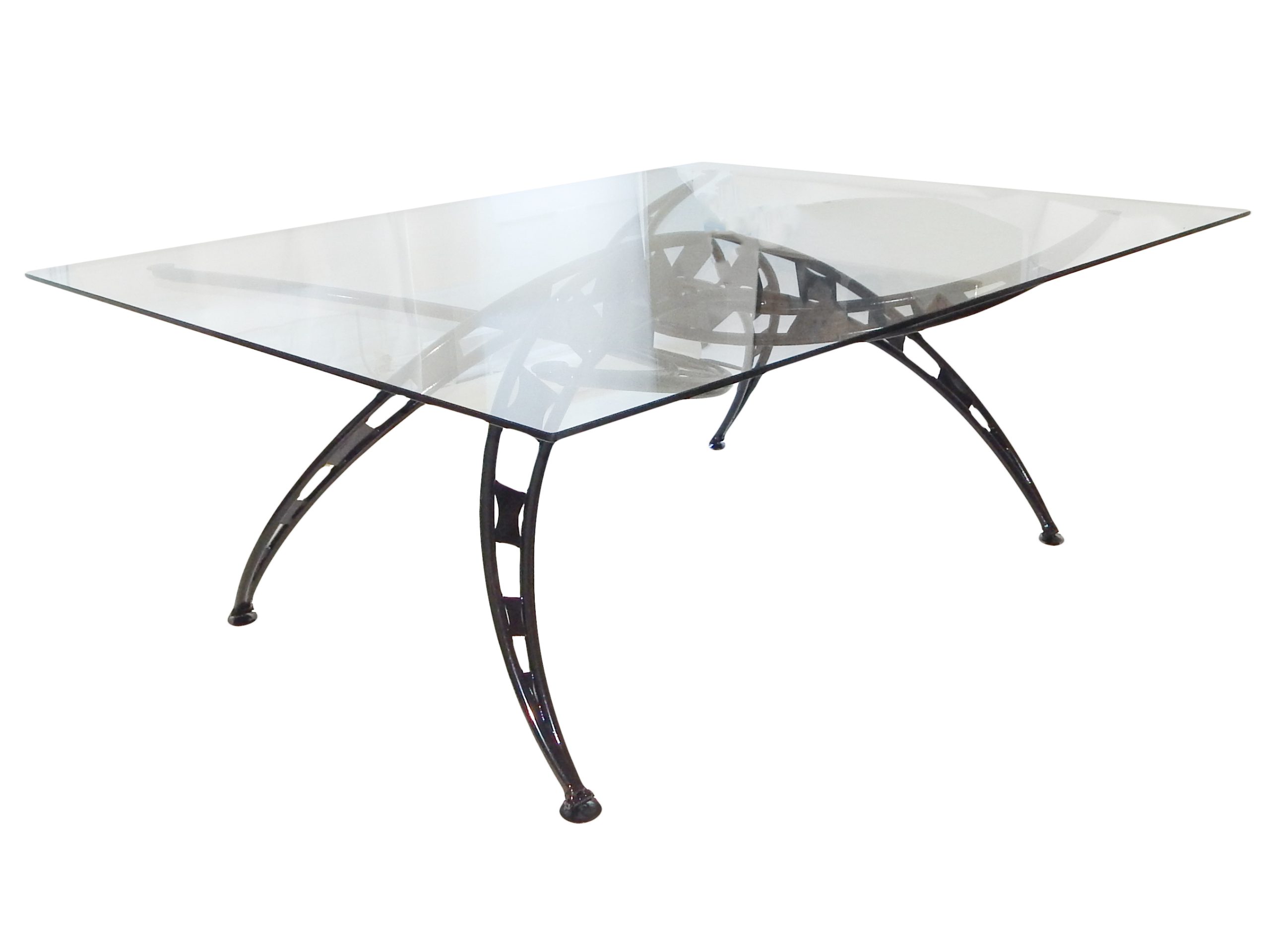 Incredible Large, Mid Century Dining Table with Aerodynamic Steel Base Painted Black & Glass Top