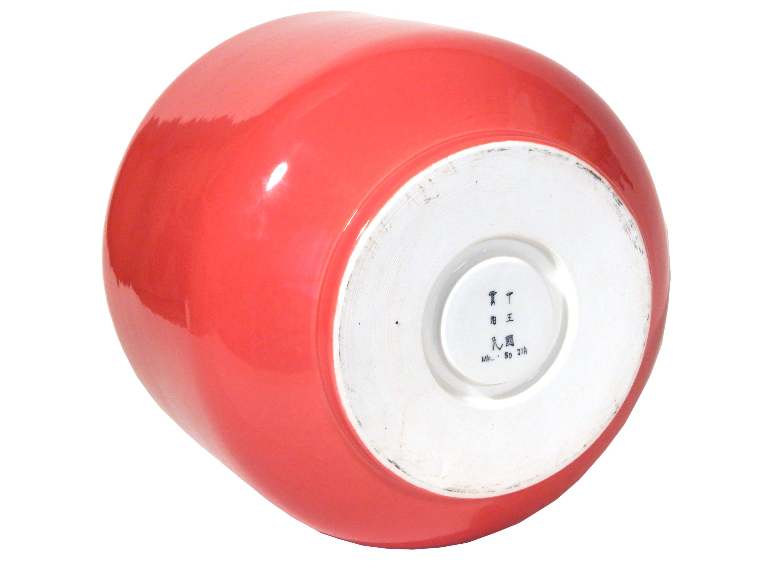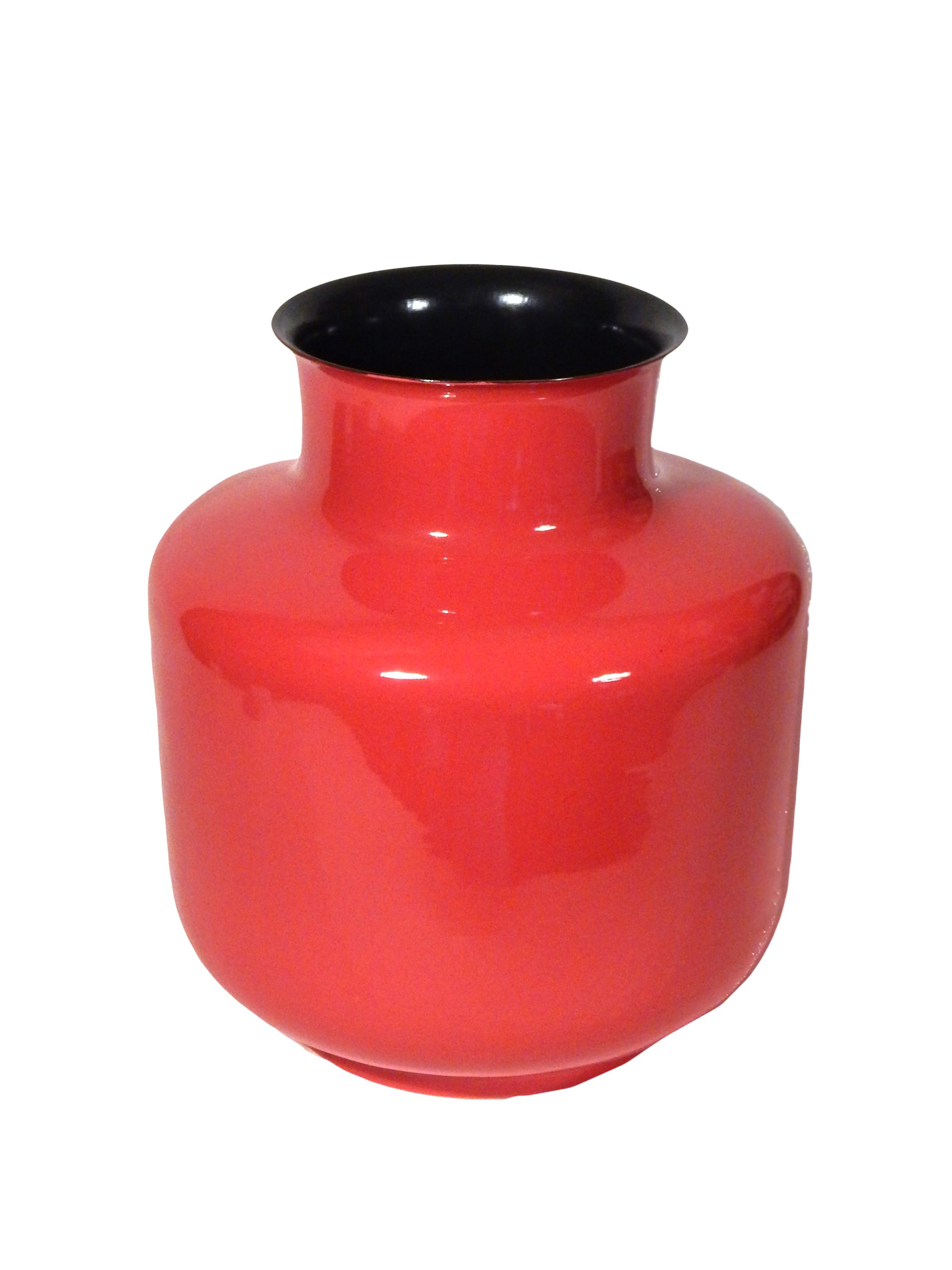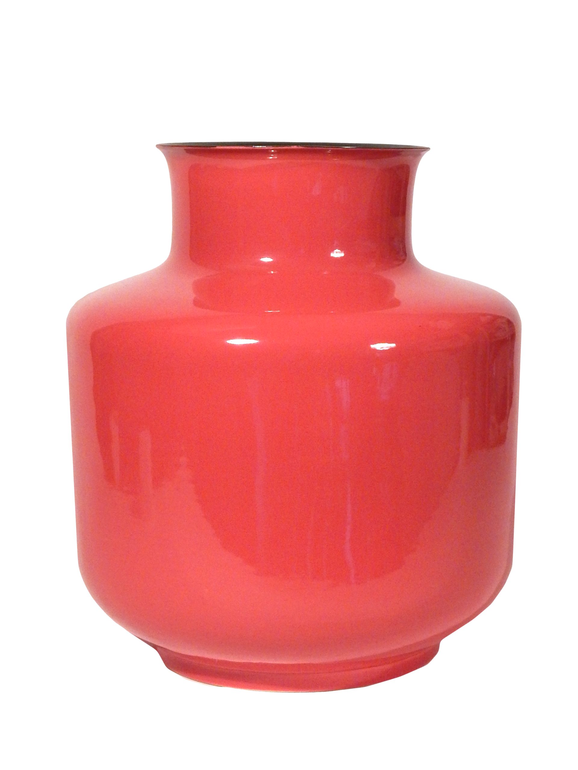 Large Mid Century, Red Asian Floor Vase with Black Interior