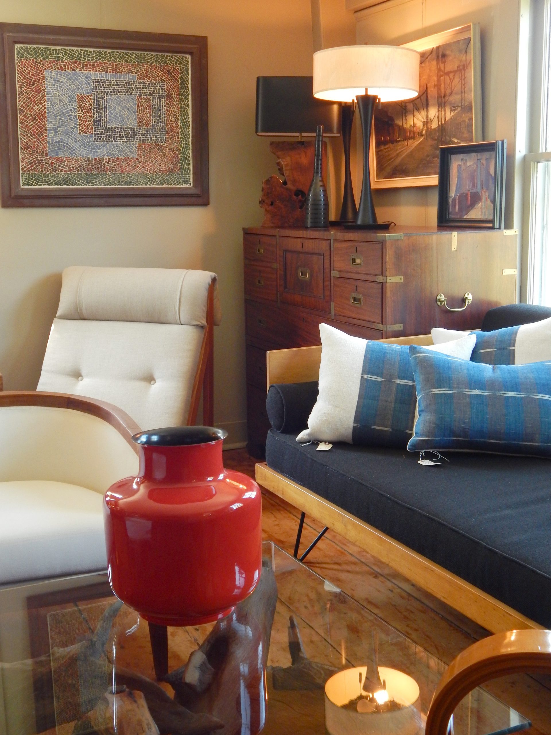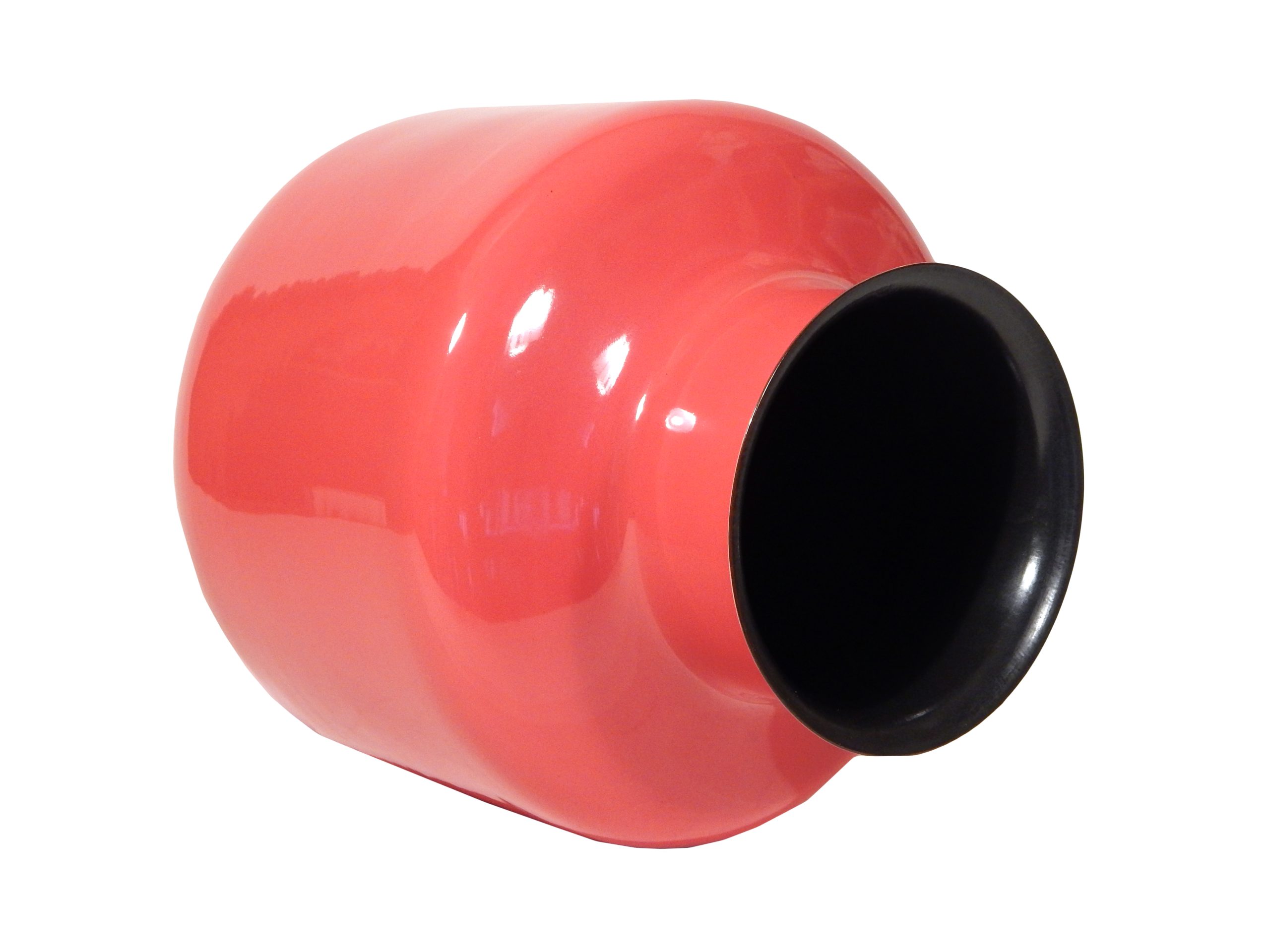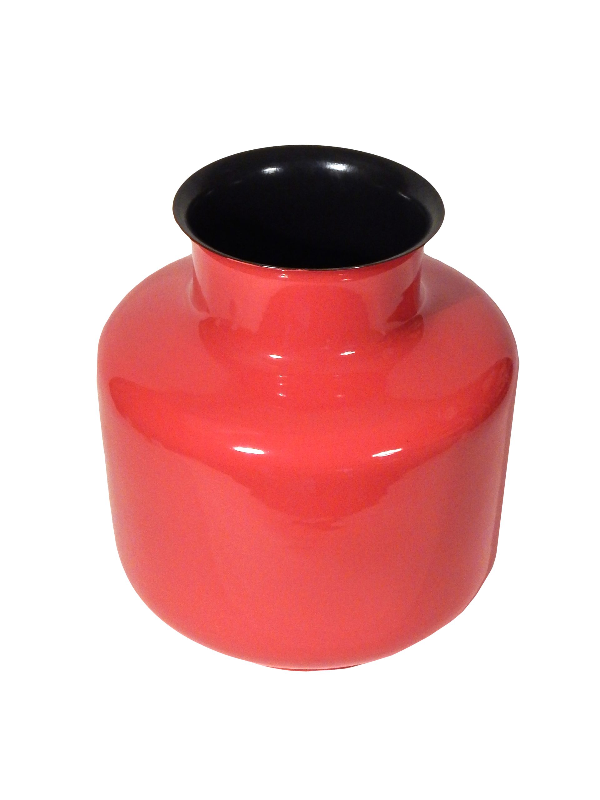 Large Mid Century, Red Asian Floor Vase with Black Interior
