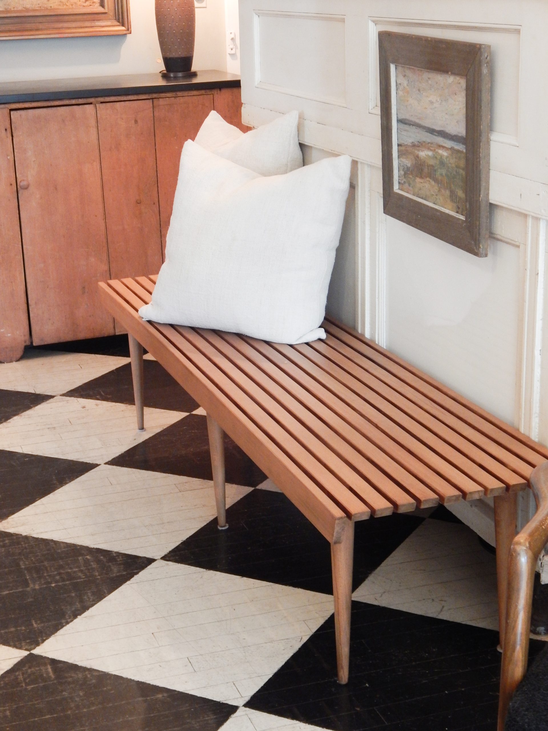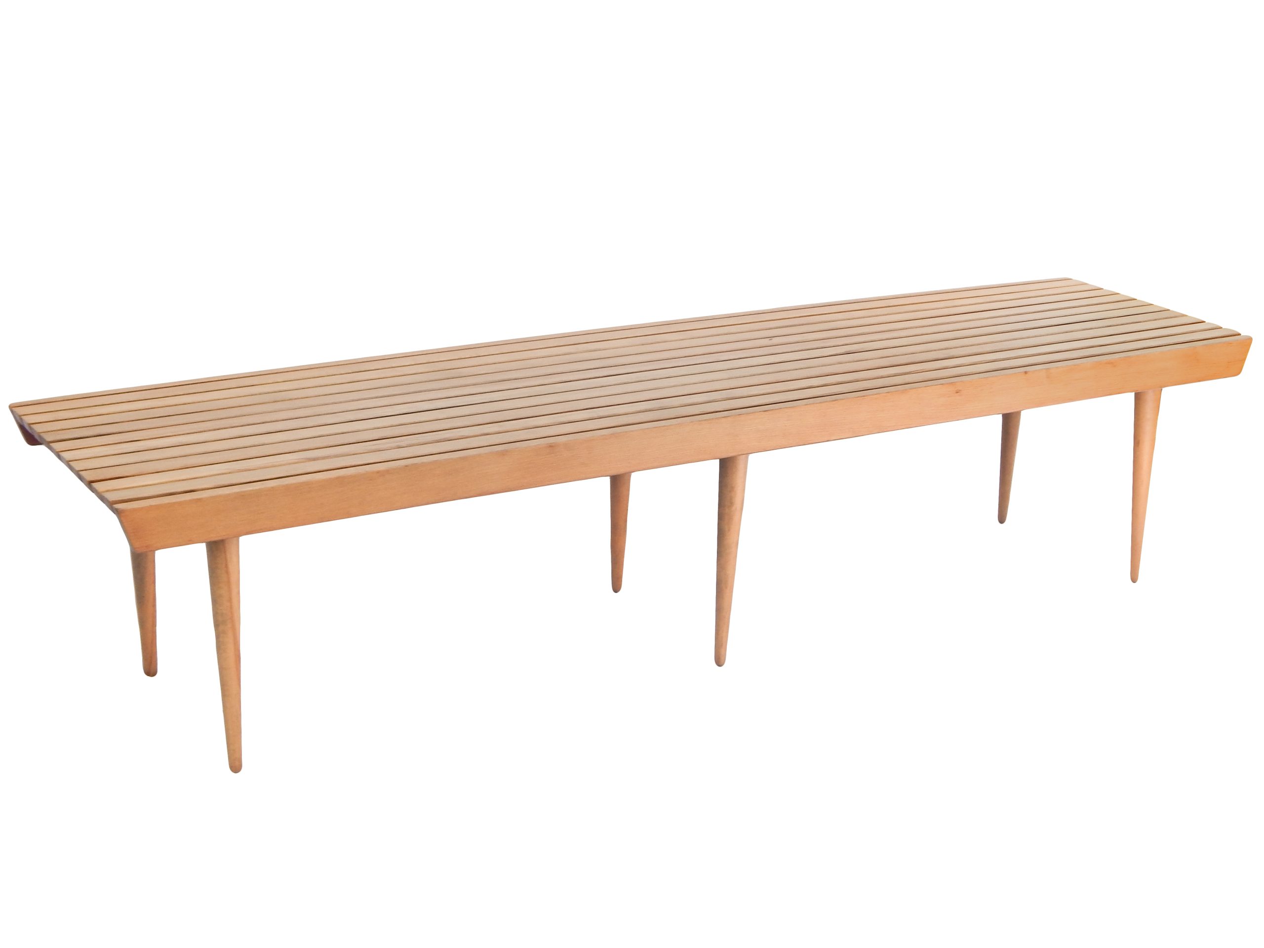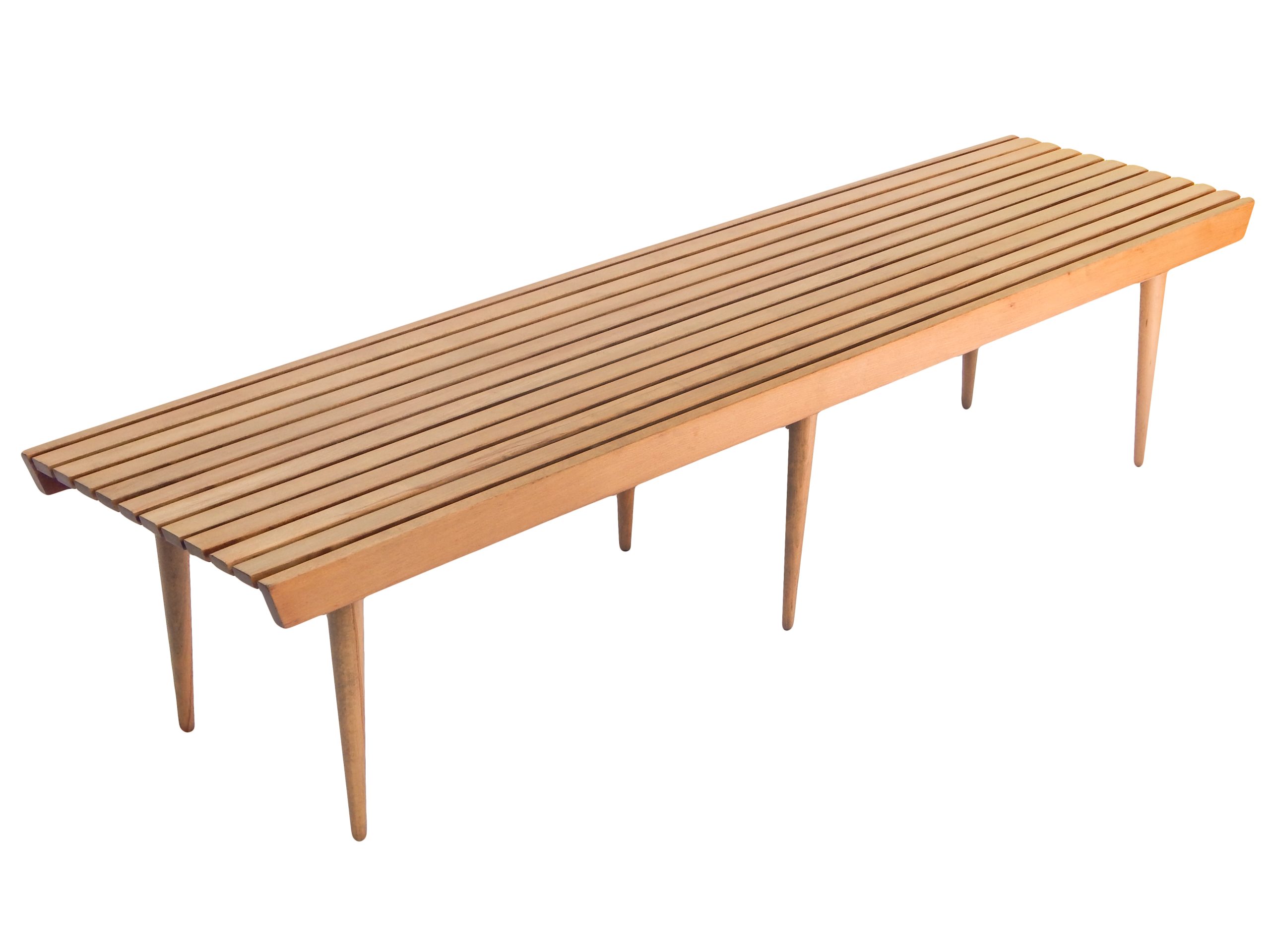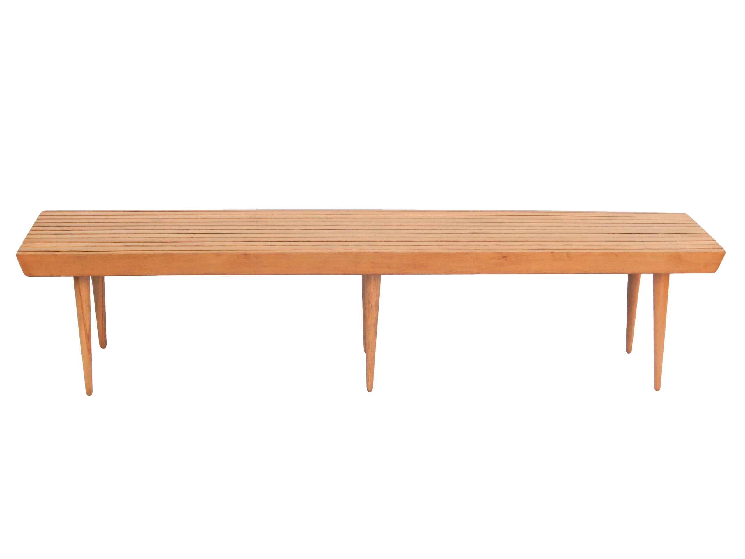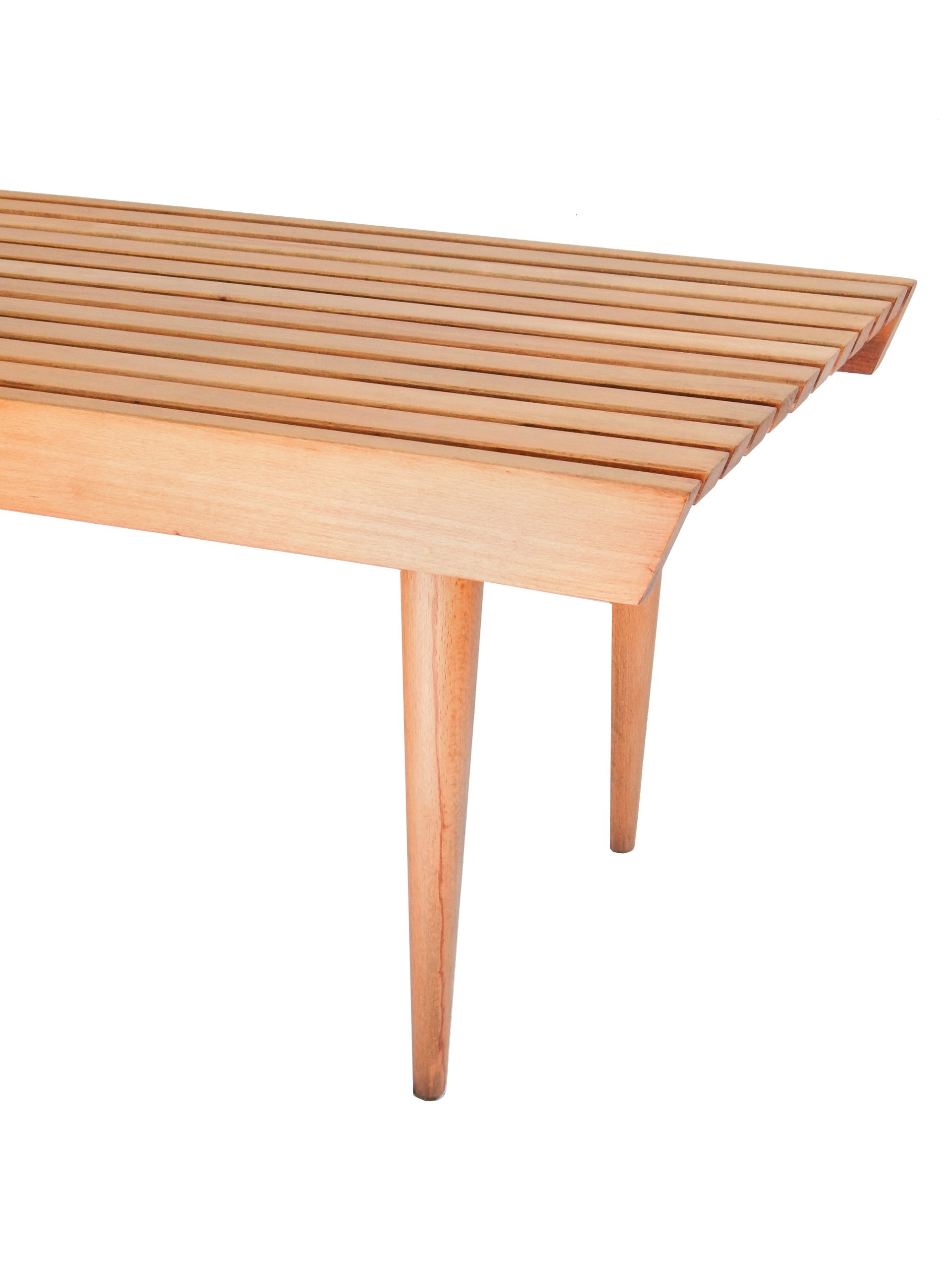 Mid Century, Blonde Slatted Bench in the Style of George Nelson
