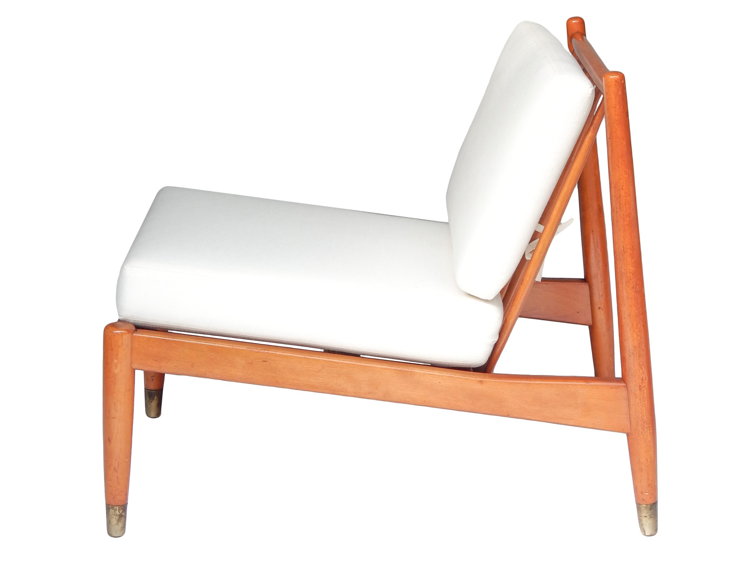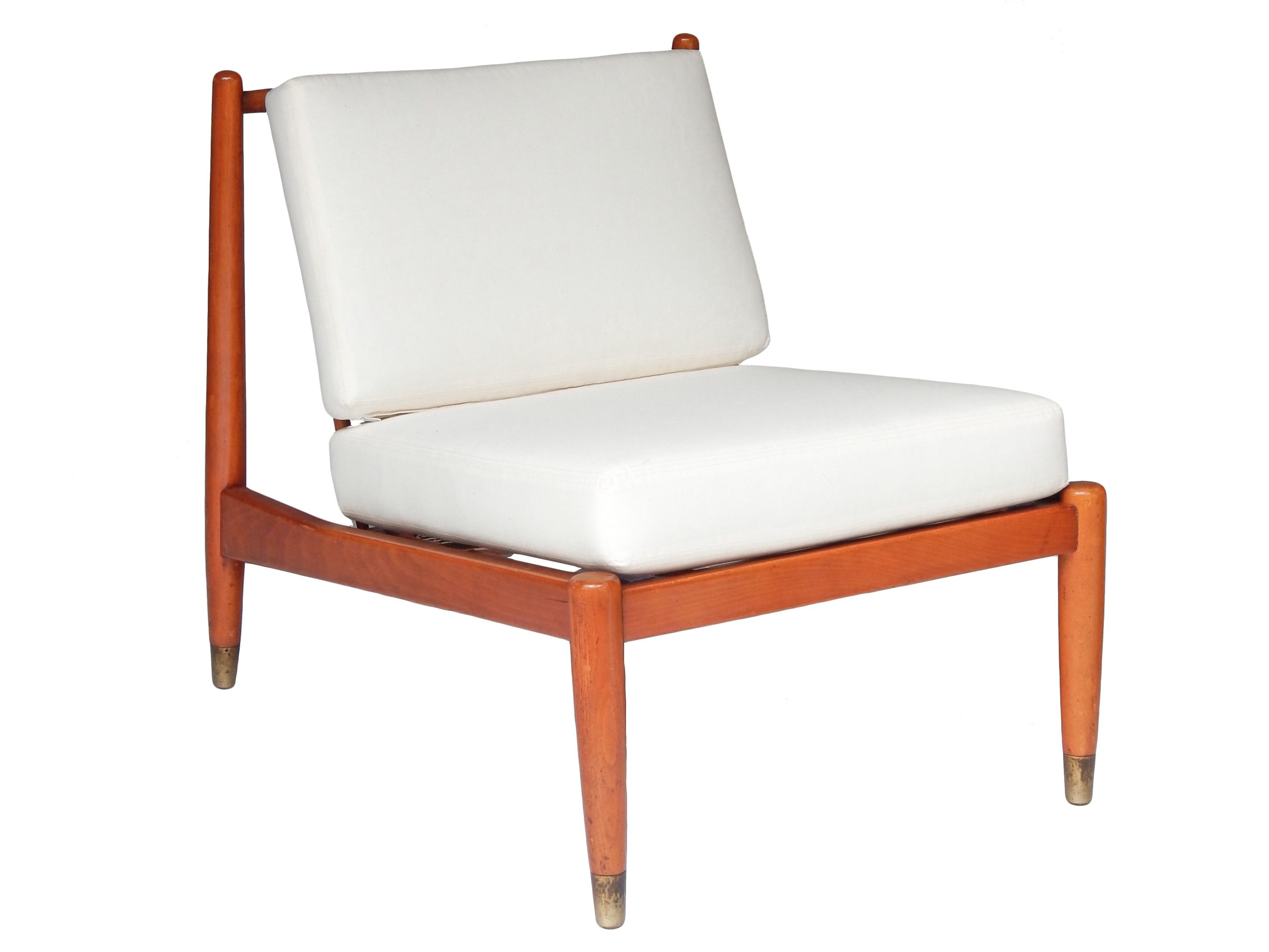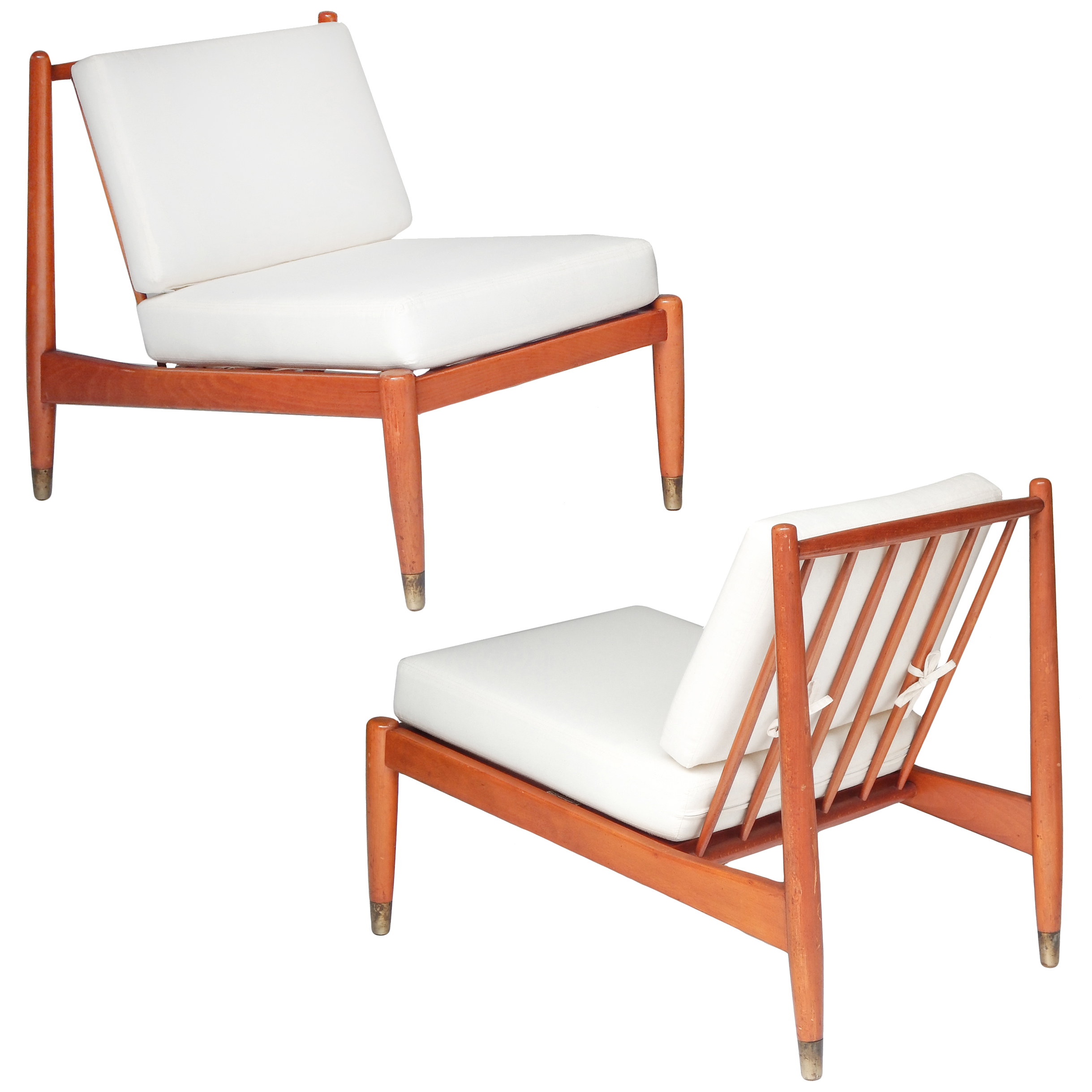 Pair of Mid Century, Danish Slipper Chairs with Cushions Upholstered in Muslin