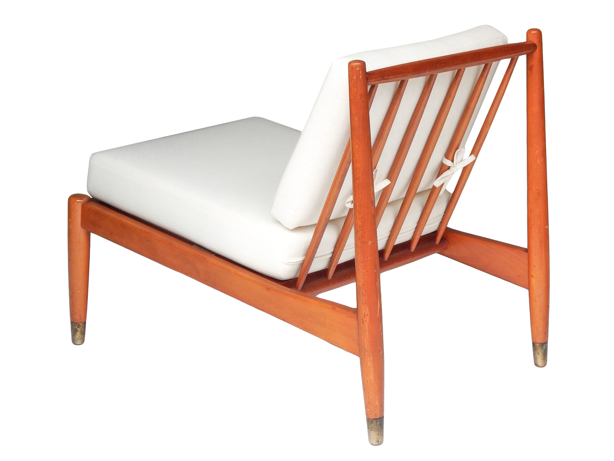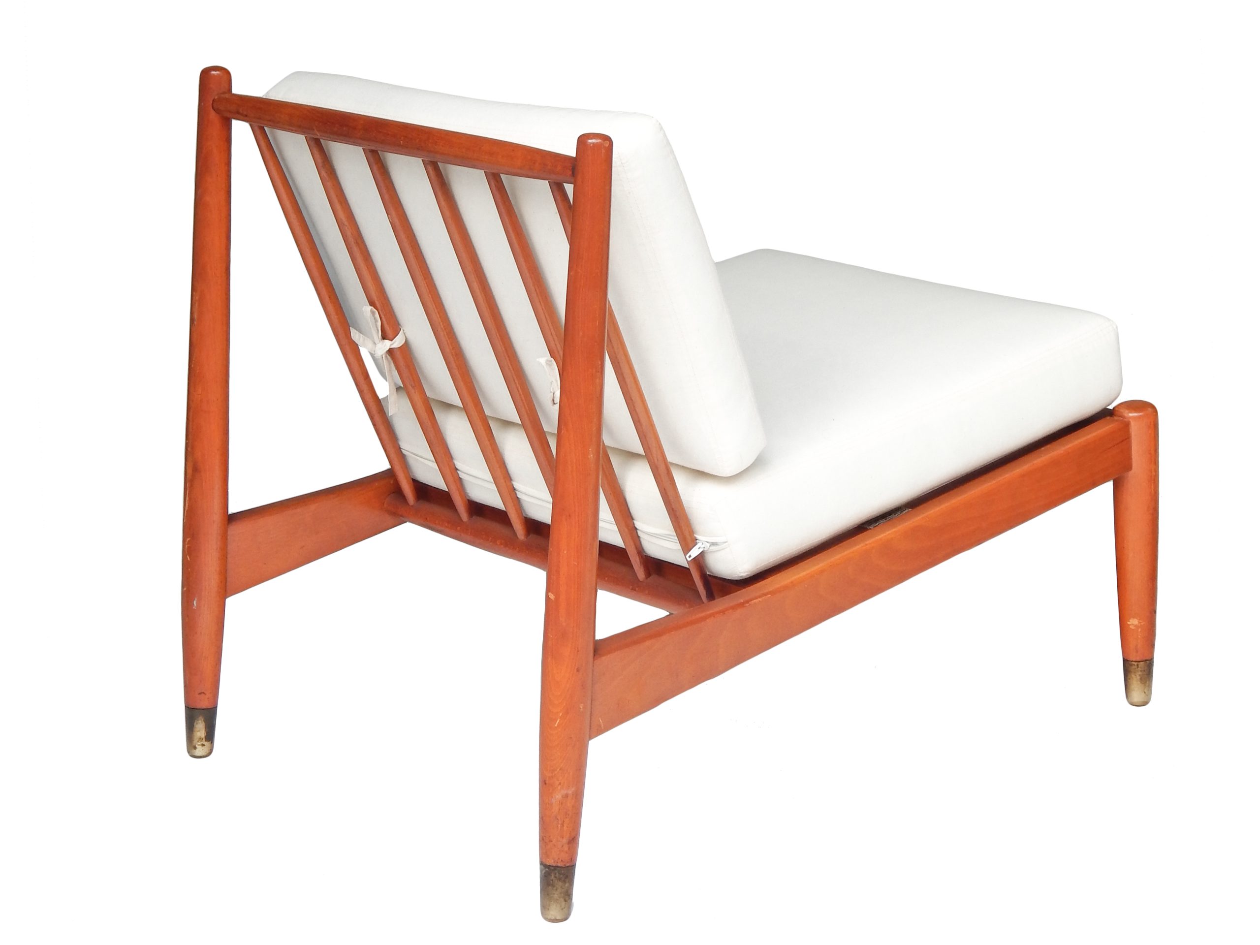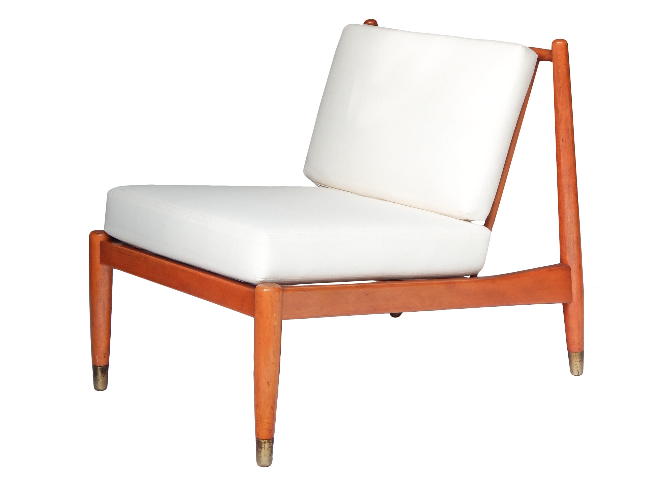 Pair of Mid Century, Danish Slipper Chairs with Cushions Upholstered in Muslin