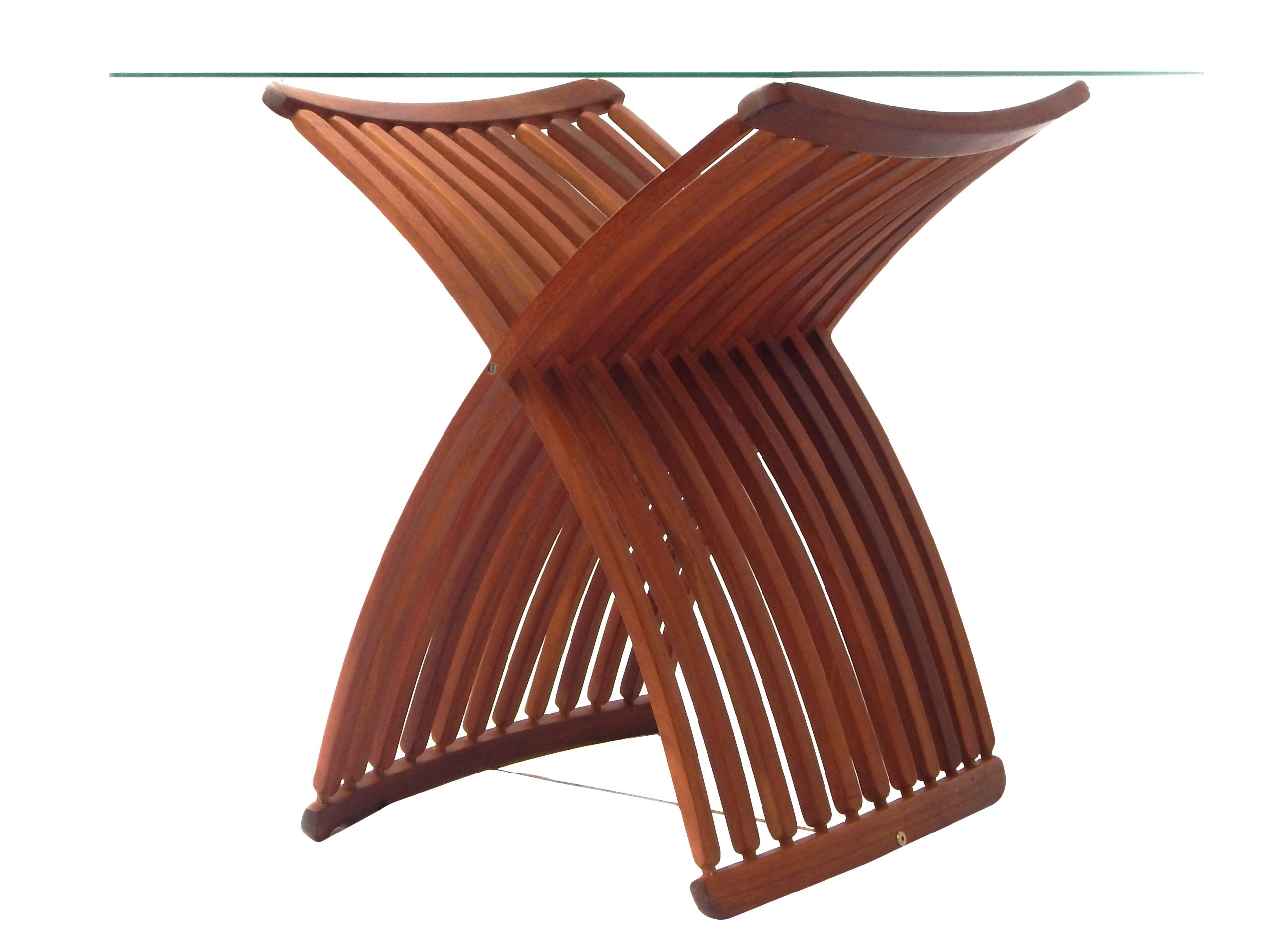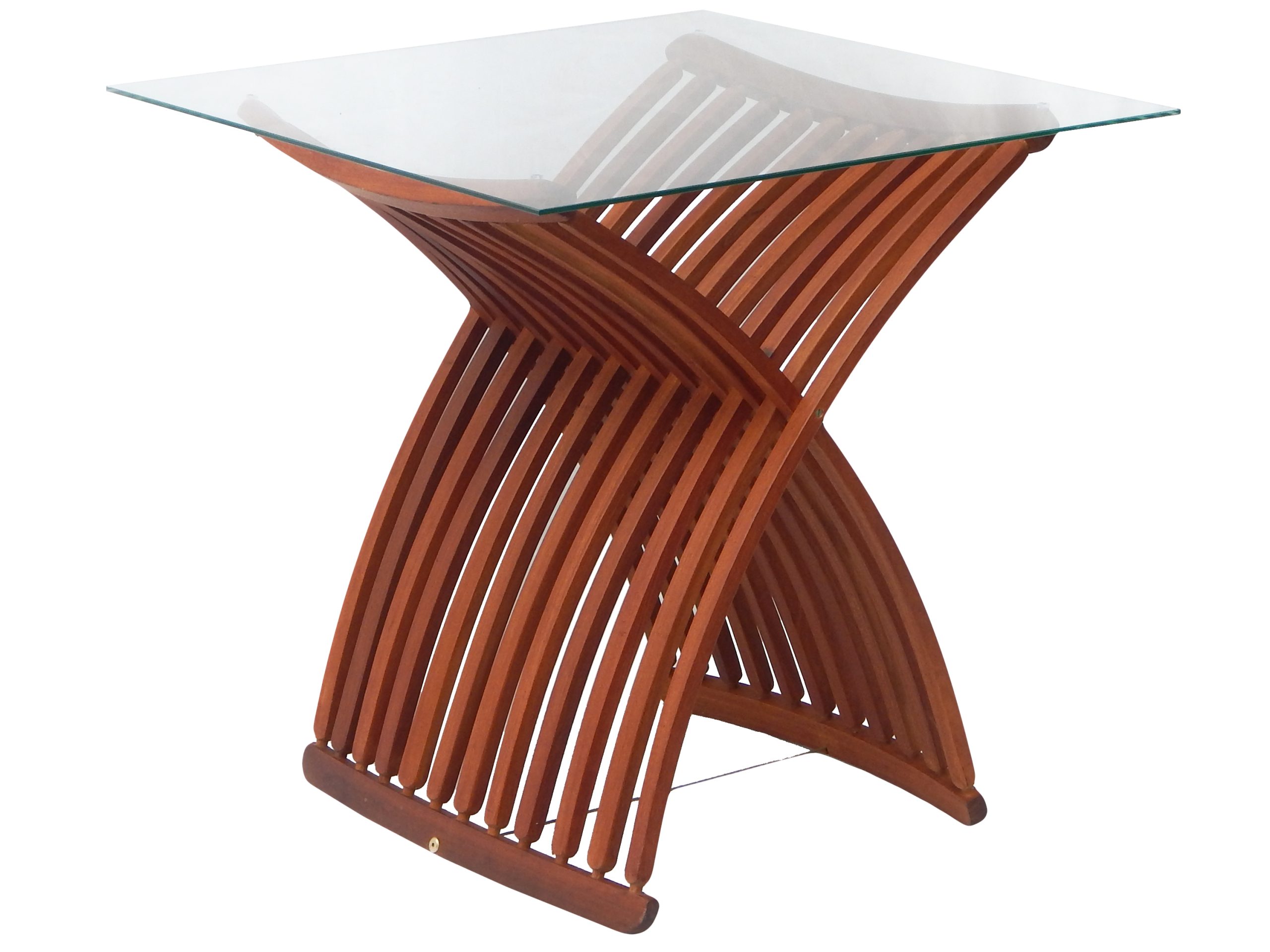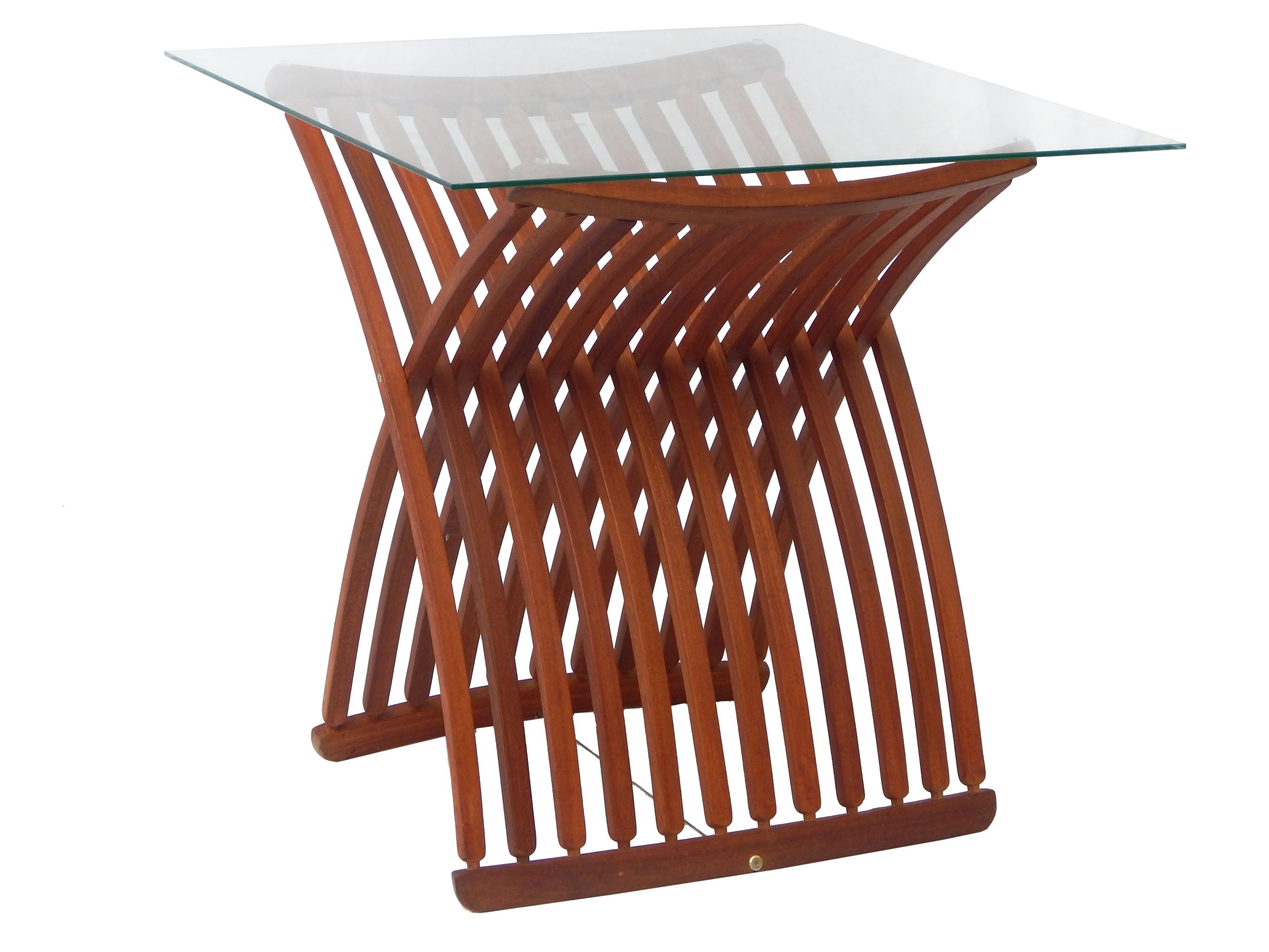Mid Century Teak Folding Boat Deck Table with Slatted Base and Glass Top