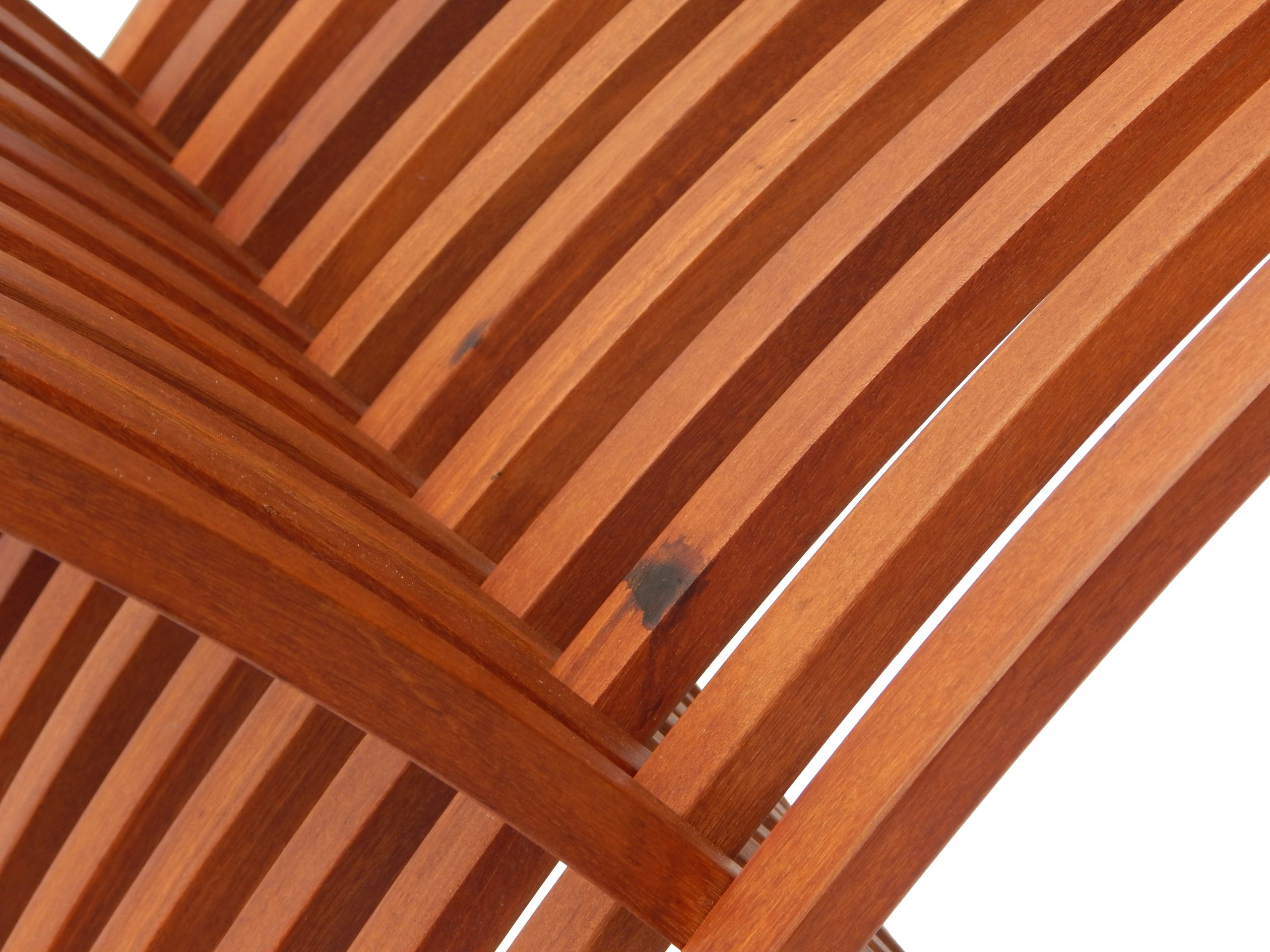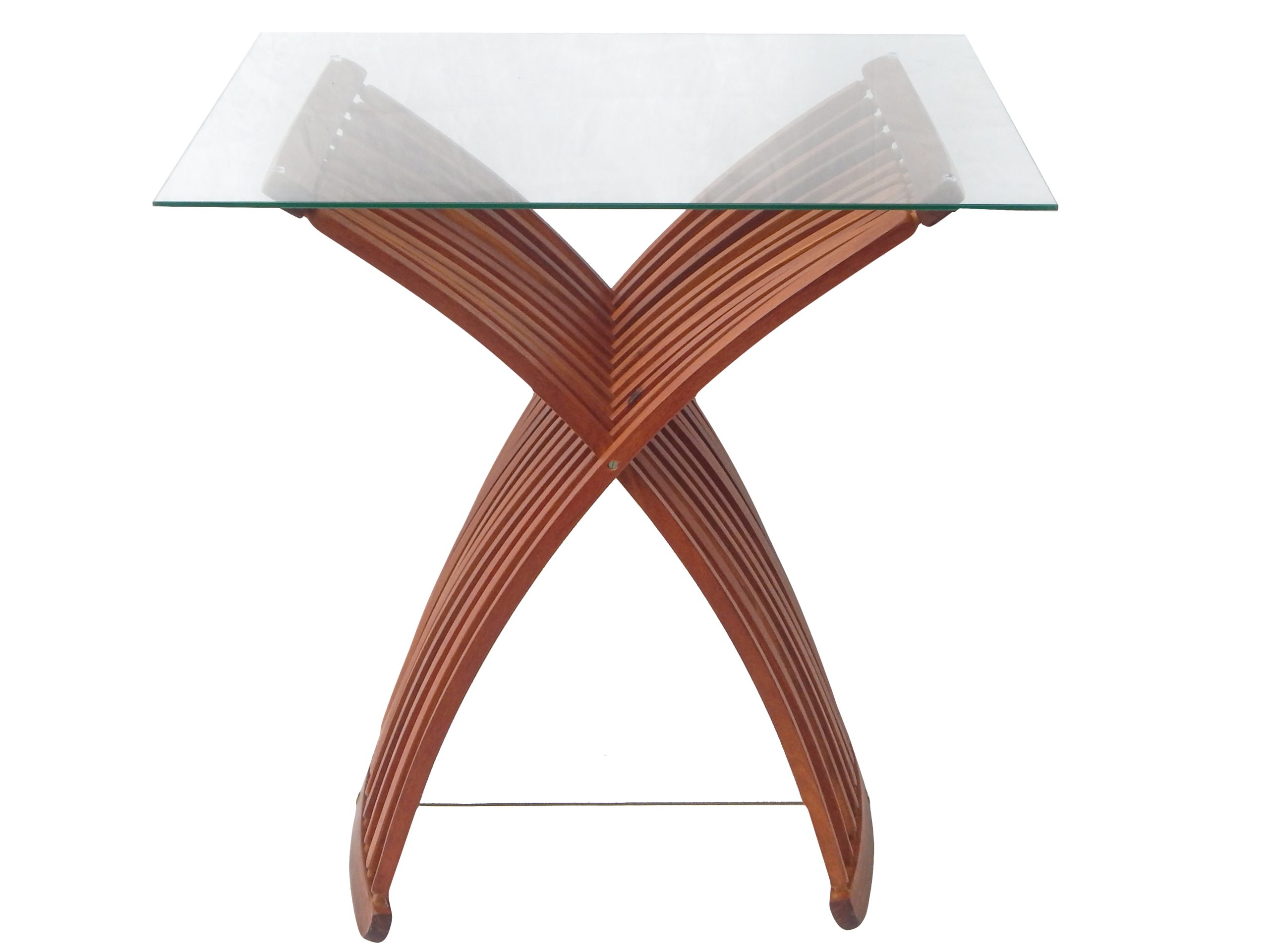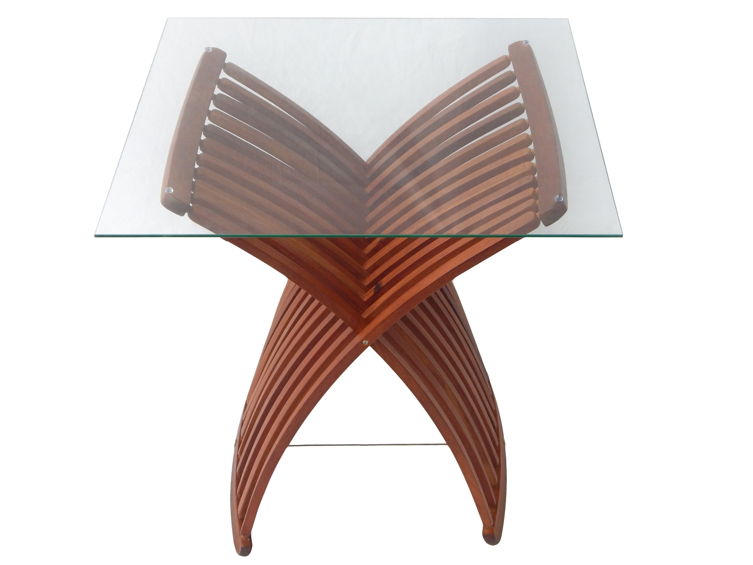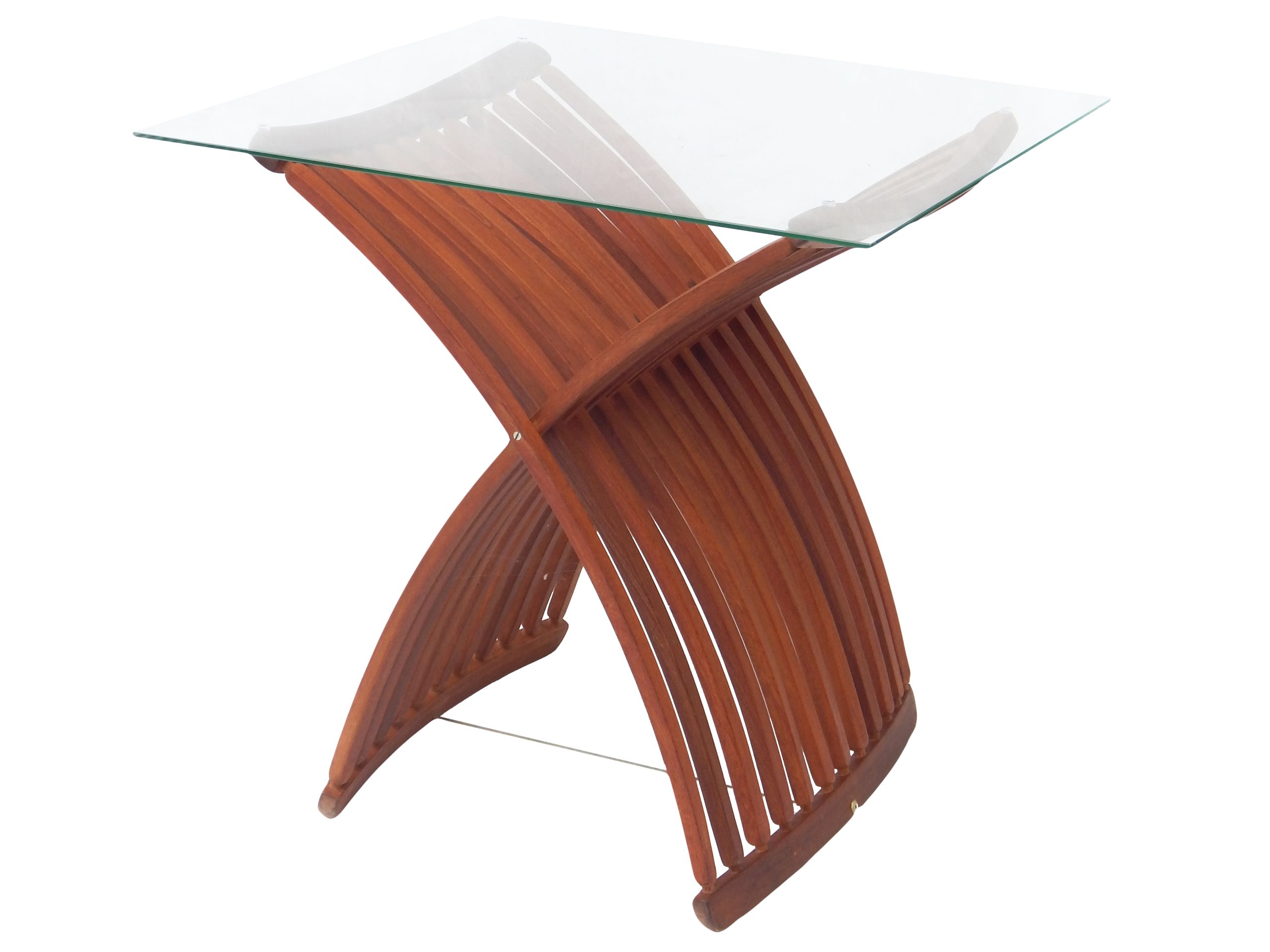 Mid Century Teak Folding Boat Deck Table with Slatted Base and Glass Top