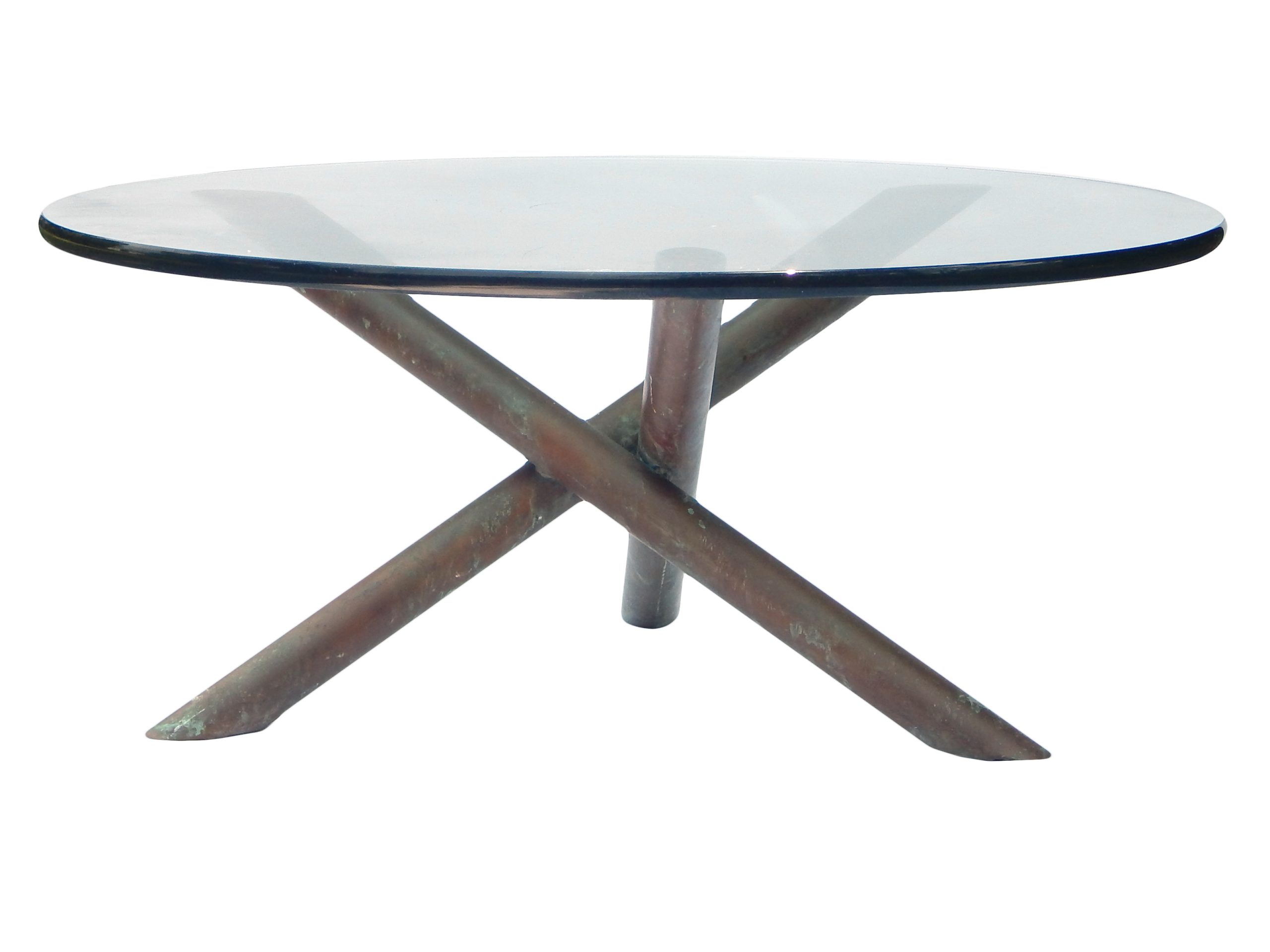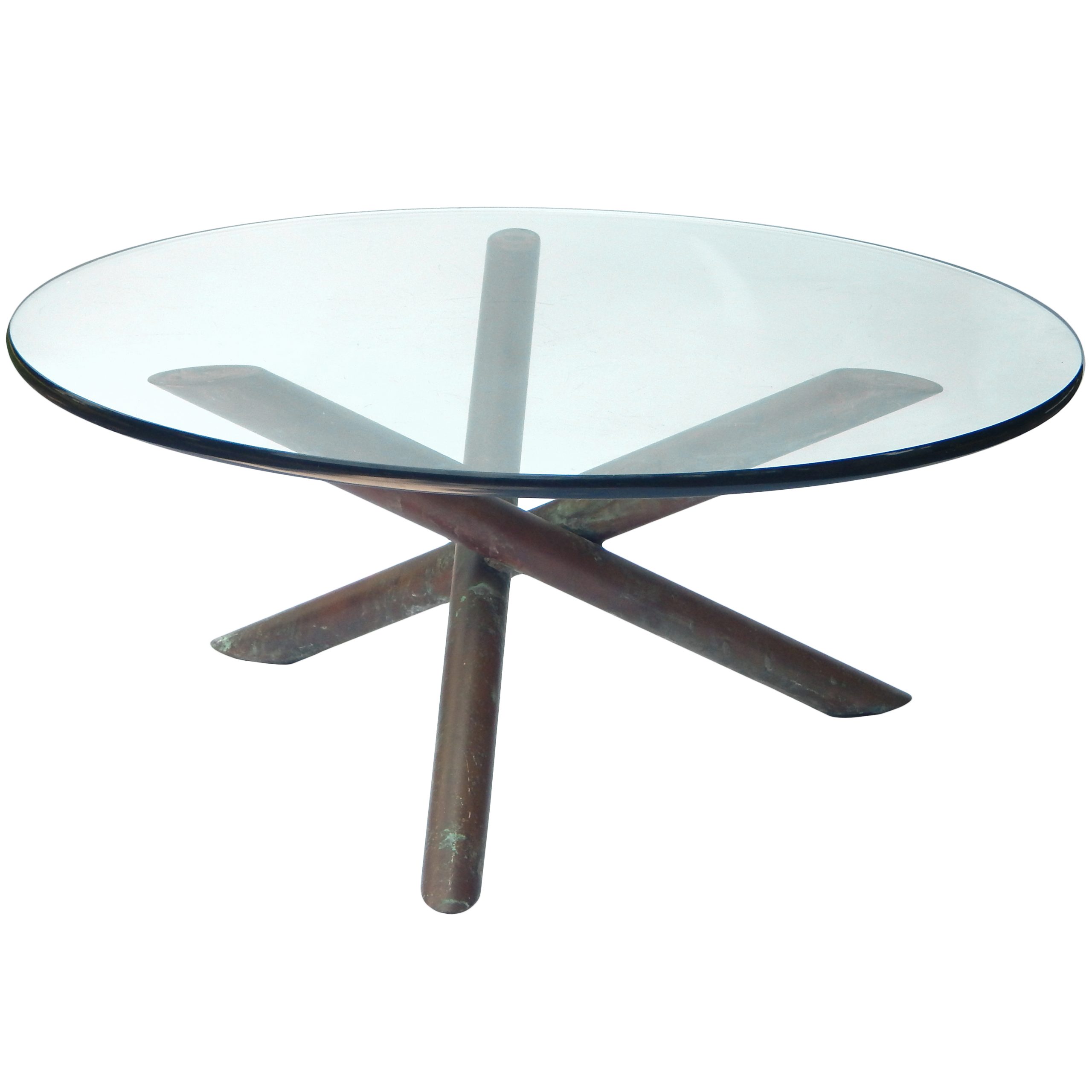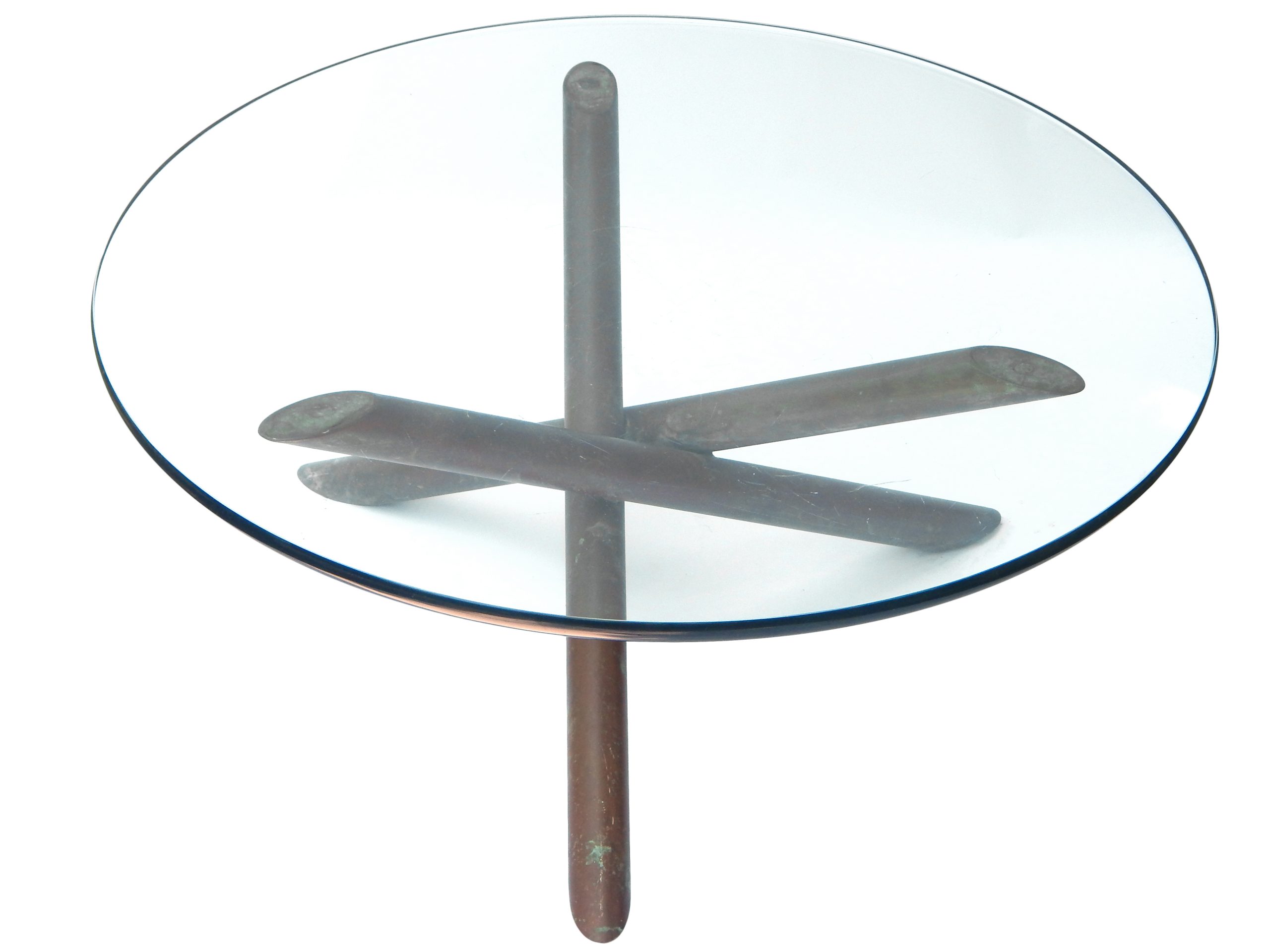 Small Late 20th Century Coffee Table with Sculptural Metal Base & Glass Top